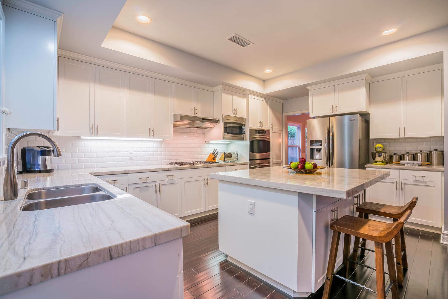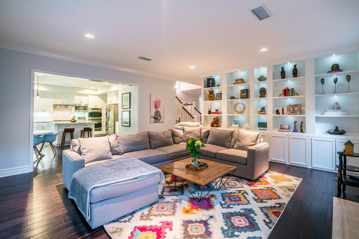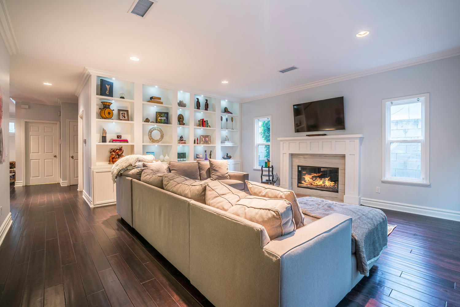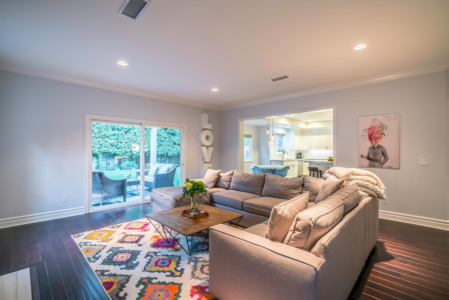 Gorgeous newer model, traditional-style, family home located in the coveted M Street Neighborhood of Sherman Oaks, with 5 bedrooms plus an enormous bonus playroom. Beautiful hardwood floors and tall ceilings greet you as you enter the front door, and guide you through the well-sized living room and dining room. The updated and bright open concept kitchen connects to a large family room, with floor-to-ceiling built-in bookshelves. A bedroom with en-suite bathroom on the first floor is ideal for an office or guest room. Upstairs bedrooms are all well-sized with generous closet space. Large master bedroom features two separate walk-in closets and spa-like, en-suite master bathroom. The lush backyard is perfect for kids play while adults entertain underneath the custom pergola. This turn-key, move-in ready home is situated within walking distance to Ventura Boulevard and the award-winning Dixie Canyon Elementary Charter School is in one of Sherman Oaks’ most desirable neighborhoods, and won’t last long. Come see it today.