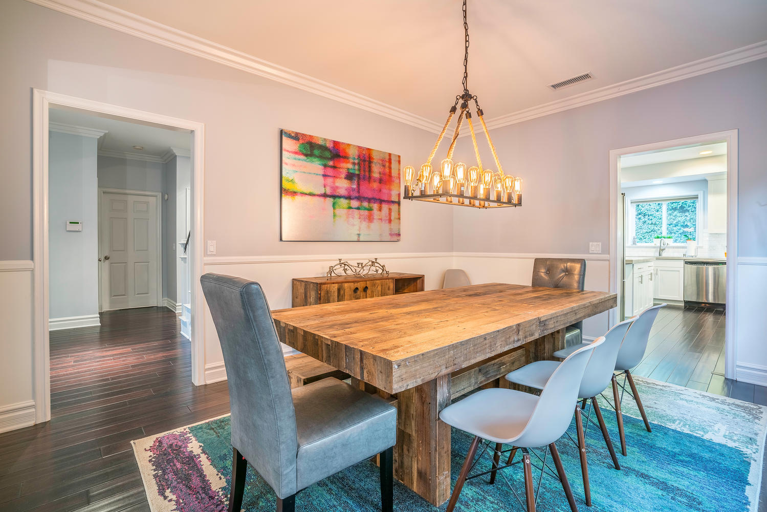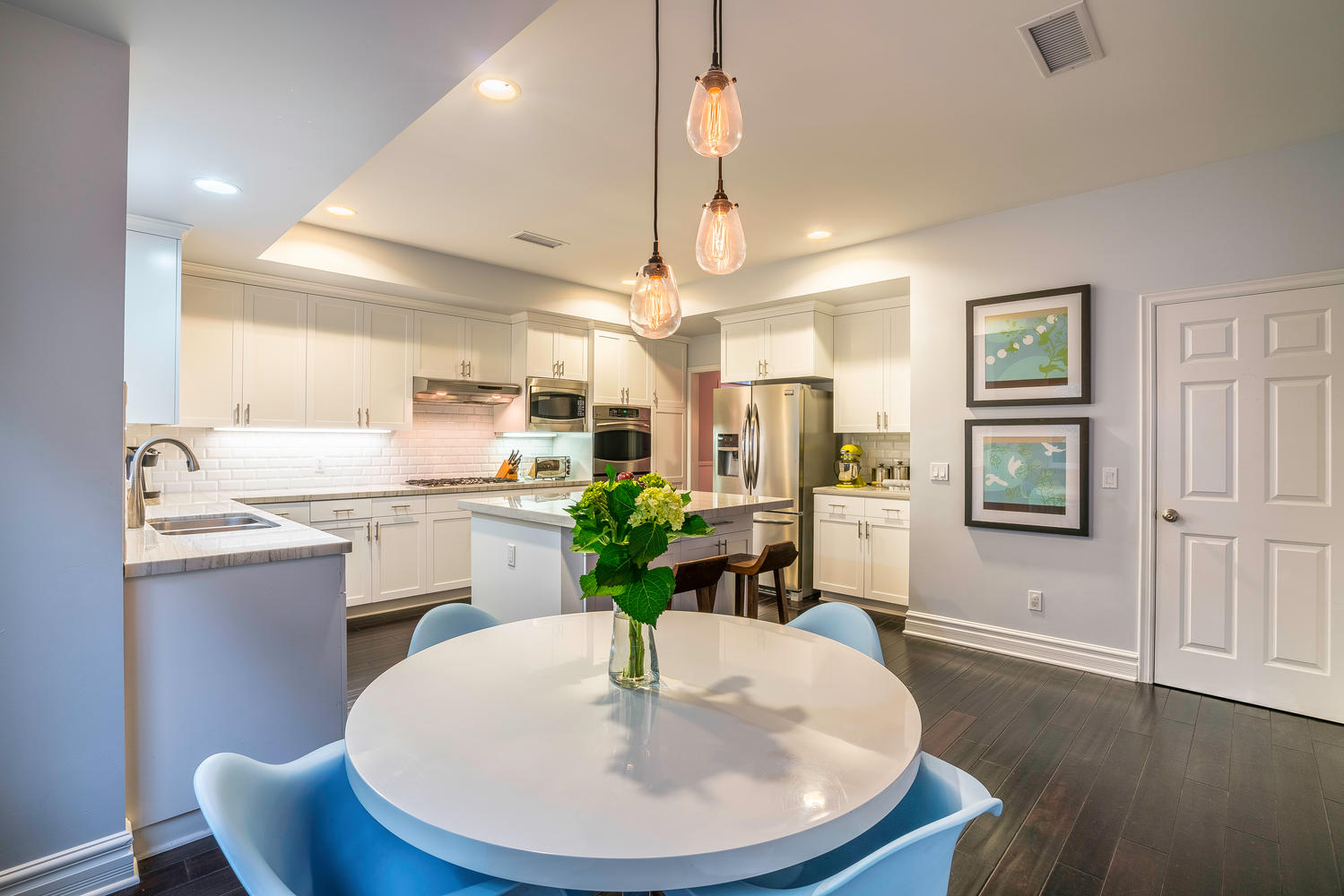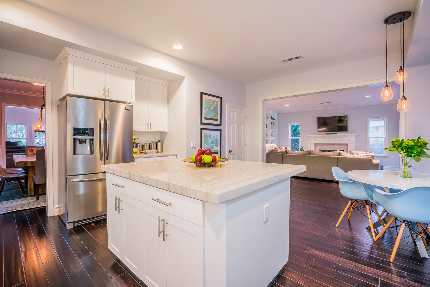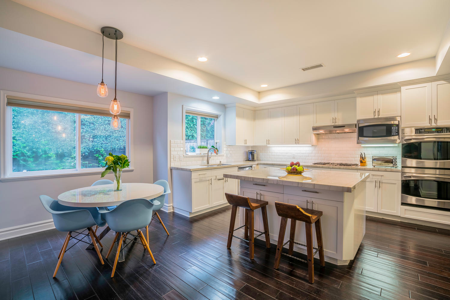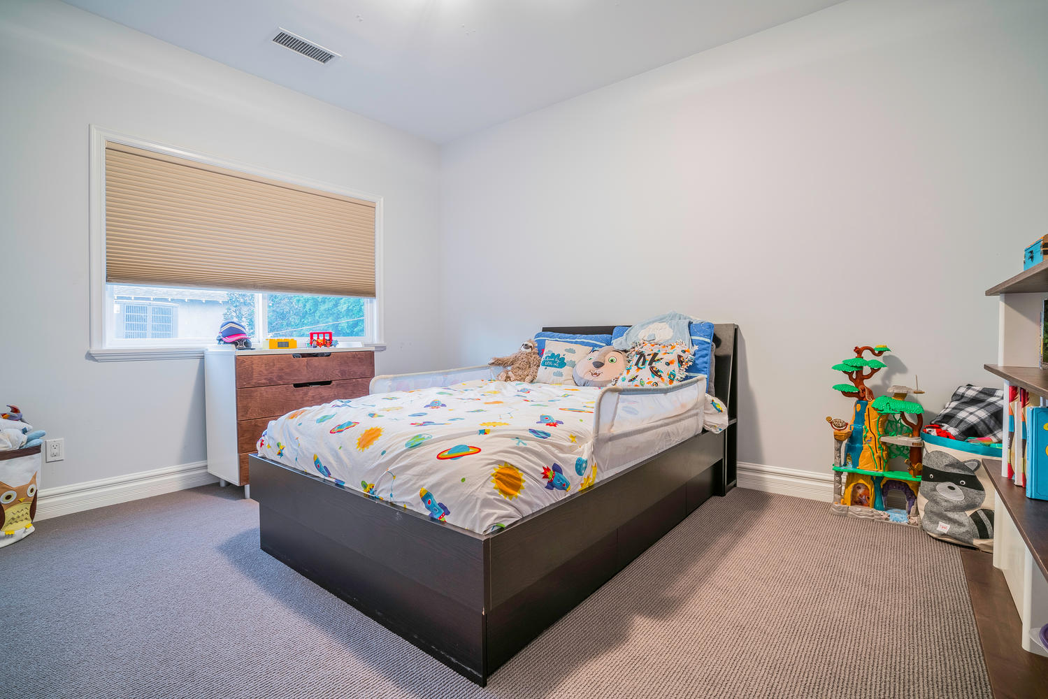Gorgeous newer model, traditional-style, family home located in the coveted M Street Neighborhood of Sherman Oaks, with 5 bedrooms plus an enormous bonus playroom. Beautiful hardwood floors and tall ceilings greet you as you enter the front door, and guide you through the well-sized living room and dining room. The updated and bright open concept kitchen connects to a large family room, with floor-to-ceiling built-in bookshelves. A bedroom with en-suite bathroom on the first floor is ideal for an office or guest room. Upstairs bedrooms are all well-sized with generous closet space. Large master bedroom features two separate walk-in closets and spa-like, en-suite master bathroom. The lush backyard is perfect for kids play while adults entertain underneath the custom pergola. This turn-key, move-in ready home is situated within walking distance to Ventura Boulevard and the award-winning Dixie Canyon Elementary Charter School is in one of Sherman Oaks’ most desirable neighborhoods, and won’t last long. Come see it today.