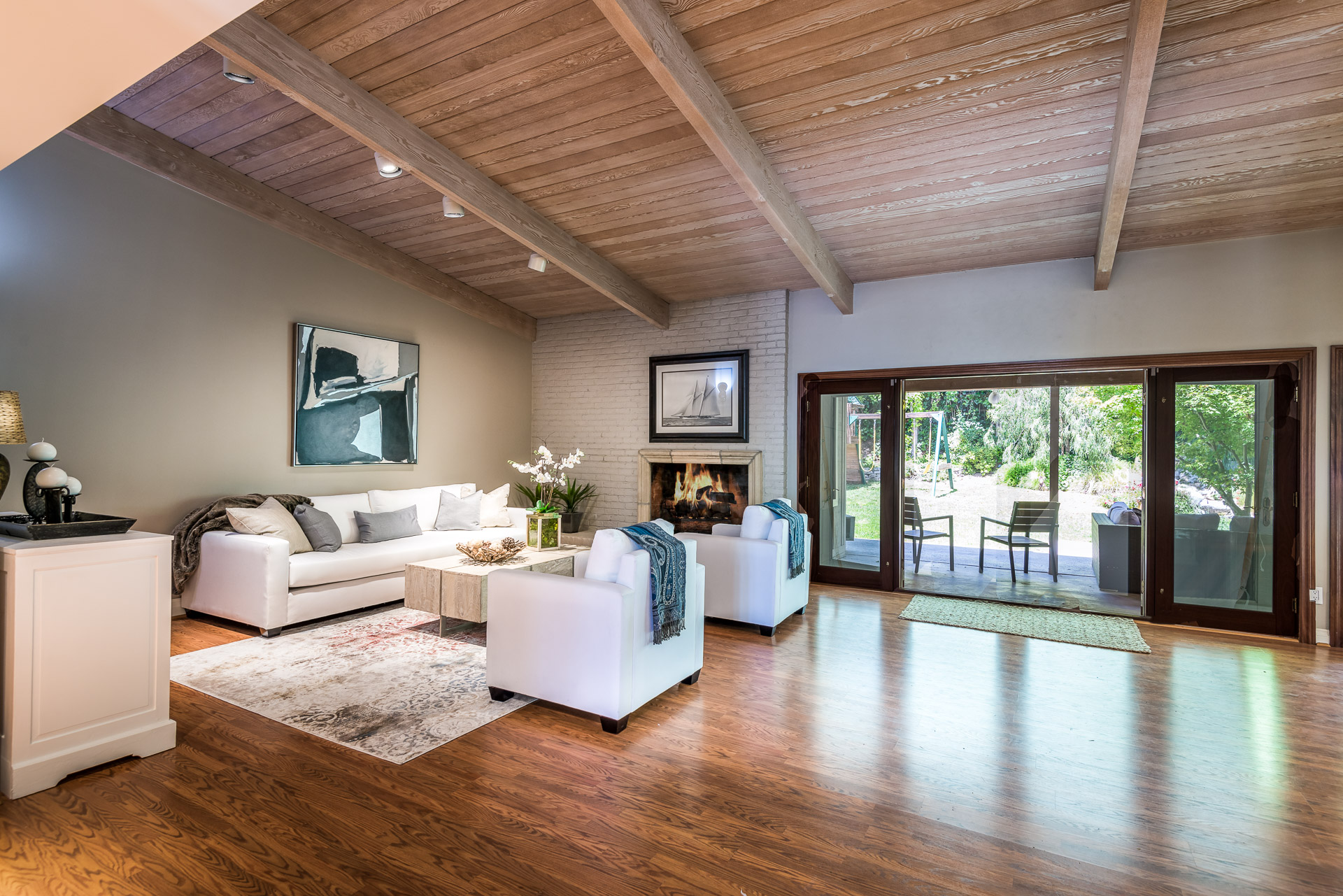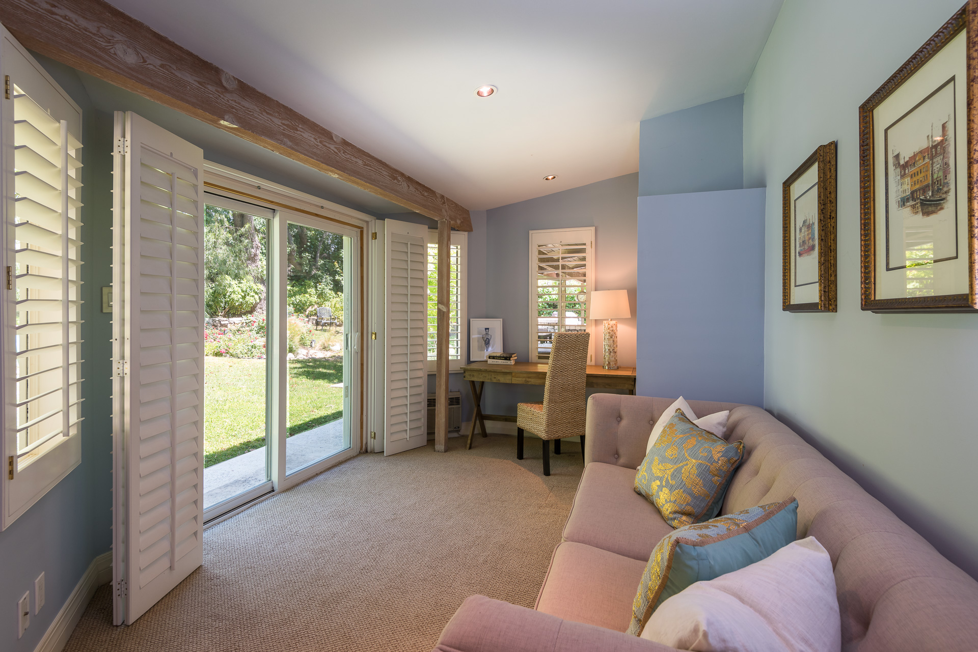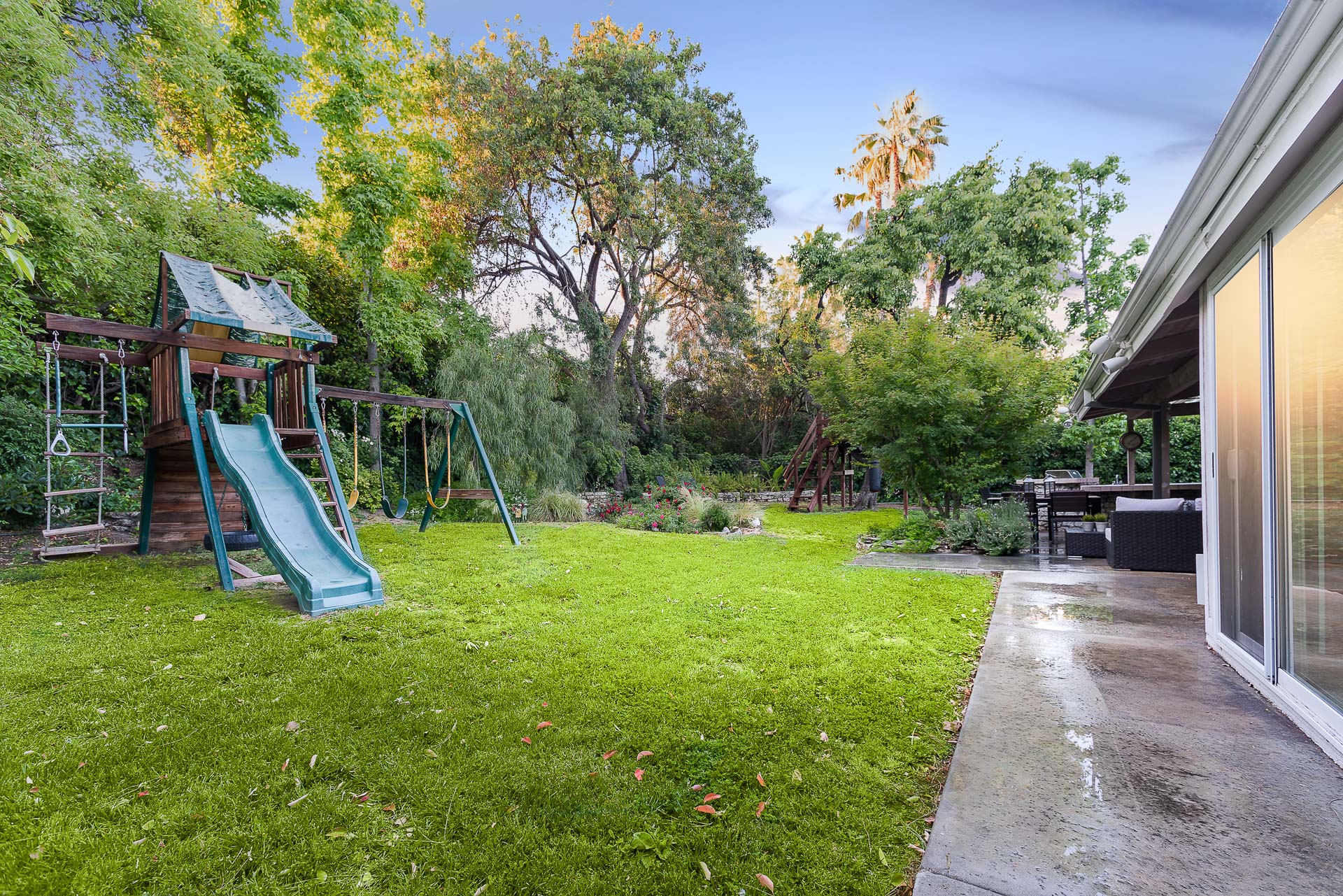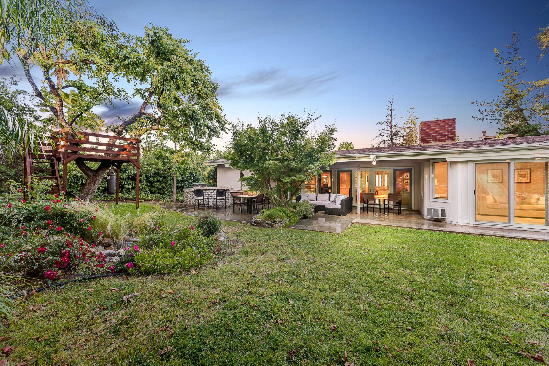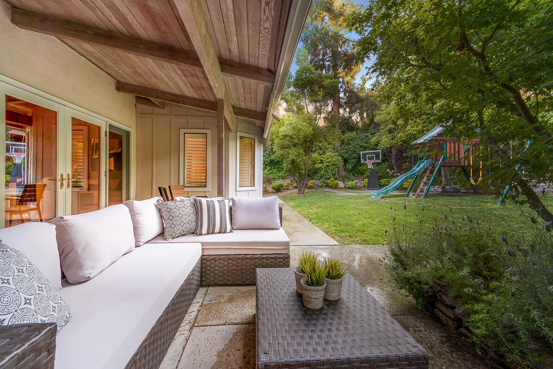 Captivating one story traditional home in Tarzana South of Ventura Boulevard. Greeted by a well manicured front lawn, this home is filled with character. Enter through the front door to the open floor plan graced with hardwood floors. The living room features high, beamed ceilings and a full wall of french doors, bringing in bright, natural light. Walk outside where you encounter the private backyard surrounded by lush trees, creating a tranquil, oasis-like feeling. Complete with half basketball court, covered patio, tree-house and built in BBQ area, this yard is perfect for entertaining! Inside you have four spacious bedrooms featured with vaulted ceilings. The master suite has a separate office nook and direct access to back yard. Moments from the local shops and restaurants on Ventura Boulevard, Hiking trails and multi-million dollar homes, this is the perfect family home.