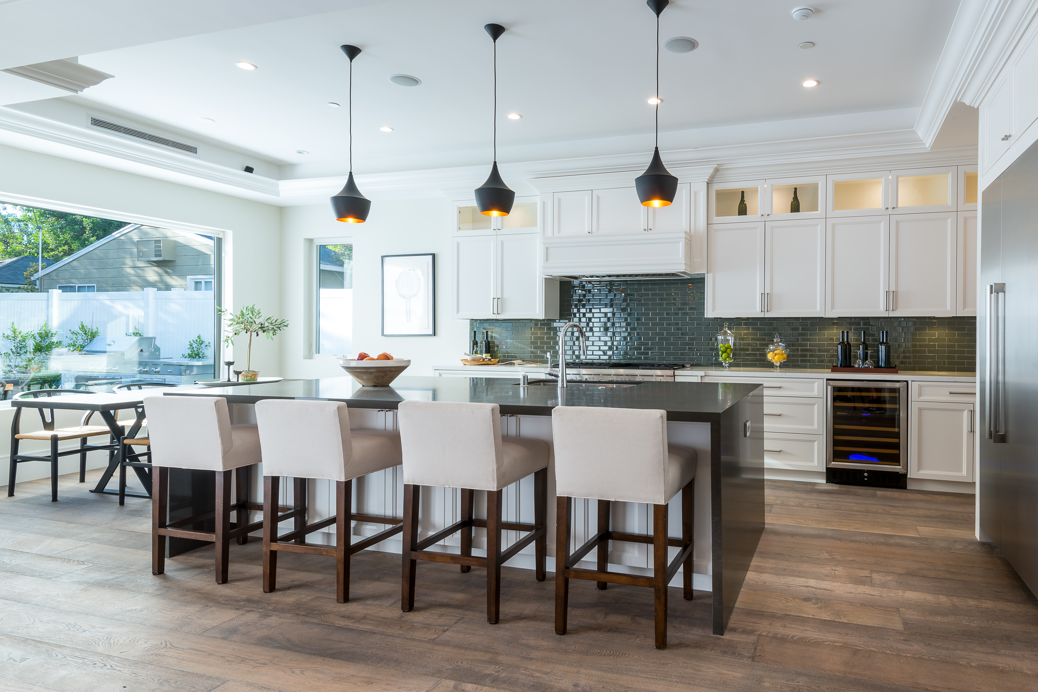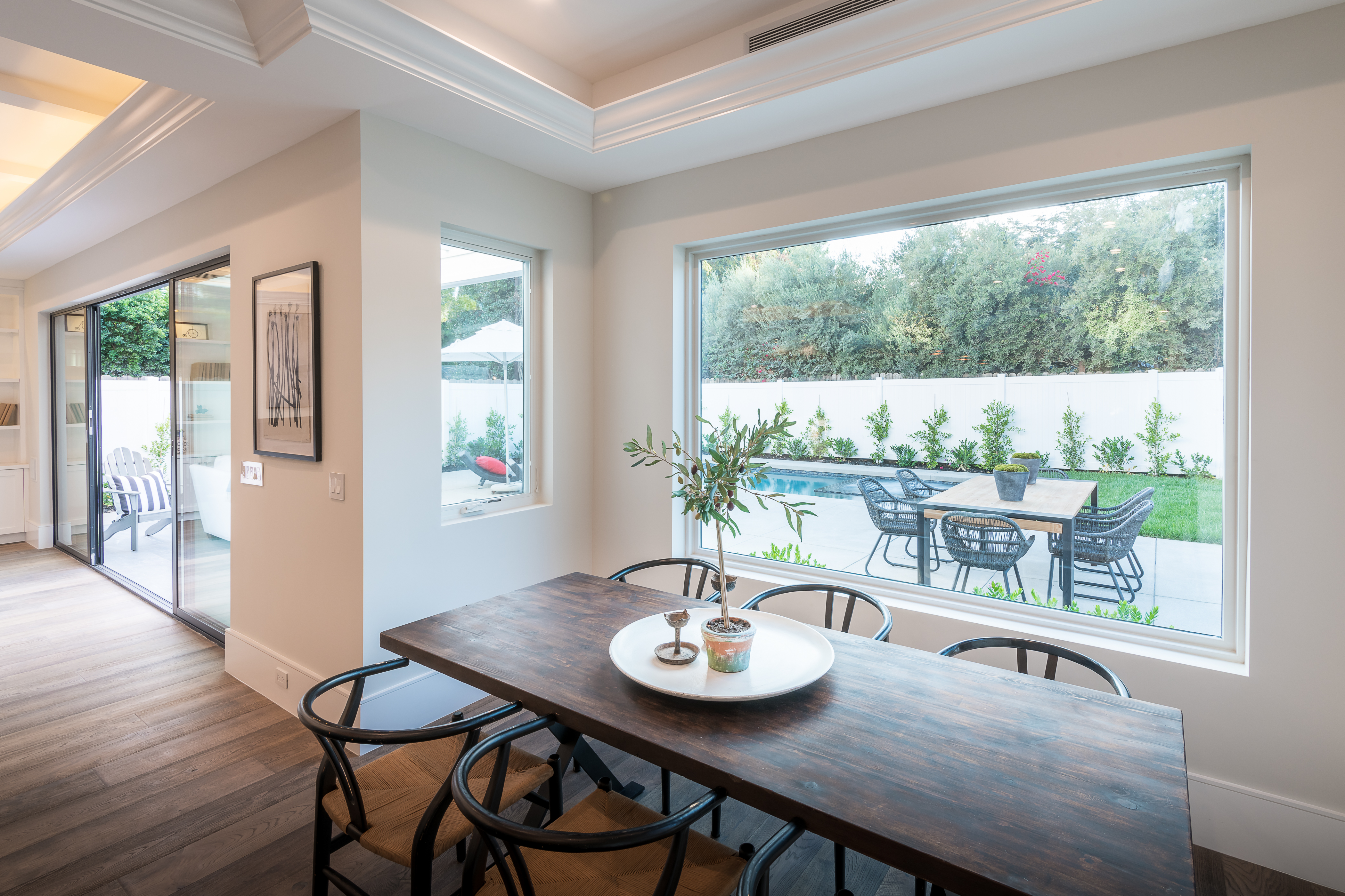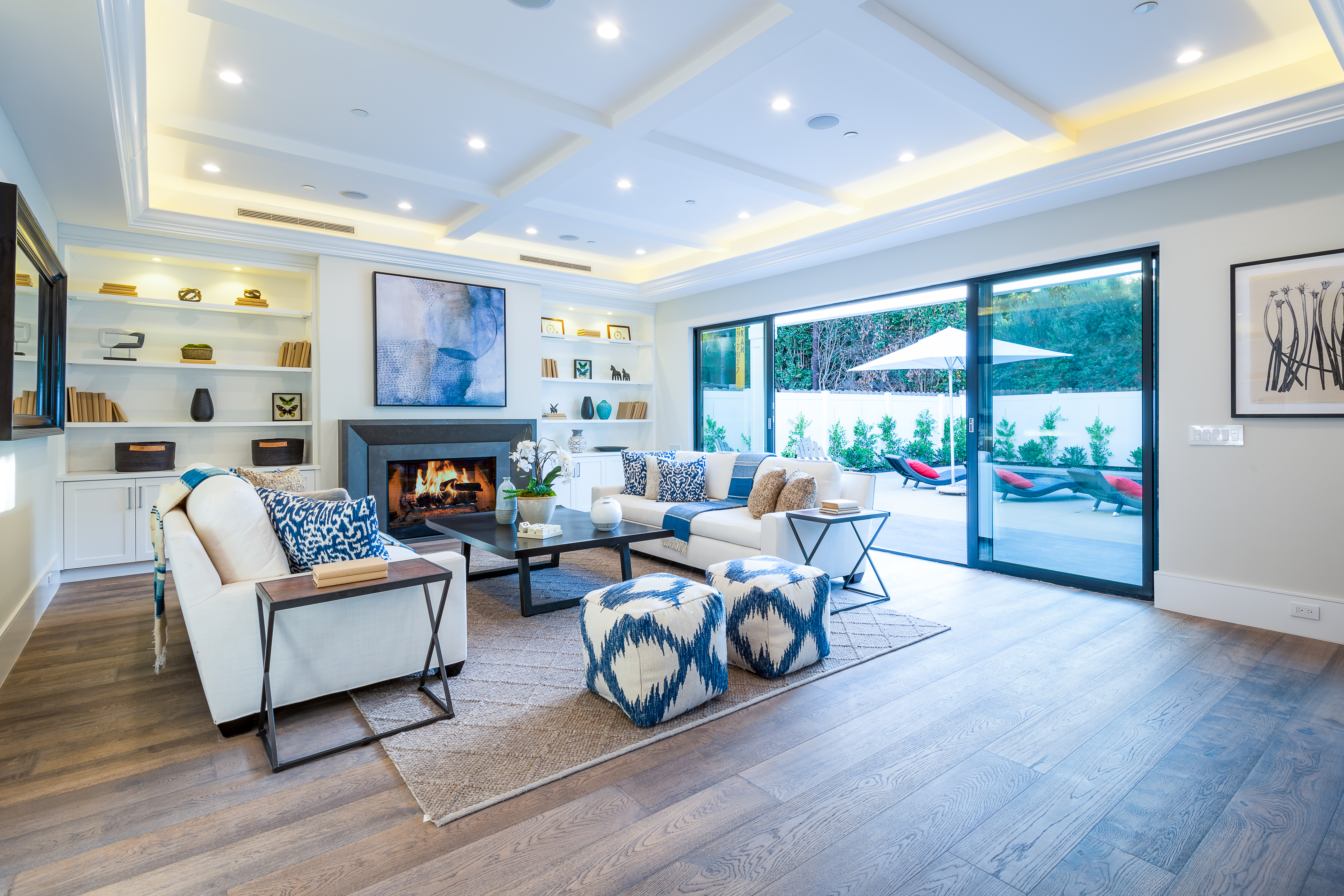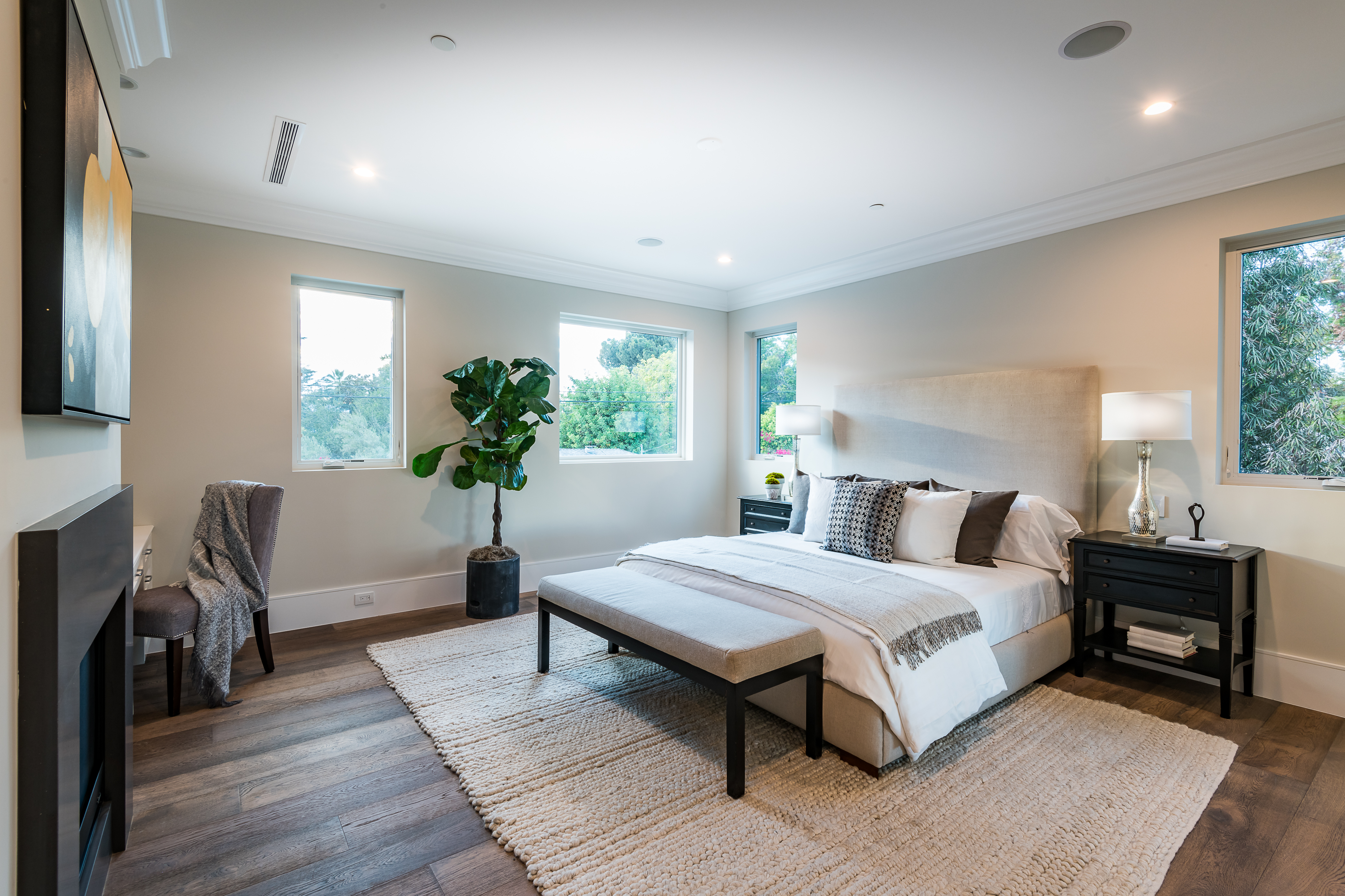Cape Cod inspired New Construction home on tree-lined street in highly desirable neighborhood of Studio City, and within easy walking distance to the famed Tujunga Village with its quaint shops & restaurants. Exterior grounds feature lushly landscaped flower beds, brand new Magnolia tree, large pool and spa, seven Eyemax security cameras, and a custom 9’ wooden garage door with smartphone control. Interior boasts high 10’4” ceilings; high-end Anderson and Fleetwood brand windows that drench the home in natural light and frame pretty views of the greenery outside; 8.5” plank European White Oak engineered hardwood floors; 8’ interior doors; Built-in ceiling speakers that fill the home with your favorite music. The spacious master suite features a large, luxurious, ensuite and walk-in closet. 5 bedrooms and 5.5 bathrooms offer everyone plenty of space for privacy, while the open concept family room connects to the kitchen for family gathering. A Gourmet kitchen features top of the line Thermador stainless steel appliances, 10’ Caesarstone center island, food pantry, secondary prep sink, and wine cooler. Other features include: Lutron Smart light switches, controllable from phone/tablet, integrated alarm system, truly-custom “built-onsite” cabinetry and much more. The garage and outdoor patio are not included in the square footage. Don’t miss this wonderful home.
