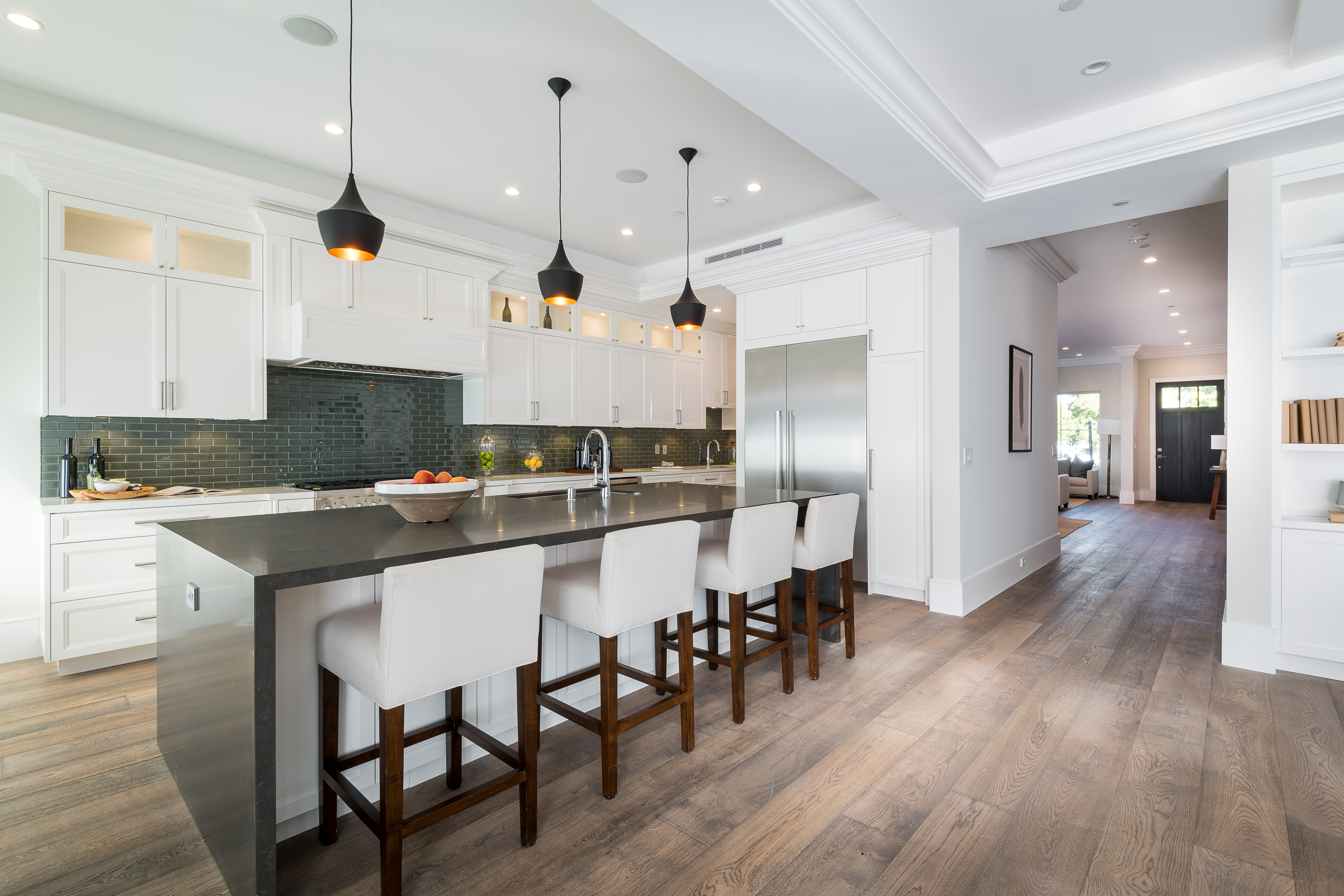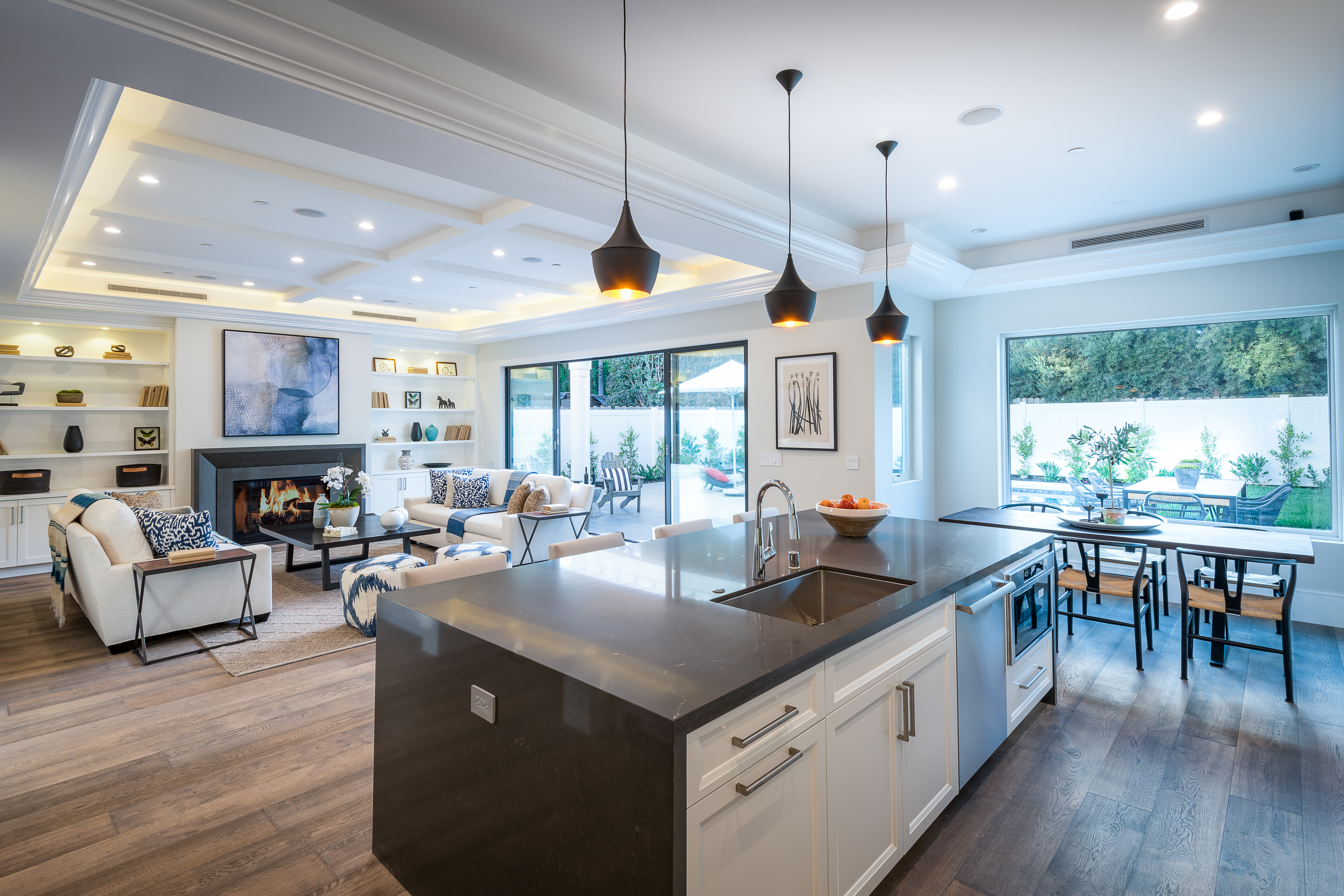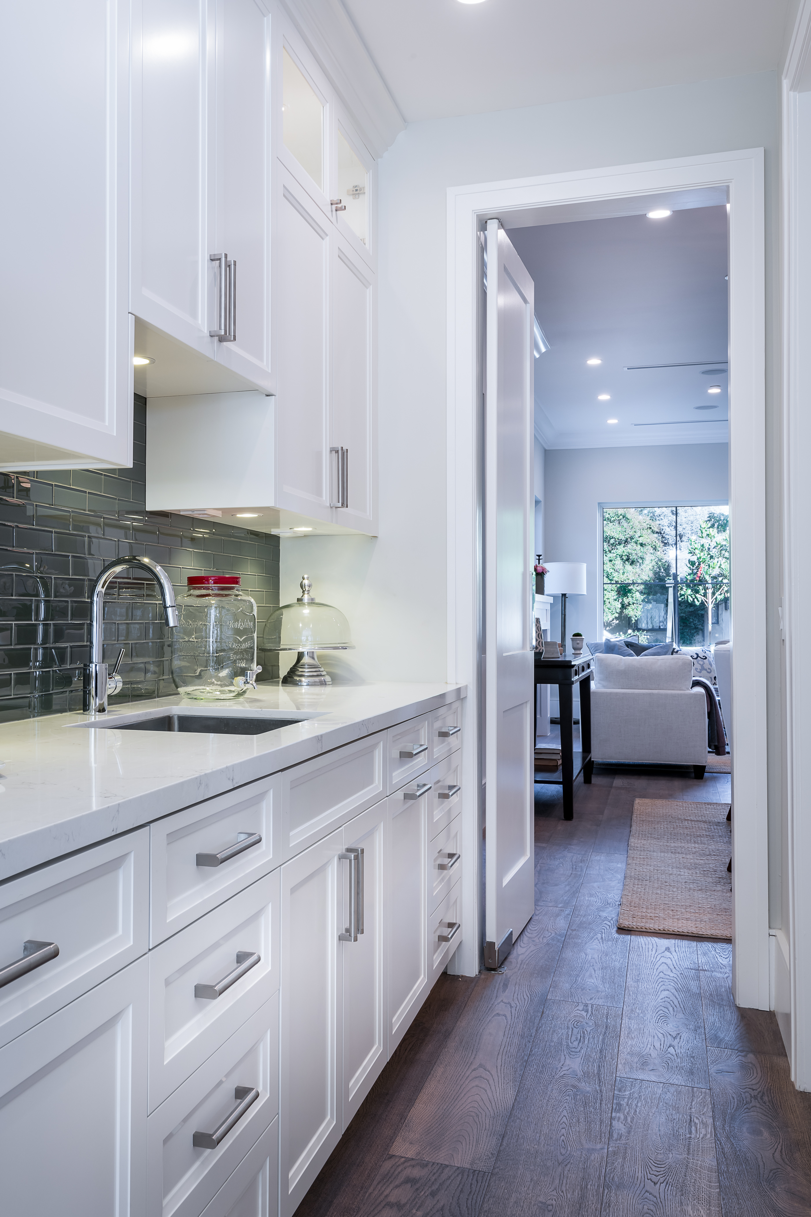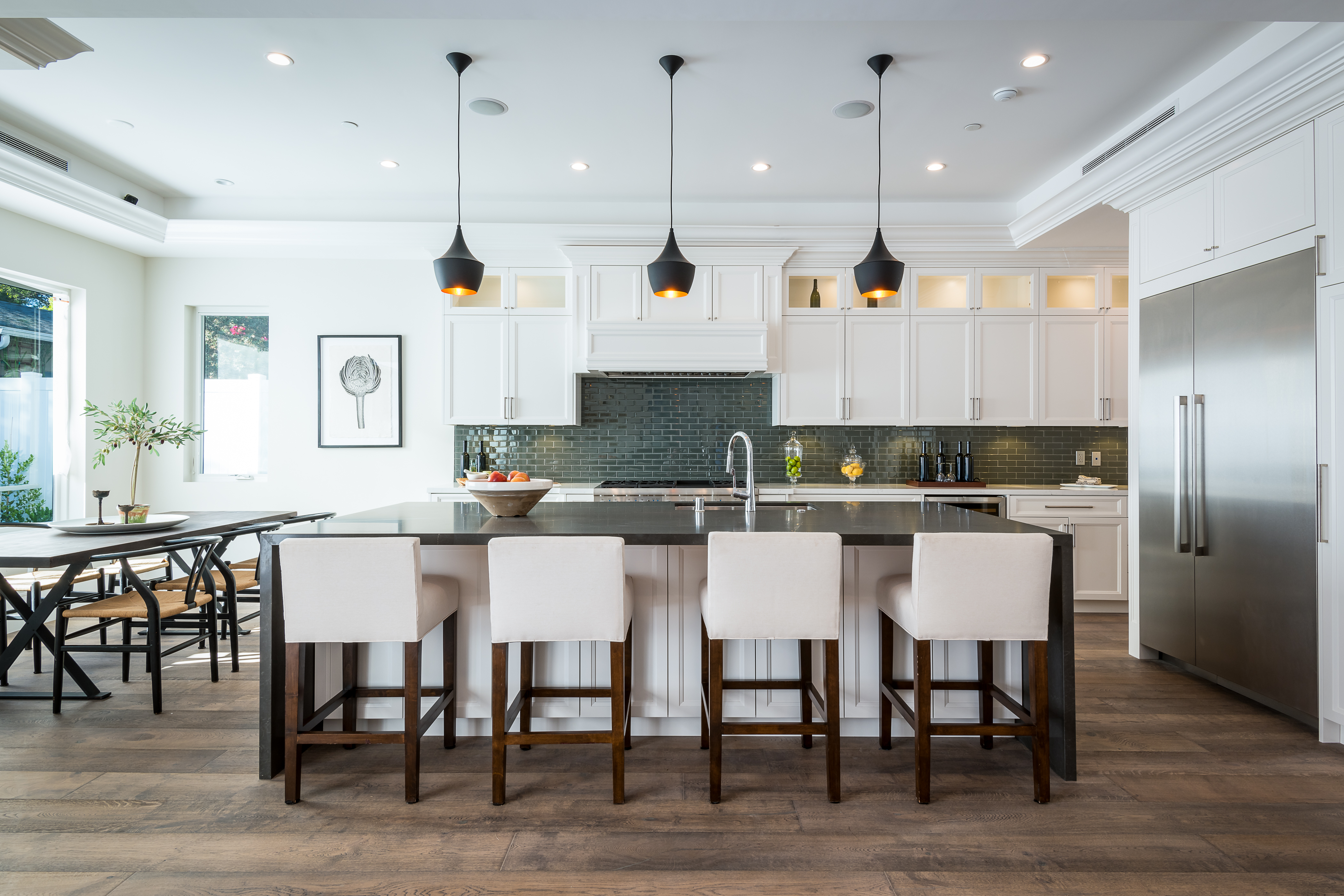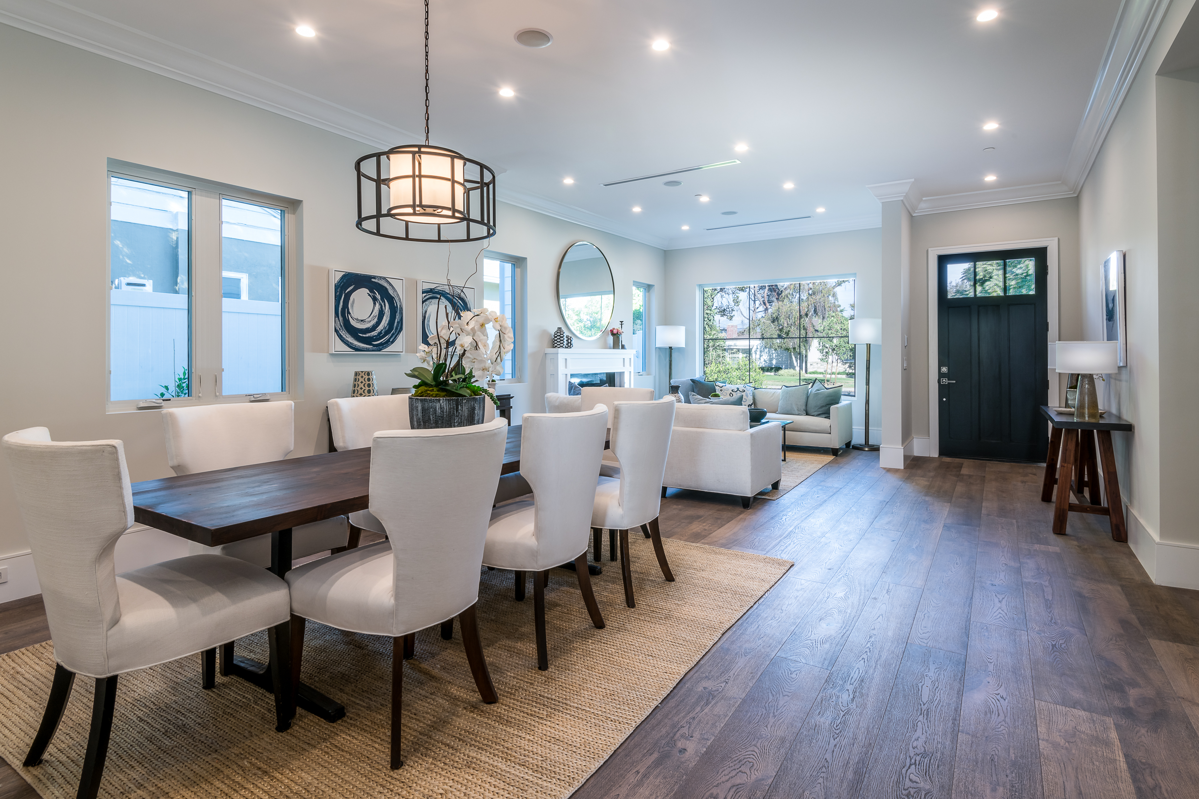 Cape Cod inspired New Construction home on tree-lined street in highly desirable neighborhood of Studio City, and within easy walking distance to the famed Tujunga Village with its quaint shops & restaurants. Exterior grounds feature lushly landscaped flower beds, brand new Magnolia tree, large pool and spa, seven Eyemax security cameras, and a custom 9’ wooden garage door with smartphone control. Interior boasts high 10’4” ceilings; high-end Anderson and Fleetwood brand windows that drench the home in natural light and frame pretty views of the greenery outside; 8.5” plank European White Oak engineered hardwood floors; 8’ interior doors; Built-in ceiling speakers that fill the home with your favorite music. The spacious master suite features a large, luxurious, ensuite and walk-in closet. 5 bedrooms and 5.5 bathrooms offer everyone plenty of space for privacy, while the open concept family room connects to the kitchen for family gathering. A Gourmet kitchen features top of the line Thermador stainless steel appliances, 10’ Caesarstone center island, food pantry, secondary prep sink, and wine cooler. Other features include: Lutron Smart light switches, controllable from phone/tablet, integrated alarm system, truly-custom “built-onsite” cabinetry and much more. The garage and outdoor patio are not included in the square footage. Don’t miss this wonderful home.