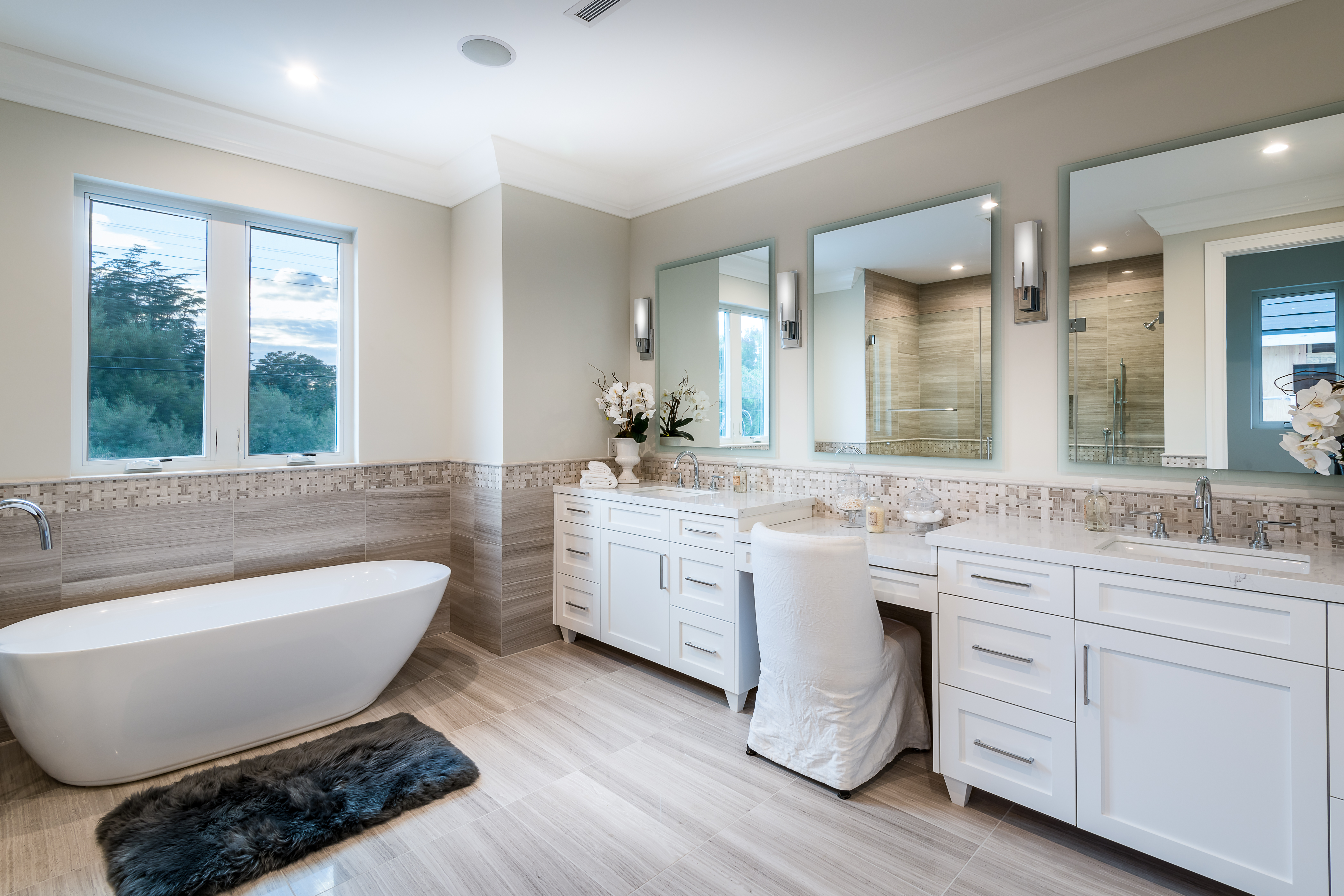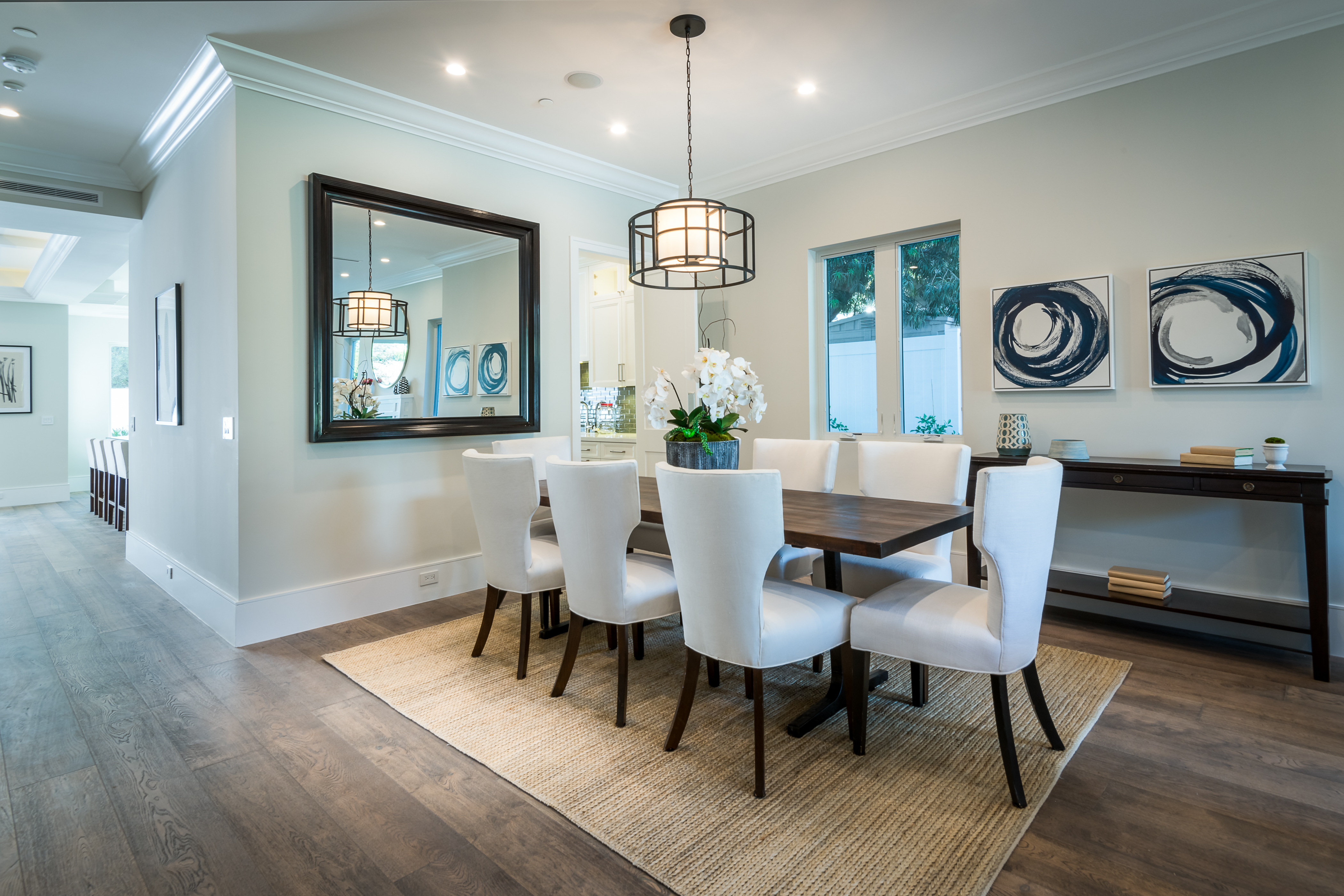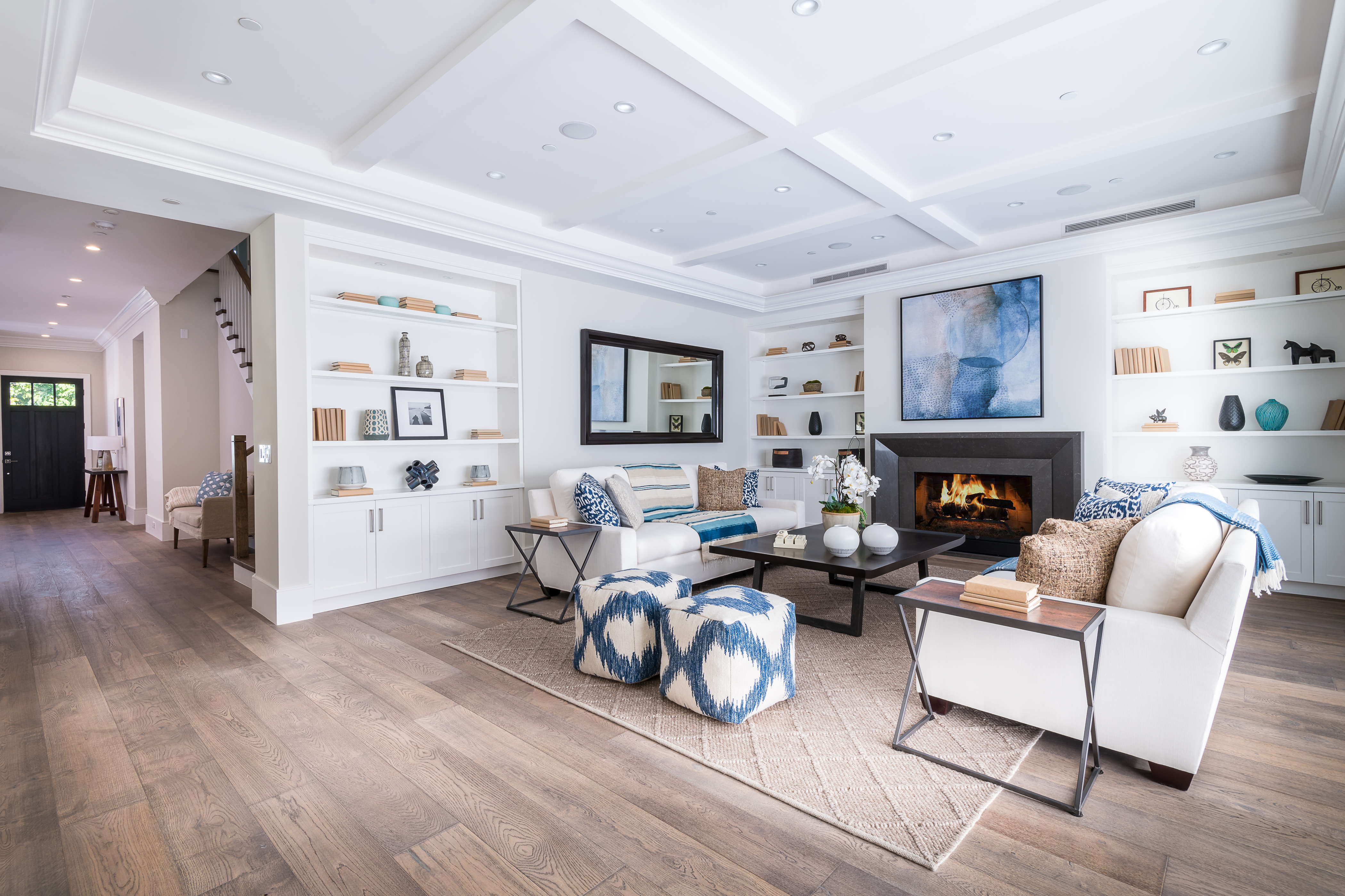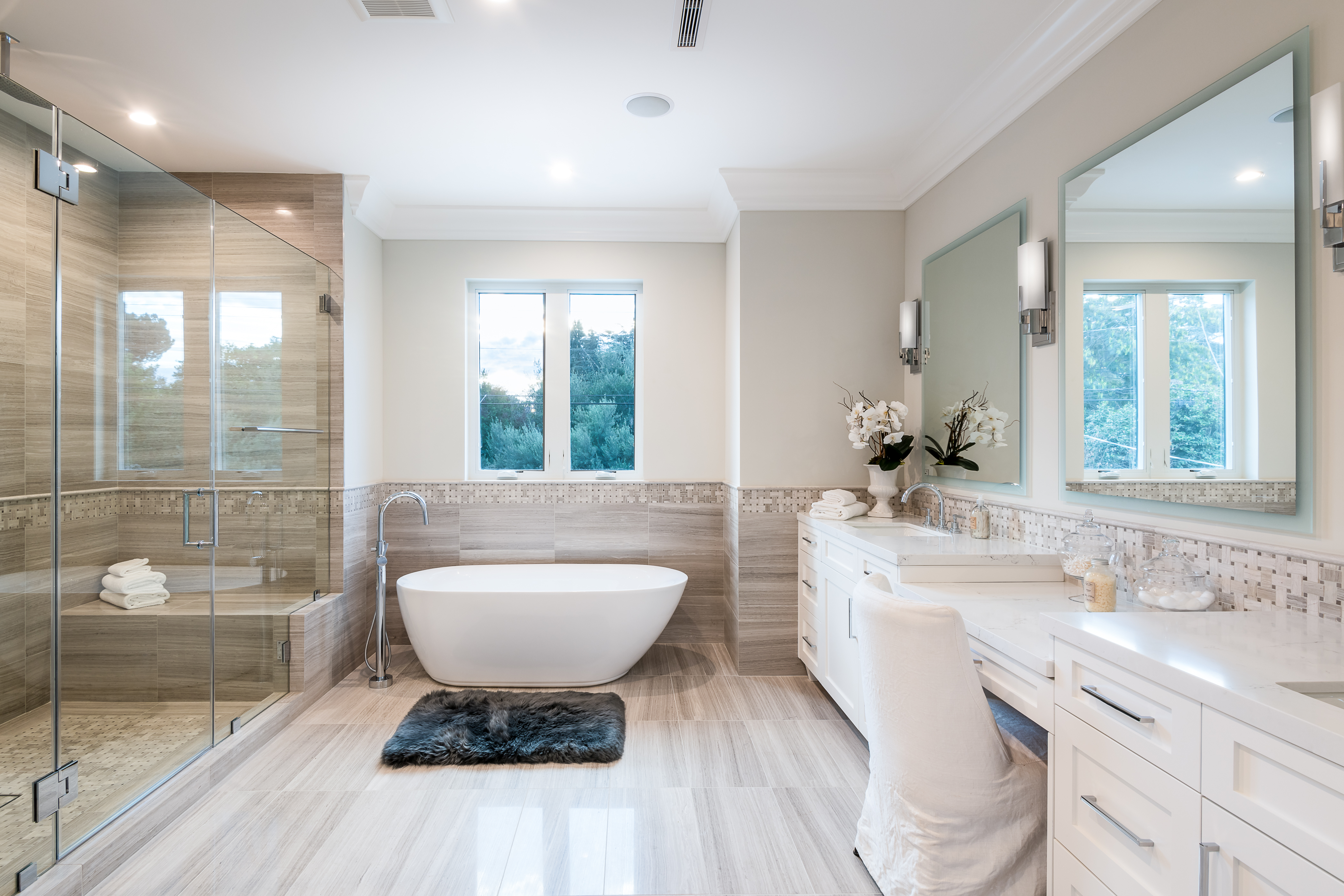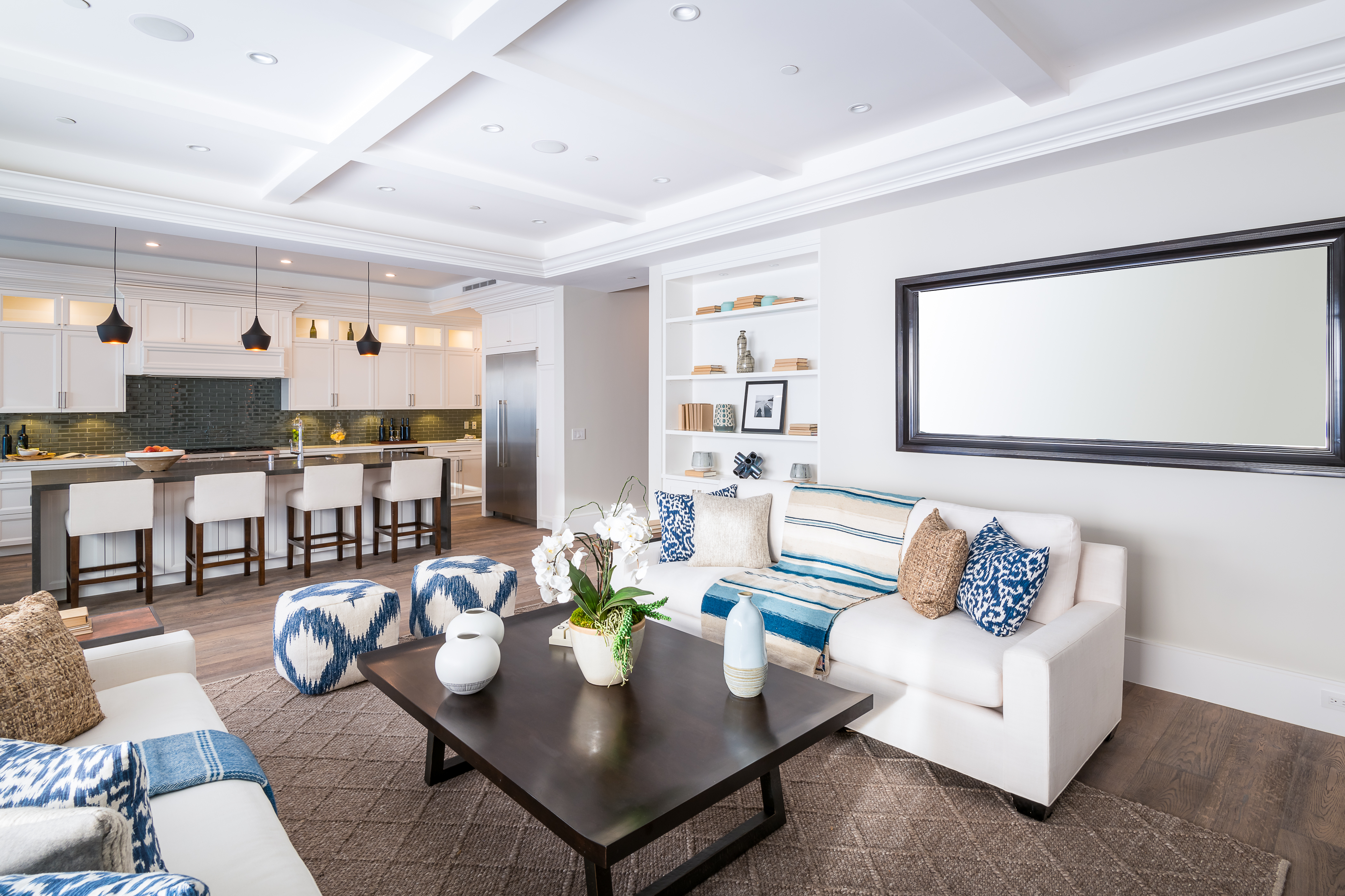 Cape Cod inspired New Construction home on tree-lined street in highly desirable neighborhood of Studio City, and within easy walking distance to the famed Tujunga Village with its quaint shops & restaurants. Exterior grounds feature lushly landscaped flower beds, brand new Magnolia tree, large pool and spa, seven Eyemax security cameras, and a custom 9’ wooden garage door with smartphone control. Interior boasts high 10’4” ceilings; high-end Anderson and Fleetwood brand windows that drench the home in natural light and frame pretty views of the greenery outside; 8.5” plank European White Oak engineered hardwood floors; 8’ interior doors; Built-in ceiling speakers that fill the home with your favorite music. The spacious master suite features a large, luxurious, ensuite and walk-in closet. 5 bedrooms and 5.5 bathrooms offer everyone plenty of space for privacy, while the open concept family room connects to the kitchen for family gathering. A Gourmet kitchen features top of the line Thermador stainless steel appliances, 10’ Caesarstone center island, food pantry, secondary prep sink, and wine cooler. Other features include: Lutron Smart light switches, controllable from phone/tablet, integrated alarm system, truly-custom “built-onsite” cabinetry and much more. The garage and outdoor patio are not included in the square footage. Don’t miss this wonderful home.
