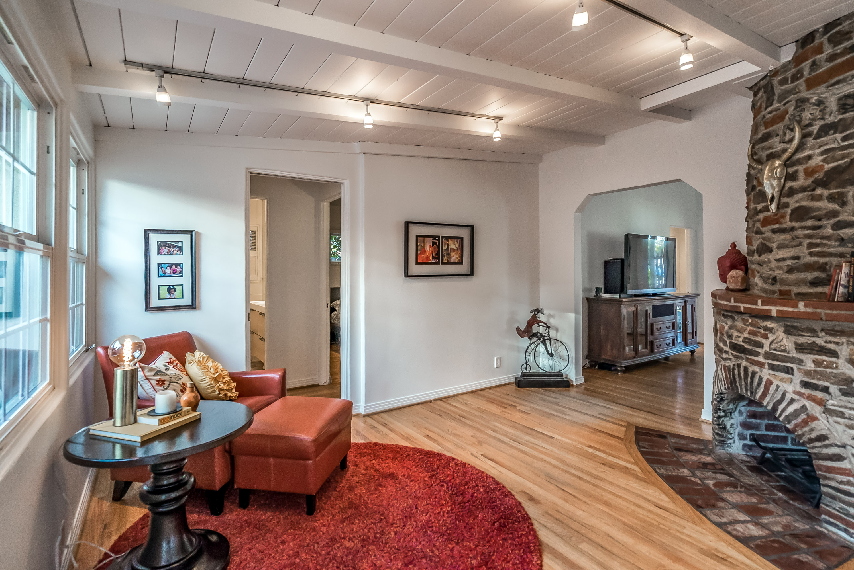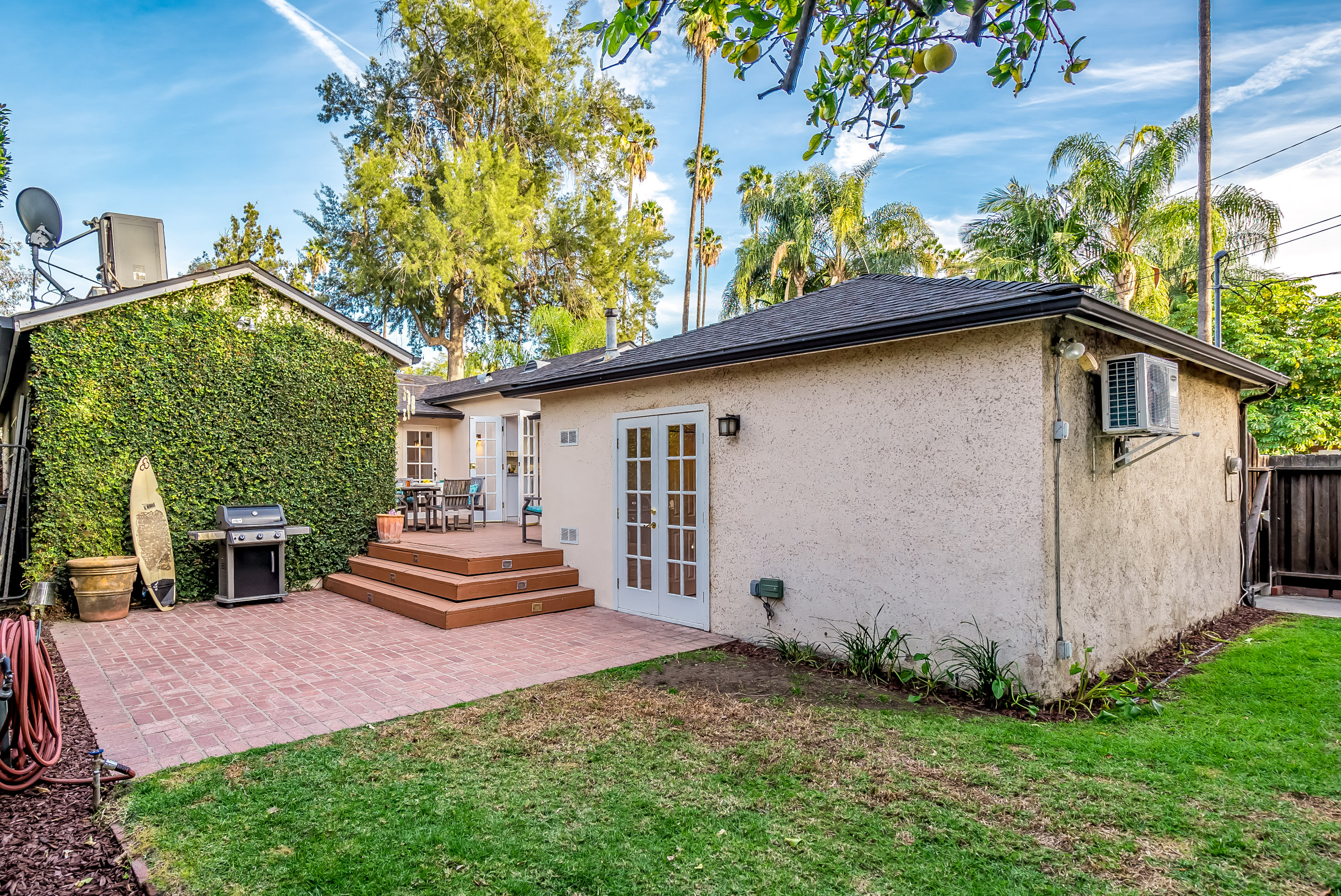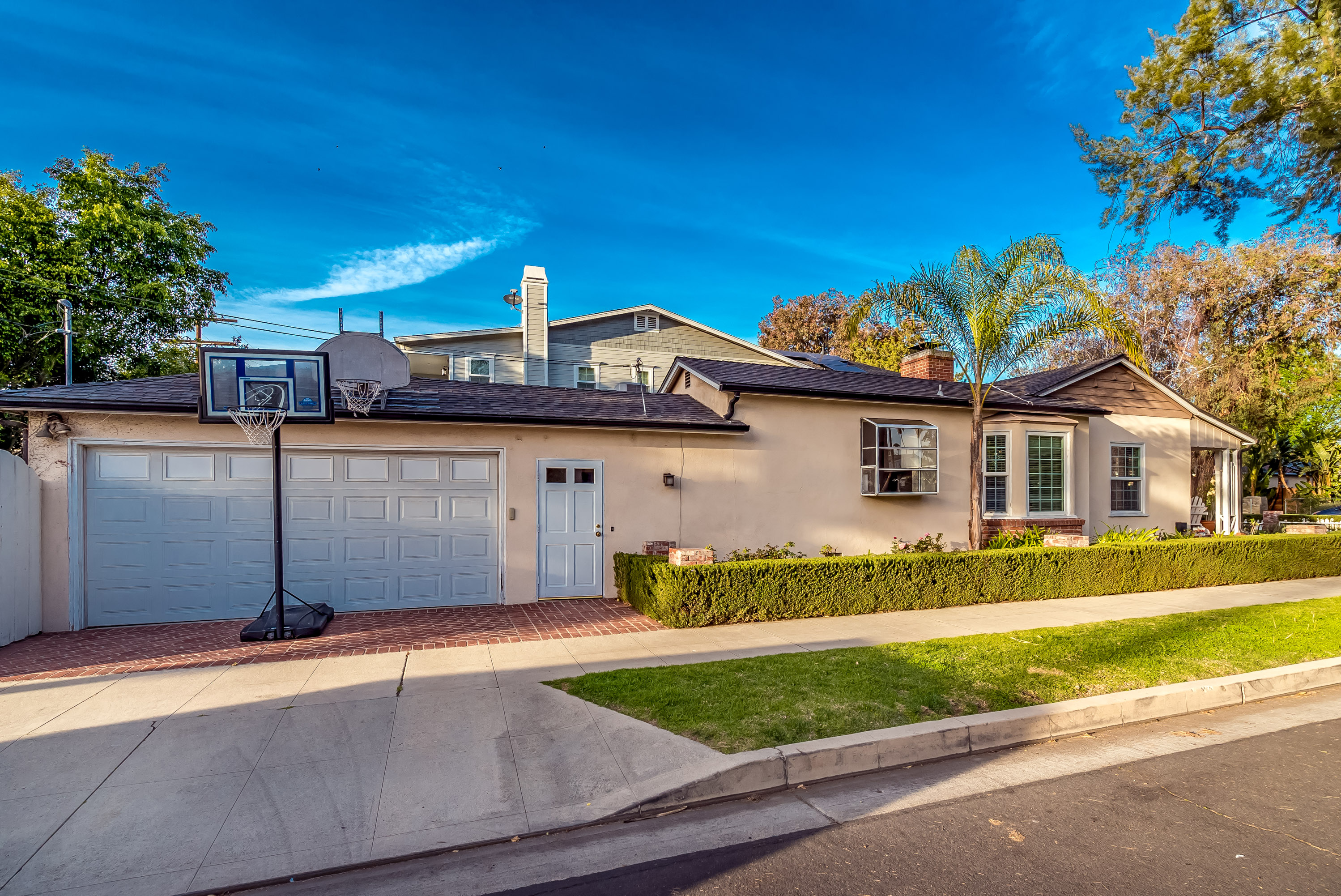 Down a palm tree-lined street in prime Sherman Oaks, lies this charming single-story traditional home! Lush landscaping and a brick walkway greet you as make your way to the covered front patio. Inside you will find 3 spacious bedrooms, 2 bathrooms, arched doorways, hardwood floors, two fireplaces and impeccable character throughout! Flooded with natural light, the floor plan expertly flows from living room to dining room, to kitchen. The den offers a cozy brick fireplace and beamed ceilings, with direct access to the large deck, perfect for outdoor entertaining. As a bonus, the attached garage has been converted into an additional living space, great for a home office, gym, or studio. Just moments from the trendy shops and restaurants on Ventura Blvd. – this home won't last long!