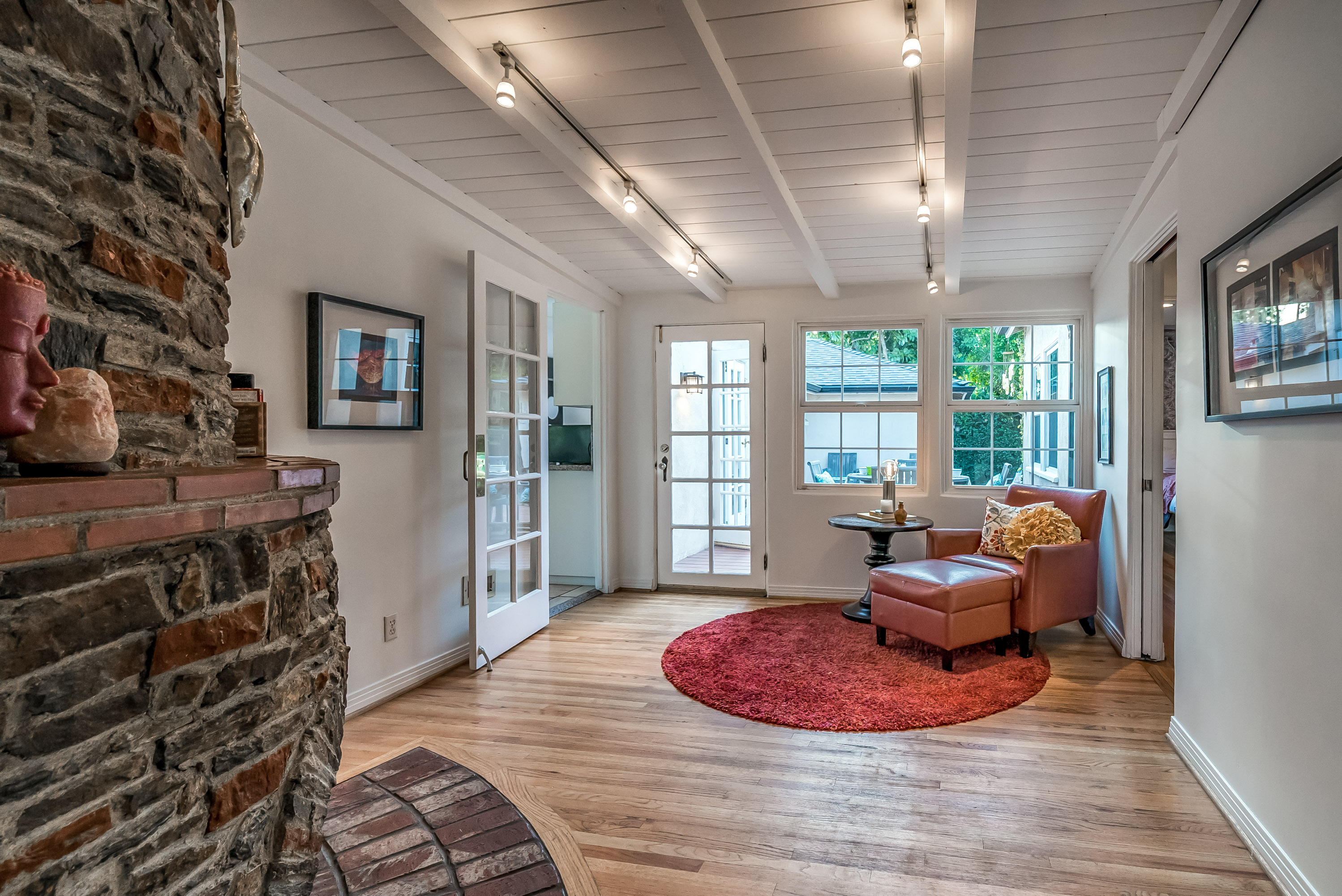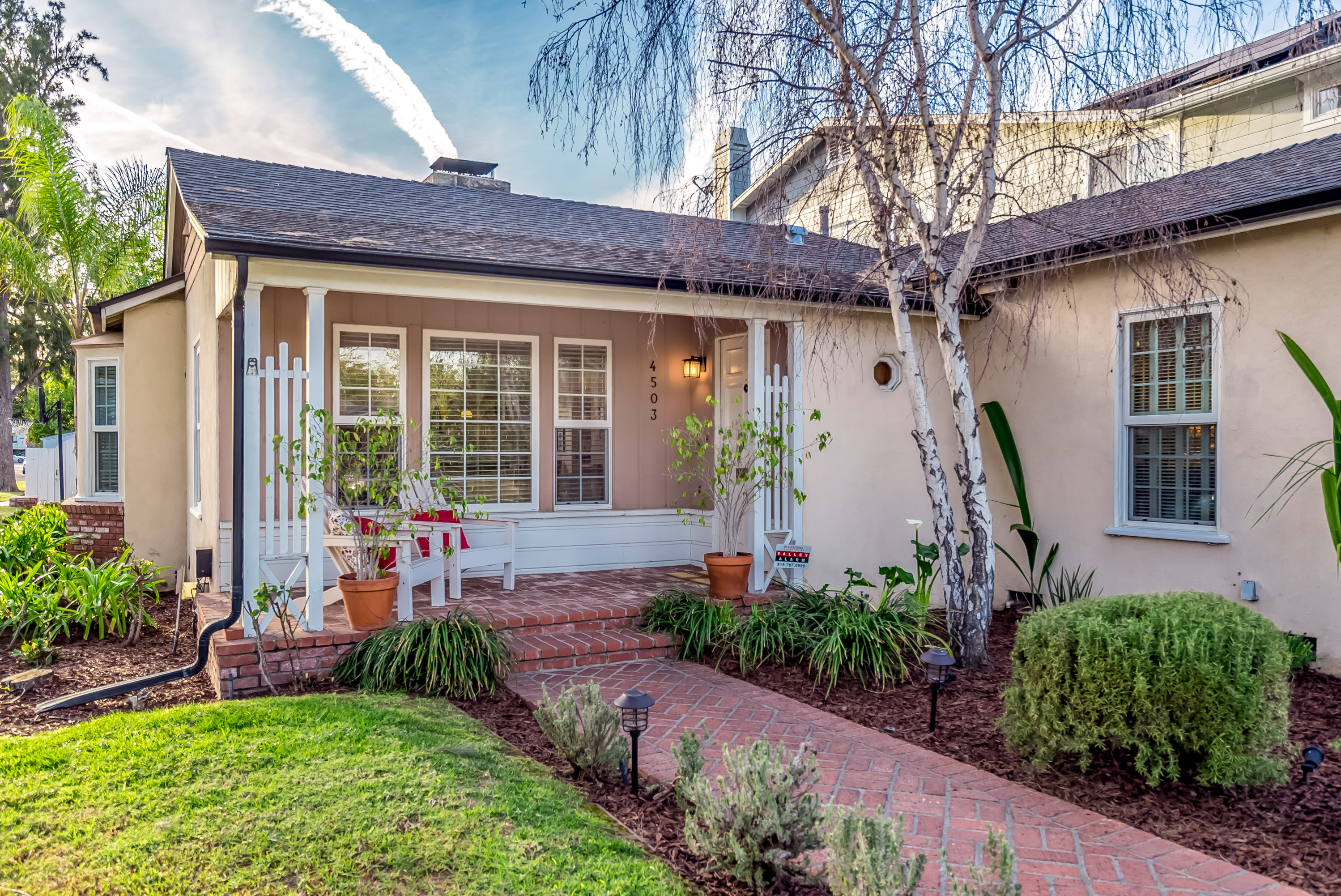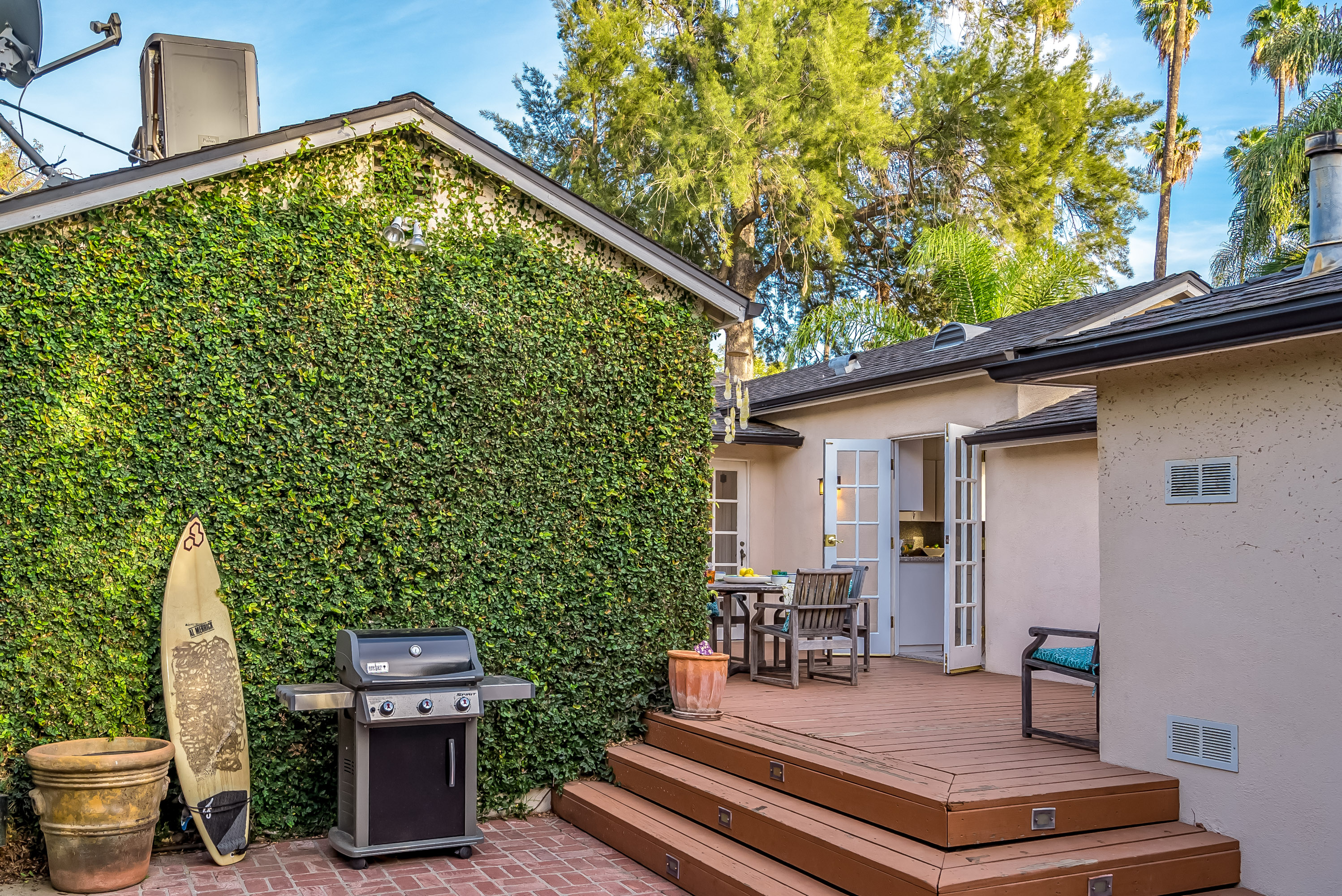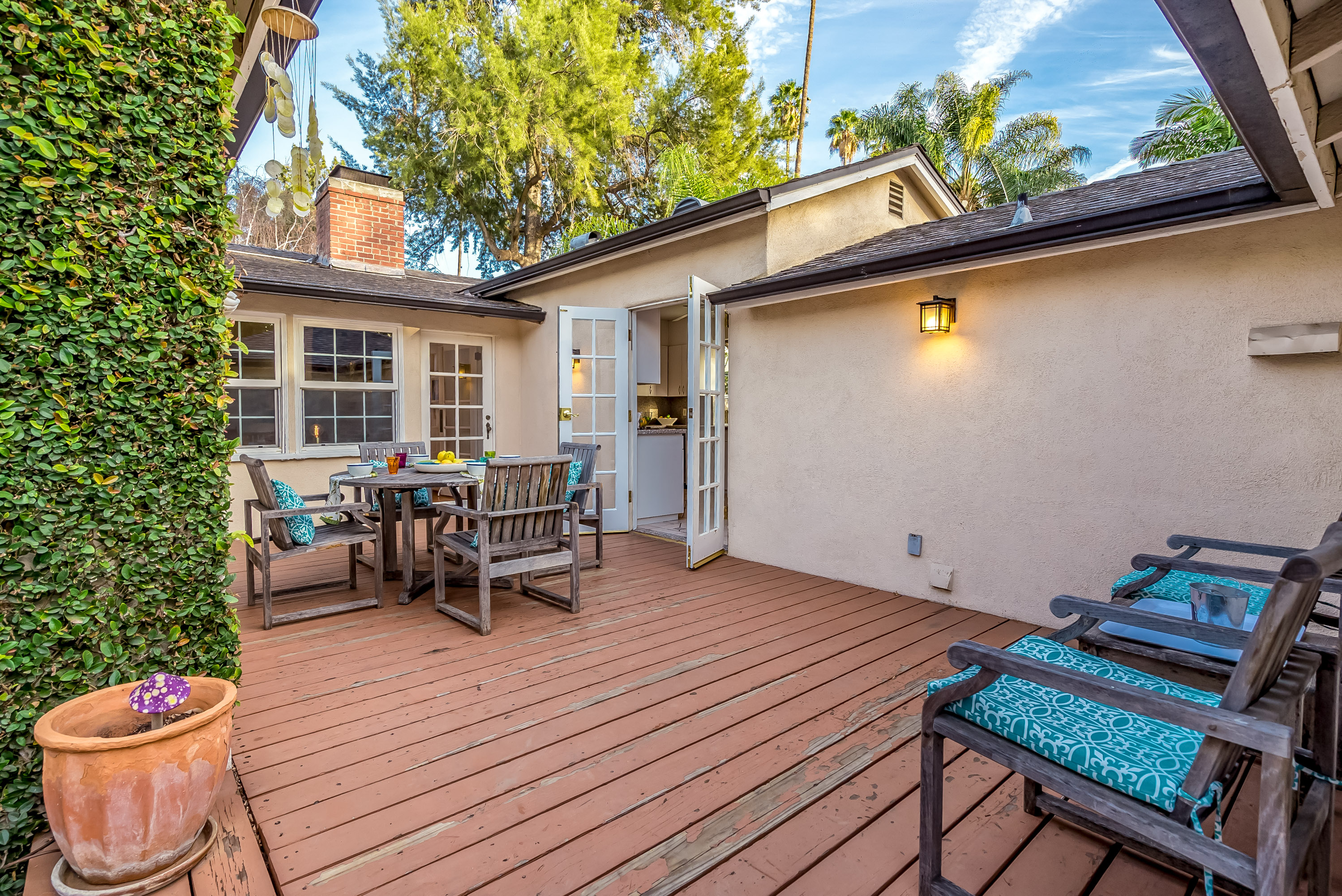 Down a palm tree-lined street in prime Sherman Oaks, lies this charming single-story traditional home! Lush landscaping and a brick walkway greet you as make your way to the covered front patio. Inside you will find 3 spacious bedrooms, 2 bathrooms, arched doorways, hardwood floors, two fireplaces and impeccable character throughout! Flooded with natural light, the floor plan expertly flows from living room to dining room, to kitchen. The den offers a cozy brick fireplace and beamed ceilings, with direct access to the large deck, perfect for outdoor entertaining. As a bonus, the attached garage has been converted into an additional living space, great for a home office, gym, or studio. Just moments from the trendy shops and restaurants on Ventura Blvd. – this home won't last long!