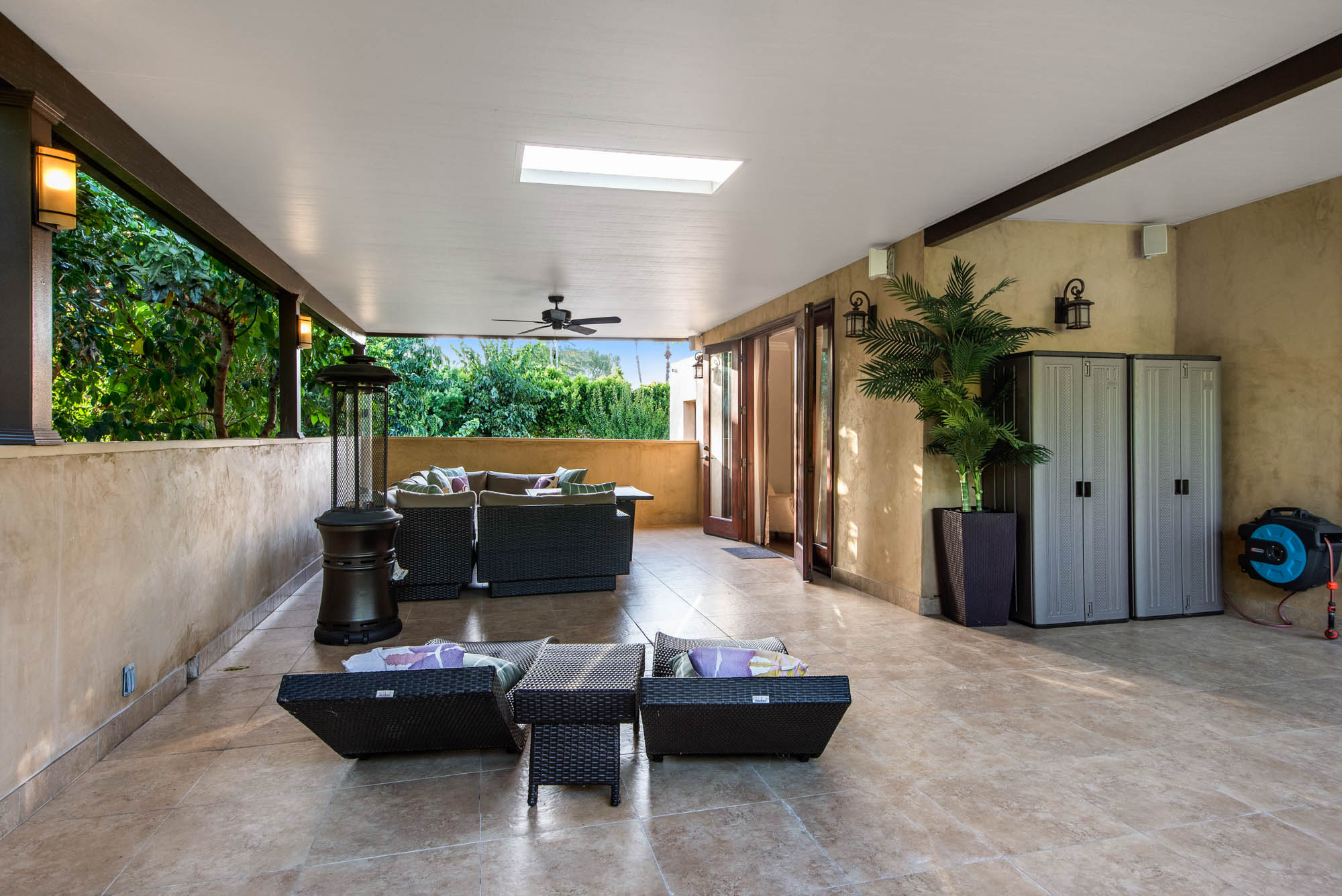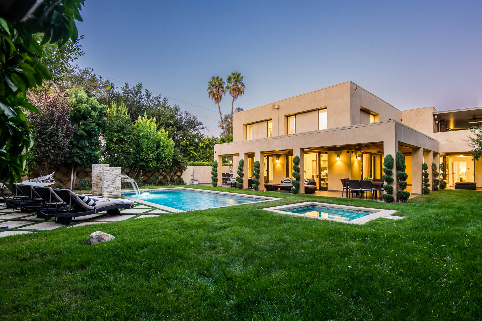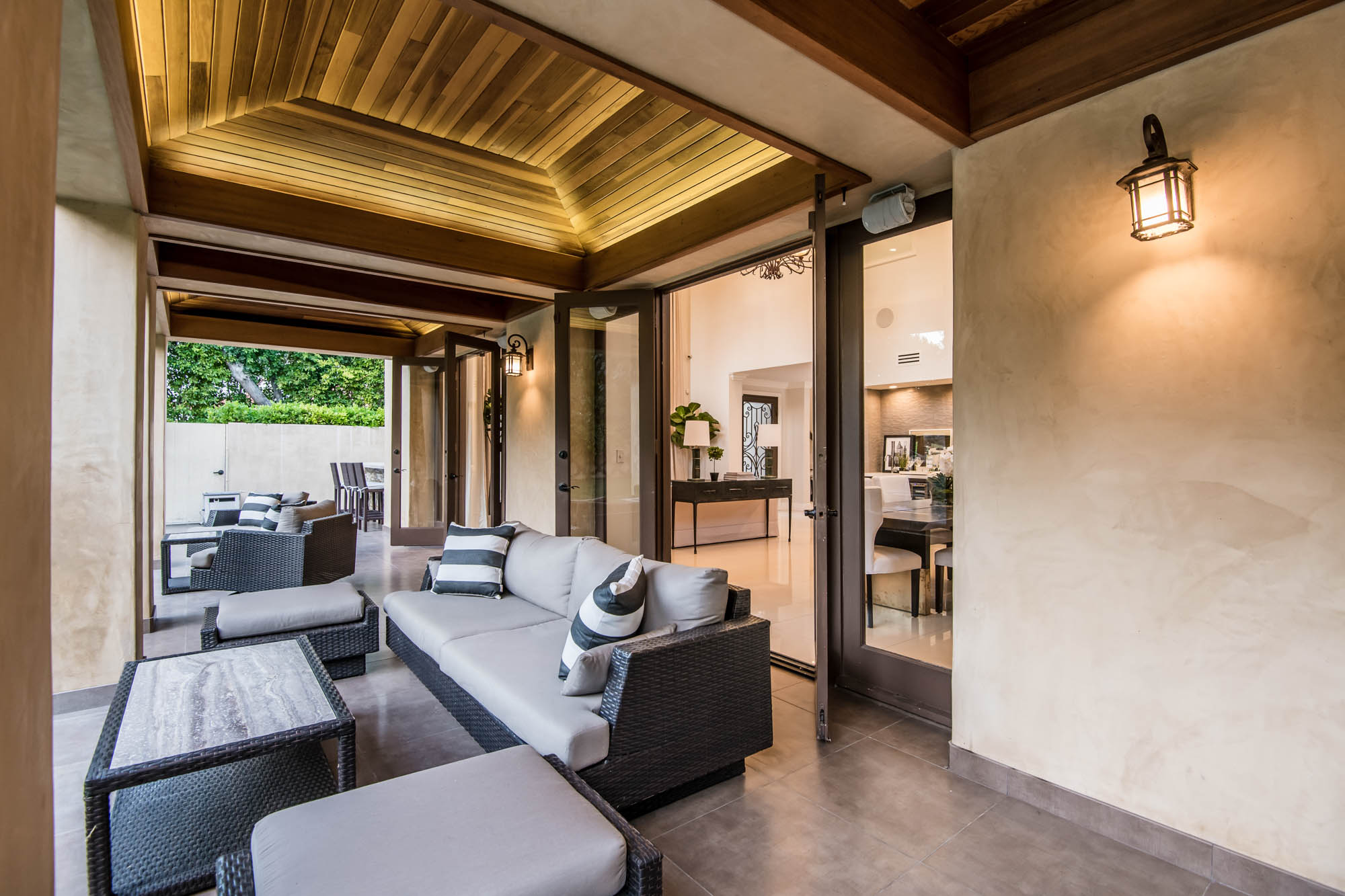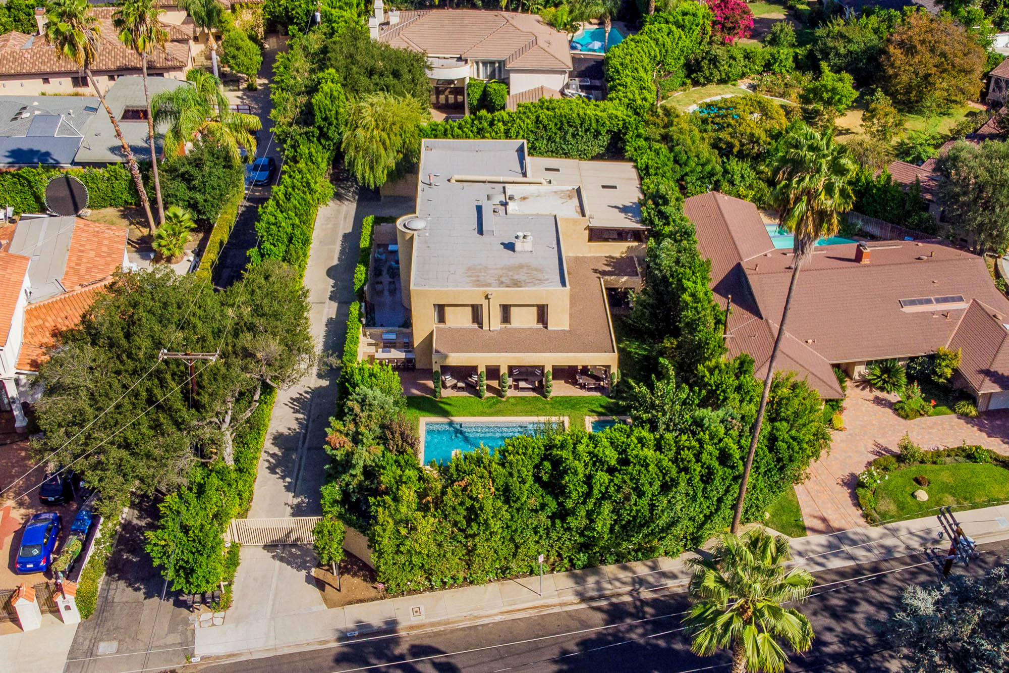 Dramatic Willis Fagan A.I.A. architectural set amongst lush, private grounds in prime Encino. Set behind a secure gated entrance this home features a 2 story living/dining room w/ wet bar & fireplace, chef's dream kitchen, equipped with Viking appliances, large island w/ prep sink, & ample cabinetry. Adjacent to the kitchen is a family room w/ fireplace, ideal for movie nights. The main level continues w/ 4 bd, 2.5 ba, & laundry room. Upstairs, the master suite has a formal sitting area w/ fireplace & built-in entertainment center, a generously sized bedroom, spa style bathroom w/ Mr. Steam sauna shower, jacuzzi tub & 2 massive walk-in closets. The suite opens to a huge private covered patio. The 2nd upstairs bedroom includes built in storage, & ensuite bath. Outside, the backyard has plenty of covered patio space w/ hand crafted wood ceilings. Pool w/ fountains & separate spa are framed by grassy yards & verdant landscape including a variety of fruit trees. Lanai Rd School district.