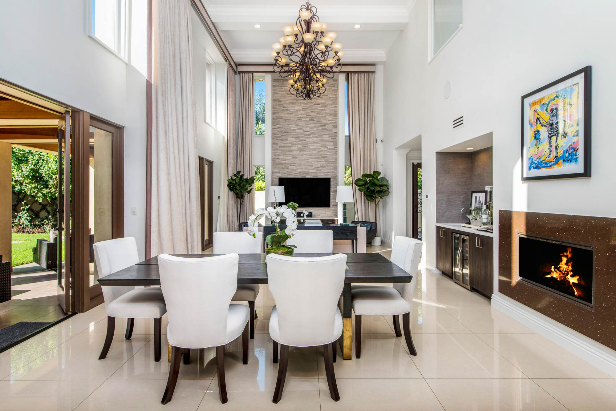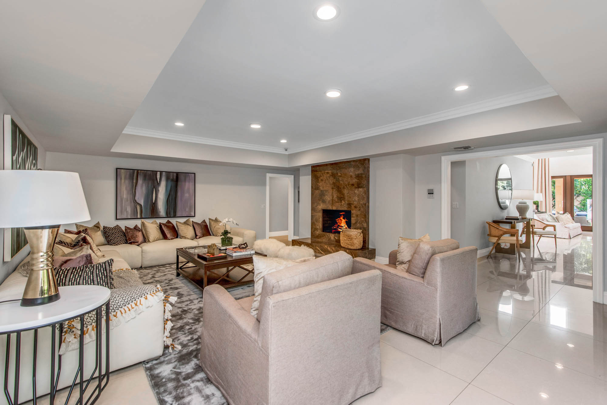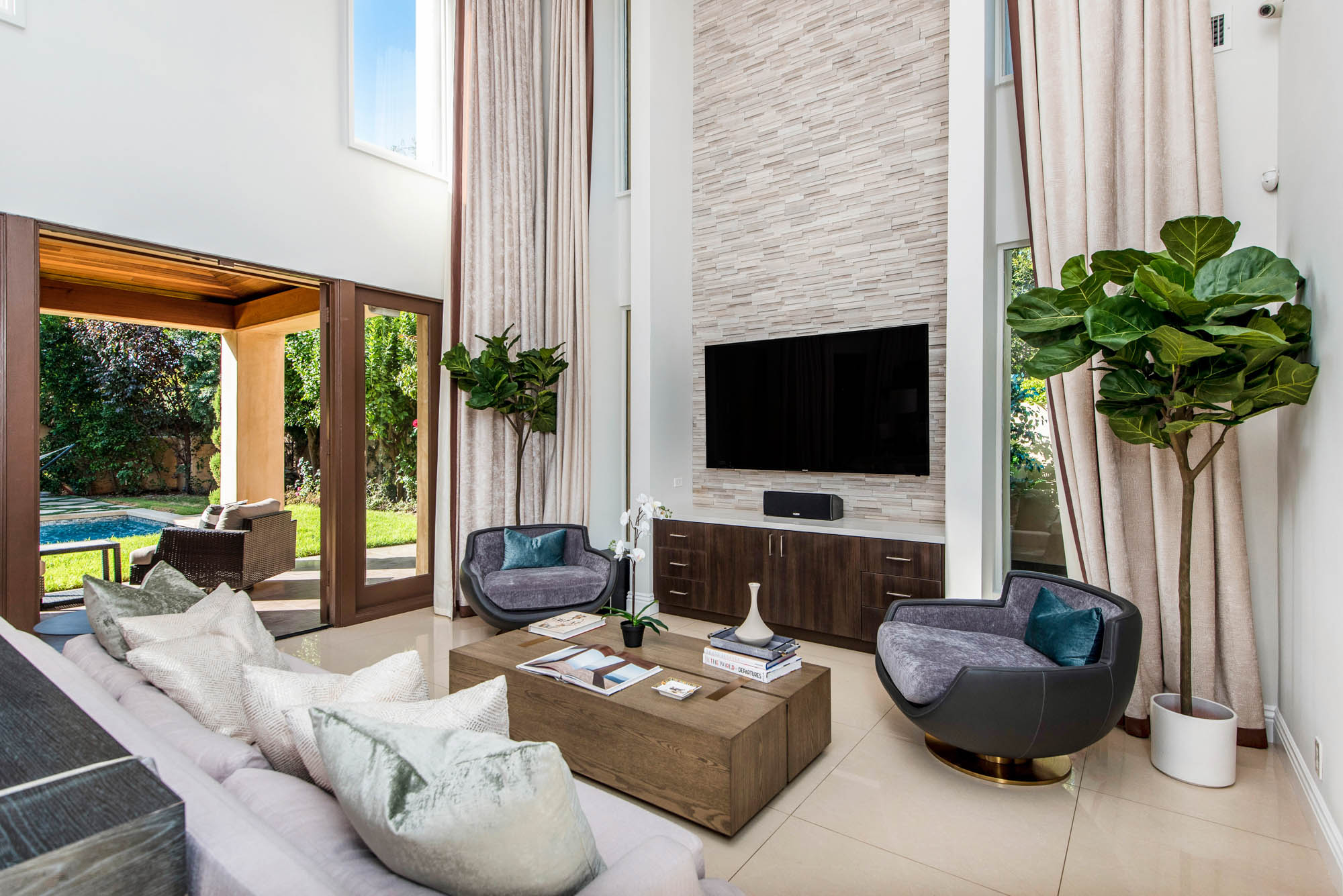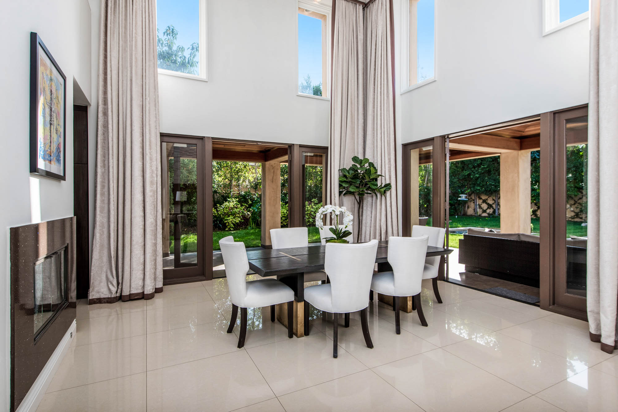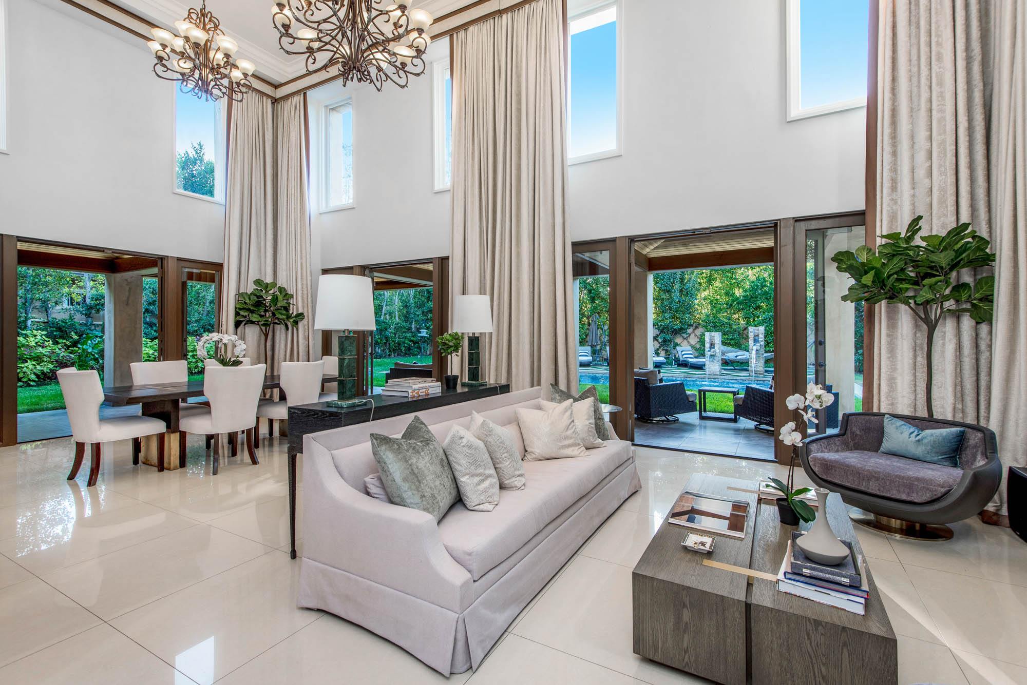 Dramatic Willis Fagan A.I.A. architectural set amongst lush, private grounds in prime Encino. Set behind a secure gated entrance this home features a 2 story living/dining room w/ wet bar & fireplace, chef's dream kitchen, equipped with Viking appliances, large island w/ prep sink, & ample cabinetry. Adjacent to the kitchen is a family room w/ fireplace, ideal for movie nights. The main level continues w/ 4 bd, 2.5 ba, & laundry room. Upstairs, the master suite has a formal sitting area w/ fireplace & built-in entertainment center, a generously sized bedroom, spa style bathroom w/ Mr. Steam sauna shower, jacuzzi tub & 2 massive walk-in closets. The suite opens to a huge private covered patio. The 2nd upstairs bedroom includes built in storage, & ensuite bath. Outside, the backyard has plenty of covered patio space w/ hand crafted wood ceilings. Pool w/ fountains & separate spa are framed by grassy yards & verdant landscape including a variety of fruit trees. Lanai Rd School district.