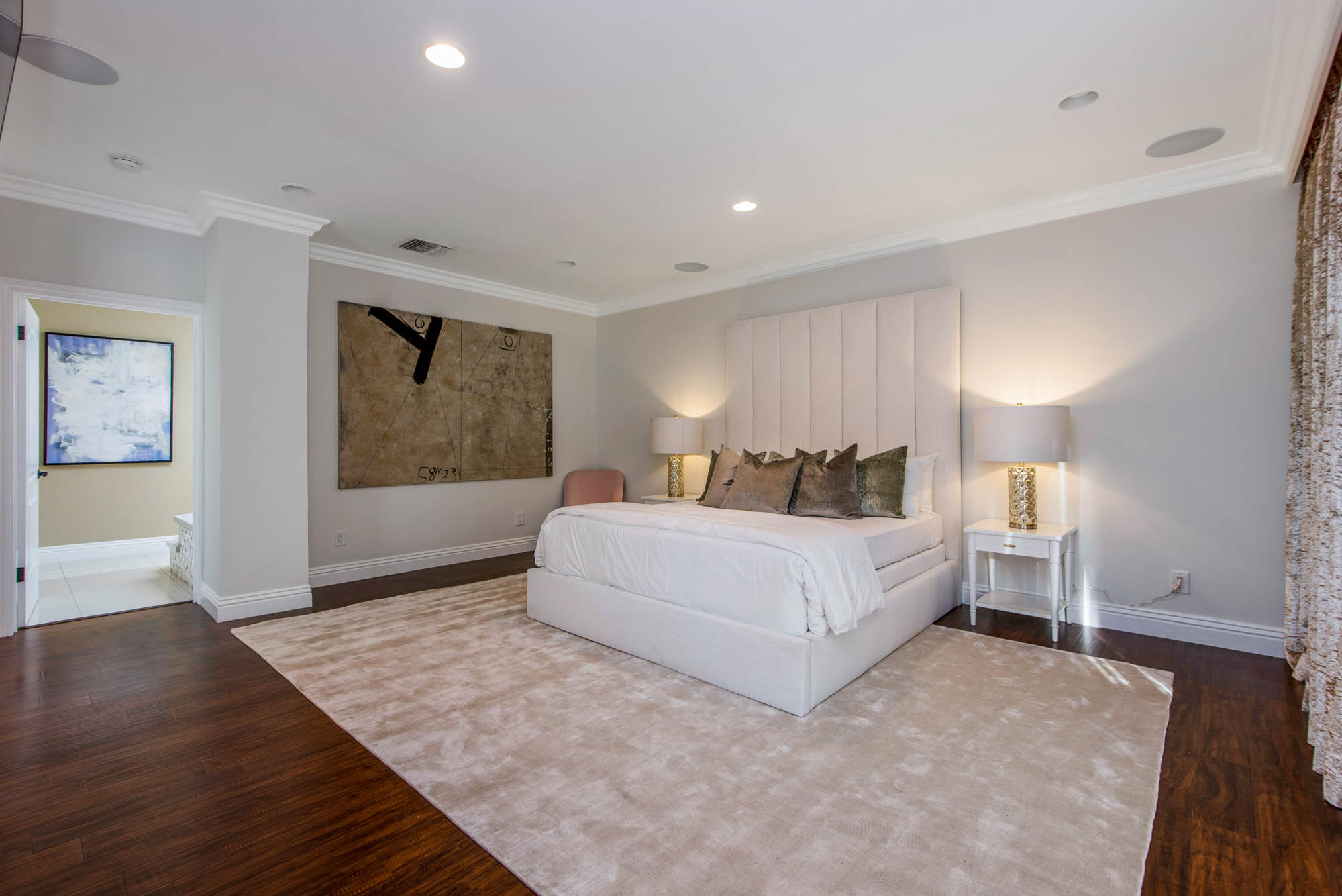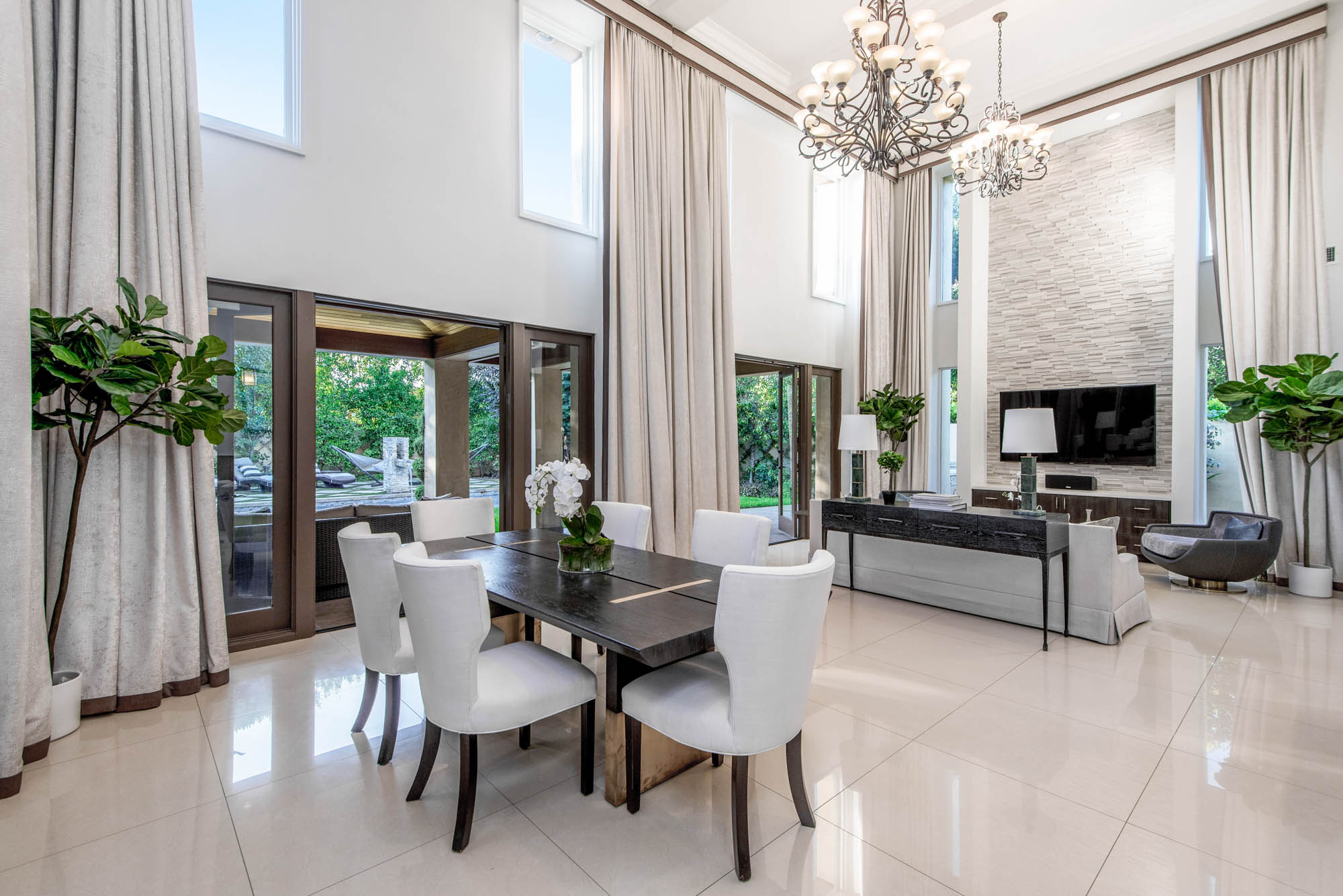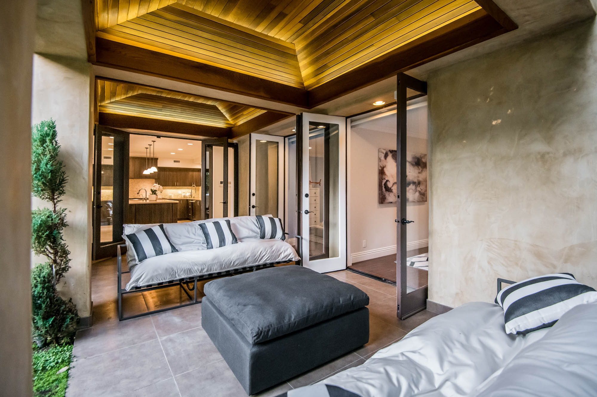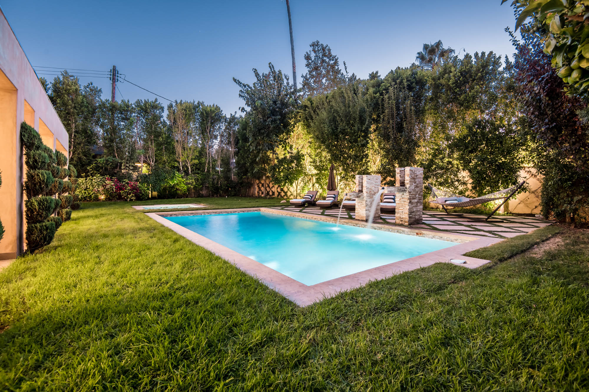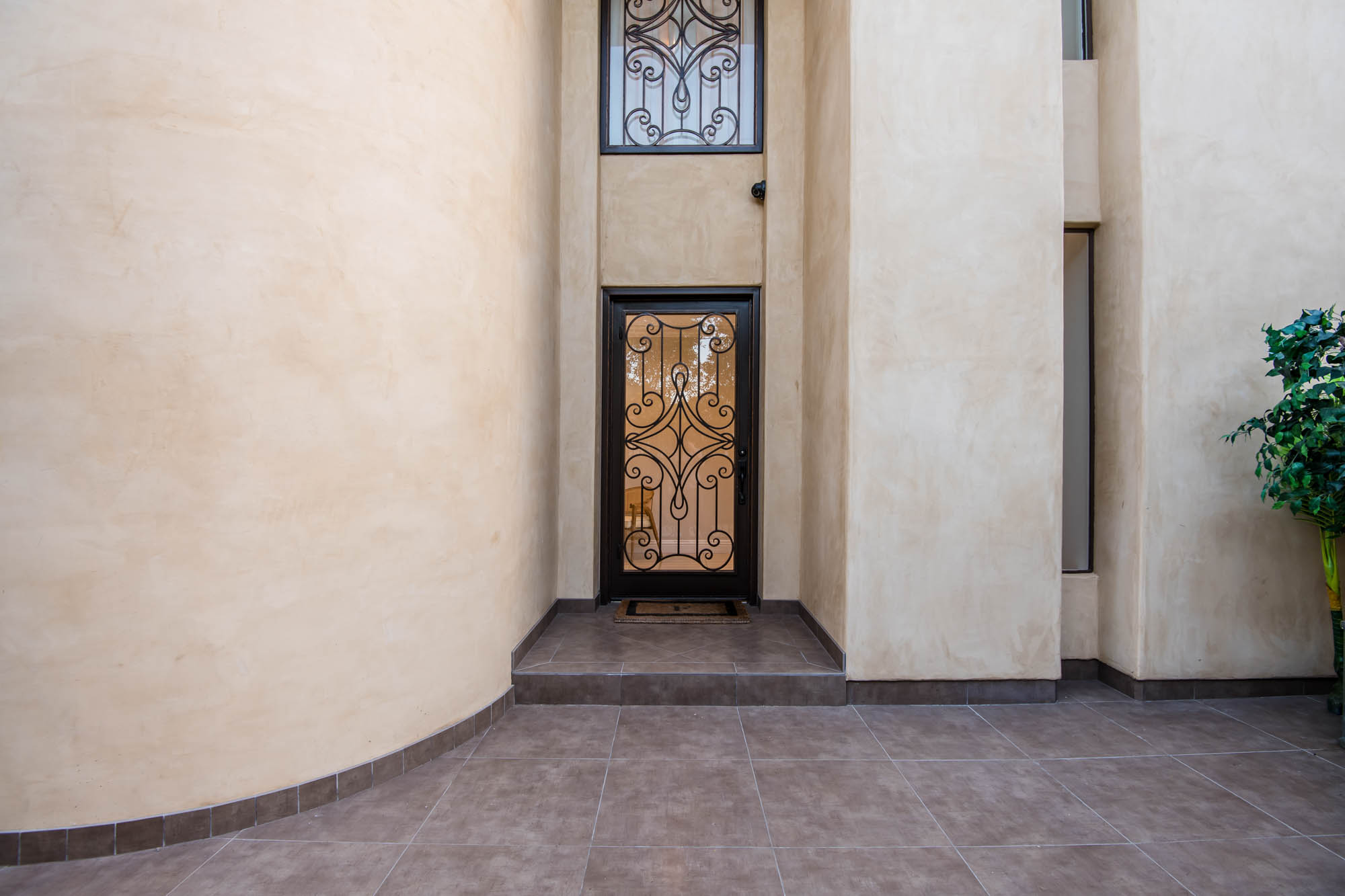 Dramatic Willis Fagan A.I.A. architectural set amongst lush, private grounds in prime Encino. Set behind a secure gated entrance this home features a 2 story living/dining room w/ wet bar & fireplace, chef's dream kitchen, equipped with Viking appliances, large island w/ prep sink, & ample cabinetry. Adjacent to the kitchen is a family room w/ fireplace, ideal for movie nights. The main level continues w/ 4 bd, 2.5 ba, & laundry room. Upstairs, the master suite has a formal sitting area w/ fireplace & built-in entertainment center, a generously sized bedroom, spa style bathroom w/ Mr. Steam sauna shower, jacuzzi tub & 2 massive walk-in closets. The suite opens to a huge private covered patio. The 2nd upstairs bedroom includes built in storage, & ensuite bath. Outside, the backyard has plenty of covered patio space w/ hand crafted wood ceilings. Pool w/ fountains & separate spa are framed by grassy yards & verdant landscape including a variety of fruit trees. Lanai Rd School district.