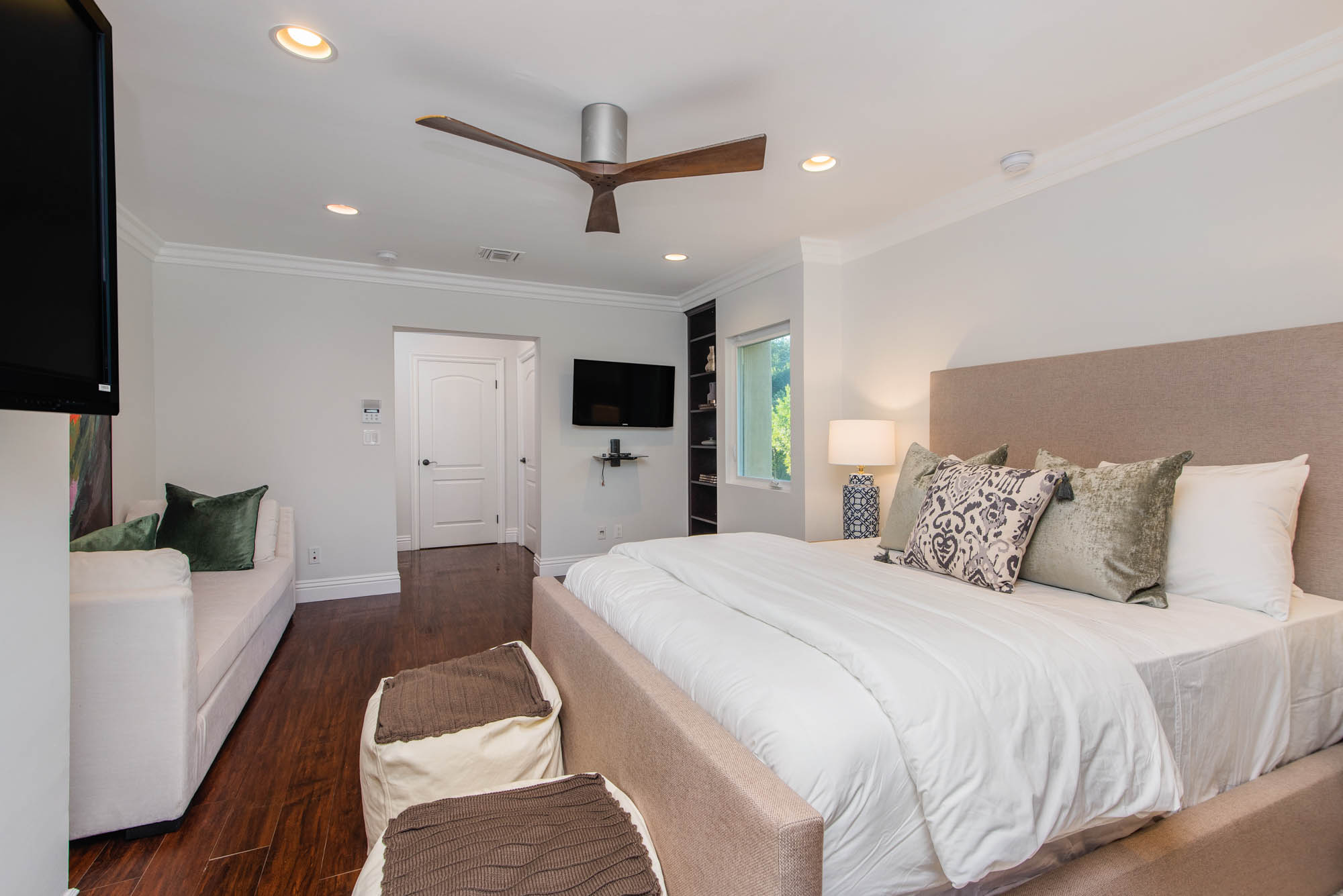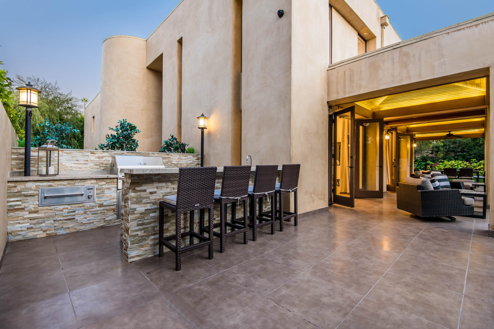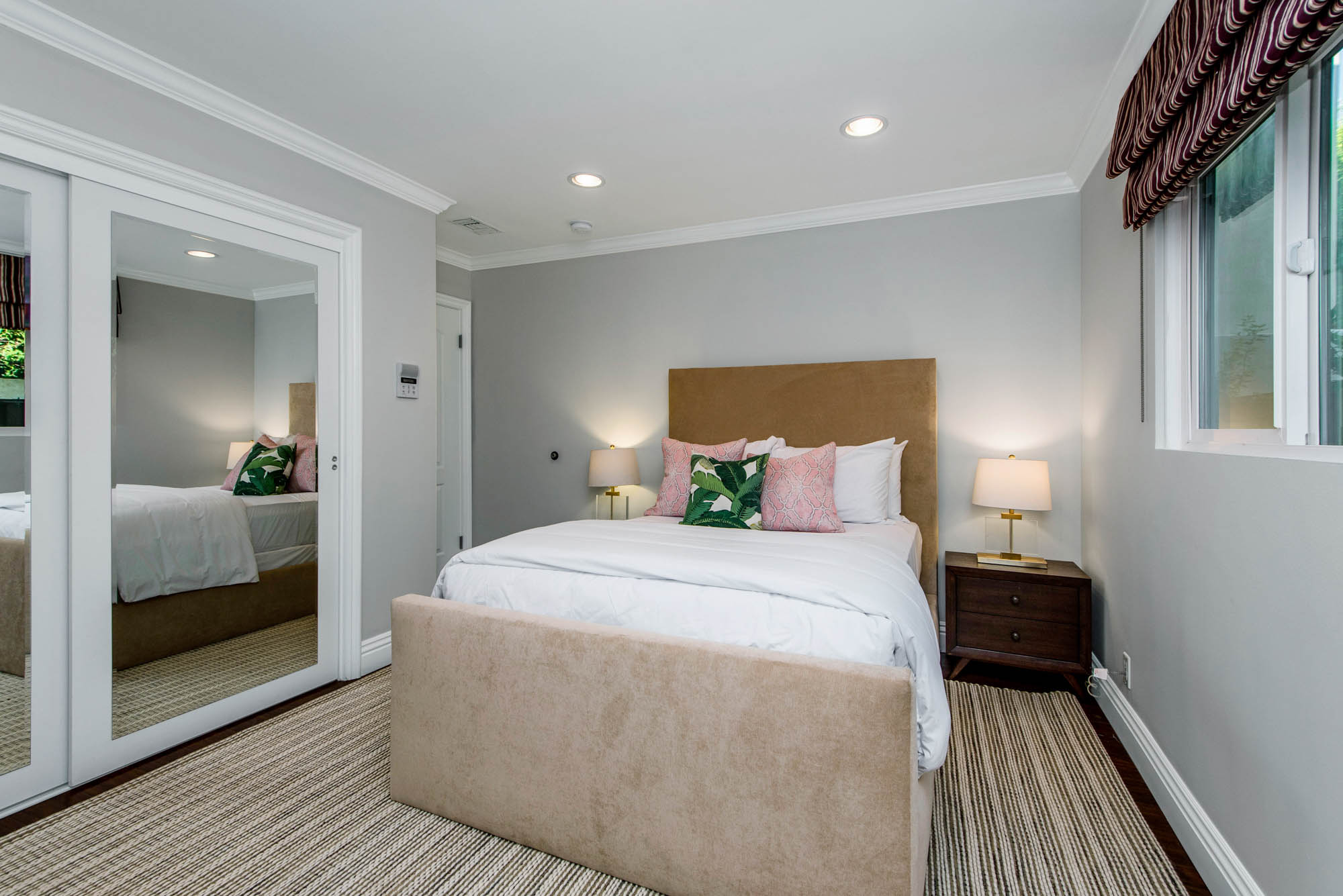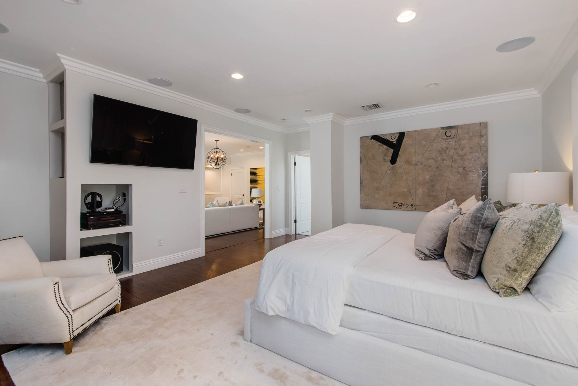 Dramatic Willis Fagan A.I.A. architectural set amongst lush, private grounds in prime Encino. Set behind a secure gated entrance this home features a 2 story living/dining room w/ wet bar & fireplace, chef's dream kitchen, equipped with Viking appliances, large island w/ prep sink, & ample cabinetry. Adjacent to the kitchen is a family room w/ fireplace, ideal for movie nights. The main level continues w/ 4 bd, 2.5 ba, & laundry room. Upstairs, the master suite has a formal sitting area w/ fireplace & built-in entertainment center, a generously sized bedroom, spa style bathroom w/ Mr. Steam sauna shower, jacuzzi tub & 2 massive walk-in closets. The suite opens to a huge private covered patio. The 2nd upstairs bedroom includes built in storage, & ensuite bath. Outside, the backyard has plenty of covered patio space w/ hand crafted wood ceilings. Pool w/ fountains & separate spa are framed by grassy yards & verdant landscape including a variety of fruit trees. Lanai Rd School district.