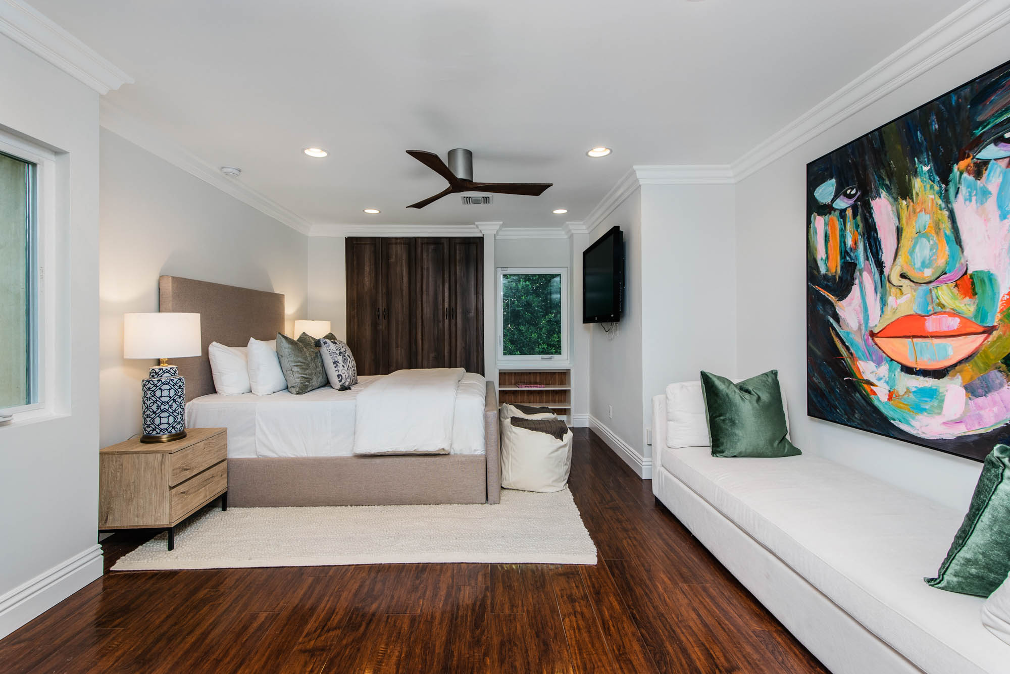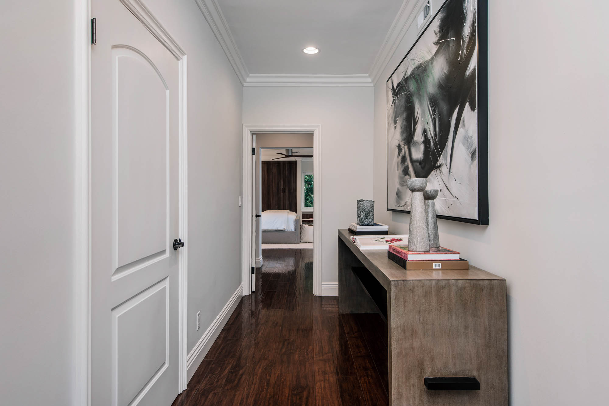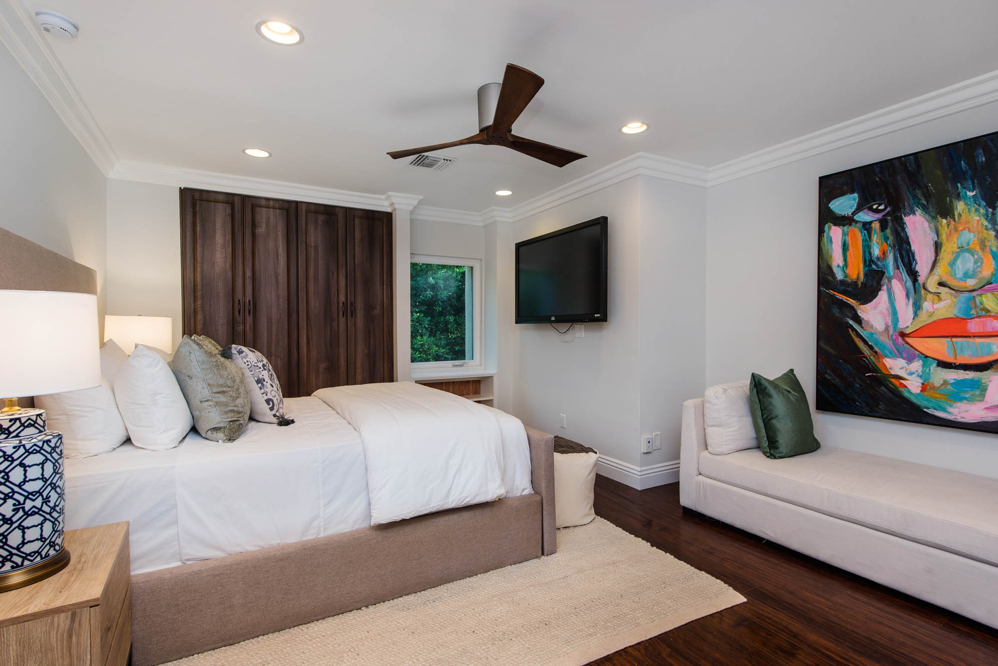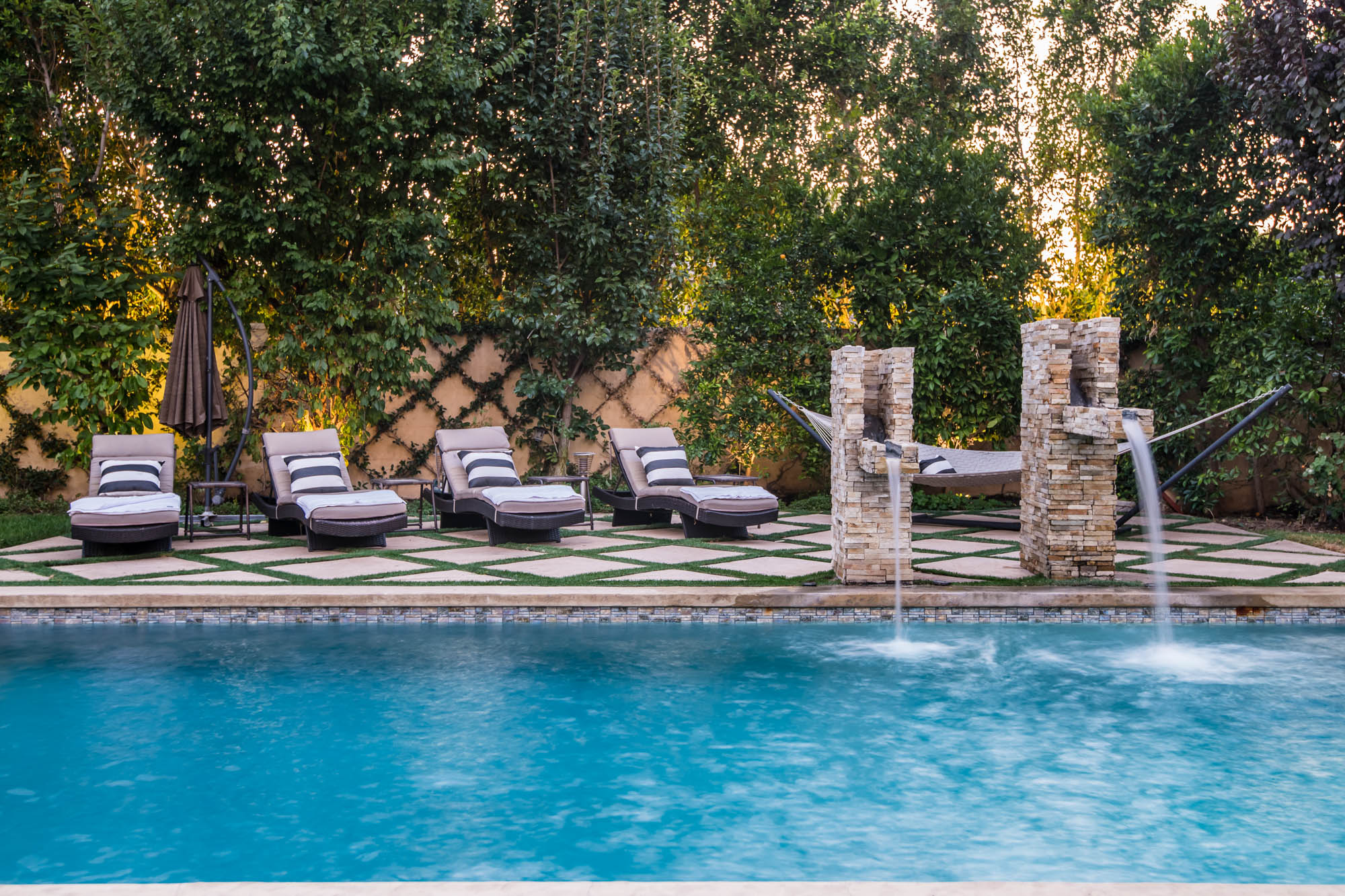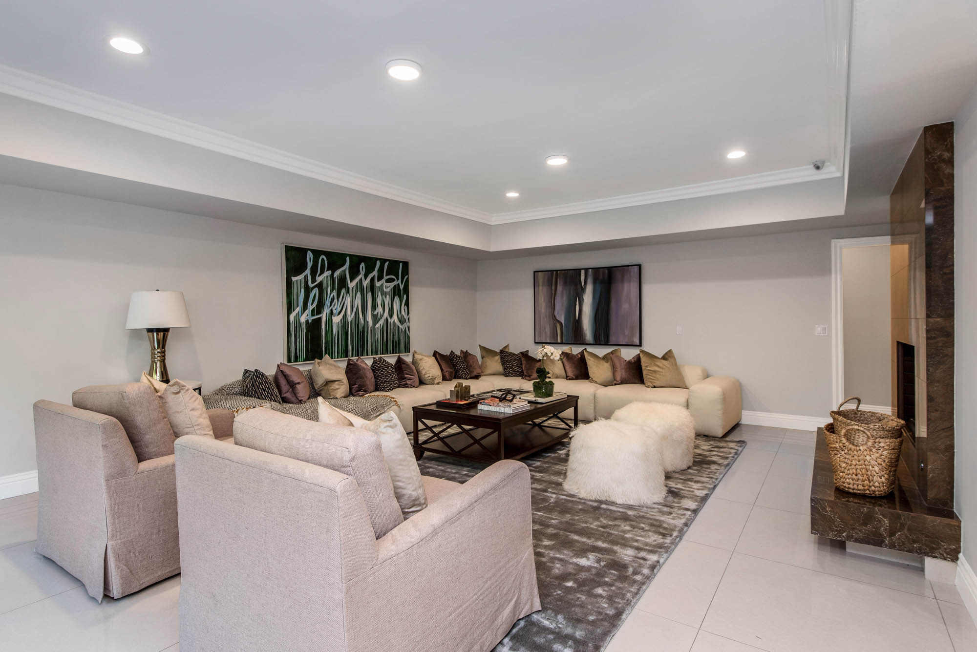 Dramatic Willis Fagan A.I.A. architectural set amongst lush, private grounds in prime Encino. Set behind a secure gated entrance this home features a 2 story living/dining room w/ wet bar & fireplace, chef's dream kitchen, equipped with Viking appliances, large island w/ prep sink, & ample cabinetry. Adjacent to the kitchen is a family room w/ fireplace, ideal for movie nights. The main level continues w/ 4 bd, 2.5 ba, & laundry room. Upstairs, the master suite has a formal sitting area w/ fireplace & built-in entertainment center, a generously sized bedroom, spa style bathroom w/ Mr. Steam sauna shower, jacuzzi tub & 2 massive walk-in closets. The suite opens to a huge private covered patio. The 2nd upstairs bedroom includes built in storage, & ensuite bath. Outside, the backyard has plenty of covered patio space w/ hand crafted wood ceilings. Pool w/ fountains & separate spa are framed by grassy yards & verdant landscape including a variety of fruit trees. Lanai Rd School district.
