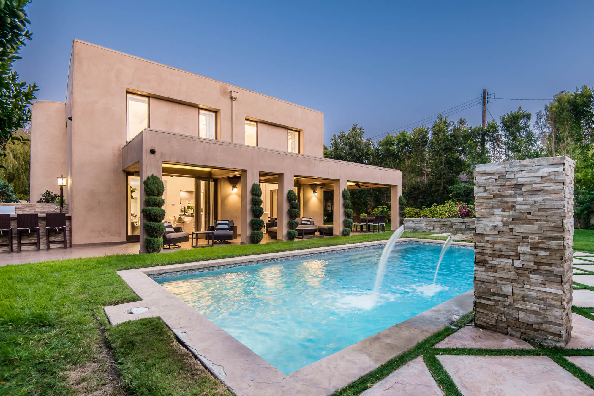 Dramatic Willis Fagan A. I. A. architectural set amongst lush, private grounds in prime Encino.