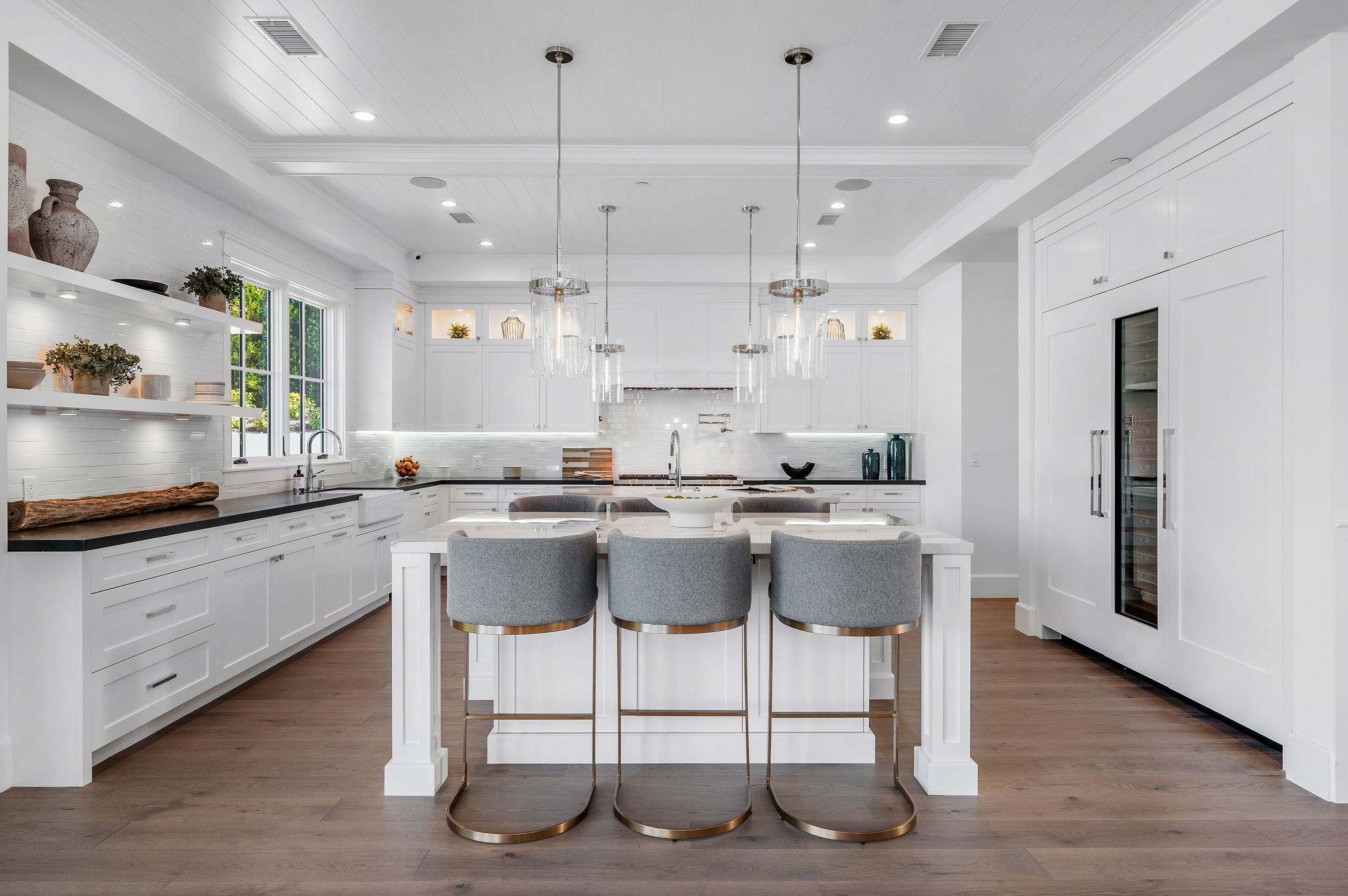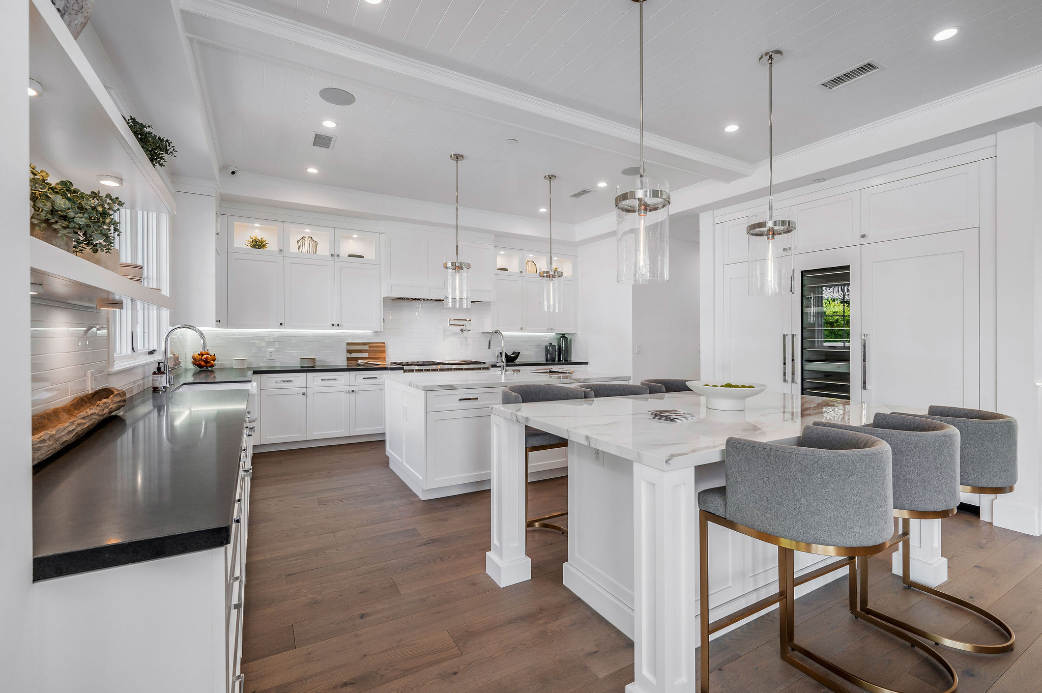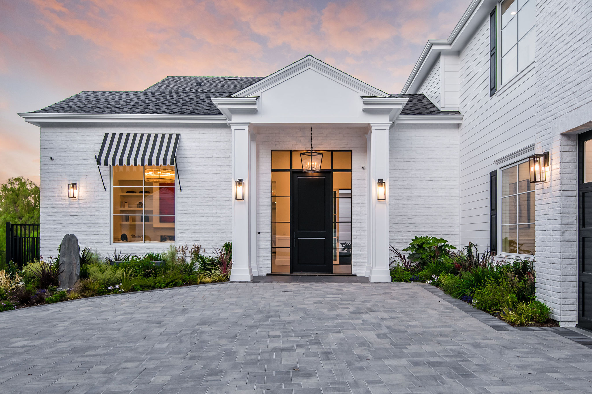 Tucked behind private gates & surrounded by an incredibly lush English garden, this modern cape cod estate presents its own luxurious oasis.