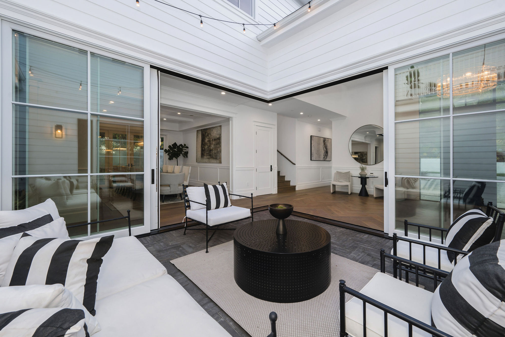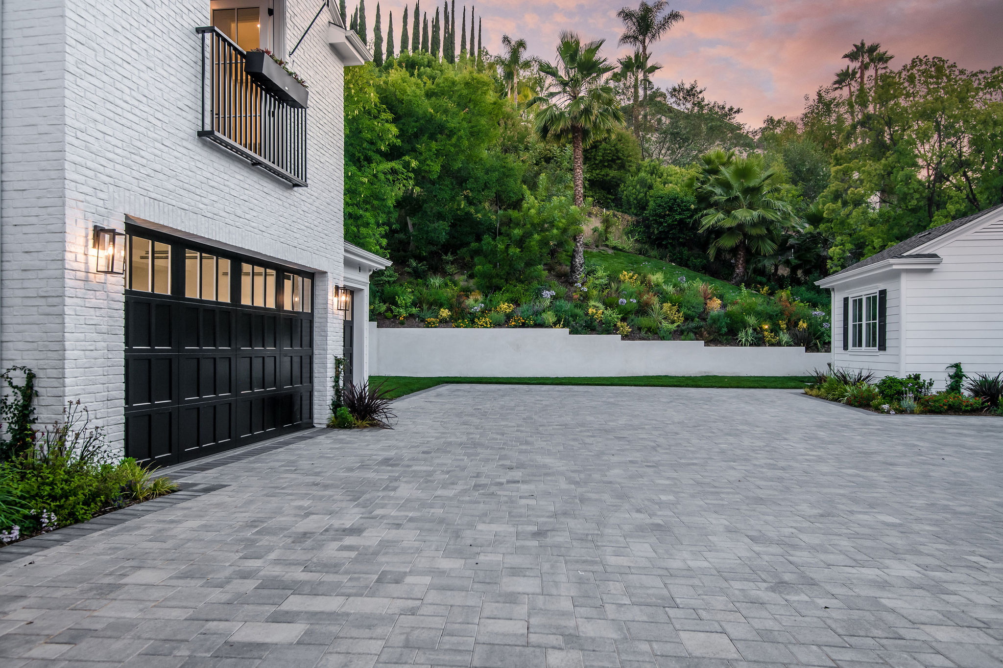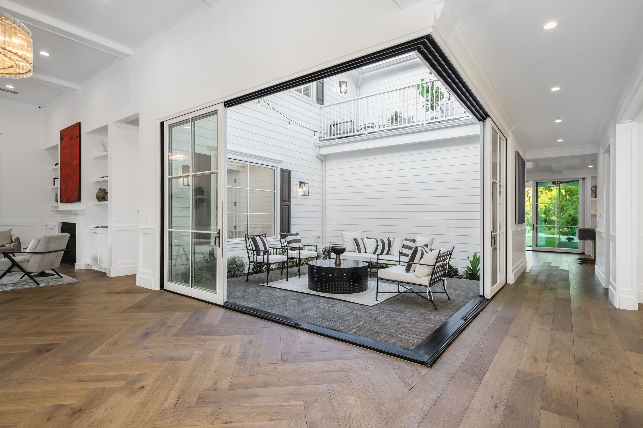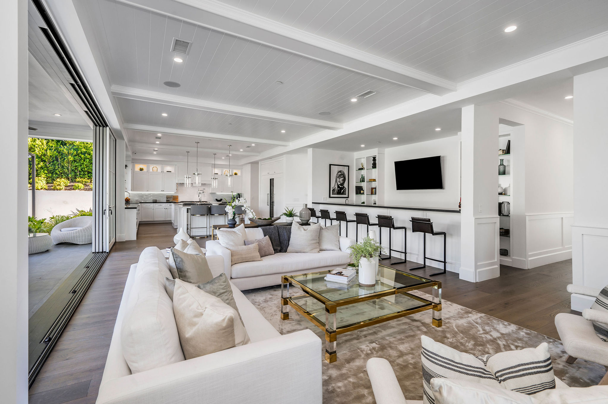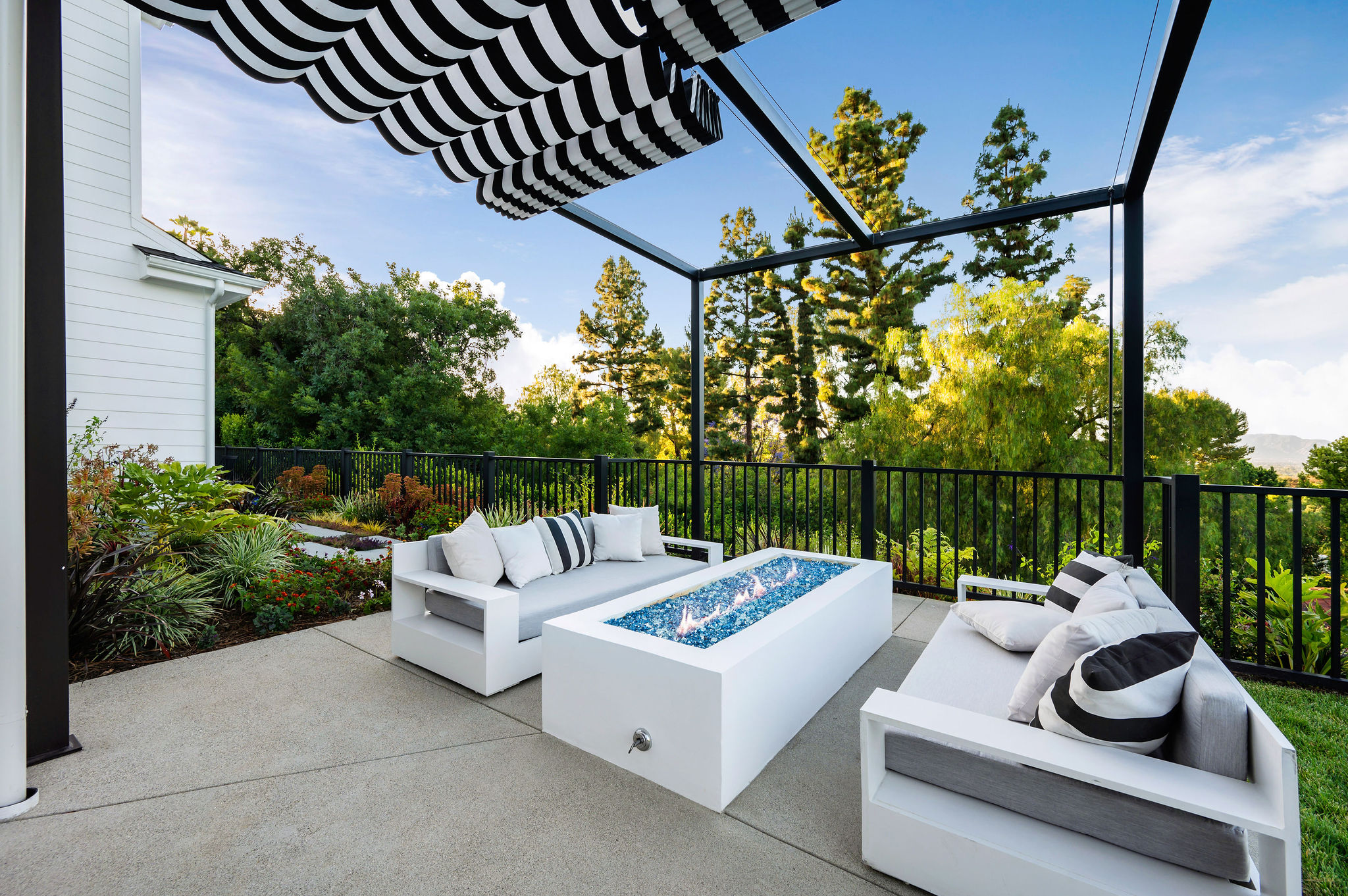 Tucked behind private gates & surrounded by an incredibly lush English garden, this modern cape cod estate presents its own luxurious oasis. Excellent location w/ easy access to 101, 405 freeways & back route access to the westside. Impressive entry beholds the magnificent open layout, soaring ceilings, & flooding natural light. Inviting formal living room w/ a sleek fireplace keeps a cozy yet grand feel. Stunning wood floors lead you through to the light & bright dining room encompassed by large french doors & a gorgeous interior courtyard. Gourmet kitchen features state of the art appliances, double island w/ plenty of room for informal dining, butlers pantry, & ample cabinetry & storage space. Adjacent, the large, striking bar sweeps through to the expansive family room. Open up your massive pocket doors to live the ultimate entertainers dream w/ a smooth indoor/outdoor entertaining flow. The backyard sanctuary w/ incredible views features infinity zero edge pool & spa, pool house, patio space, firepit, plenty of grass space, covered alfresco dining w/ outdoor bbq, cooking area & fridge. Upstairs, the boasting master suite showcases panoramic views, lovely sitting area & deck, his & her walk in closets, bathroom w/ his & hers smart toilets, extra large steam shower & a soaking tub. Oversized bedrooms feature en suite bathrooms & walk in closets. Additional amenities include home theater, balconies, fruit trees- citrus, avocado, loquat, apricot & more, second multipurpose unit can be used as gym, game room, mother in law, etc. 3 car garage, laundry room, & so much more.