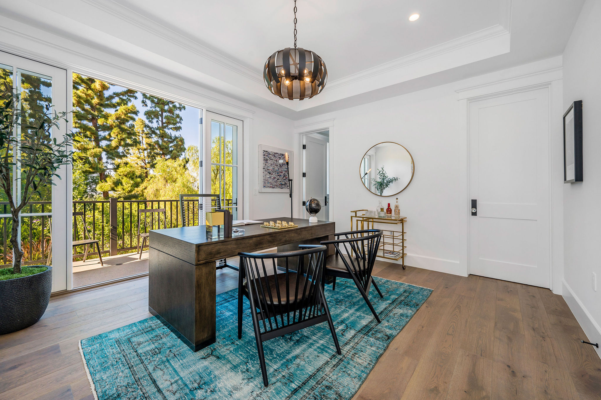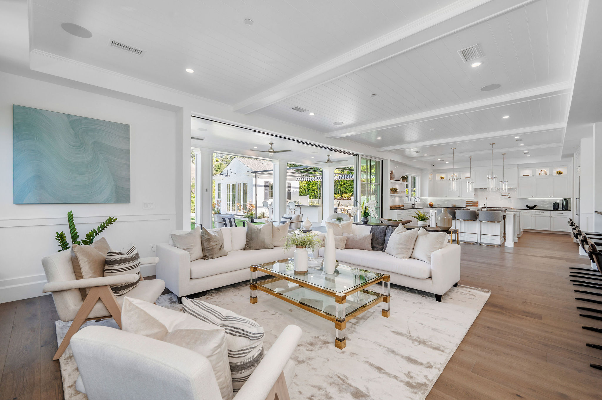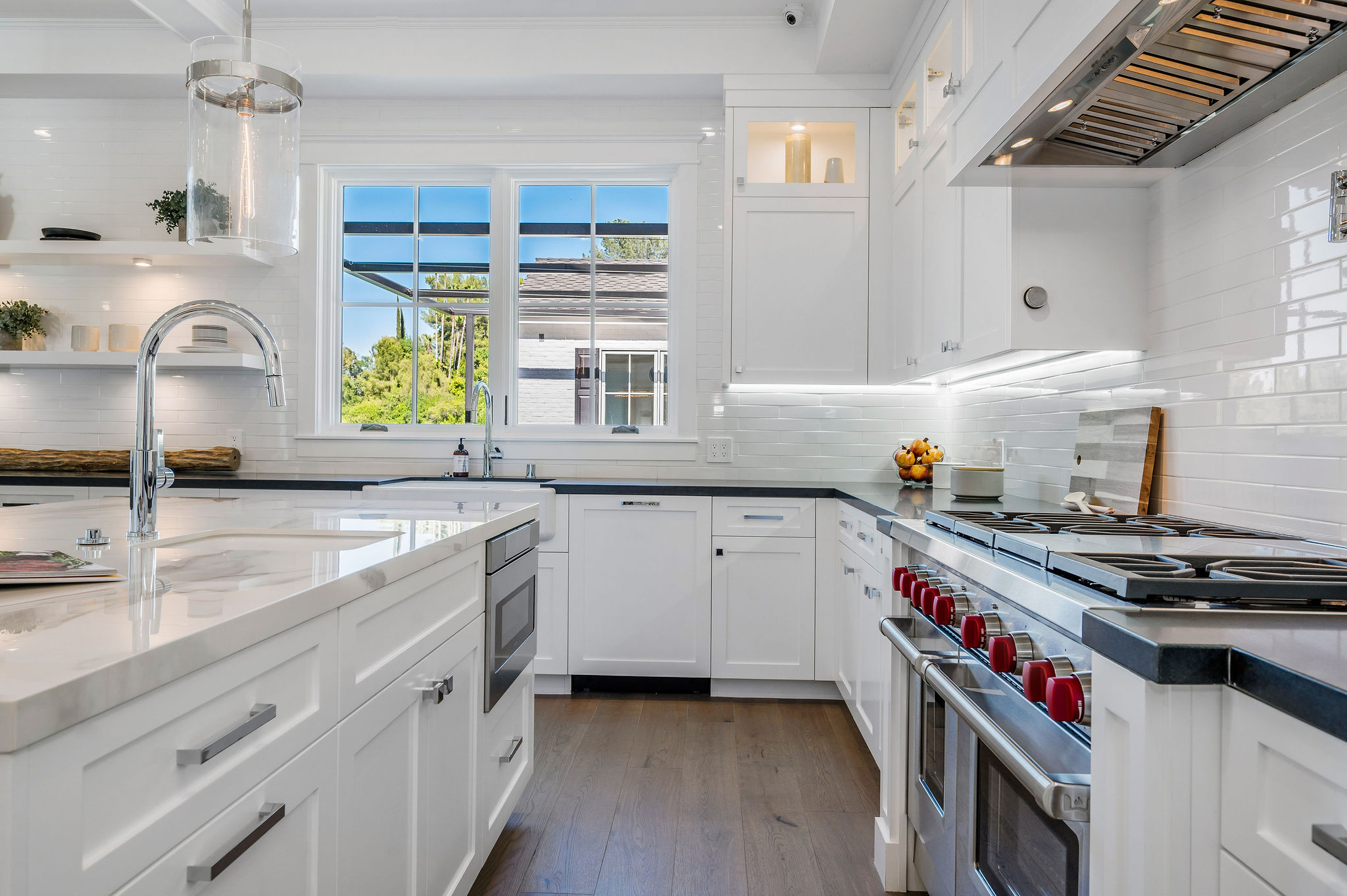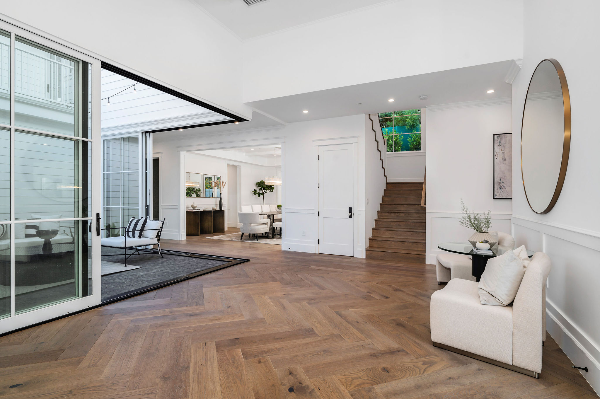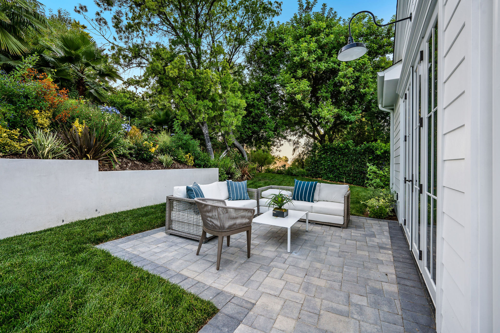 Tucked behind private gates & surrounded by an incredibly lush English garden, this modern cape cod estate presents its own luxurious oasis. Excellent location w/ easy access to 101, 405 freeways & back route access to the westside. Impressive entry beholds the magnificent open layout, soaring ceilings, & flooding natural light. Inviting formal living room w/ a sleek fireplace keeps a cozy yet grand feel. Stunning wood floors lead you through to the light & bright dining room encompassed by large french doors & a gorgeous interior courtyard. Gourmet kitchen features state of the art appliances, double island w/ plenty of room for informal dining, butlers pantry, & ample cabinetry & storage space. Adjacent, the large, striking bar sweeps through to the expansive family room. Open up your massive pocket doors to live the ultimate entertainers dream w/ a smooth indoor/outdoor entertaining flow. The backyard sanctuary w/ incredible views features infinity zero edge pool & spa, pool house, patio space, firepit, plenty of grass space, covered alfresco dining w/ outdoor bbq, cooking area & fridge. Upstairs, the boasting master suite showcases panoramic views, lovely sitting area & deck, his & her walk in closets, bathroom w/ his & hers smart toilets, extra large steam shower & a soaking tub. Oversized bedrooms feature en suite bathrooms & walk in closets. Additional amenities include home theater, balconies, fruit trees- citrus, avocado, loquat, apricot & more, second multipurpose unit can be used as gym, game room, mother in law, etc. 3 car garage, laundry room, & so much more.