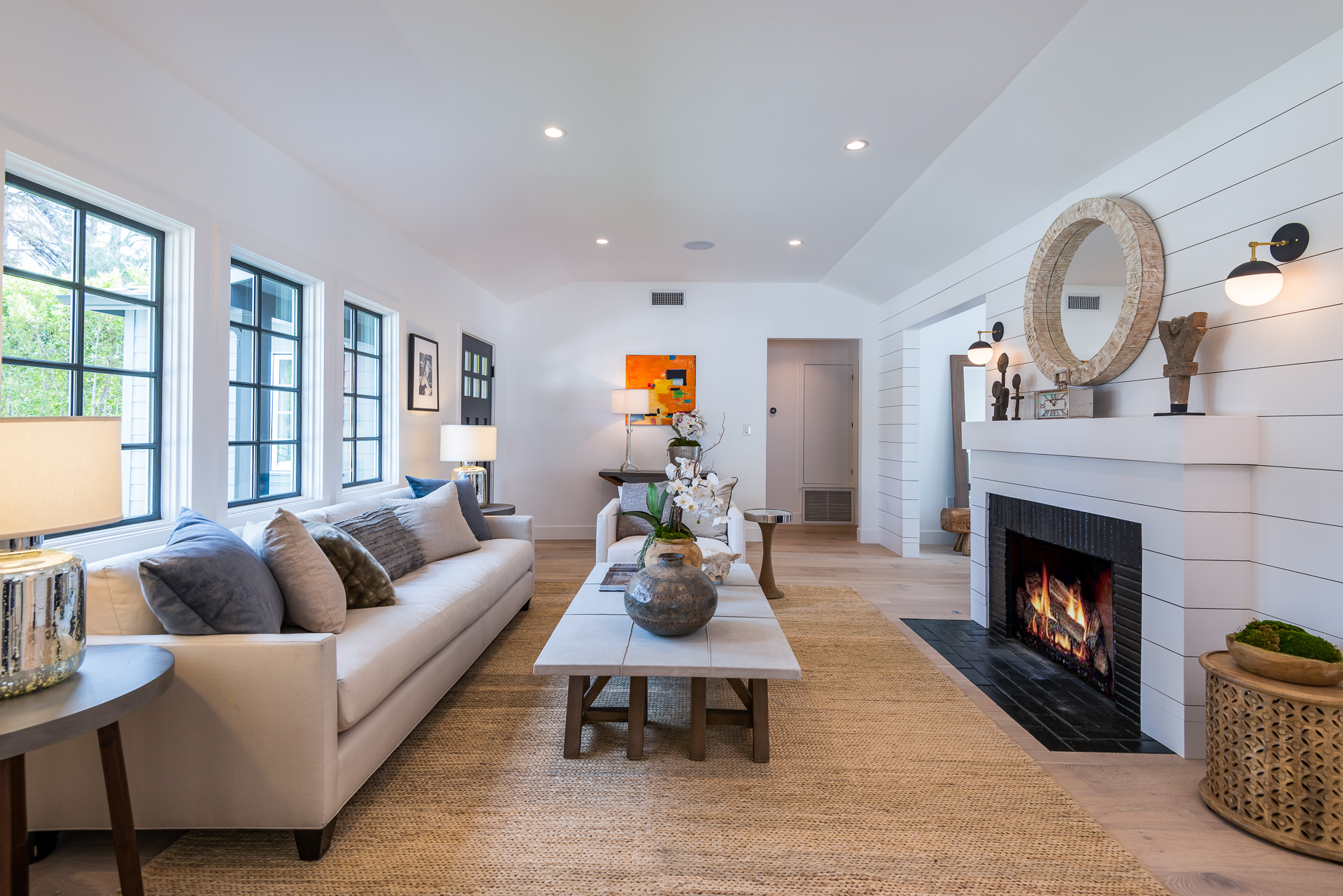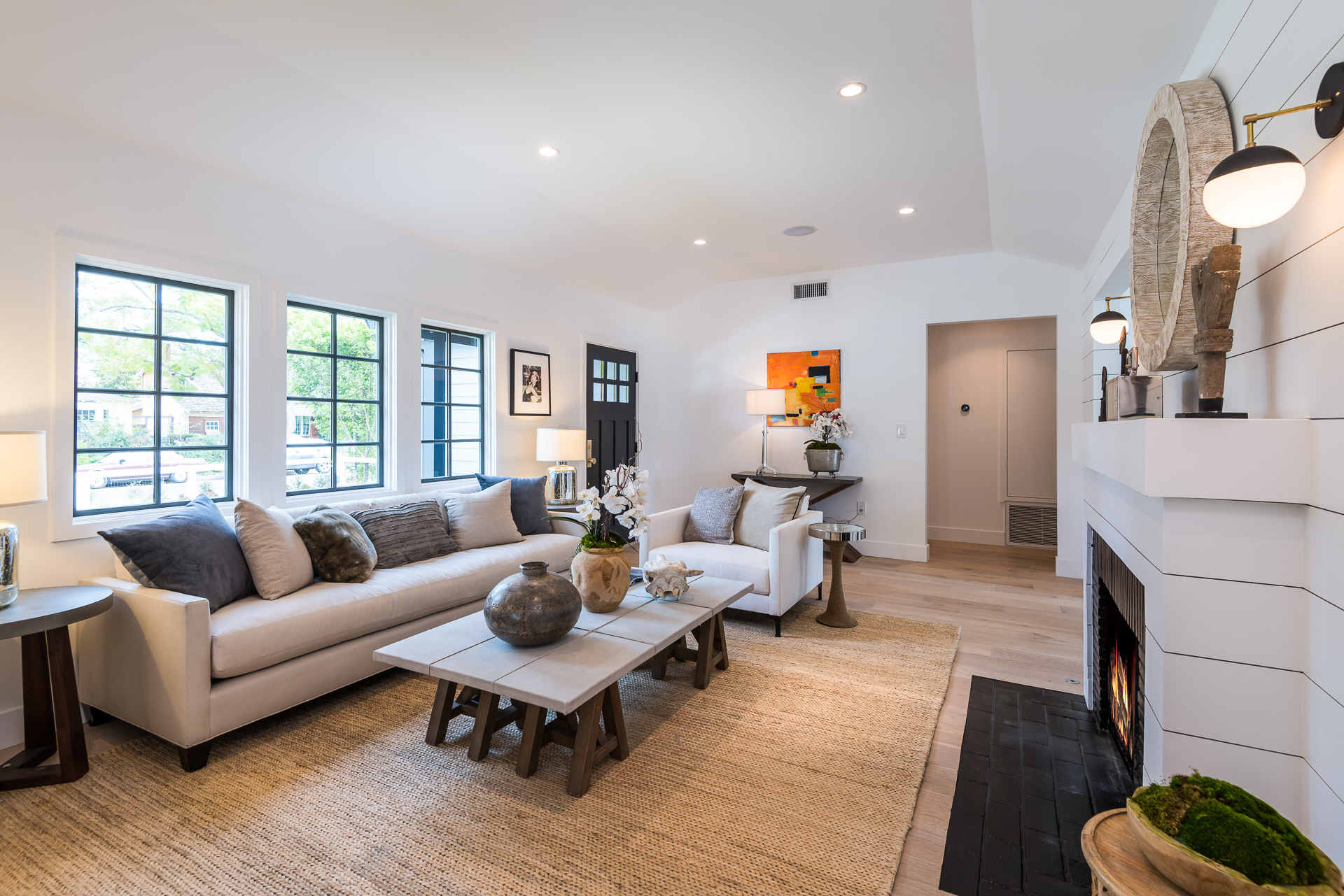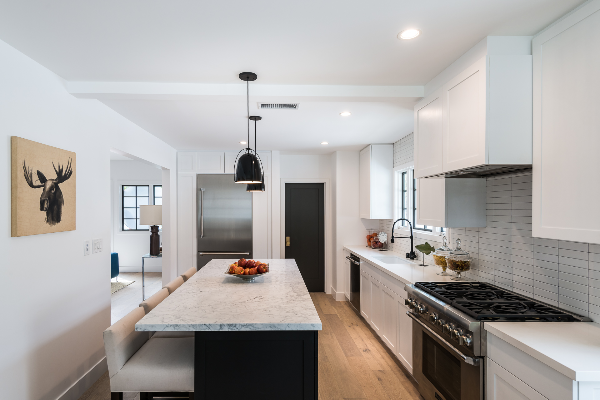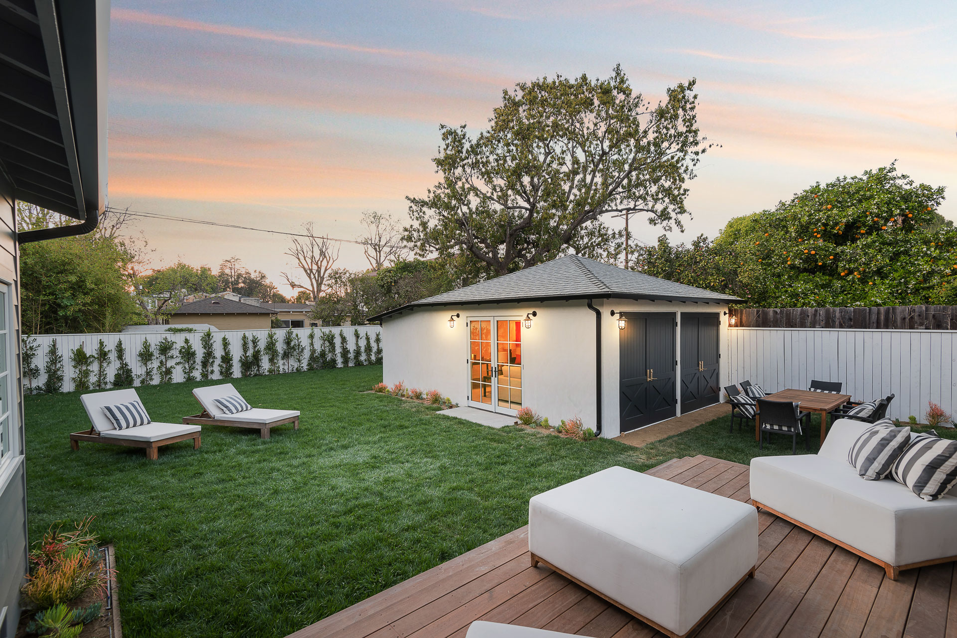 Completely rebuilt single-story farmhouse style home located in beautiful Sherman Oaks. This 3 bedroom, 3-bathroom home with nearly 2,100 sqft is the perfect family quarters. Stunning amenities throughout include spacious open floor plan with cozy dual fireplace. Elegant white kitchen is flooded with natural light, great for entertaining. Through the family room glass sliders you are greeted by a wooden deck, leading into the lush greens that surround the detached studio perfect for the coolest man cave, home office, or art studio. The master retreat lacks no details, from the barn door, to the master bath brimmed with gold details.