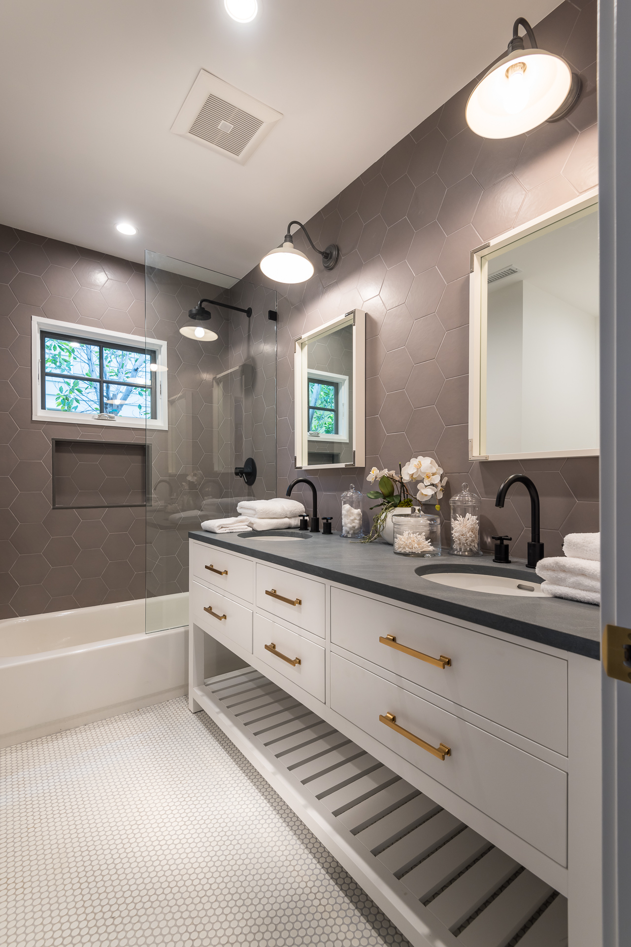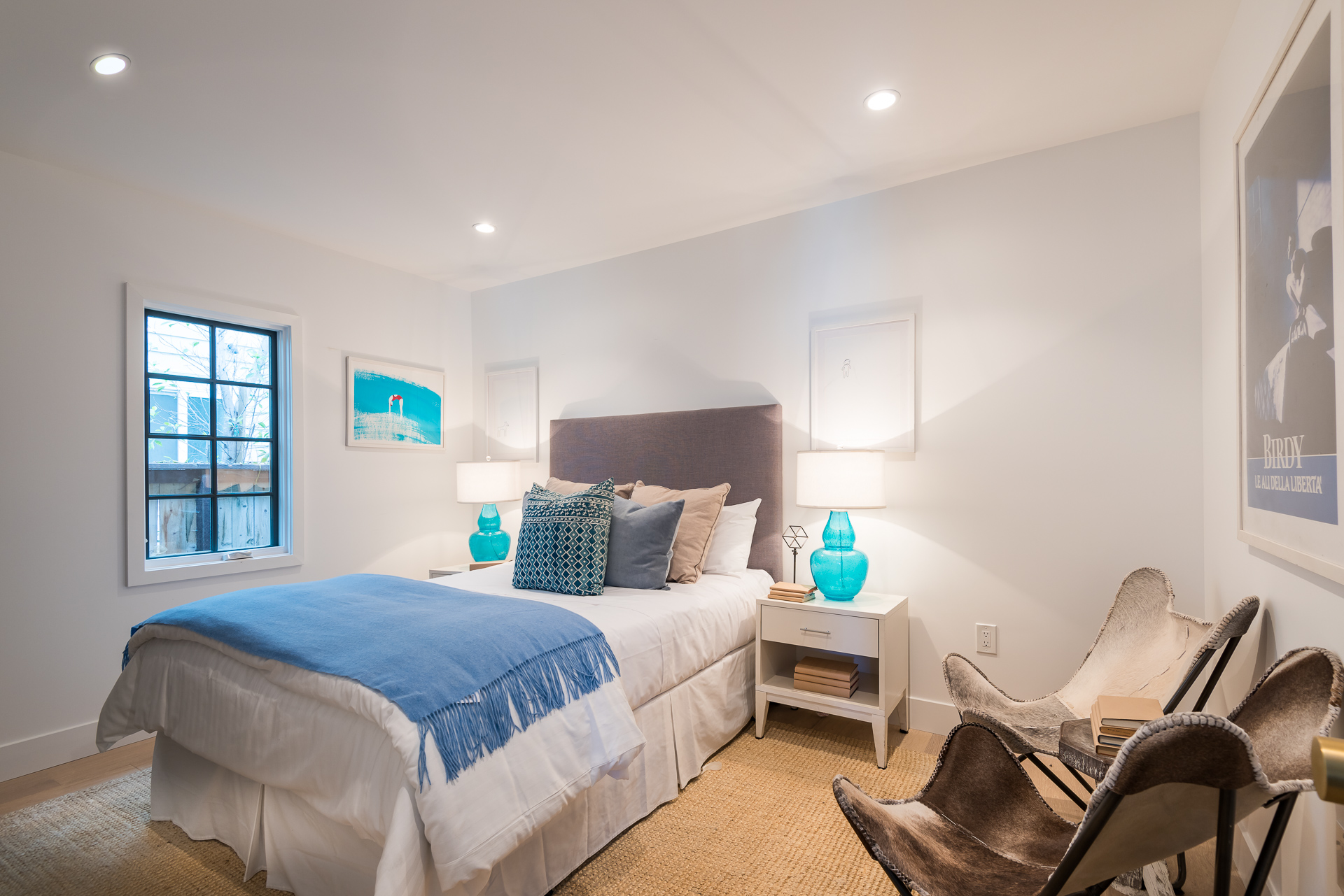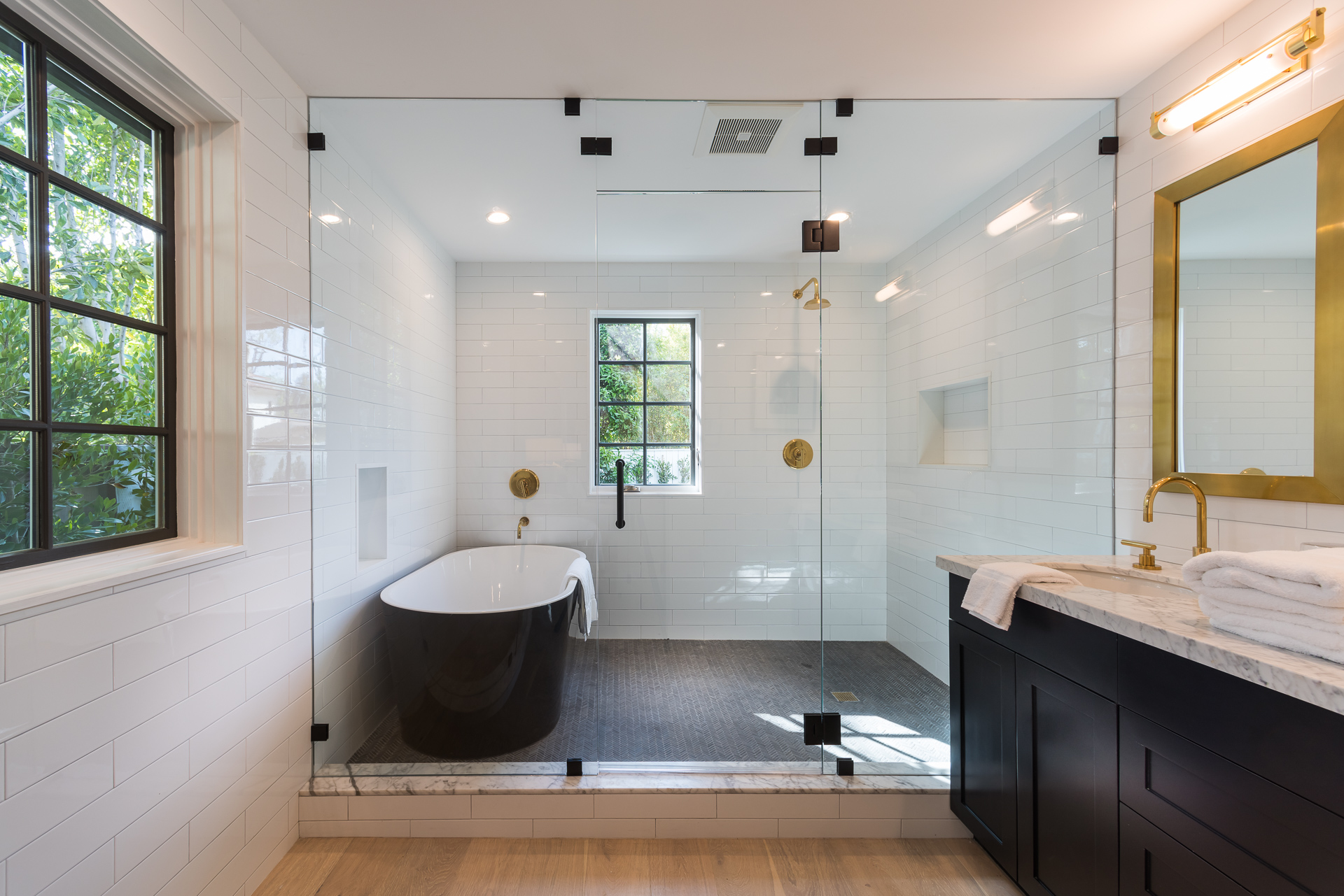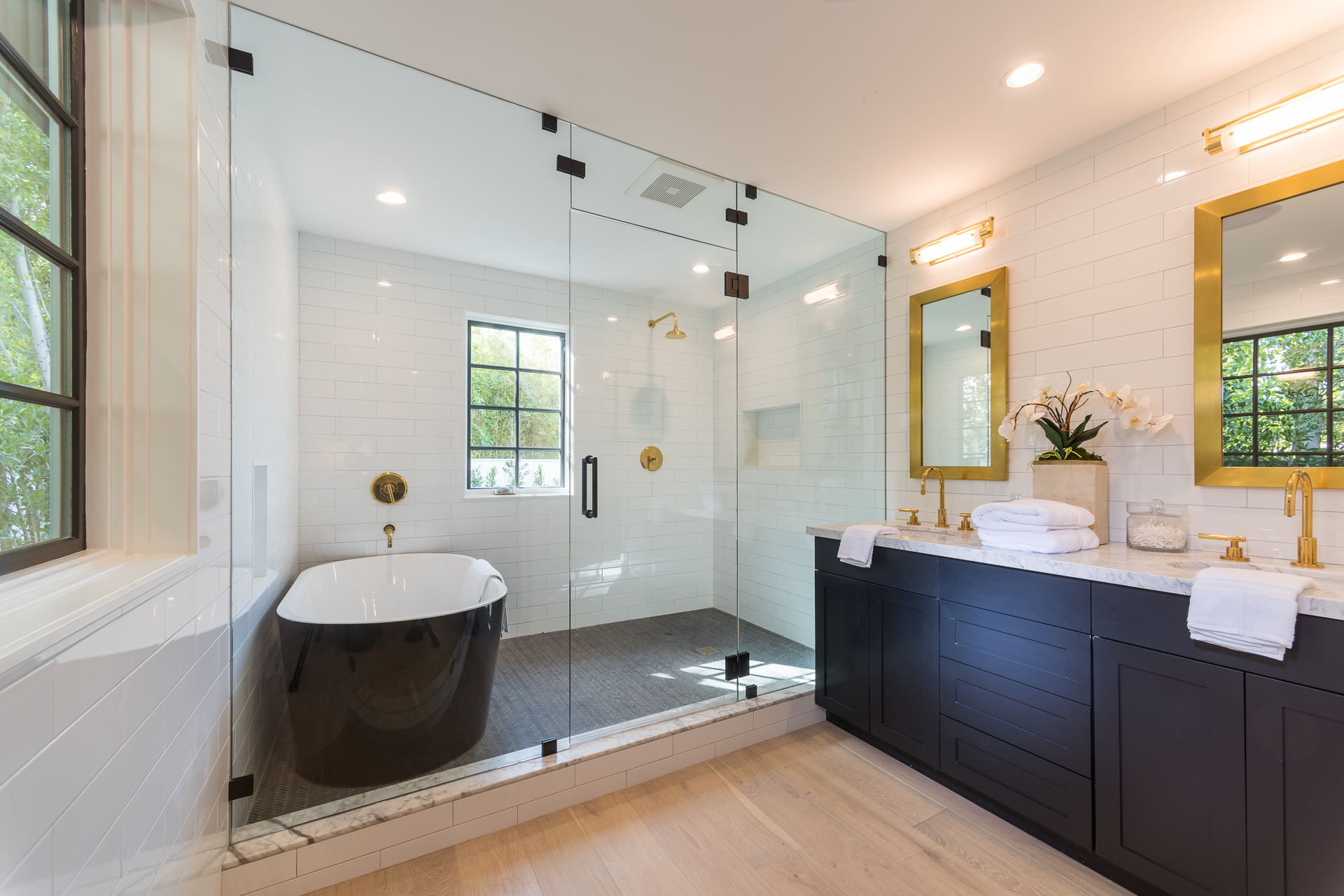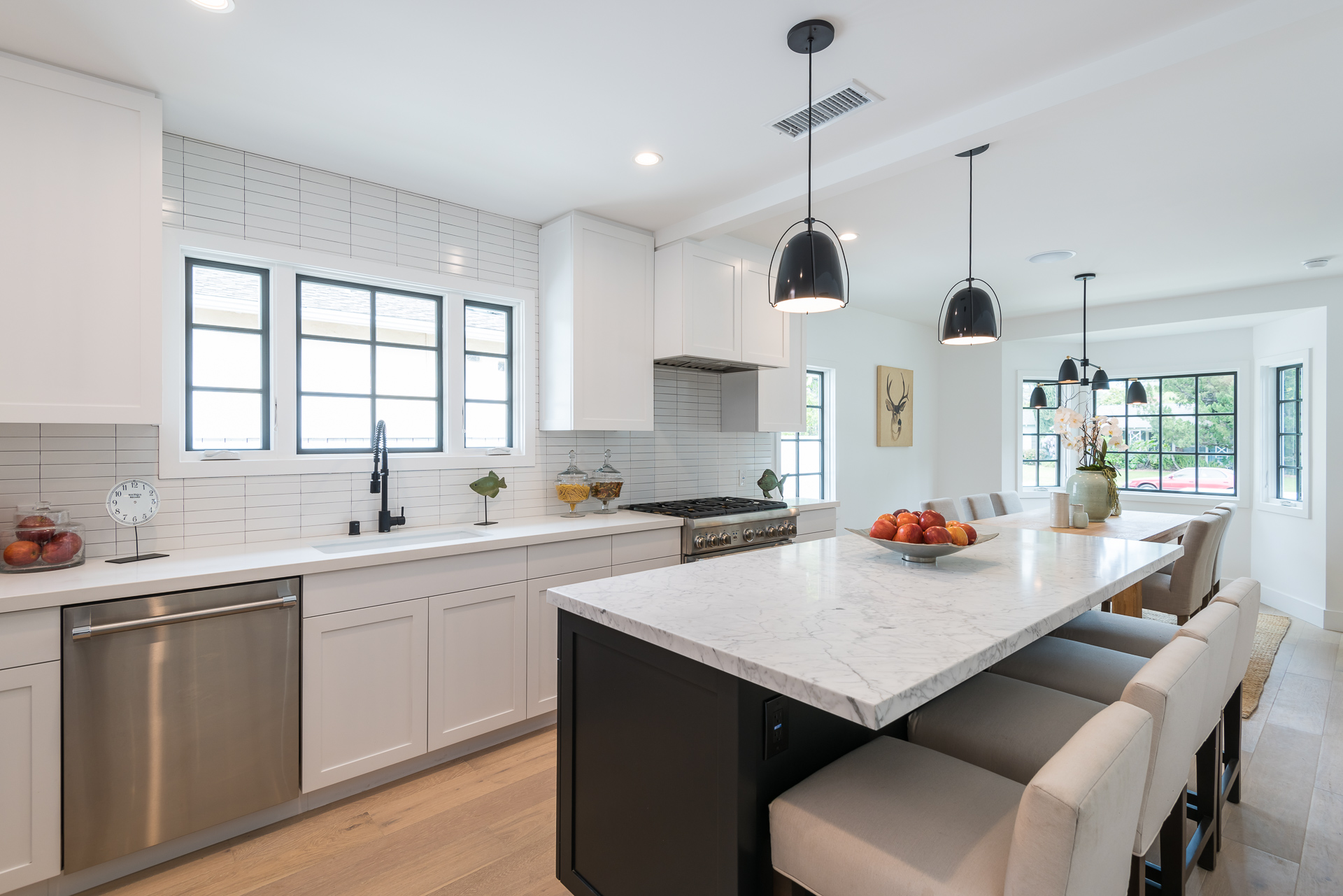 Completely rebuilt single-story farmhouse style home located in beautiful Sherman Oaks. This 3 bedroom, 3-bathroom home with nearly 2,100 sqft is the perfect family quarters. Stunning amenities throughout include spacious open floor plan with cozy dual fireplace. Elegant white kitchen is flooded with natural light, great for entertaining. Through the family room glass sliders you are greeted by a wooden deck, leading into the lush greens that surround the detached studio perfect for the coolest man cave, home office, or art studio. The master retreat lacks no details, from the barn door, to the master bath brimmed with gold details.