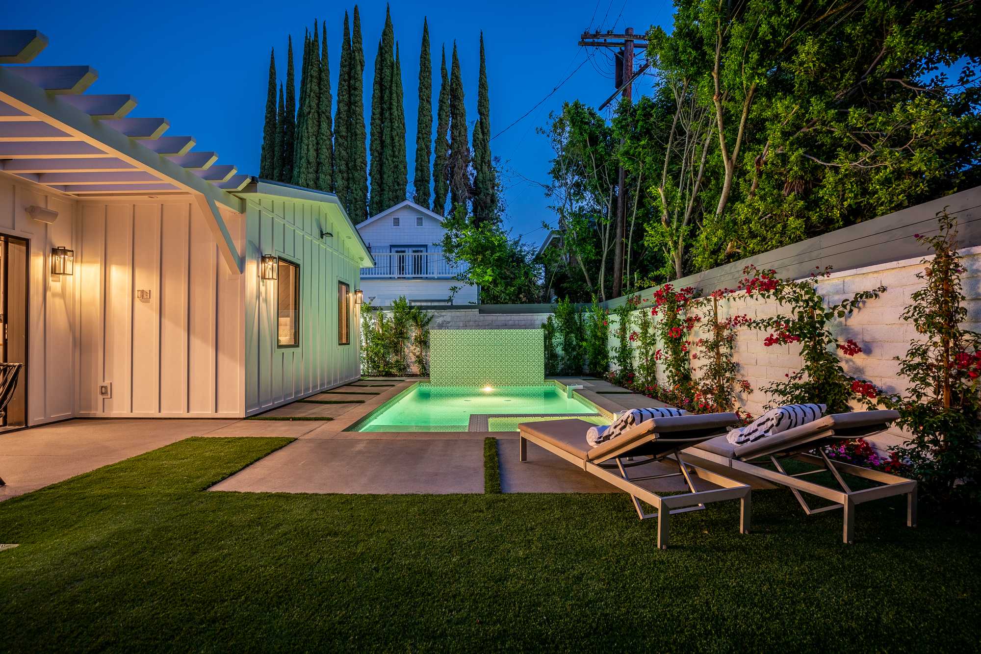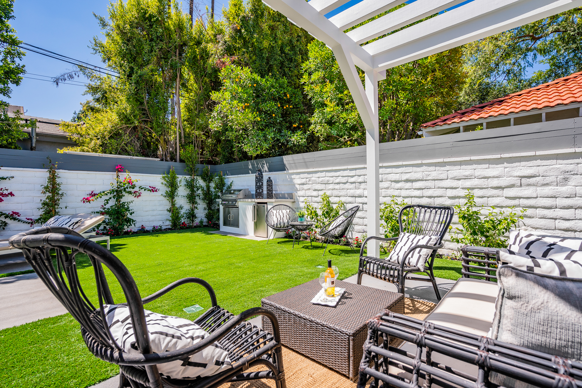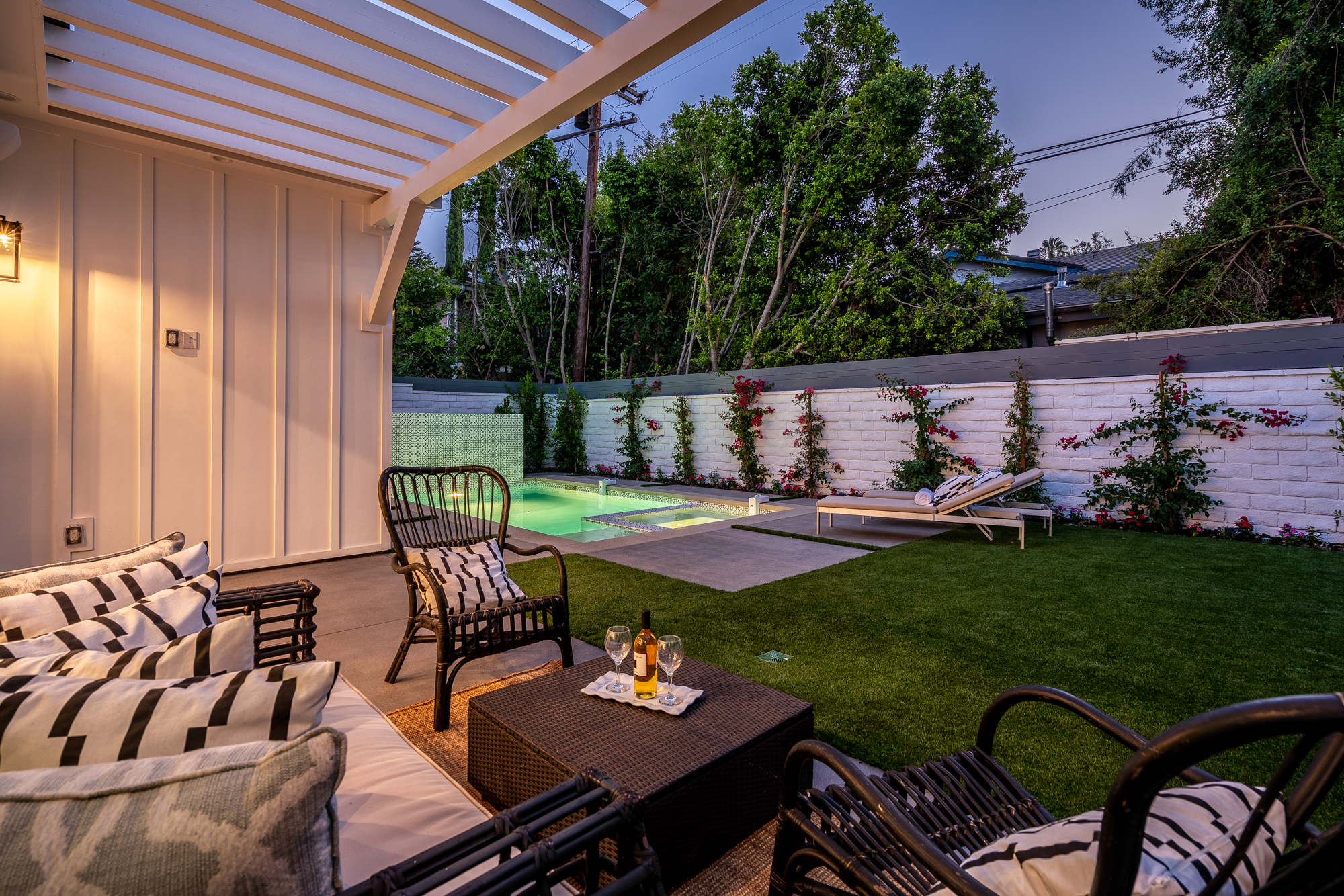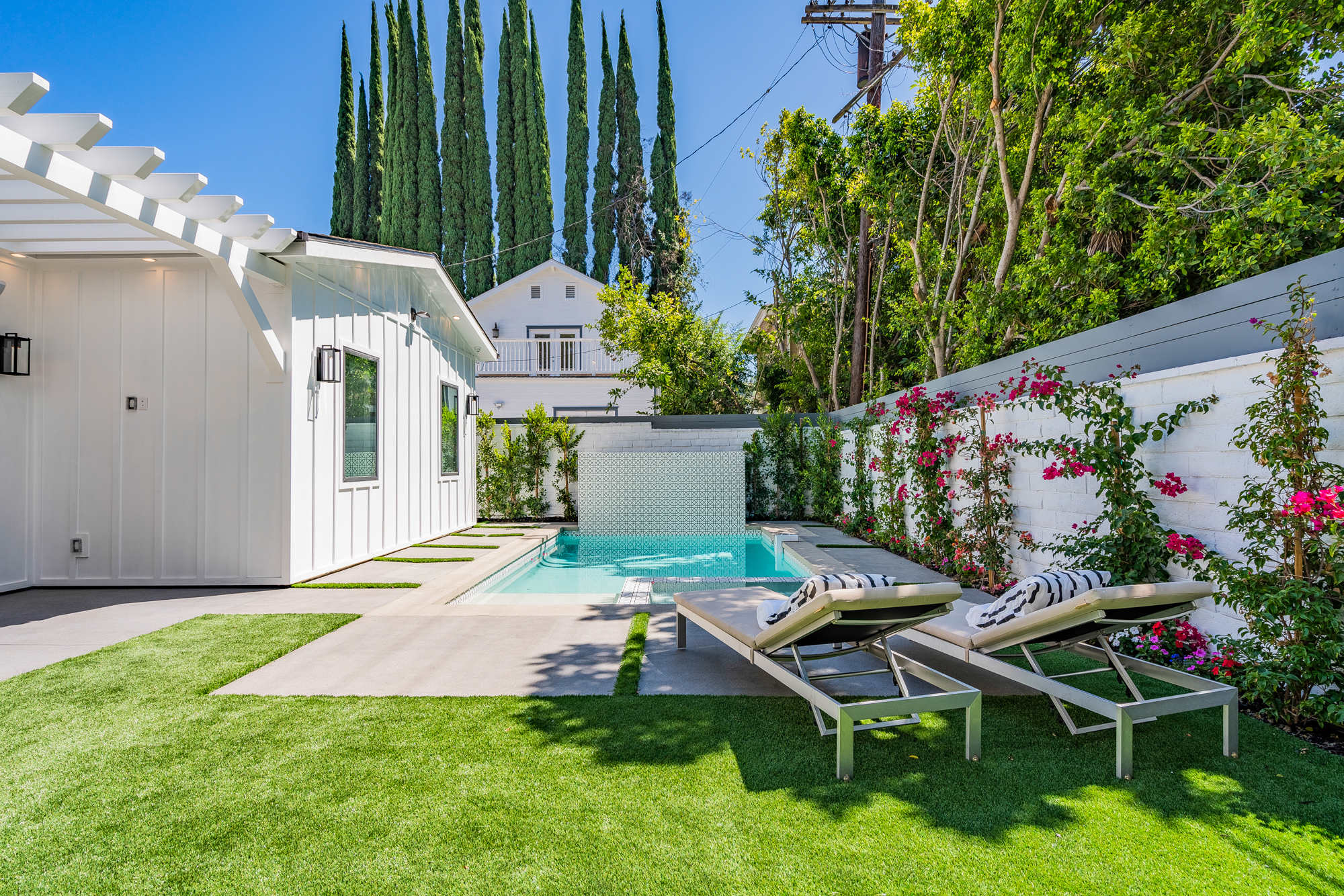 Welcome to your stunning single story newly developed home exceptionally located in Encino, South of the boulevard. Charming curb appeal welcomes you to this enchanting 4 bedroom, 5 bathroom beautifully built modern farmhouse designed for any family, big or small. Incredible and versatile open floor plan boasts over 3,000 sqft of spacious living. Tastefully designed, this home stands out with its light wood floors, gleaming light fixtures, custom built ins, trendy wall textures, and more. Open concept layout offers Chefs kitchen, formal dining space, and living area all naturally joined in one entertainers dream environment. Glamorous kitchen beholds a center island with room for seating and snacking, top of the line appliances, and a walk-in pantry. Large glass sliding doors flood in gorgeous natural light and also lead you directly out to the backyard retreat featuring a built in bbq, covered lounge area, and sparkling pool and spa. Master suite offers a grand walk-in closet and luxurious spa-like bathroom with soaking tub, massive walk-in shower, privacy door, and dual sinks. Additional 3 bedrooms offer ultimate privacy with each having their very own ensuite bathrooms. Unbeatable location, just a stroll to Ventura Blvds best shops and dining. Location & amenities galore await you!