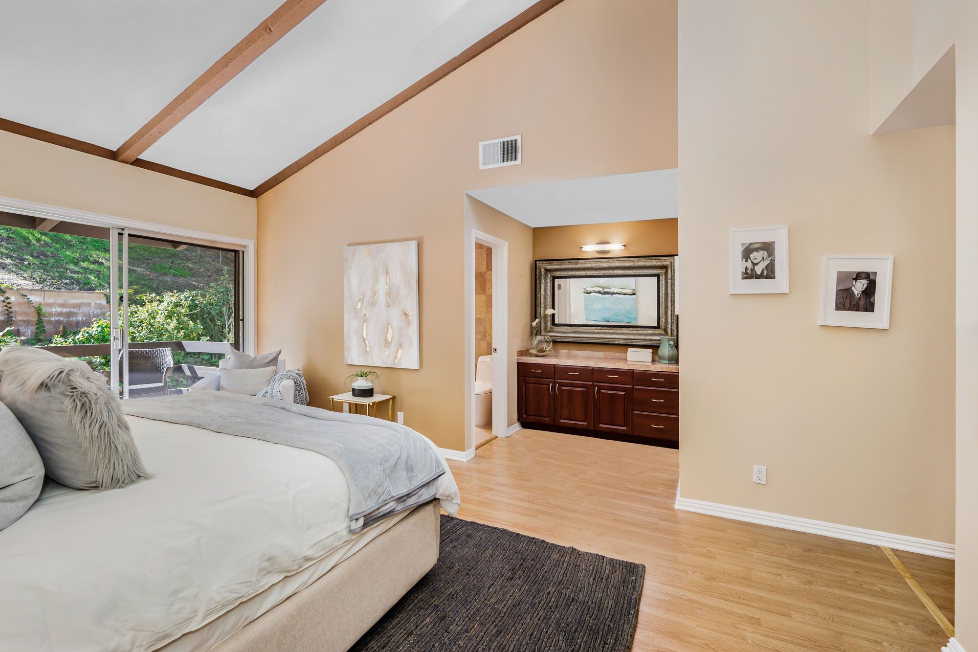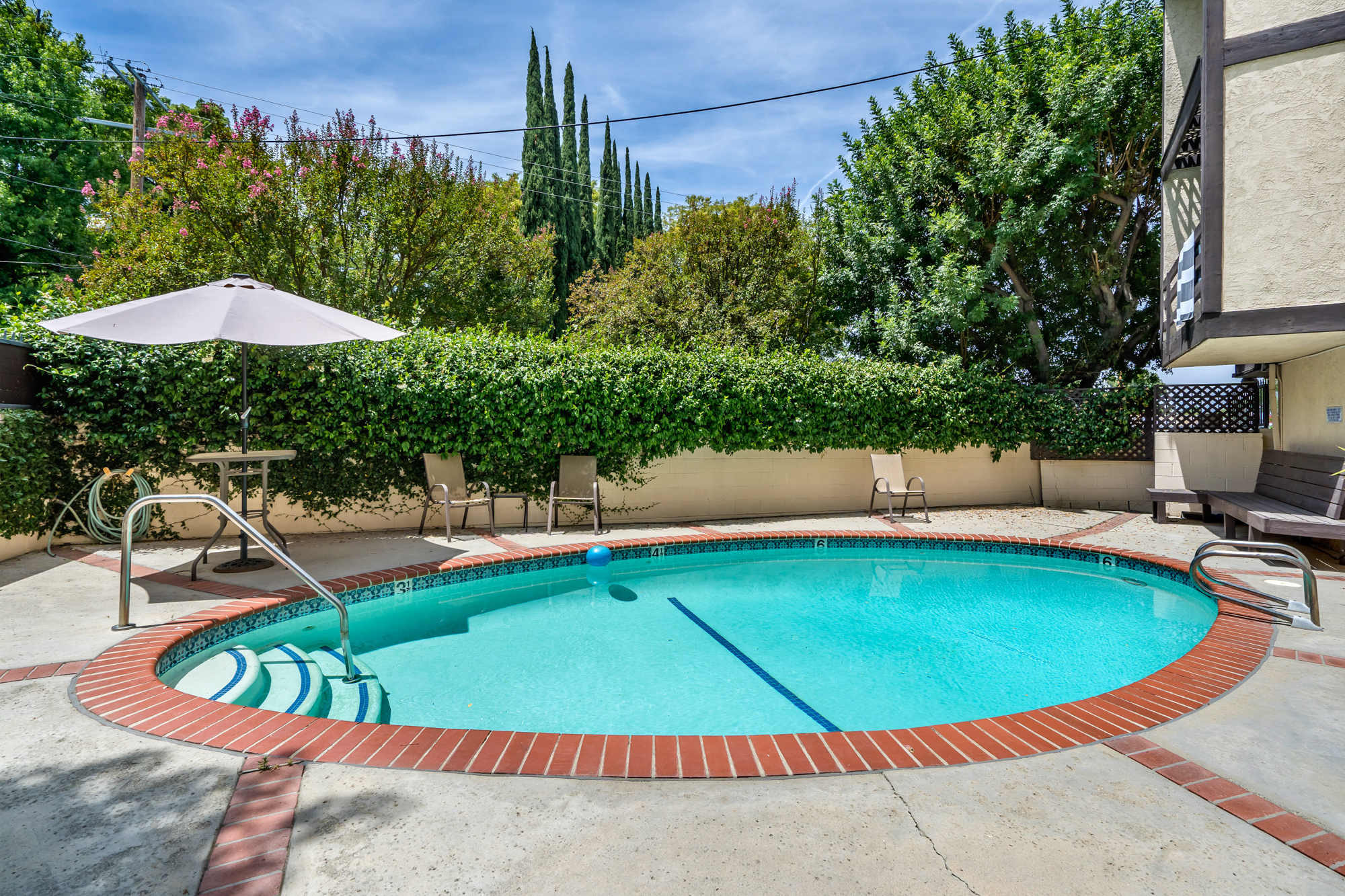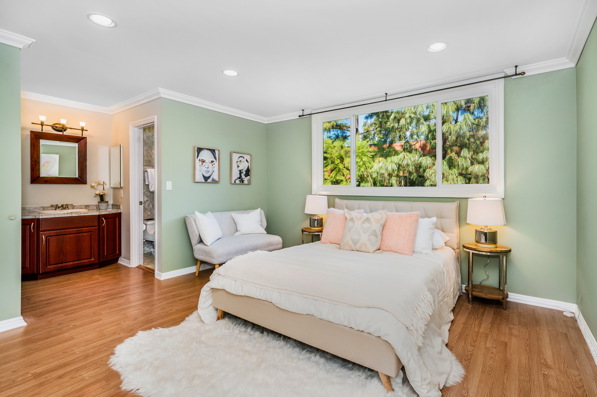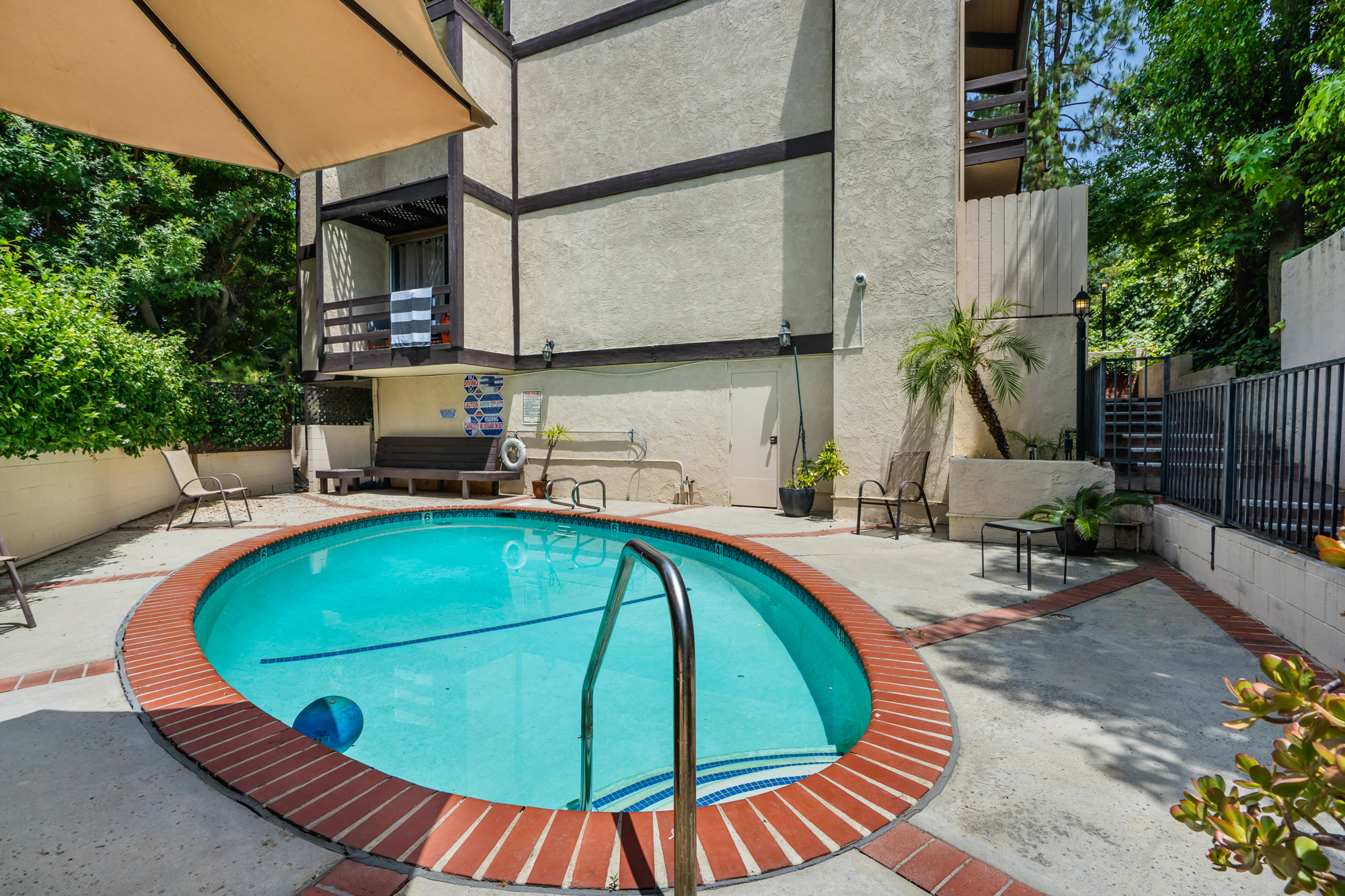 Located South of the Blvd in Prime Encino is this updated 2 bed, 3 bath secluded and serene end unit townhome in the coveted Encino Charter School District. A private entrance and custom wood door greet you as you approach the home. Inside, you will find a great room w/ hardwood floors which seamlessly blend the living & dining spaces. A mahogany & granite fireplace highlights the room while sliding glass french doors flood the space w/ natural light and lead to a private patio. The remodeled kitchen features custom tile floors, granite tile countertops, stainless steel appliances, an abundance of cabinetry, and cozy breakfast nook w/ bay window, perfect for a morning cup of coffee or bite to eat. Upstairs are 2 large ensuite bedrooms. The luxurious master suite has vaulted ceilings, 2 walk in closets + additional closet, large vanity area, & updated modern bath w/ custom tile work. The suite’s tranquil patio overlooks the lush hillside greenery, a perk not afforded to many similar homes. As a rare benefit there is a bonus room on the lower level which houses the washer/dryer and also has plenty of space for a home gym, art studio, playroom, or more. Additional features include recessed lighting throughout, attached 2 car garage + guest parking, multiple storage spaces including an attic, EQ insurance, skylights, crown moulding, & more! Moments from multiple parks, lakes, & the Balboa Park Golf Course, and just steps to Equinox gym and the shops & restaurants of Ventura Blvd!