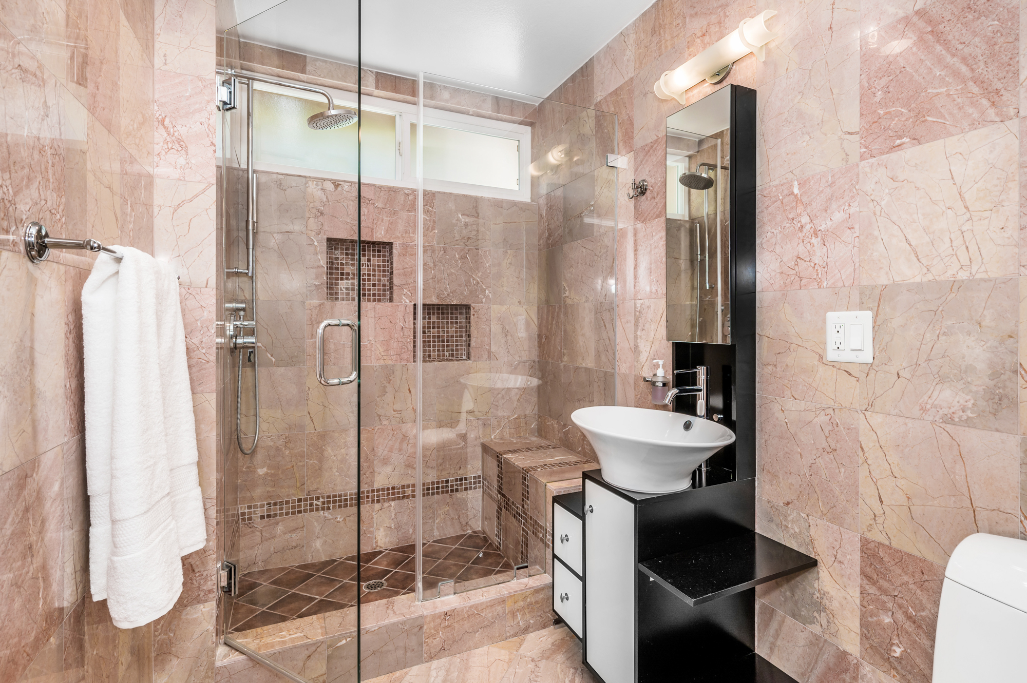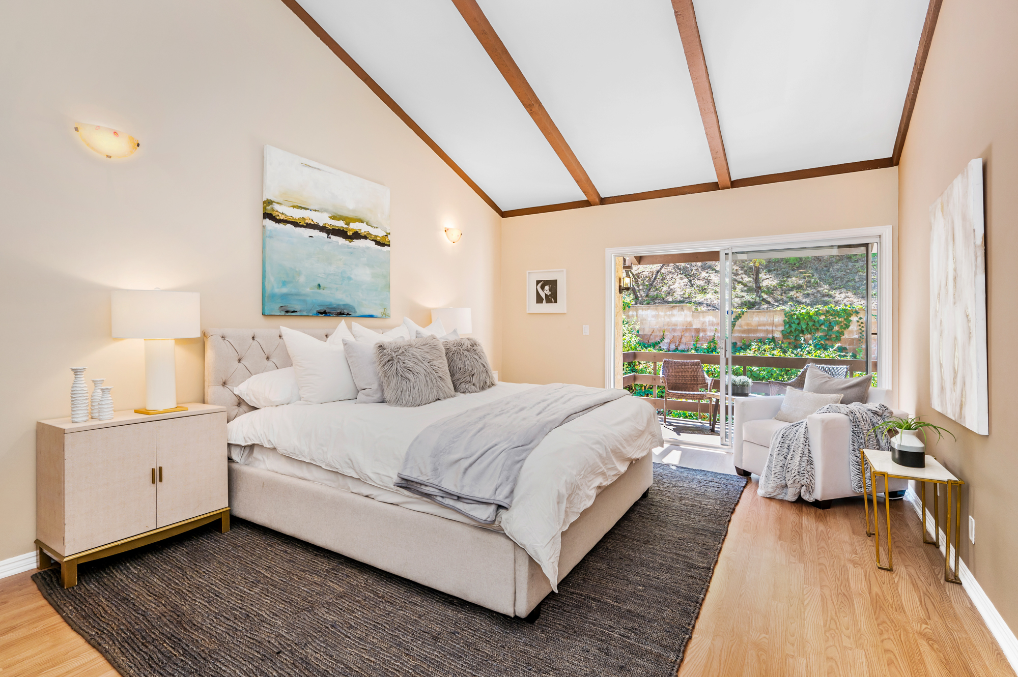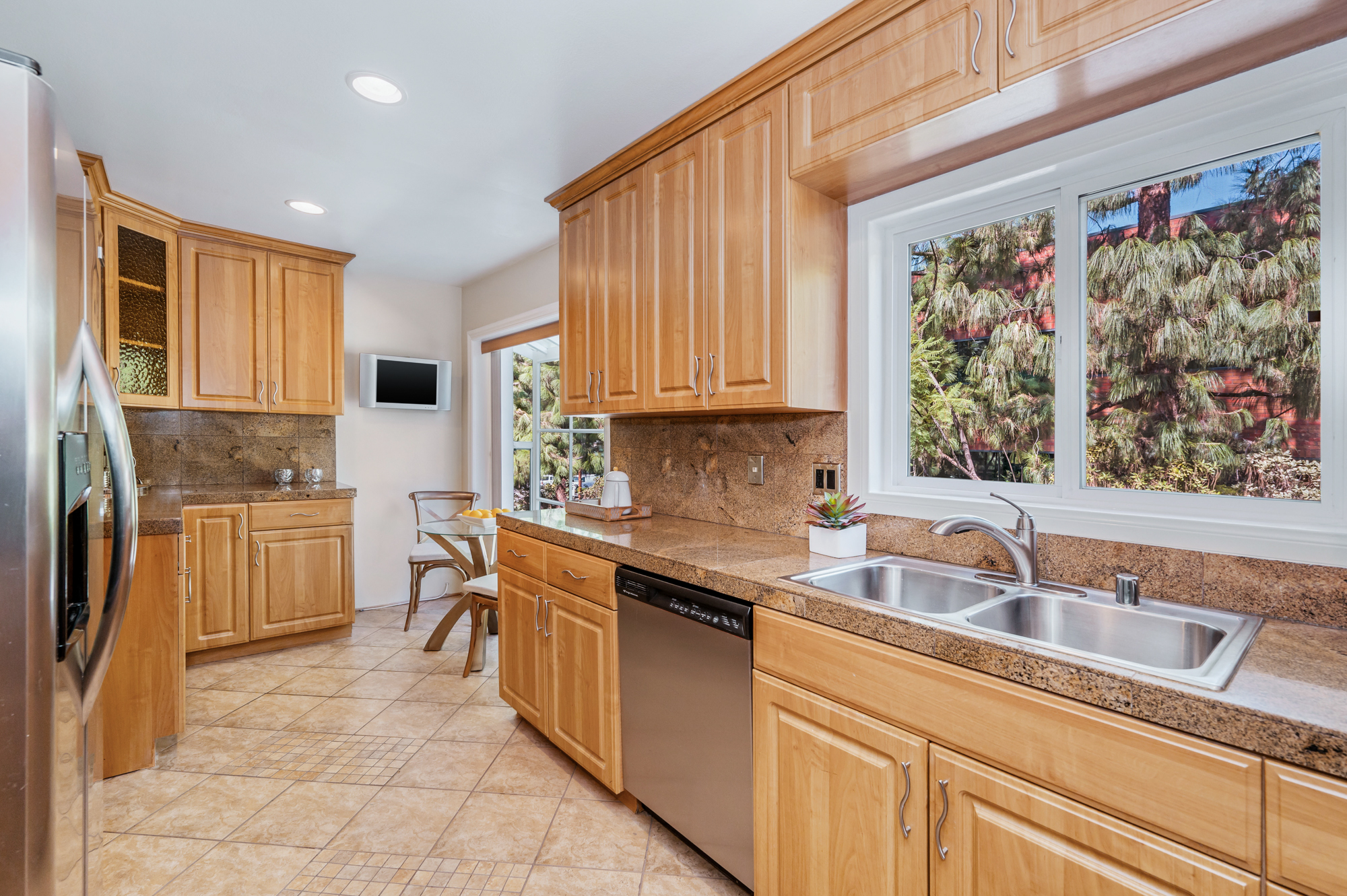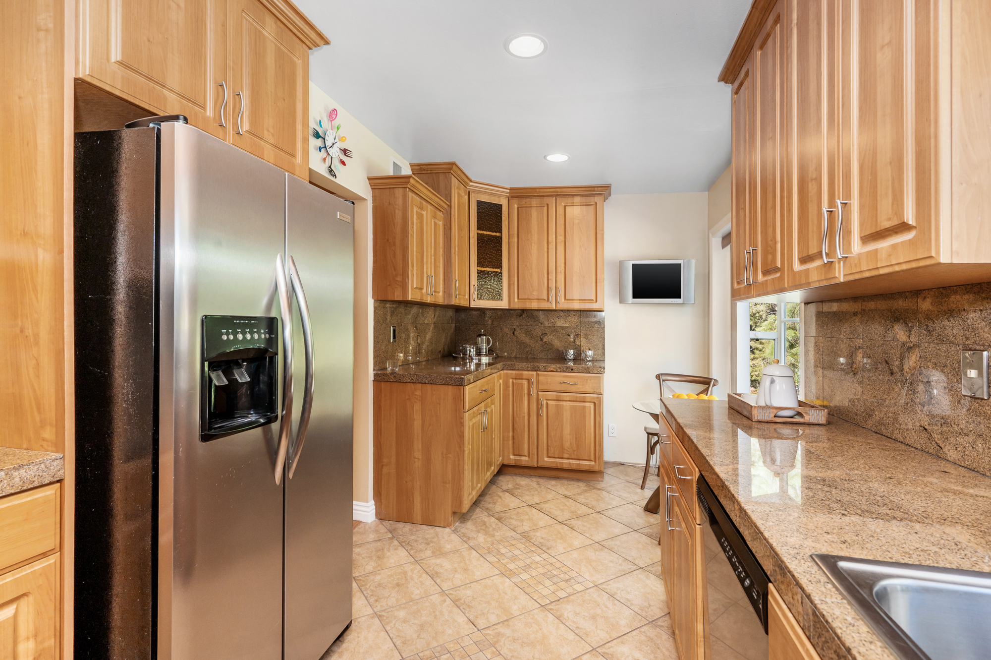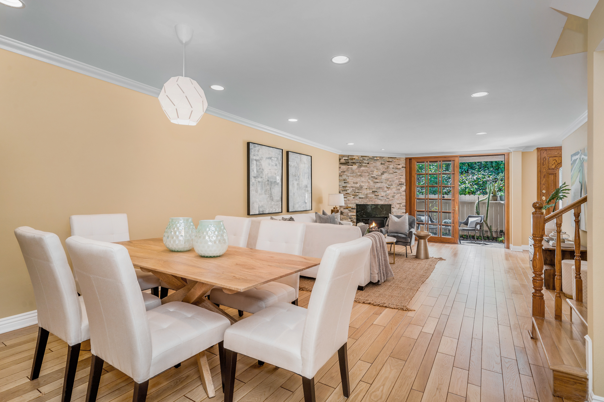 Located South of the Blvd in Prime Encino is this updated 2 bed, 3 bath secluded and serene end unit townhome in the coveted Encino Charter School District. A private entrance and custom wood door greet you as you approach the home. Inside, you will find a great room w/ hardwood floors which seamlessly blend the living & dining spaces. A mahogany & granite fireplace highlights the room while sliding glass french doors flood the space w/ natural light and lead to a private patio. The remodeled kitchen features custom tile floors, granite tile countertops, stainless steel appliances, an abundance of cabinetry, and cozy breakfast nook w/ bay window, perfect for a morning cup of coffee or bite to eat. Upstairs are 2 large ensuite bedrooms. The luxurious master suite has vaulted ceilings, 2 walk in closets + additional closet, large vanity area, & updated modern bath w/ custom tile work. The suite’s tranquil patio overlooks the lush hillside greenery, a perk not afforded to many similar homes. As a rare benefit there is a bonus room on the lower level which houses the washer/dryer and also has plenty of space for a home gym, art studio, playroom, or more. Additional features include recessed lighting throughout, attached 2 car garage + guest parking, multiple storage spaces including an attic, EQ insurance, skylights, crown moulding, & more! Moments from multiple parks, lakes, & the Balboa Park Golf Course, and just steps to Equinox gym and the shops & restaurants of Ventura Blvd!