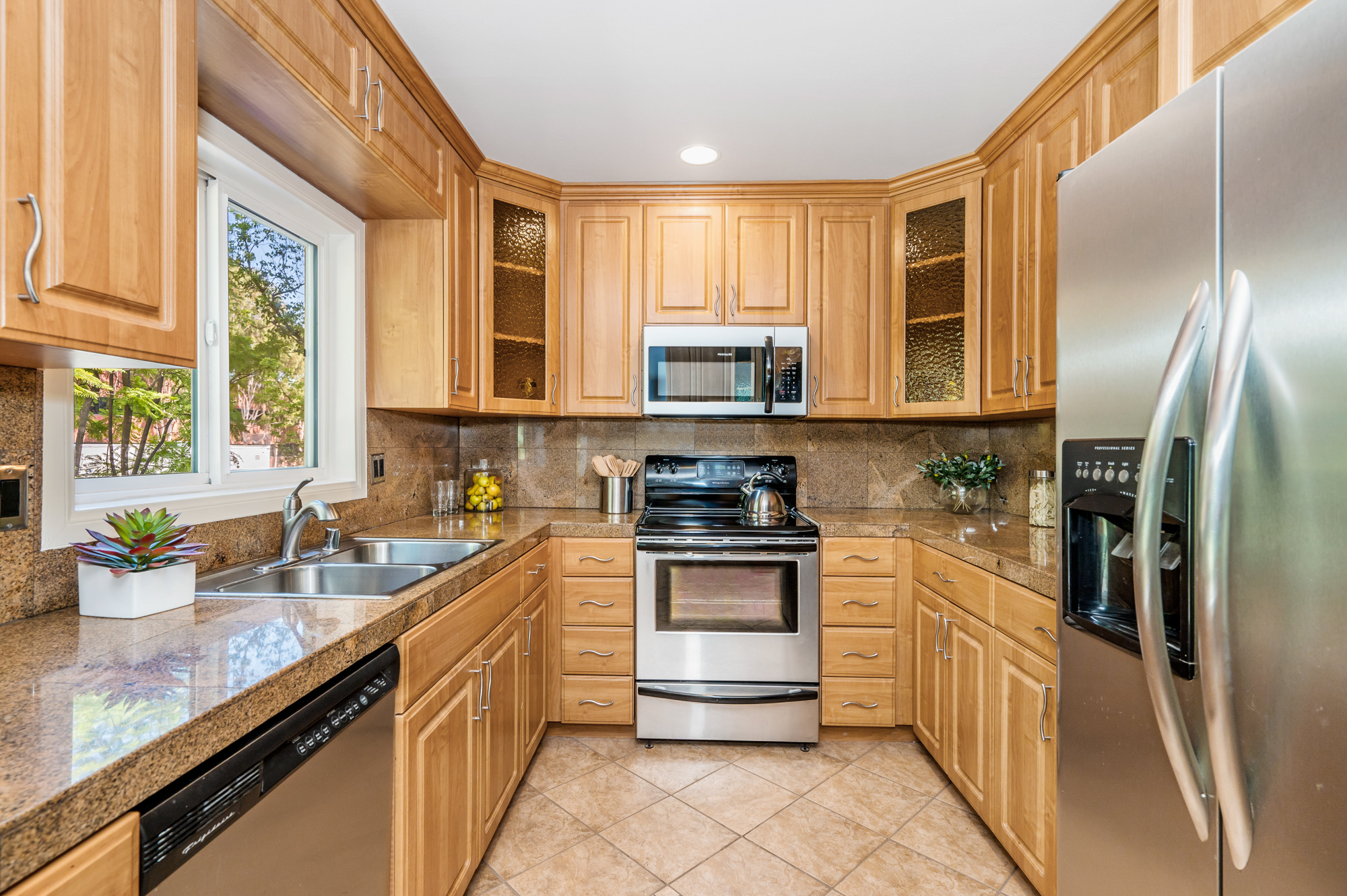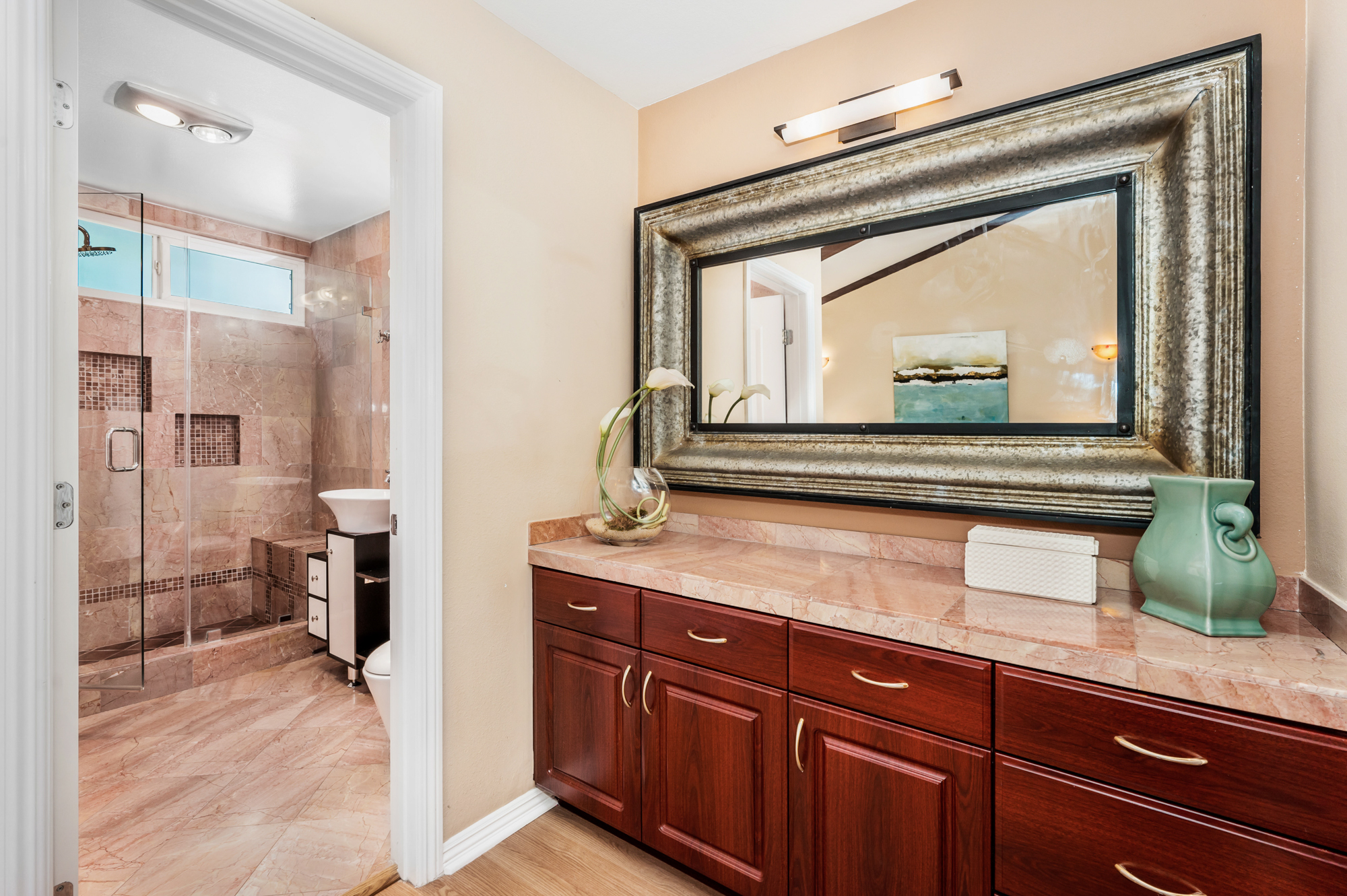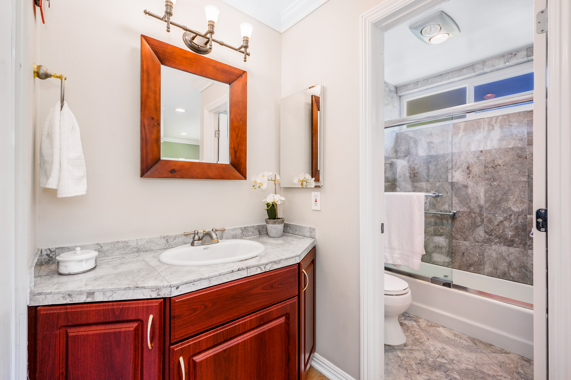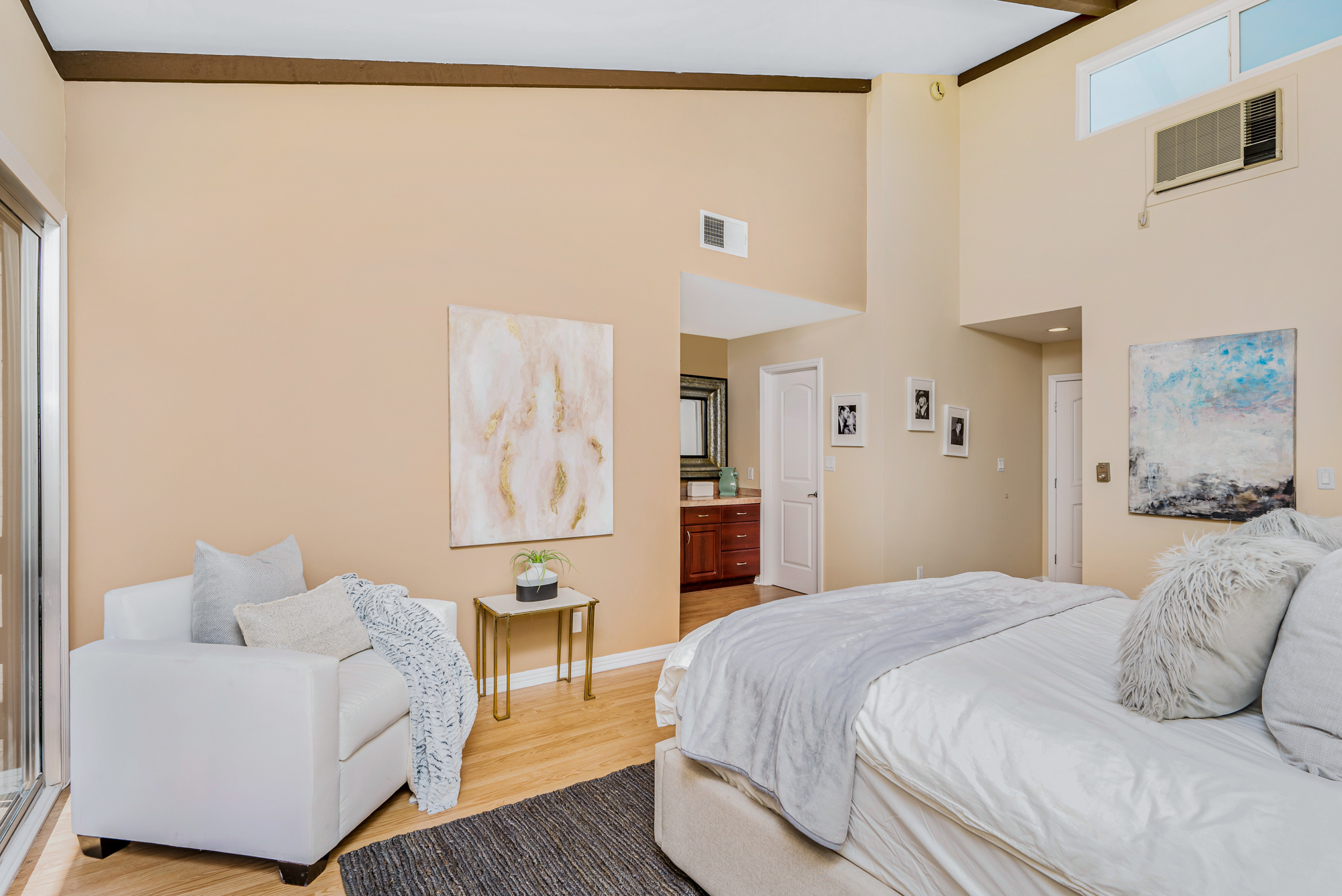 Located South of the Blvd in Prime Encino is this updated 2 bed, 3 bath secluded and serene end unit townhome in the coveted Encino Charter School District. A private entrance and custom wood door greet you as you approach the home. Inside, you will find a great room w/ hardwood floors which seamlessly blend the living & dining spaces. A mahogany & granite fireplace highlights the room while sliding glass french doors flood the space w/ natural light and lead to a private patio. The remodeled kitchen features custom tile floors, granite tile countertops, stainless steel appliances, an abundance of cabinetry, and cozy breakfast nook w/ bay window, perfect for a morning cup of coffee or bite to eat. Upstairs are 2 large ensuite bedrooms. The luxurious master suite has vaulted ceilings, 2 walk in closets + additional closet, large vanity area, & updated modern bath w/ custom tile work. The suite’s tranquil patio overlooks the lush hillside greenery, a perk not afforded to many similar homes. As a rare benefit there is a bonus room on the lower level which houses the washer/dryer and also has plenty of space for a home gym, art studio, playroom, or more. Additional features include recessed lighting throughout, attached 2 car garage + guest parking, multiple storage spaces including an attic, EQ insurance, skylights, crown moulding, & more! Moments from multiple parks, lakes, & the Balboa Park Golf Course, and just steps to Equinox gym and the shops & restaurants of Ventura Blvd!