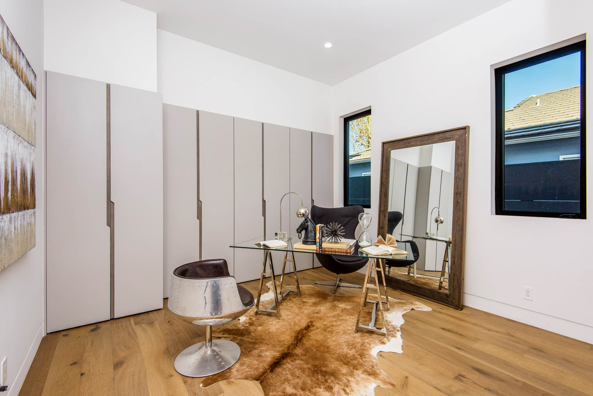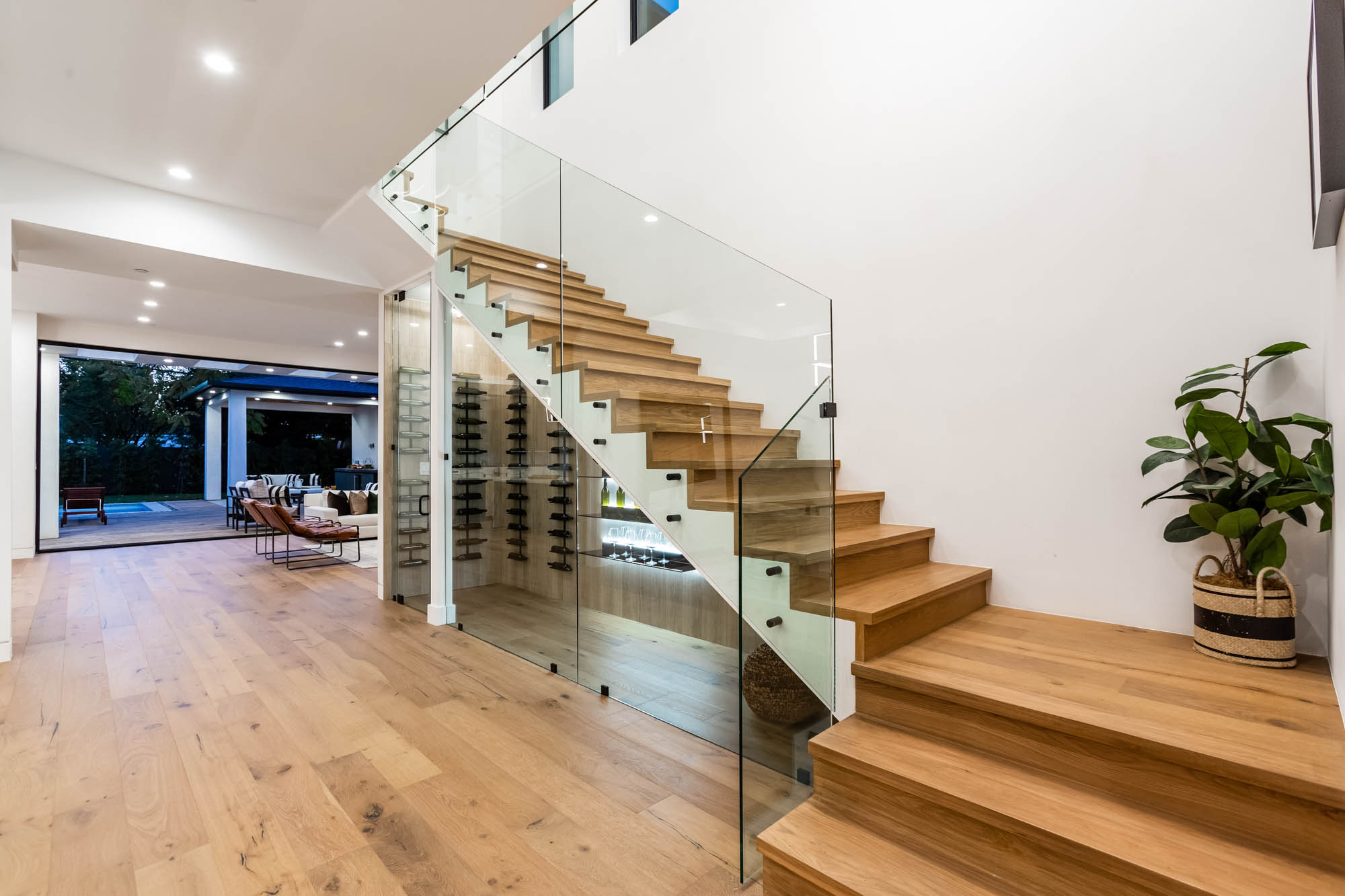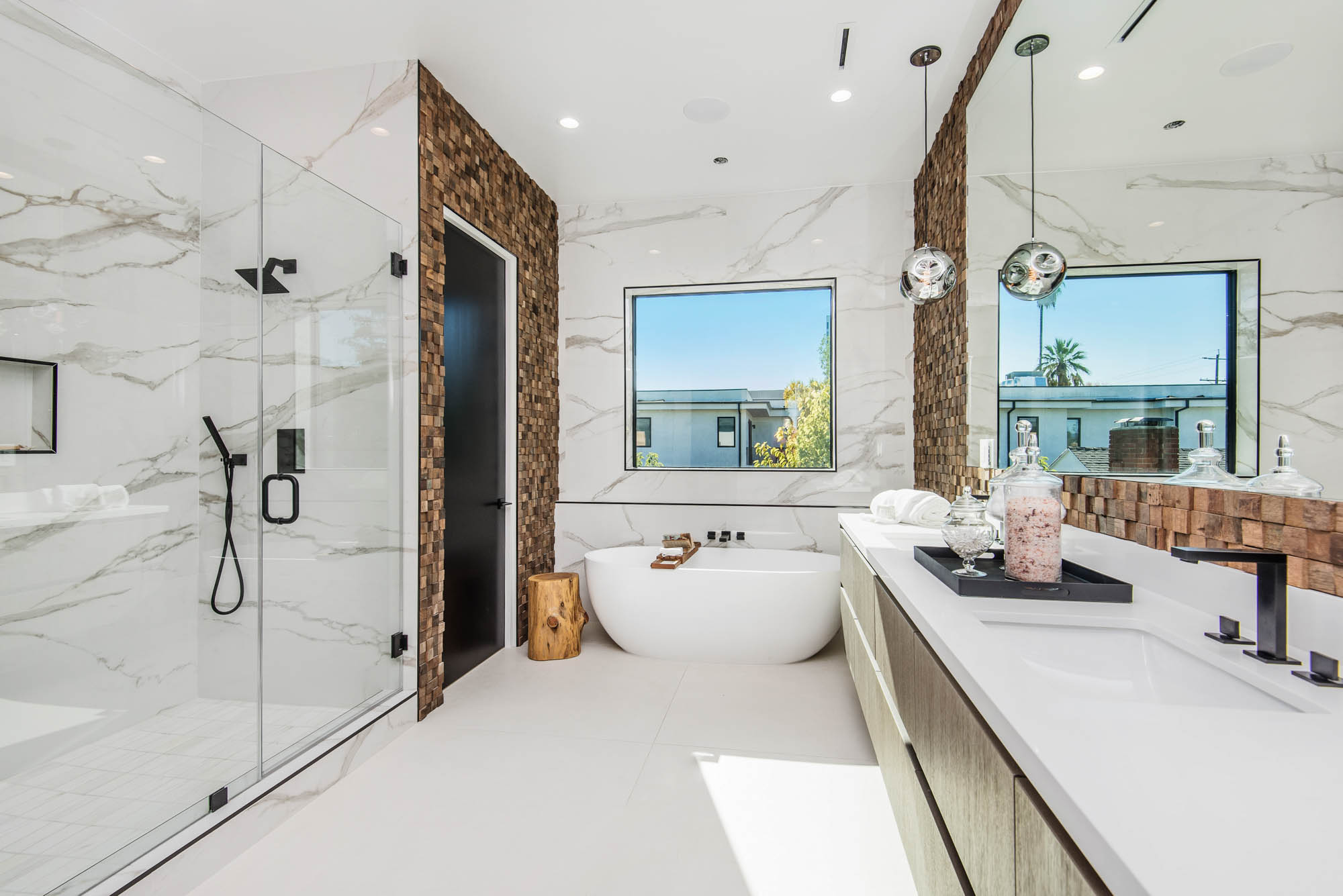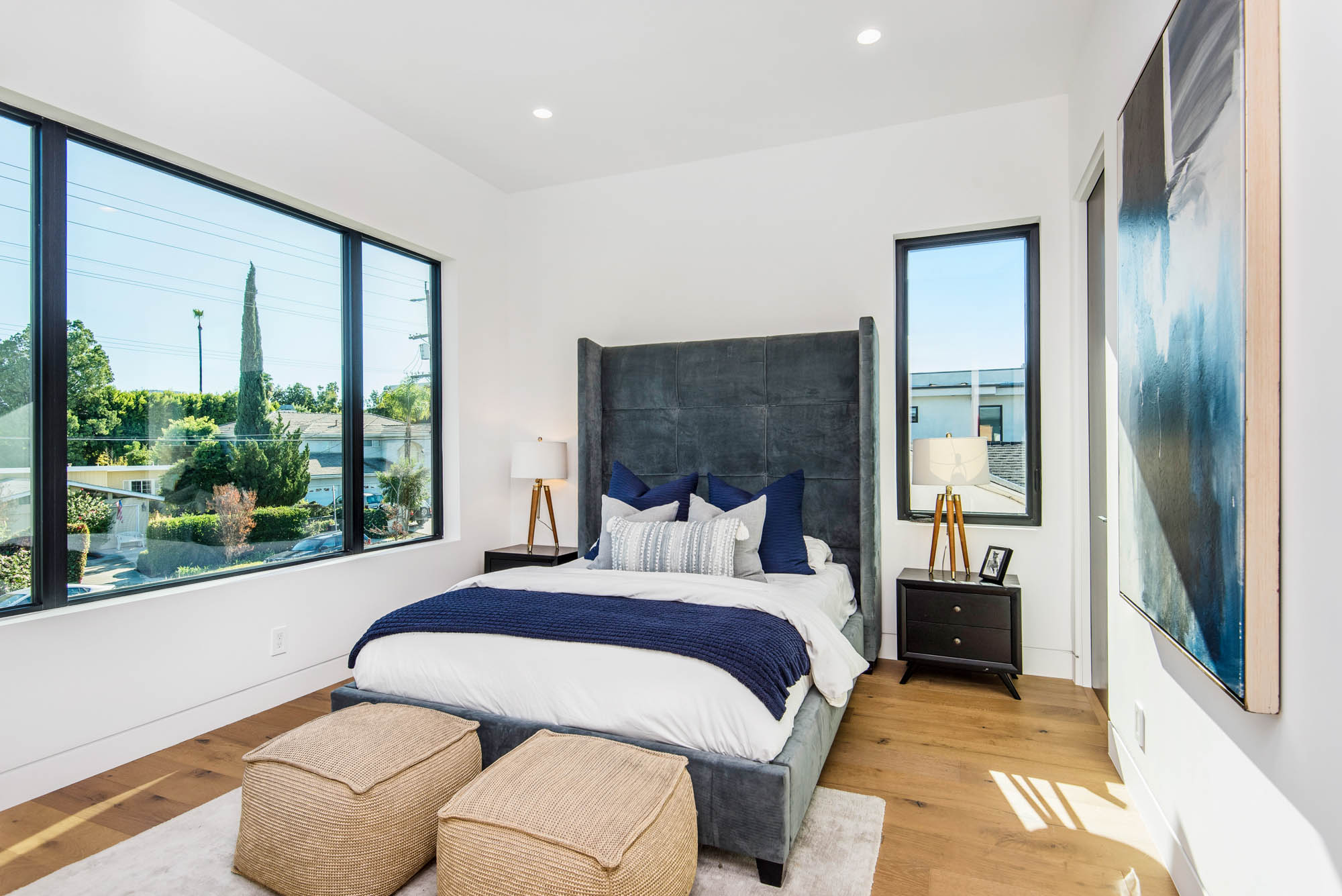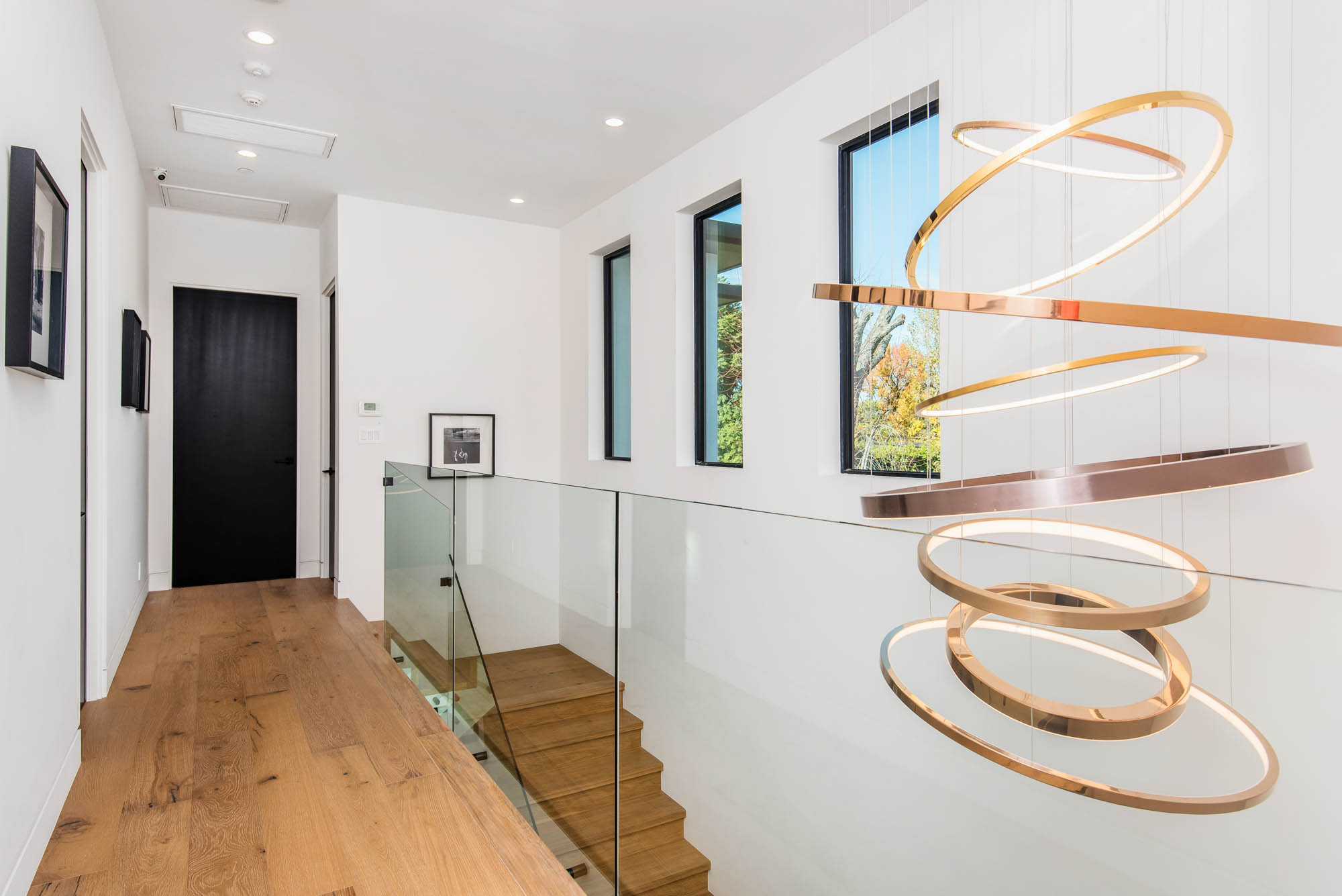 Exquisite soft modern in sought after Encino location. Walk through this open layout home with exceptional indoor-outdoor living all illuminated with immense natural light and custom designed light fixtures. First floor hosts a stunning dining room, complete with glass encased wine room directly across, modern light fixtures, Hardwood Flooring, Large living room w/ custom fireplace, ensuite bedroom, Home theater, and impressive Chefs Kitchen. Bold and contrasting kitchen features an abundance of cabinet/counter space, top of the line appliances,& large center Island. Through large pocket doors reveal an entertainers backyard that will awe w/resort like Pool & Spa, Cabana, Built-in BBQ, covered dining/entertaining space, and generous greenery for privacy. Just upstairs, large statement making light fixtures guides your way to the Master Suite and remaining ensuite bedrooms. Master bed features glass sliding doors, boutique like walk in closet, and modern bathroom. Incredible attention to detail is proven with all the fine fixtures and finishes of this home. Additional amenities include smart home capabilities, laundry room, home theater, wine room, 2 balconies, and so much more! A property of uncompromising quality and style! Location just seconds away from Ventura Blvd, shopping, dining. Must See!