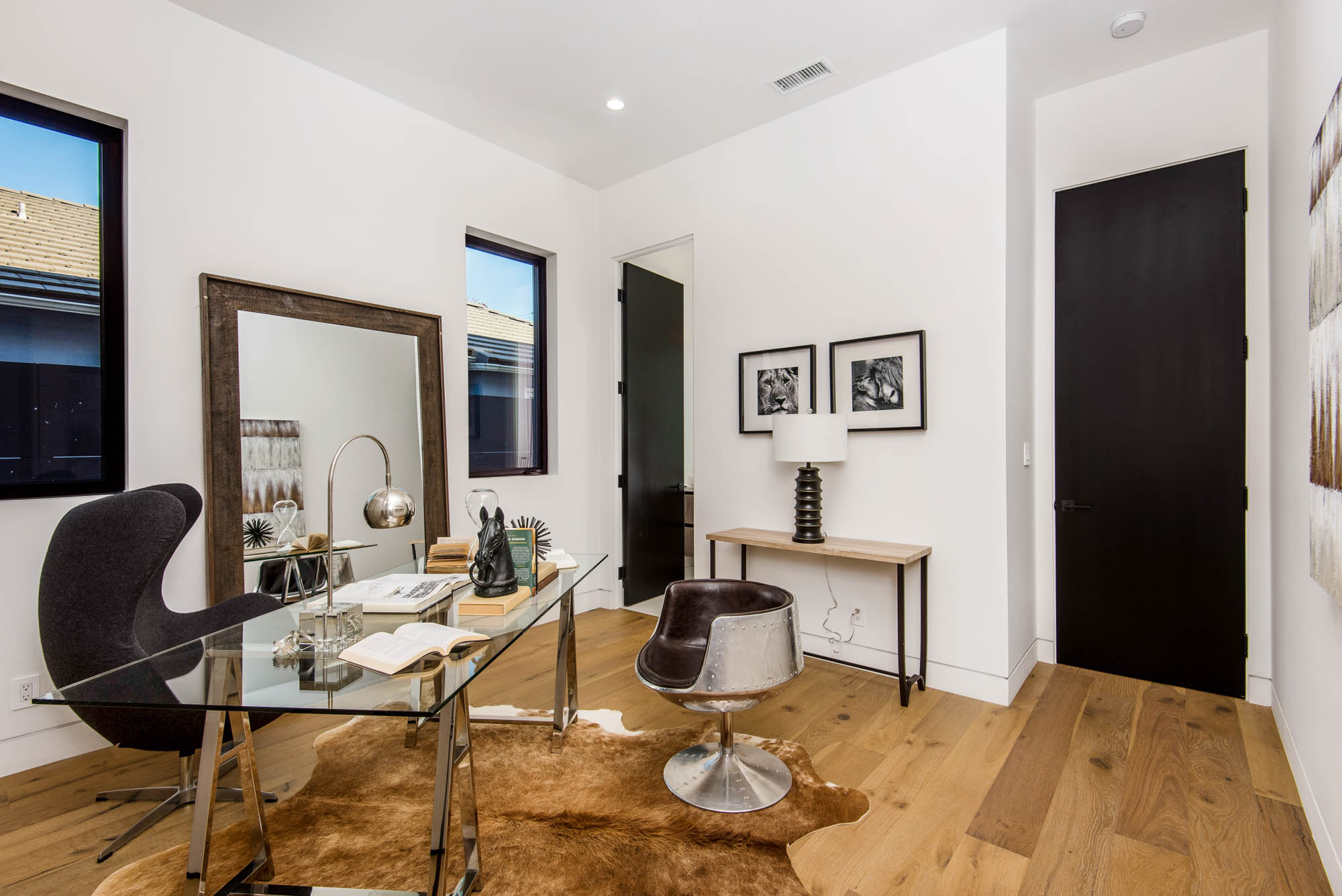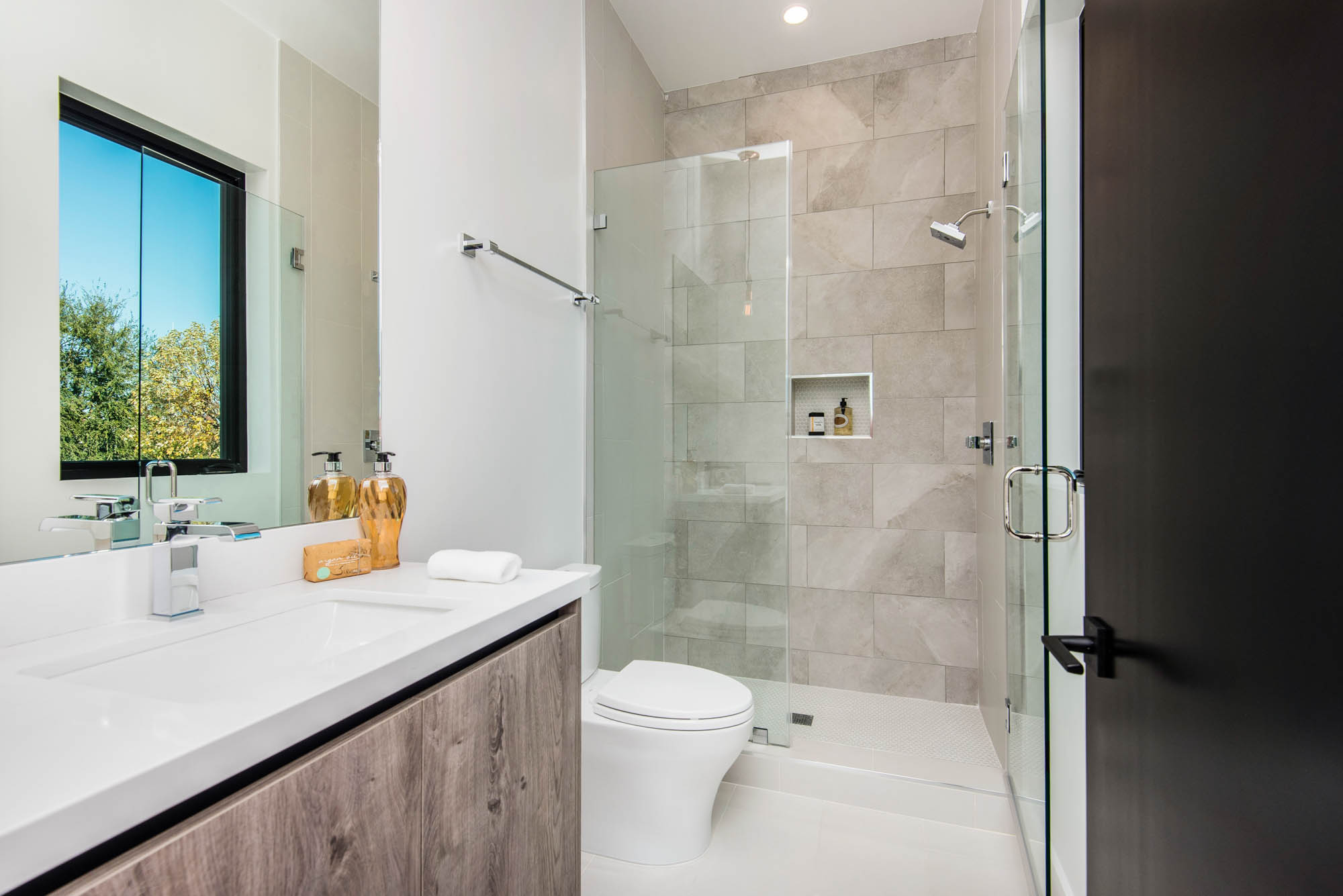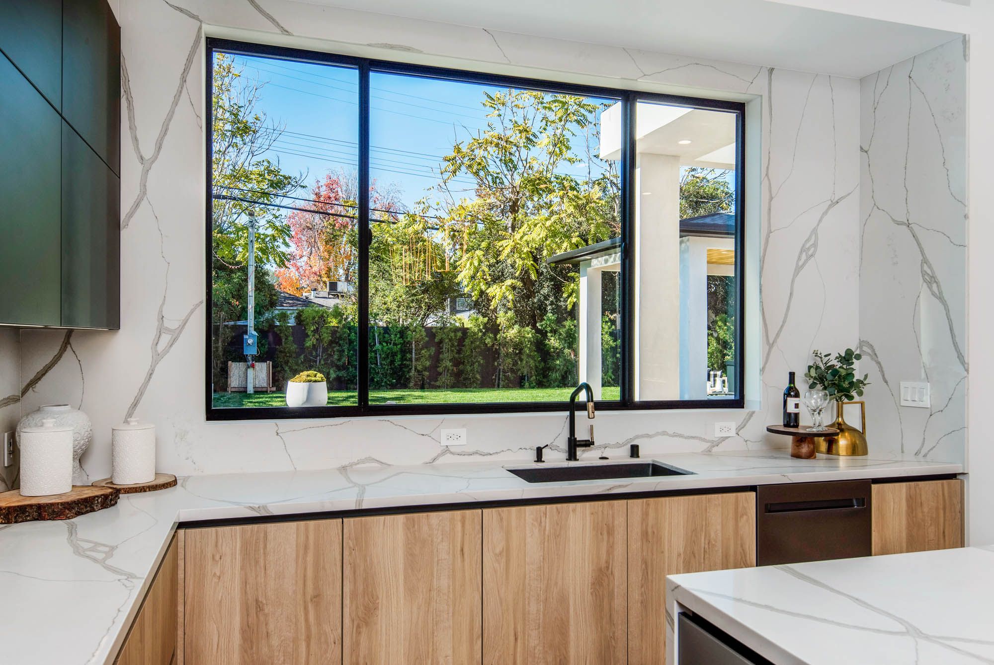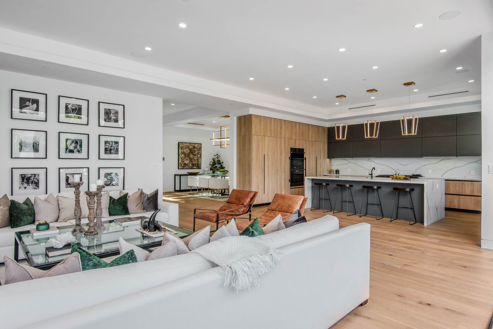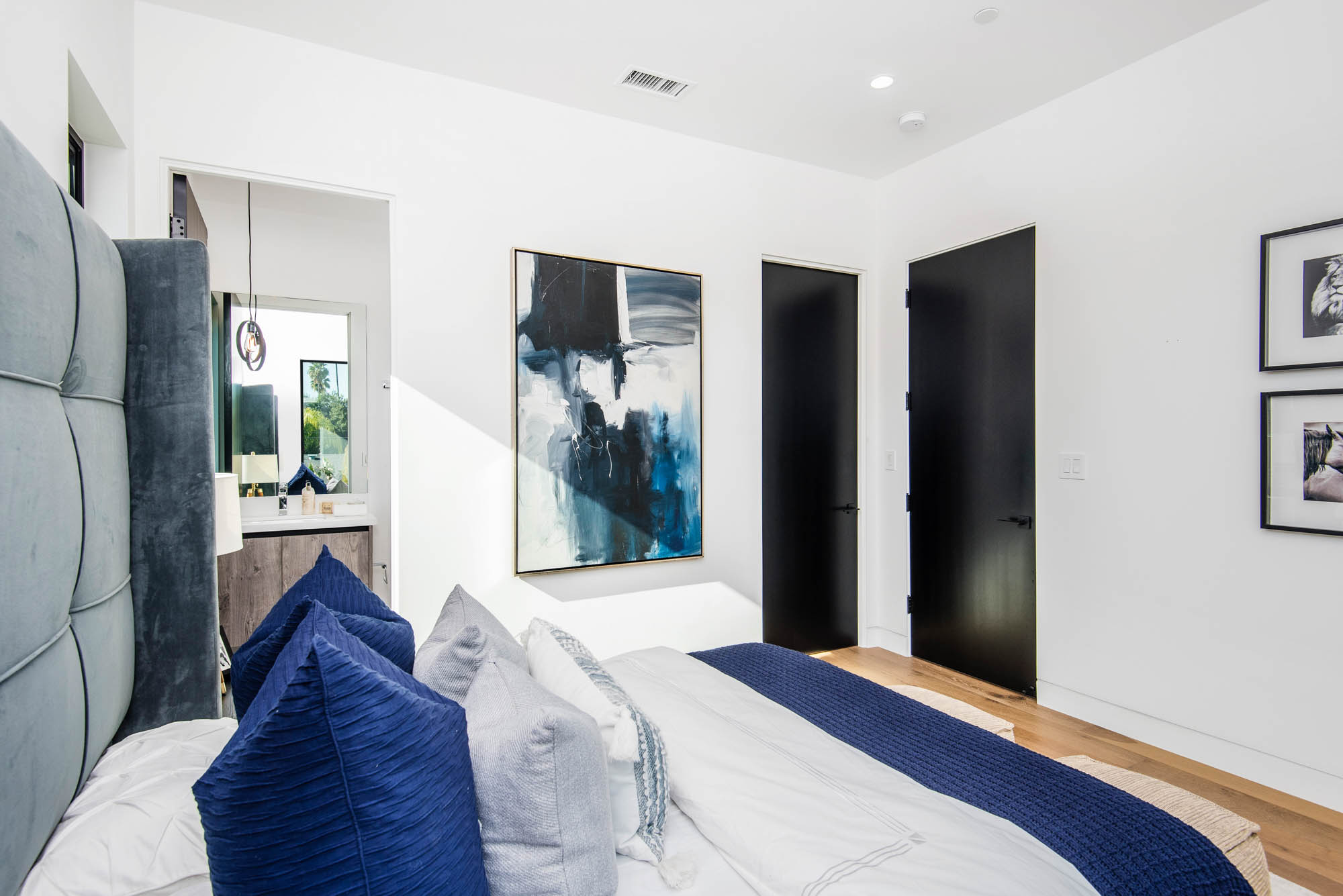 Exquisite soft modern in sought after Encino location. Walk through this open layout home with exceptional indoor-outdoor living all illuminated with immense natural light and custom designed light fixtures. First floor hosts a stunning dining room, complete with glass encased wine room directly across, modern light fixtures, Hardwood Flooring, Large living room w/ custom fireplace, ensuite bedroom, Home theater, and impressive Chefs Kitchen. Bold and contrasting kitchen features an abundance of cabinet/counter space, top of the line appliances,& large center Island. Through large pocket doors reveal an entertainers backyard that will awe w/resort like Pool & Spa, Cabana, Built-in BBQ, covered dining/entertaining space, and generous greenery for privacy. Just upstairs, large statement making light fixtures guides your way to the Master Suite and remaining ensuite bedrooms. Master bed features glass sliding doors, boutique like walk in closet, and modern bathroom. Incredible attention to detail is proven with all the fine fixtures and finishes of this home. Additional amenities include smart home capabilities, laundry room, home theater, wine room, 2 balconies, and so much more! A property of uncompromising quality and style! Location just seconds away from Ventura Blvd, shopping, dining. Must See!