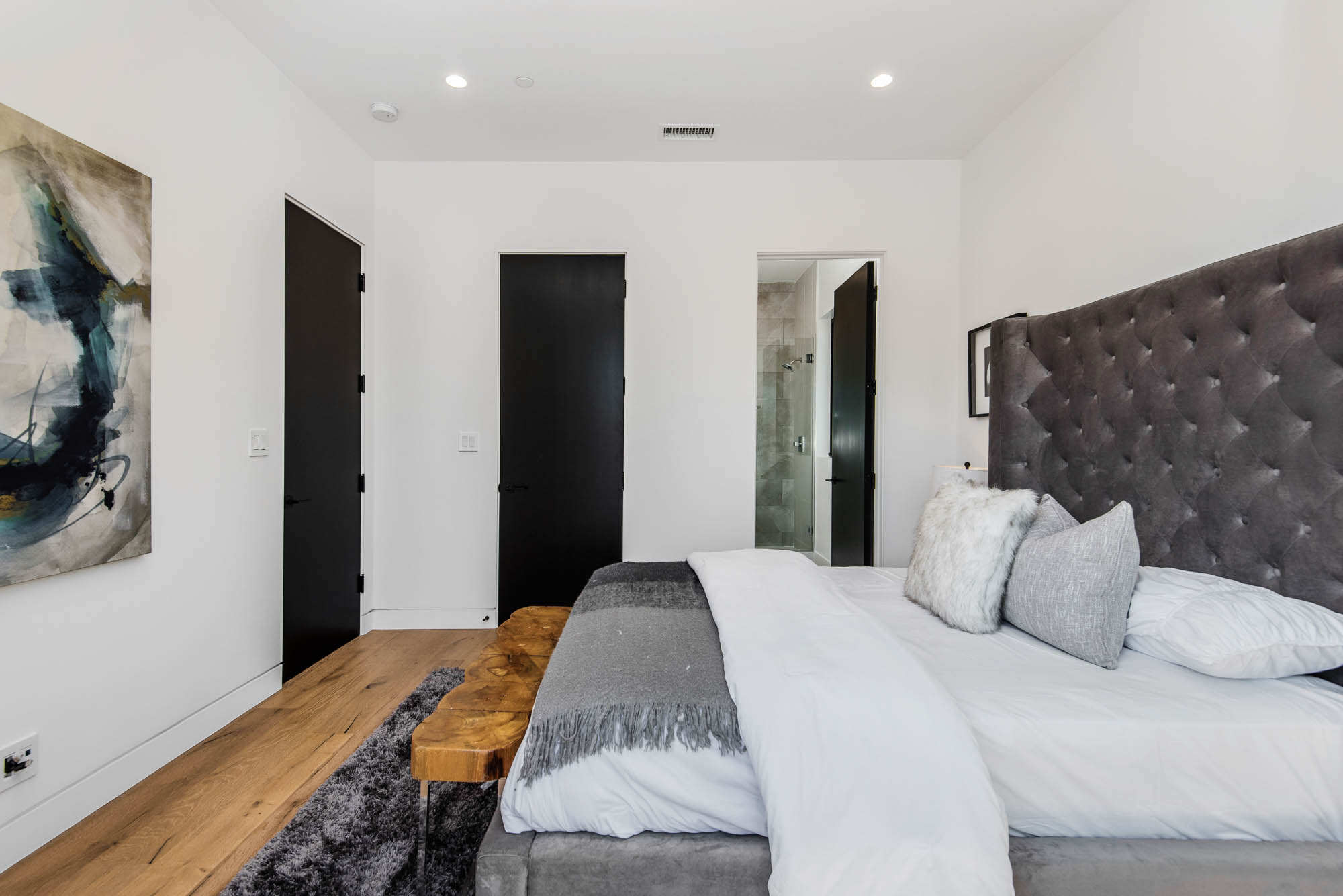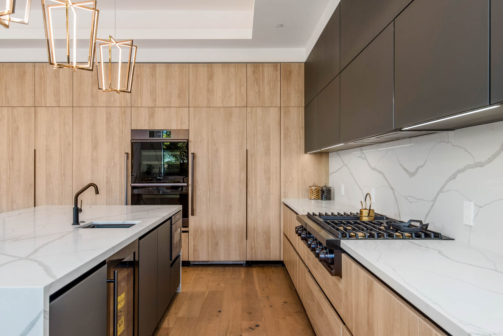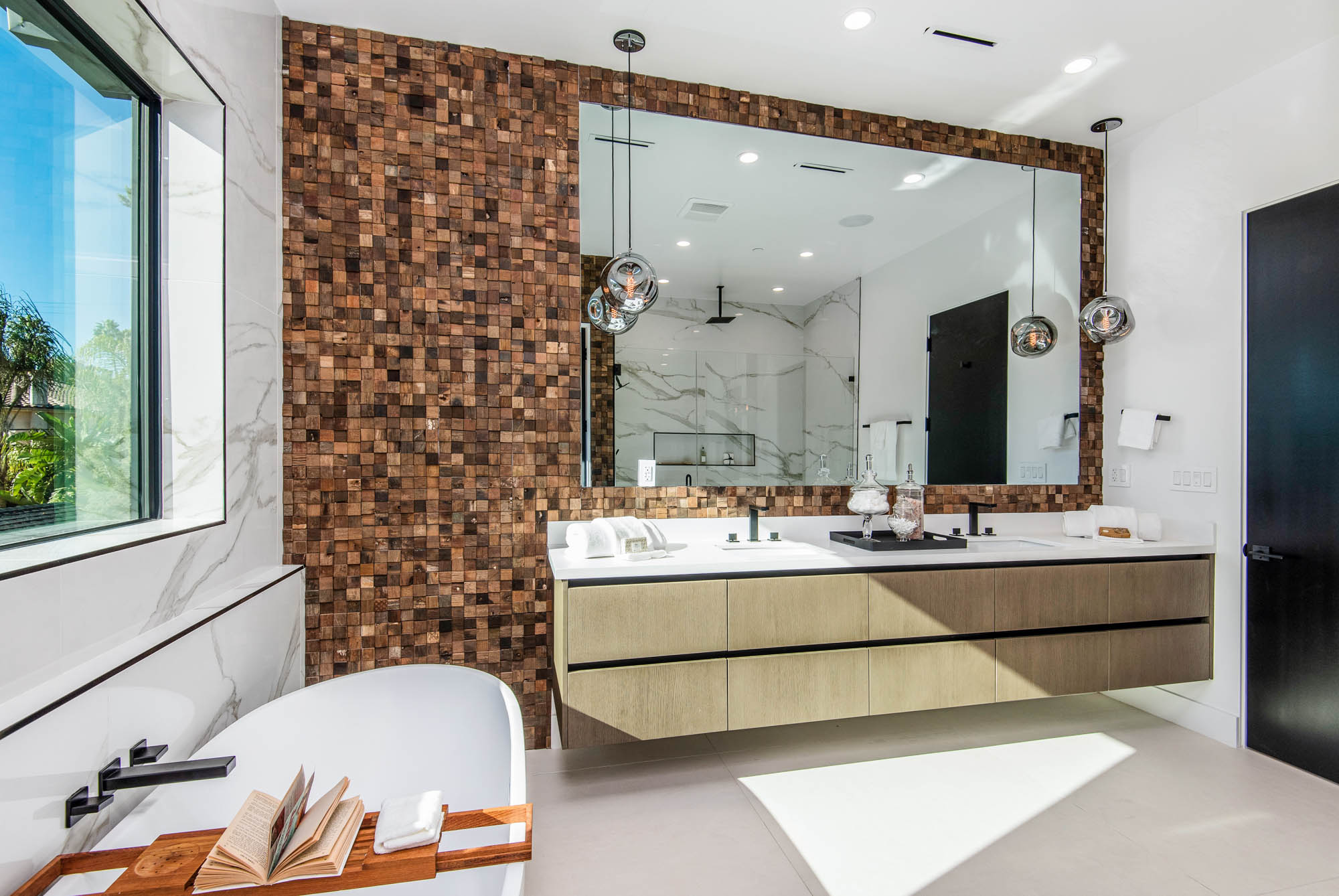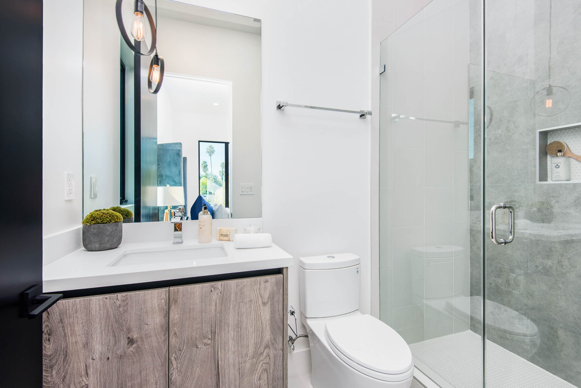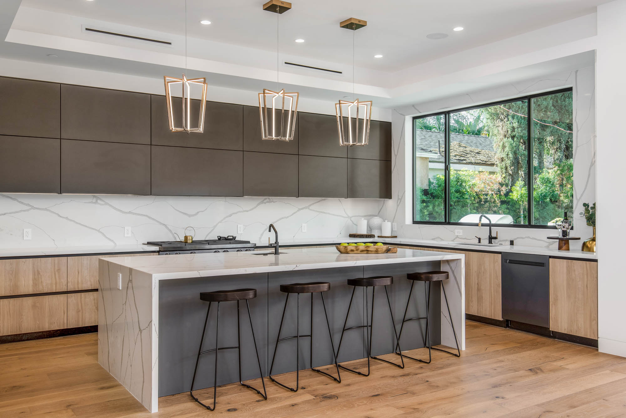 Exquisite soft modern in sought after Encino location. Walk through this open layout home with exceptional indoor-outdoor living all illuminated with immense natural light and custom designed light fixtures. First floor hosts a stunning dining room, complete with glass encased wine room directly across, modern light fixtures, Hardwood Flooring, Large living room w/ custom fireplace, ensuite bedroom, Home theater, and impressive Chefs Kitchen. Bold and contrasting kitchen features an abundance of cabinet/counter space, top of the line appliances,& large center Island. Through large pocket doors reveal an entertainers backyard that will awe w/resort like Pool & Spa, Cabana, Built-in BBQ, covered dining/entertaining space, and generous greenery for privacy. Just upstairs, large statement making light fixtures guides your way to the Master Suite and remaining ensuite bedrooms. Master bed features glass sliding doors, boutique like walk in closet, and modern bathroom. Incredible attention to detail is proven with all the fine fixtures and finishes of this home. Additional amenities include smart home capabilities, laundry room, home theater, wine room, 2 balconies, and so much more! A property of uncompromising quality and style! Location just seconds away from Ventura Blvd, shopping, dining. Must See!