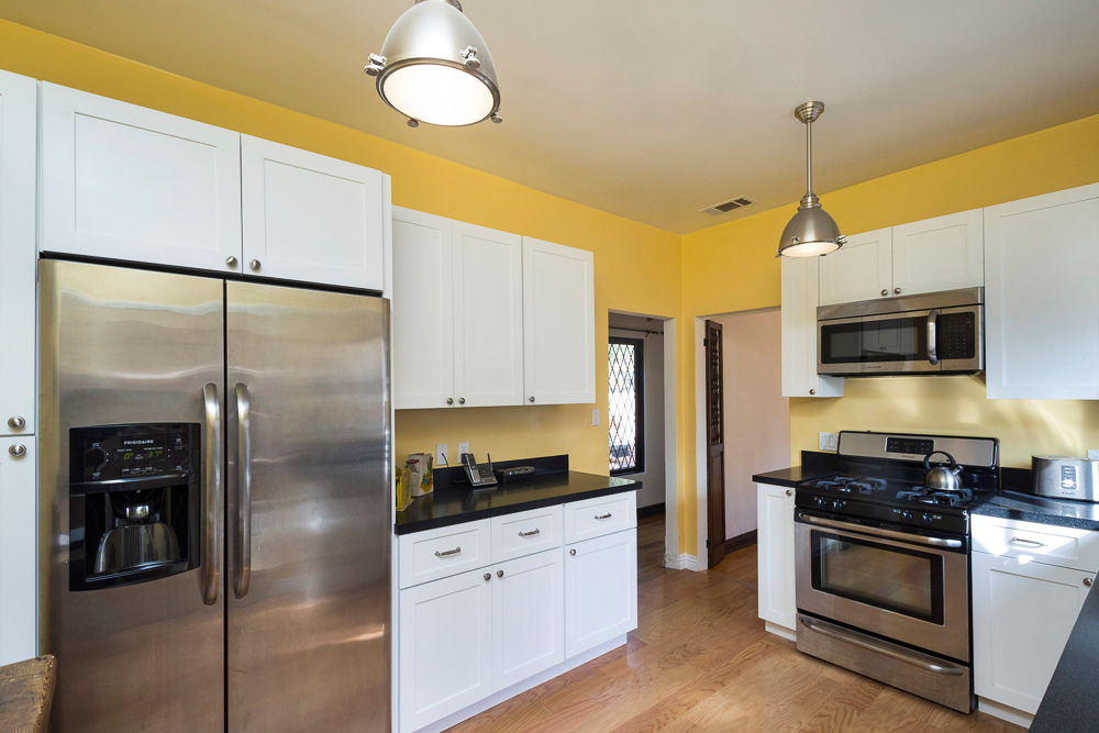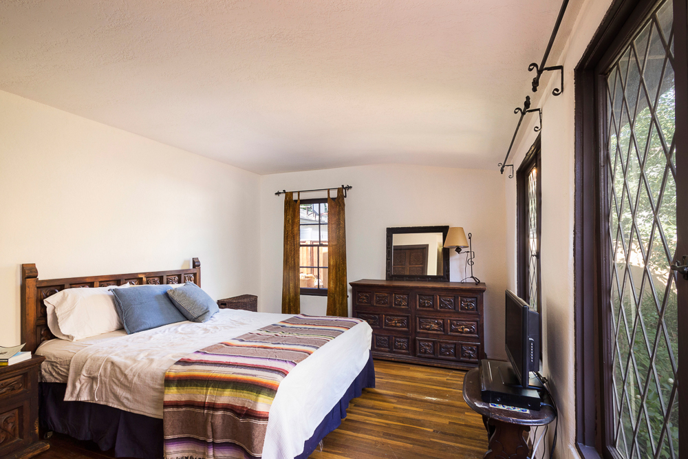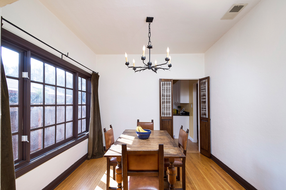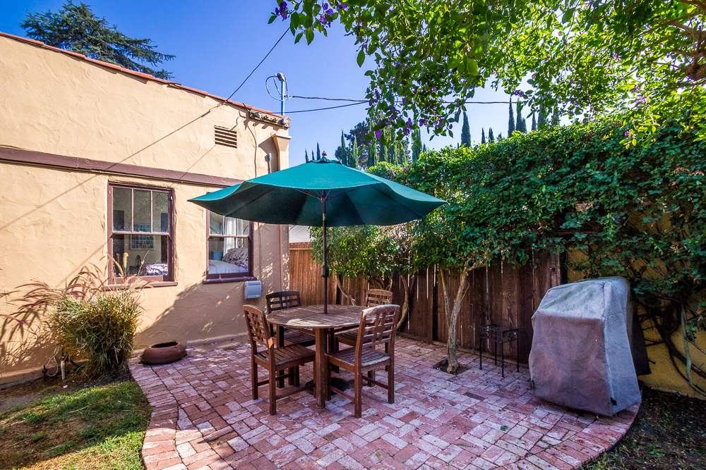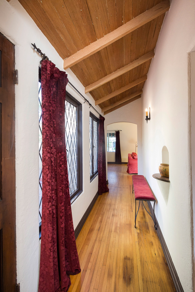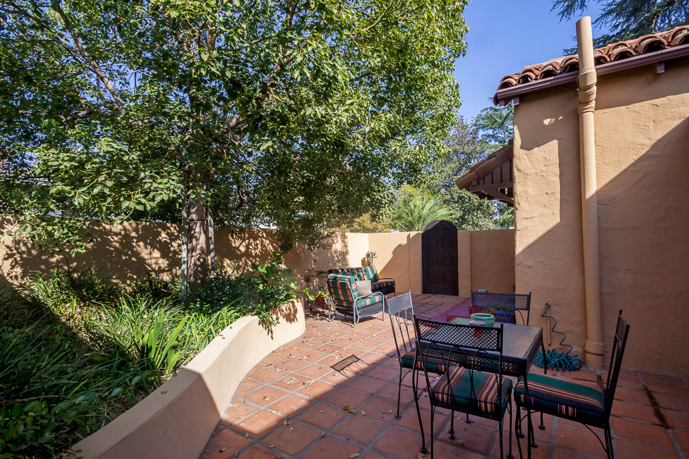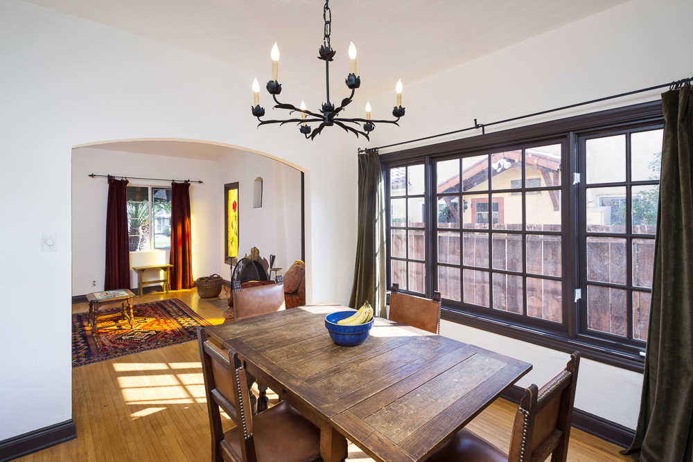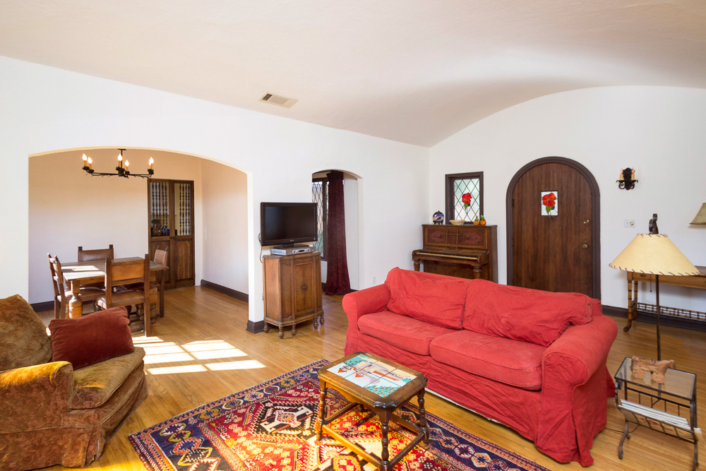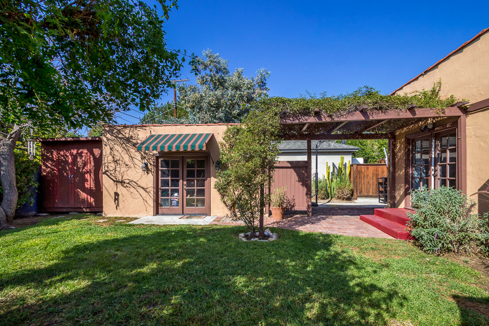 SOLD 1/31/14. Located on a quiet street, this authentic Spanish home was built in 1925 & retains all the character of that period. This 3 bedroom1.5 bathroom house is set back from the street, a large gated courtyard provides great privacy and additional space for entertainment. Front door leads into the living room with vaulted barrel ceilings, beautiful hardwood floors, Spanish style fireplace and stained glass windows that look out to the lush front yard. Good size formal dining room with large window that opens to the kitchen. Kitchen has been completely remodeled and upgraded with custom cabinets, stainless steel appliances and quartz like countertops. Open floor plan provides gracious transition from room to room. Hallway to the bedrooms and bathrooms has dramatic ceilings with soaring, sand blasted beams. The detached 2 car garage was converted in to a great bonus room that can be used as an office/ Den/workout room or media room. Deep grassy yard w/mature landscaping makes this a perfect home. Updated electrical, copper plumbing central Air/Heat. Top notch private schools, walking distance to restaurants, theater,& lively NoHo district,. W/a short drive to Hollywood Bowl, Staples Center & Studios within 5 miles, what else does one need?