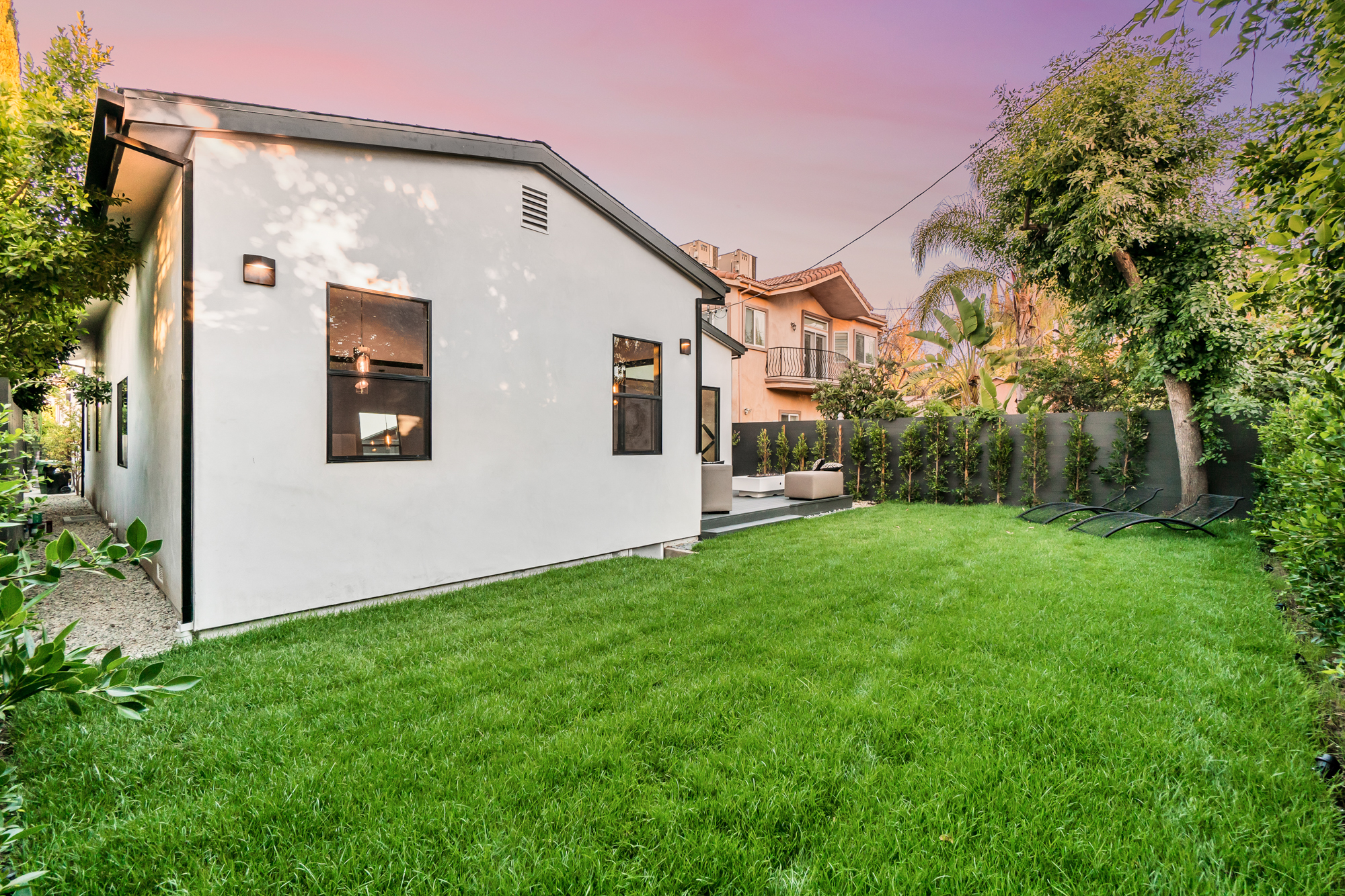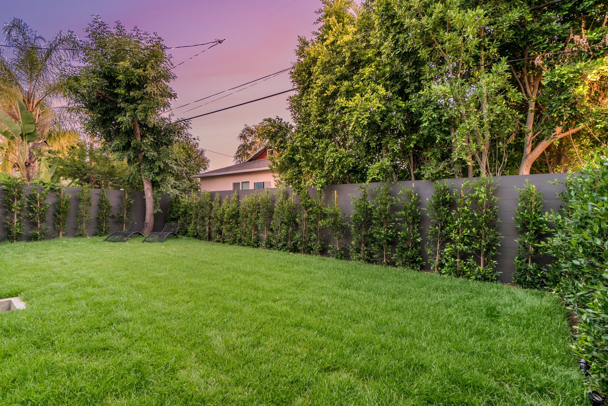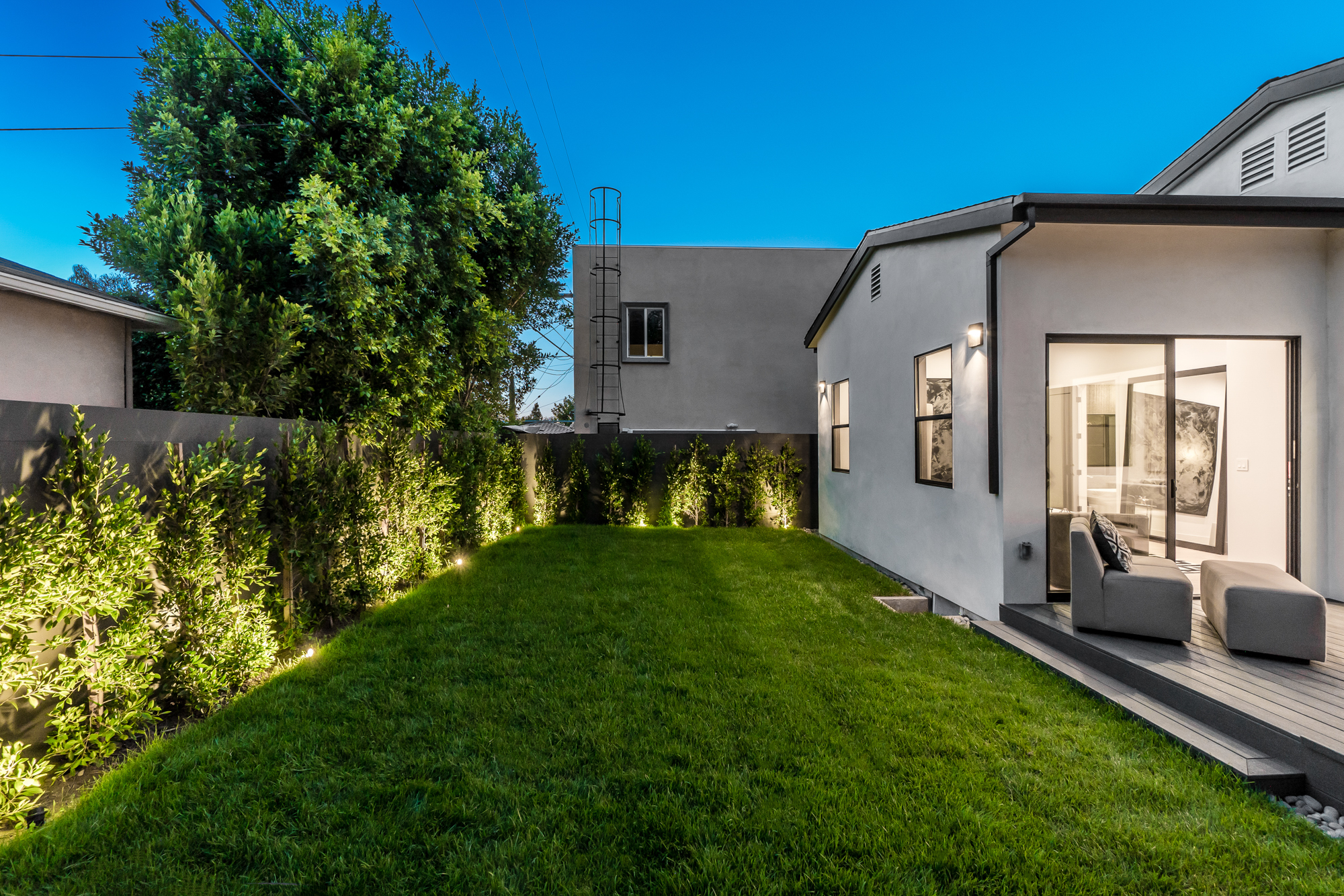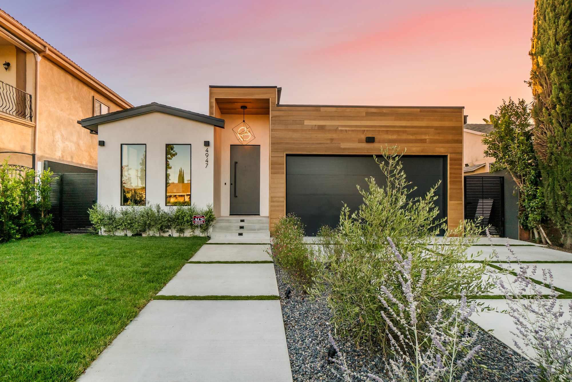 Welcome to your sleek single story modern masterpiece located in prime Encino, south of the boulevard. Completely brand new home, finished in summer of 2020. The natural wood and dark garage contrasted exterior creates a stunning, bold look that flows throughout the home. Striking curb appeal with pristine landscaping attracts all who enter. This extraordinary home was constructed with meticulous attention to detail from custom furnishings to gorgeous built ins and beautiful light fixtures. Upon entry, you are greeted with 11 ft soaring ceilings that extend throughout the home, light oak wood floors, and an incredibly open floor plan. Ambient lighting showcased inside and out elevates a luxury feel. The large and inviting formal living room adjacent to the dining room naturally flows into the glamorous chef’s kitchen. Featuring a custom gold plated backsplash, custom cabinetry, top of the line appliances, and a center island showcasing a stunning quartzite countertop with room for seating. Natural light pours in throughout the house from large sliding glass doors leading from the family room to the tranquil backyard. Backyard deck offers space for lounging around the cozy built in fire pit and leads out to the spacious and lush grassy yard, great for entertaining, playing, and relaxing. Majestic master suite provides private access to the backyard, boasting walk in closet, and grand master bath with soaking tub, walk in shower, and dual sinks. Additional amenities include laundry room, dry bar, 2 car garage, security system, Nest A/C thermostat, and so much more! Located just minutes from Ventura blvd’s trendy shops and and fine dining, this home is a must see and experience that can’t be beat!