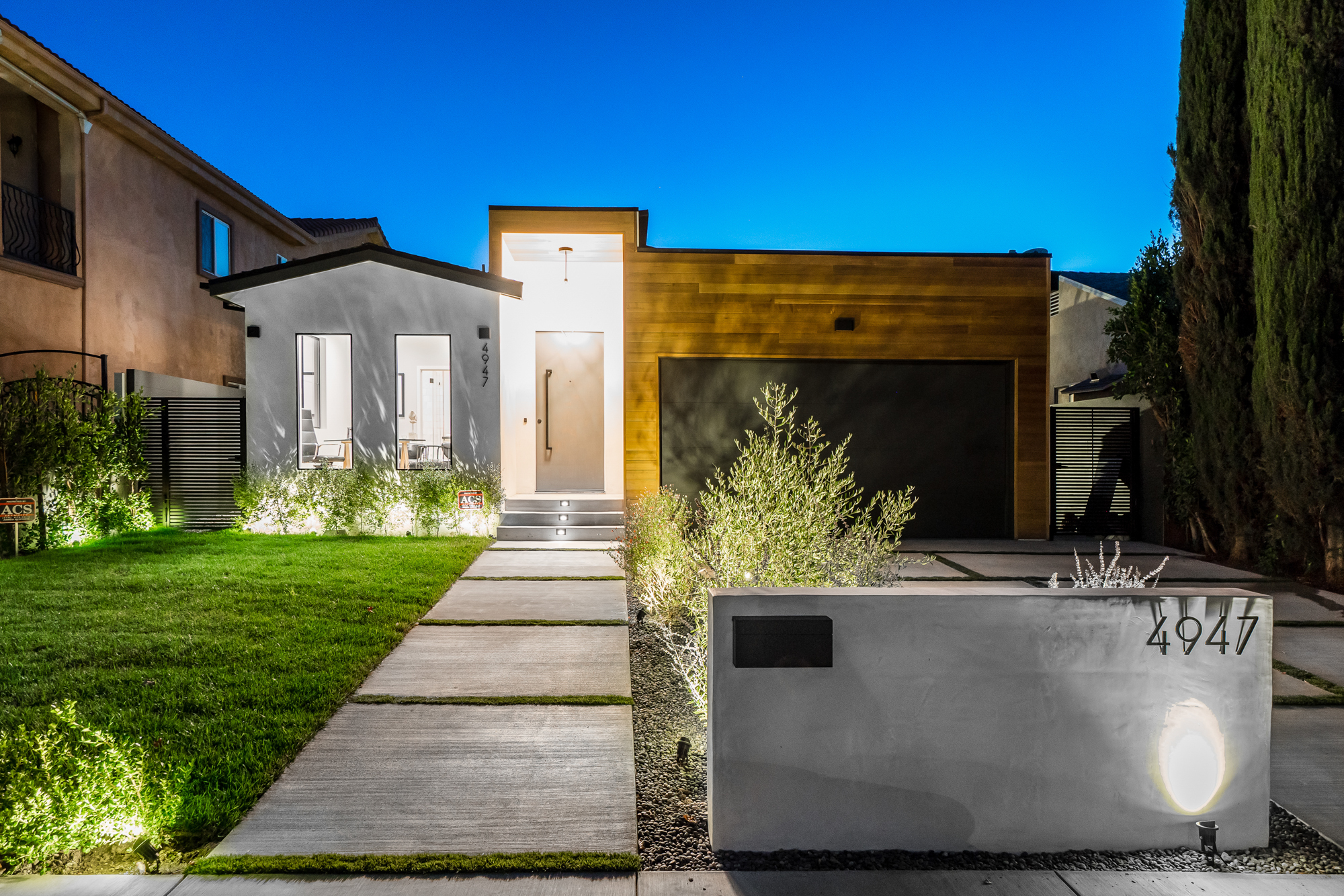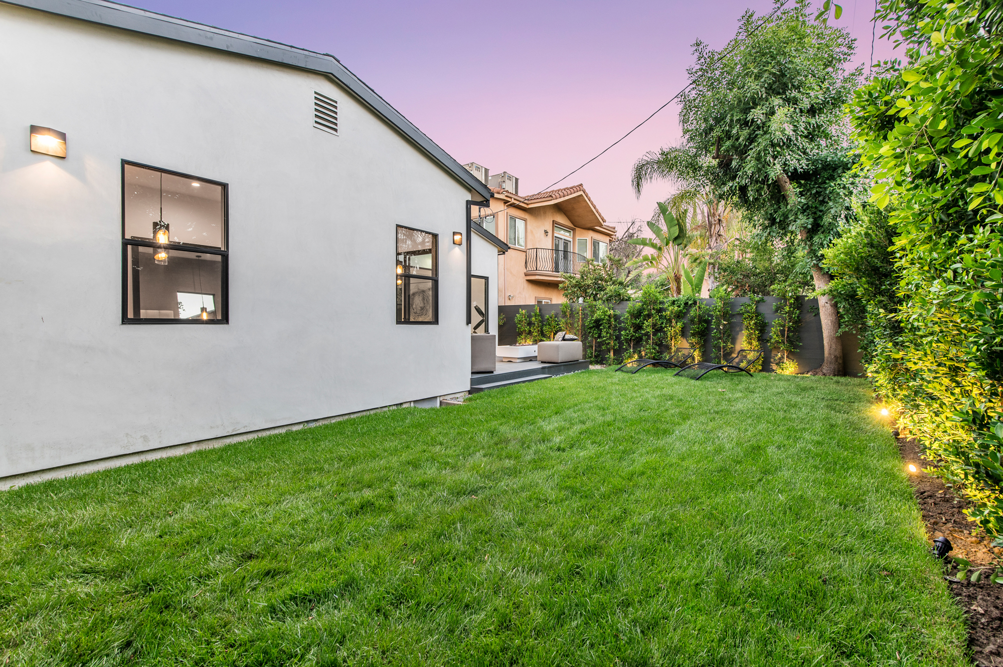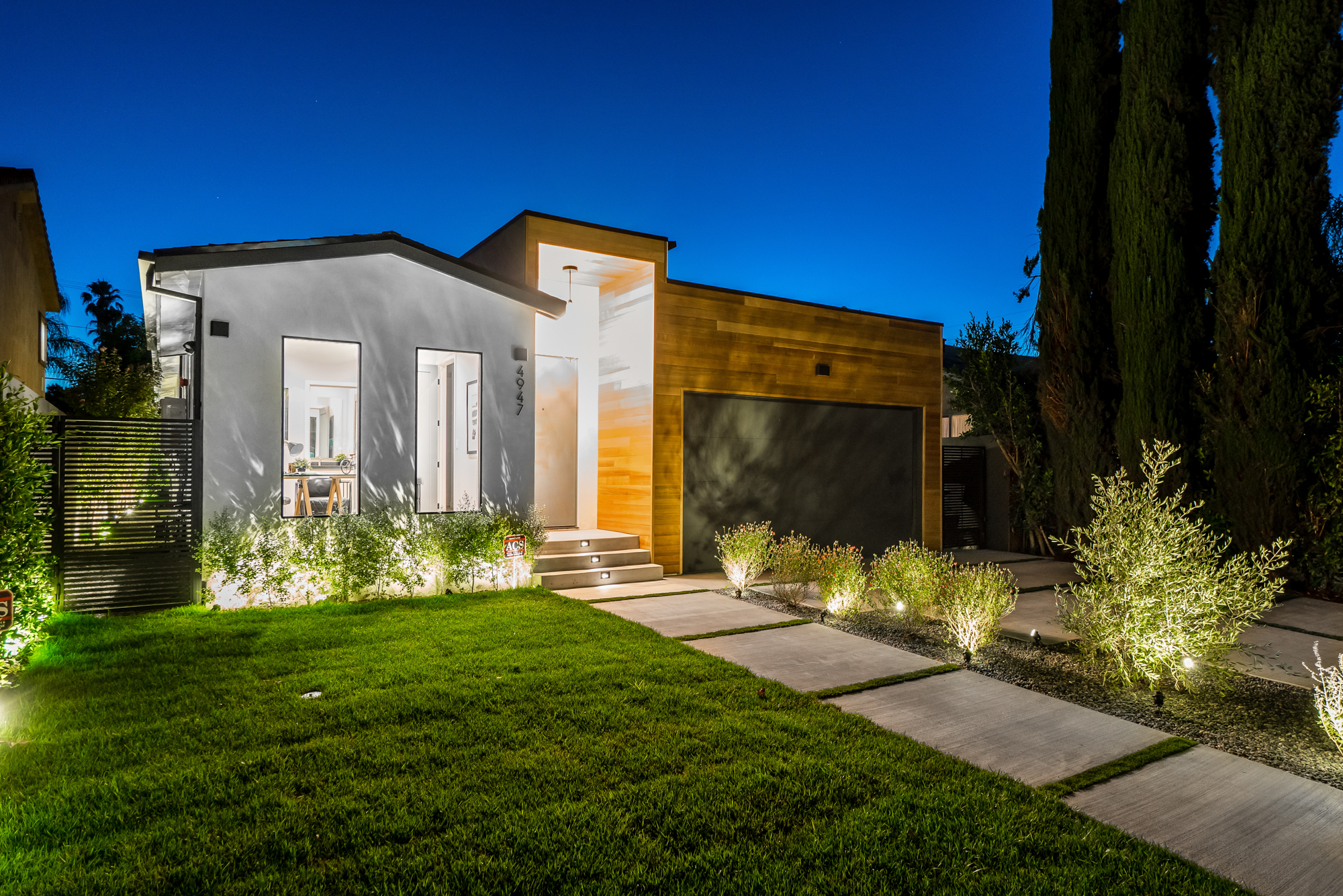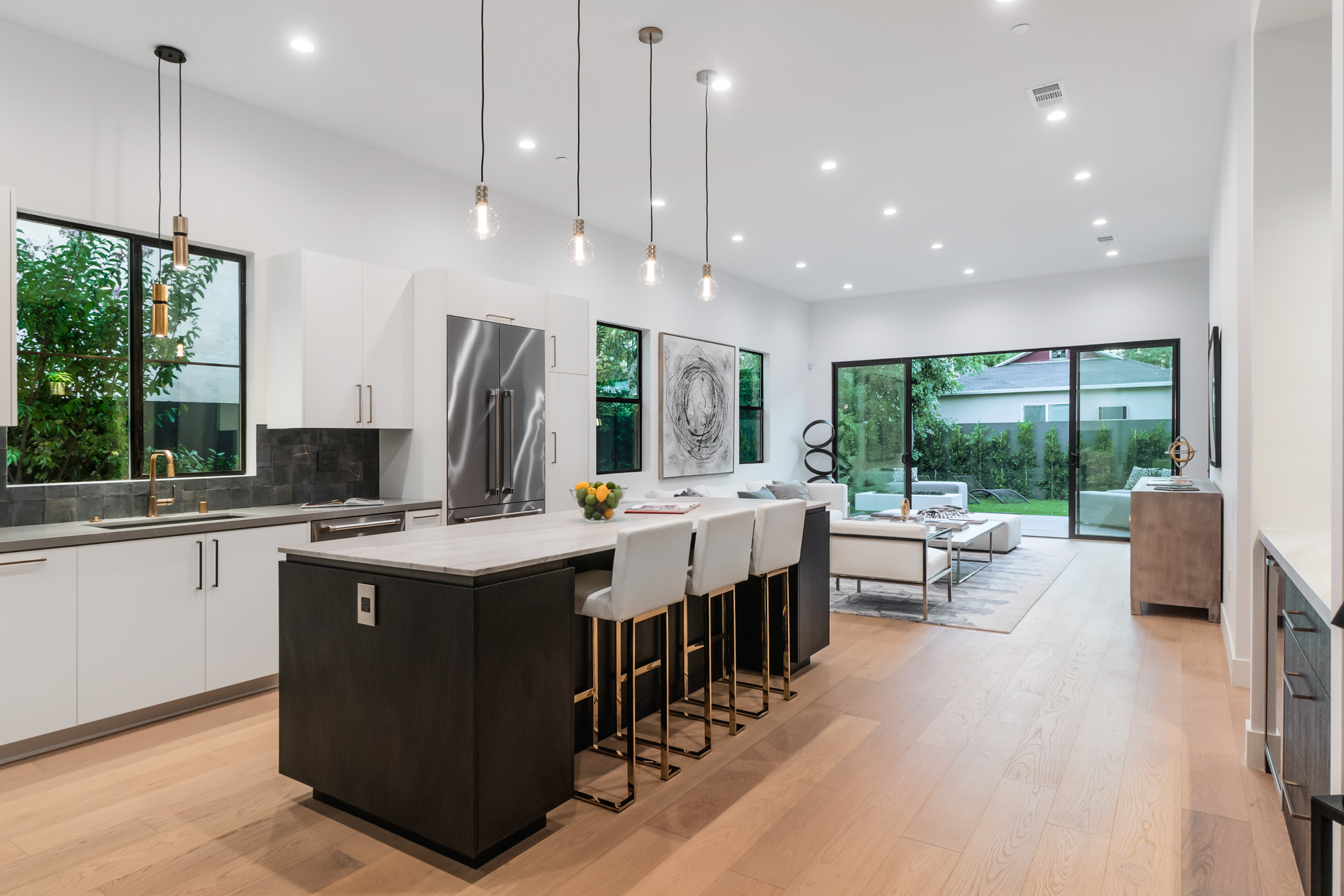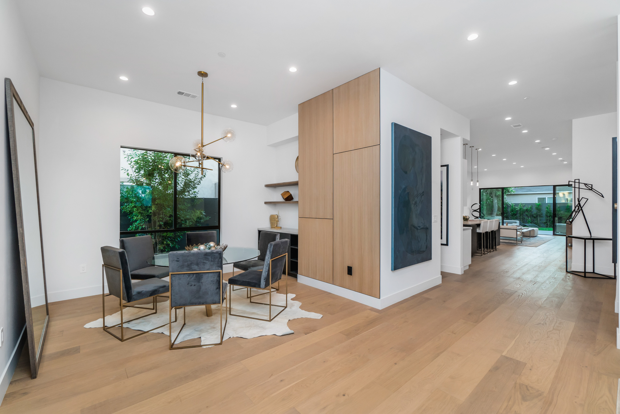 Welcome to your sleek single story modern masterpiece located in prime Encino, south of the boulevard. Completely brand new home, finished in summer of 2020. The natural wood and dark garage contrasted exterior creates a stunning, bold look that flows throughout the home. Striking curb appeal with pristine landscaping attracts all who enter. This extraordinary home was constructed with meticulous attention to detail from custom furnishings to gorgeous built ins and beautiful light fixtures. Upon entry, you are greeted with 11 ft soaring ceilings that extend throughout the home, light oak wood floors, and an incredibly open floor plan. Ambient lighting showcased inside and out elevates a luxury feel. The large and inviting formal living room adjacent to the dining room naturally flows into the glamorous chef’s kitchen. Featuring a custom gold plated backsplash, custom cabinetry, top of the line appliances, and a center island showcasing a stunning quartzite countertop with room for seating. Natural light pours in throughout the house from large sliding glass doors leading from the family room to the tranquil backyard. Backyard deck offers space for lounging around the cozy built in fire pit and leads out to the spacious and lush grassy yard, great for entertaining, playing, and relaxing. Majestic master suite provides private access to the backyard, boasting walk in closet, and grand master bath with soaking tub, walk in shower, and dual sinks. Additional amenities include laundry room, dry bar, 2 car garage, security system, Nest A/C thermostat, and so much more! Located just minutes from Ventura blvd’s trendy shops and and fine dining, this home is a must see and experience that can’t be beat!