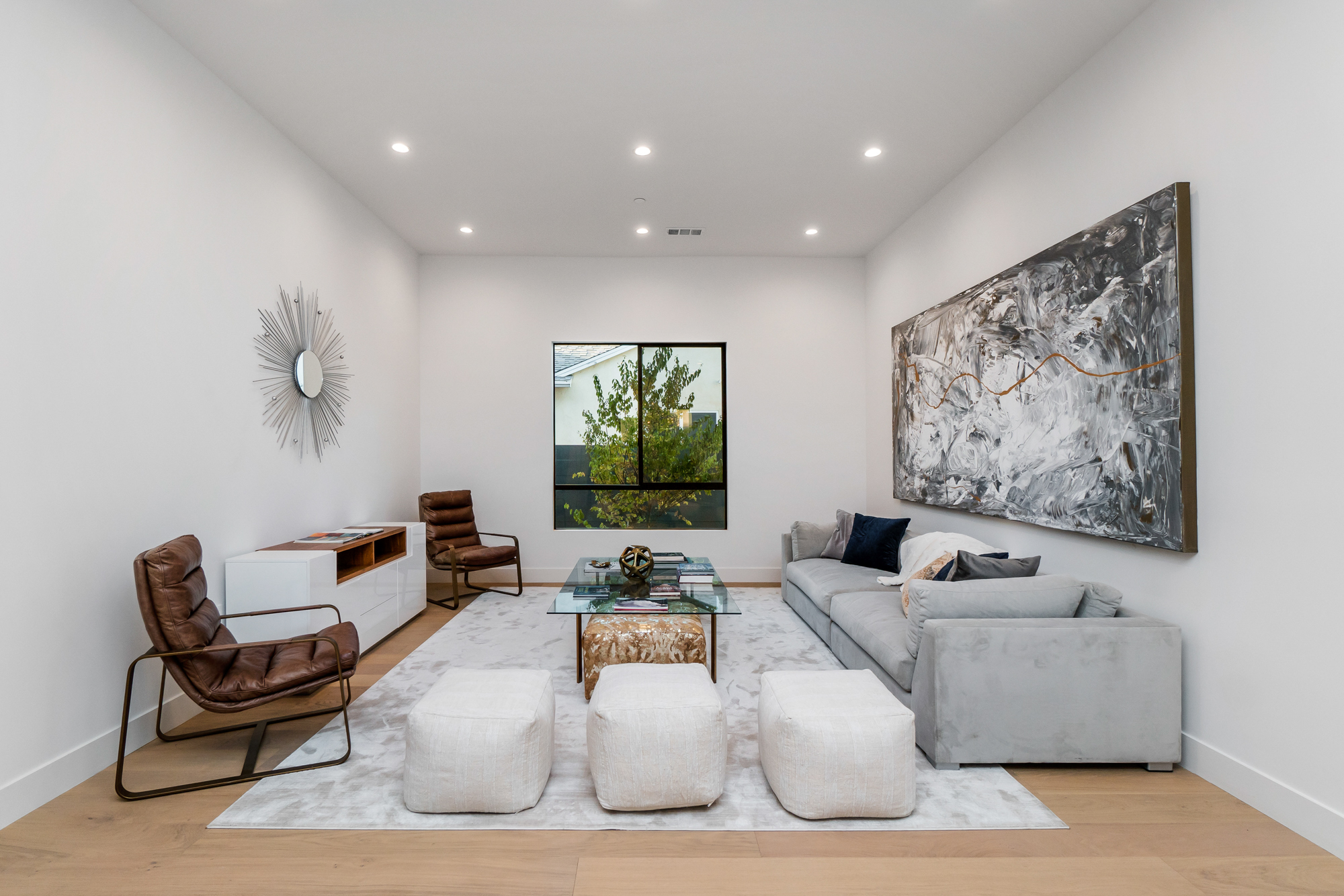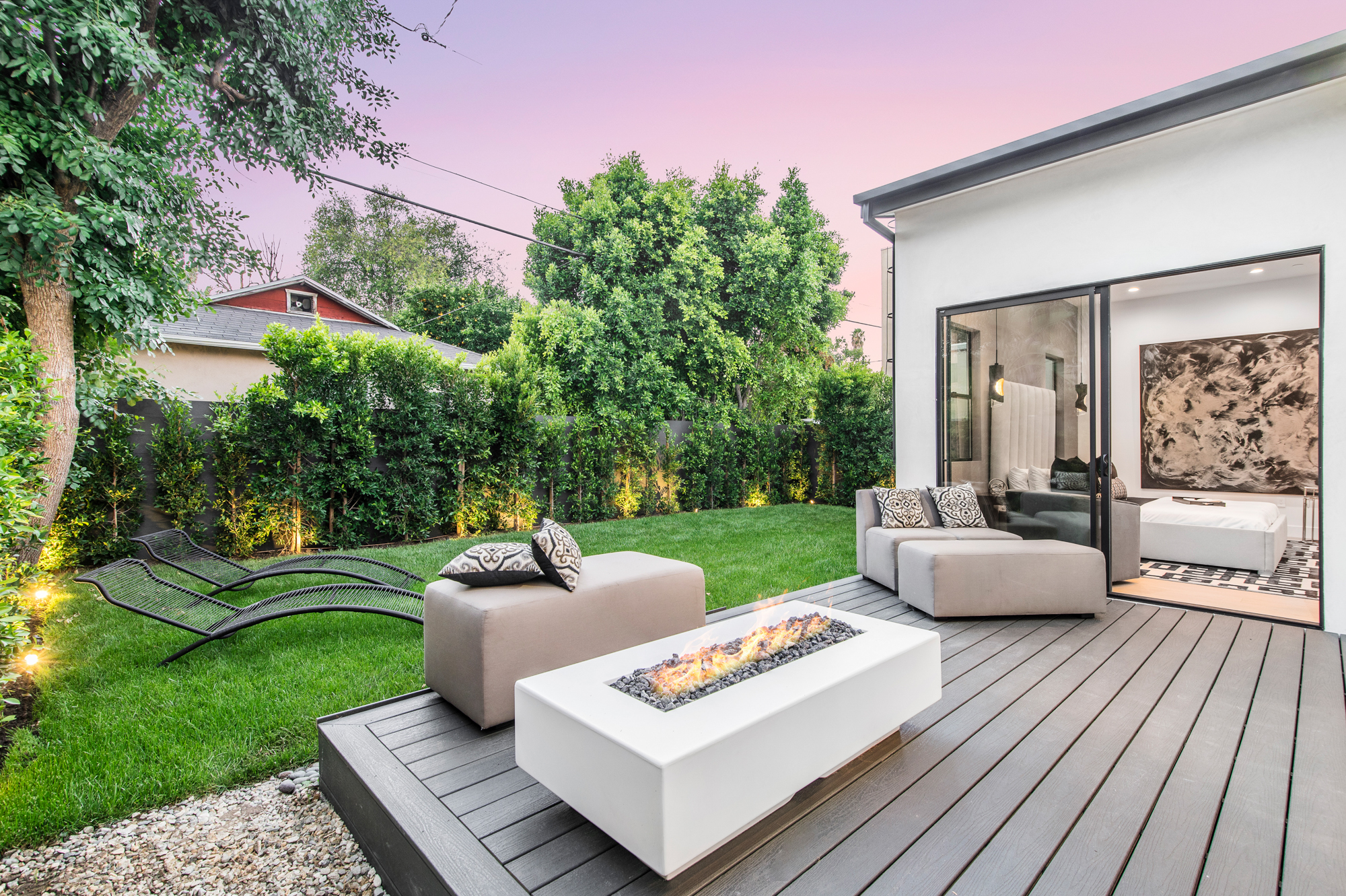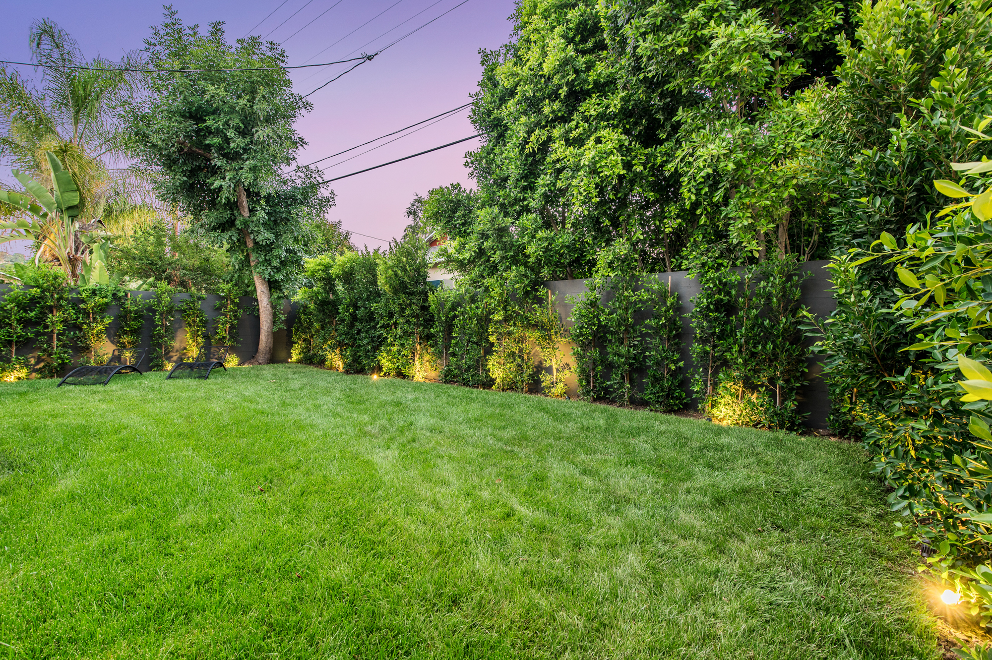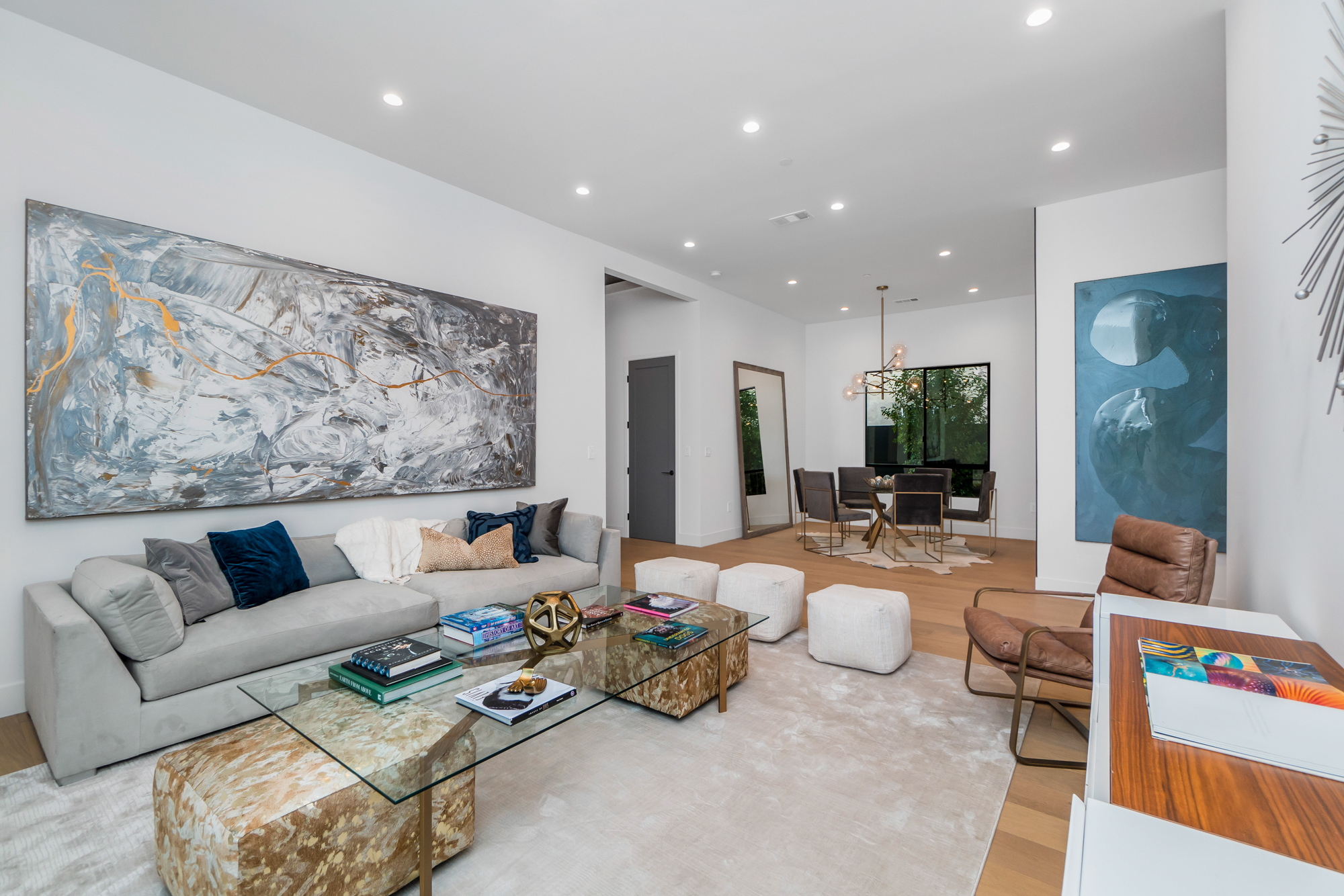 Welcome to your sleek single story modern masterpiece located in prime Encino, south of the boulevard. Completely brand new home, finished in summer of 2020. The natural wood and dark garage contrasted exterior creates a stunning, bold look that flows throughout the home. Striking curb appeal with pristine landscaping attracts all who enter. This extraordinary home was constructed with meticulous attention to detail from custom furnishings to gorgeous built ins and beautiful light fixtures. Upon entry, you are greeted with 11 ft soaring ceilings that extend throughout the home, light oak wood floors, and an incredibly open floor plan. Ambient lighting showcased inside and out elevates a luxury feel. The large and inviting formal living room adjacent to the dining room naturally flows into the glamorous chef’s kitchen. Featuring a custom gold plated backsplash, custom cabinetry, top of the line appliances, and a center island showcasing a stunning quartzite countertop with room for seating. Natural light pours in throughout the house from large sliding glass doors leading from the family room to the tranquil backyard. Backyard deck offers space for lounging around the cozy built in fire pit and leads out to the spacious and lush grassy yard, great for entertaining, playing, and relaxing. Majestic master suite provides private access to the backyard, boasting walk in closet, and grand master bath with soaking tub, walk in shower, and dual sinks. Additional amenities include laundry room, dry bar, 2 car garage, security system, Nest A/C thermostat, and so much more! Located just minutes from Ventura blvd’s trendy shops and and fine dining, this home is a must see and experience that can’t be beat!