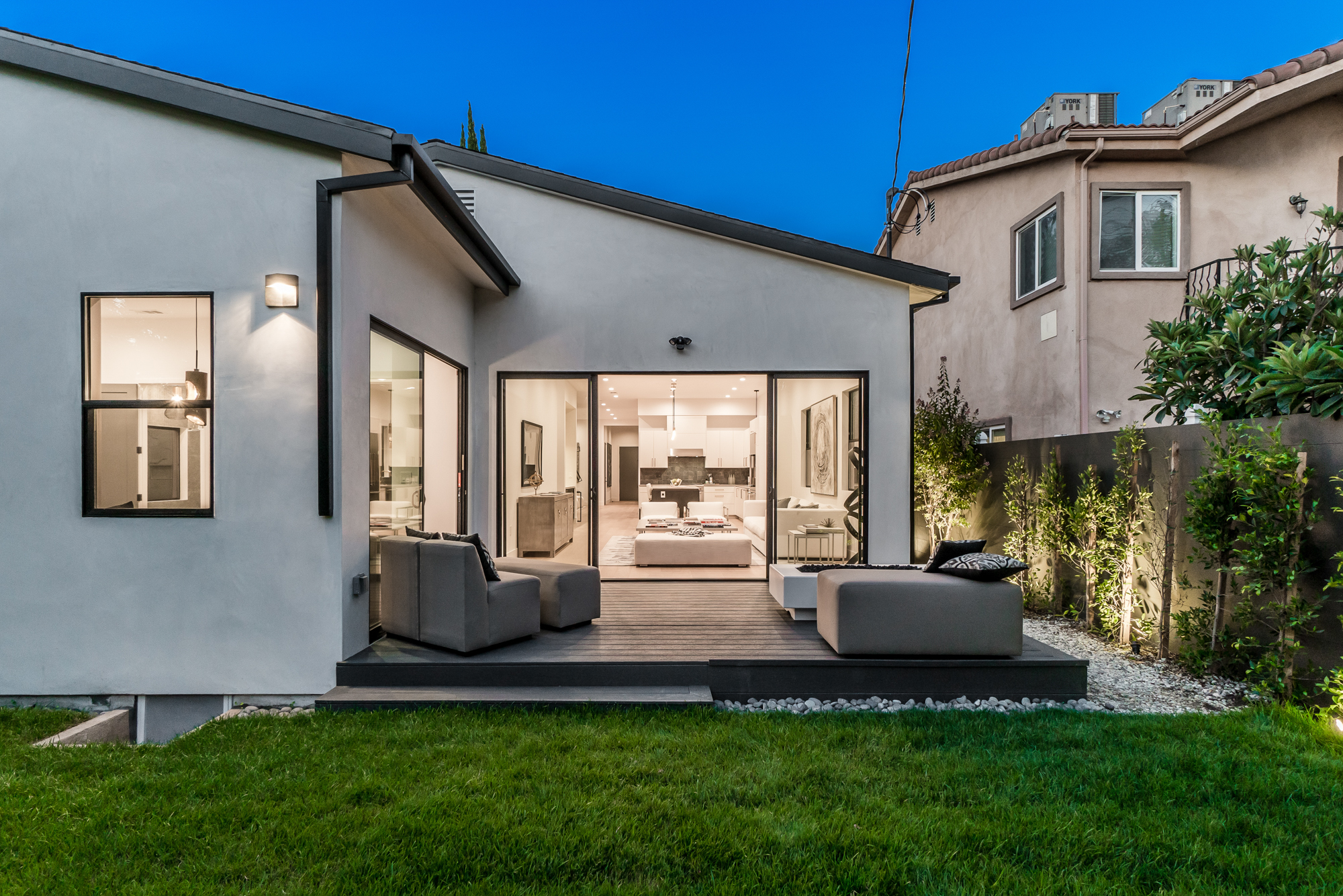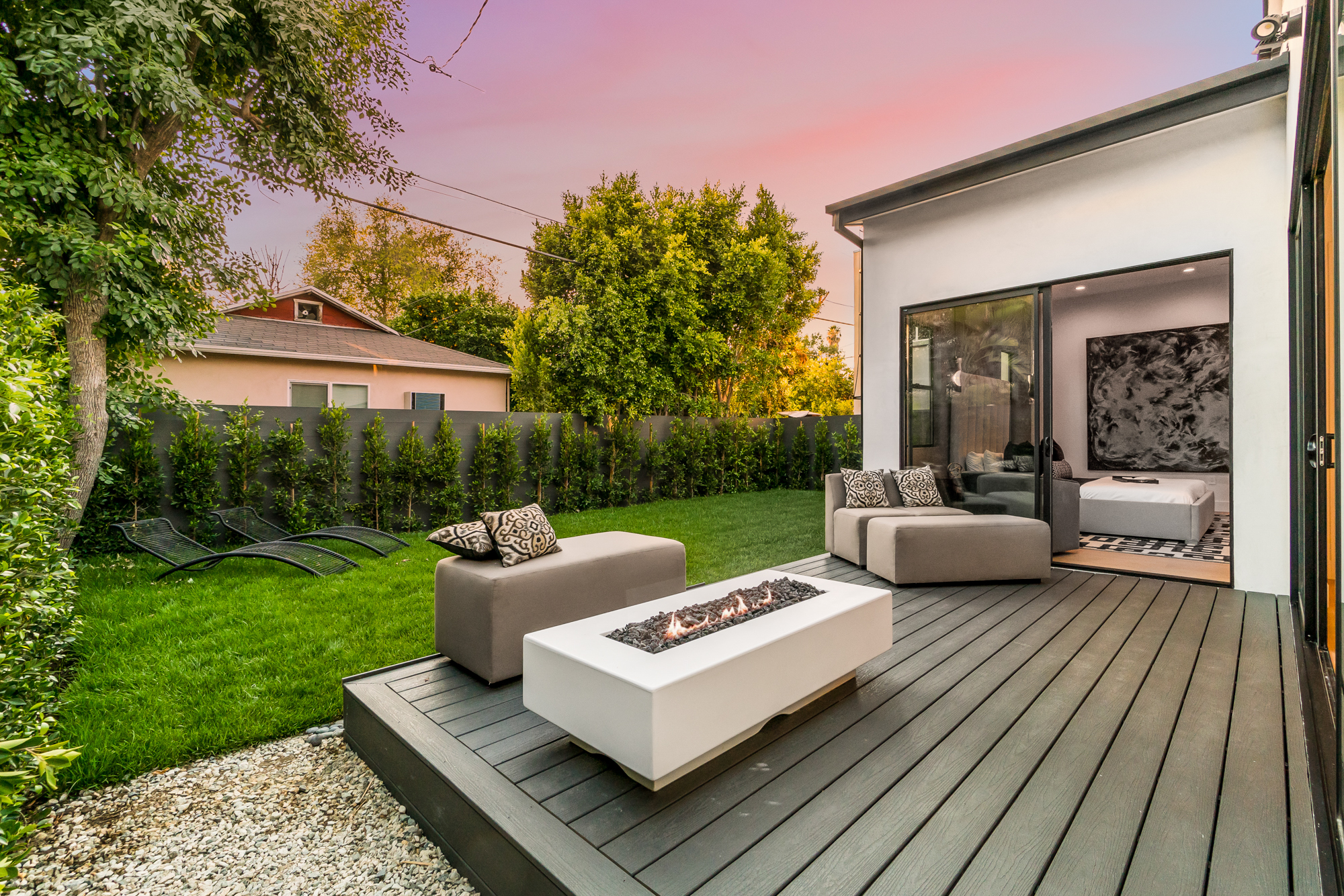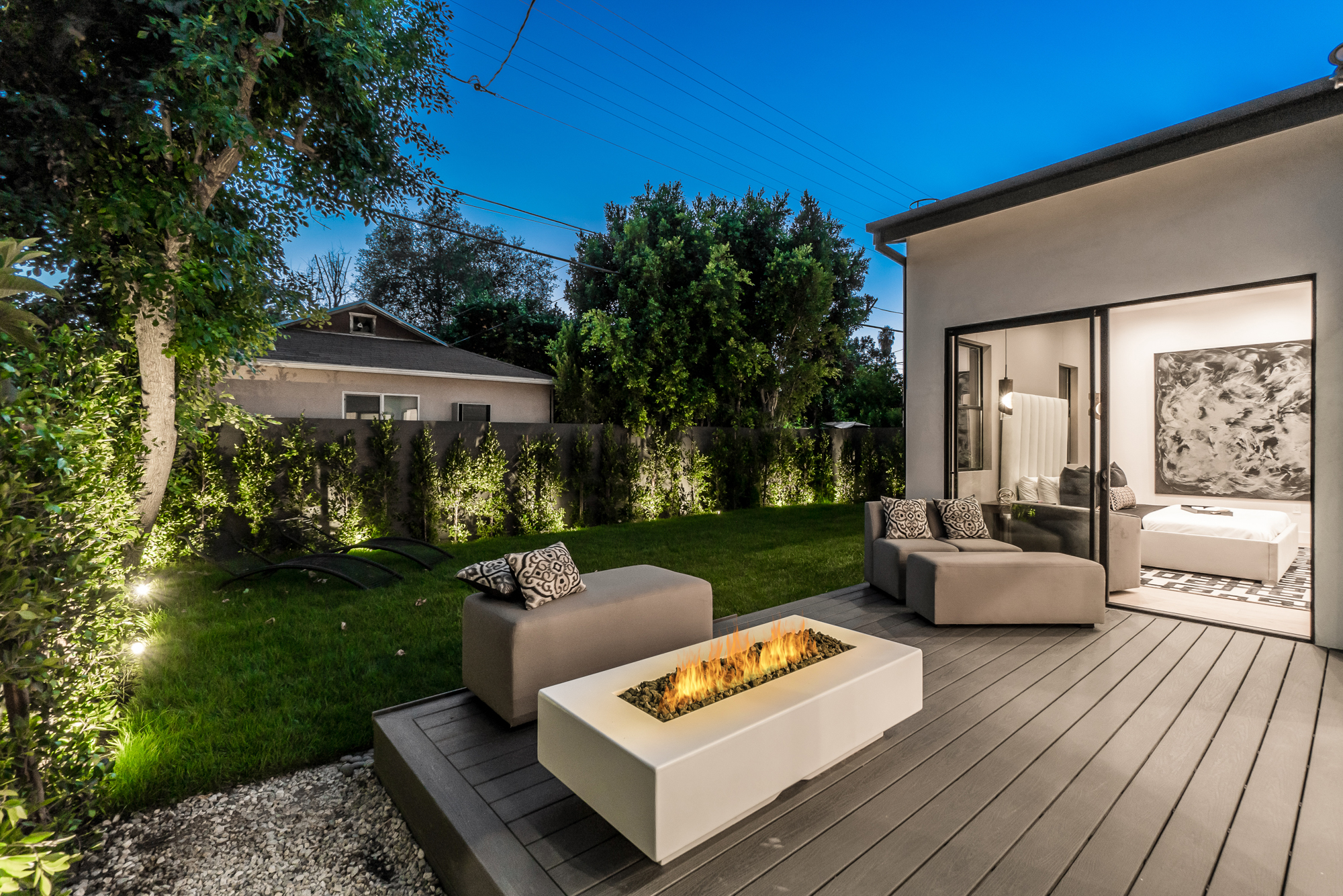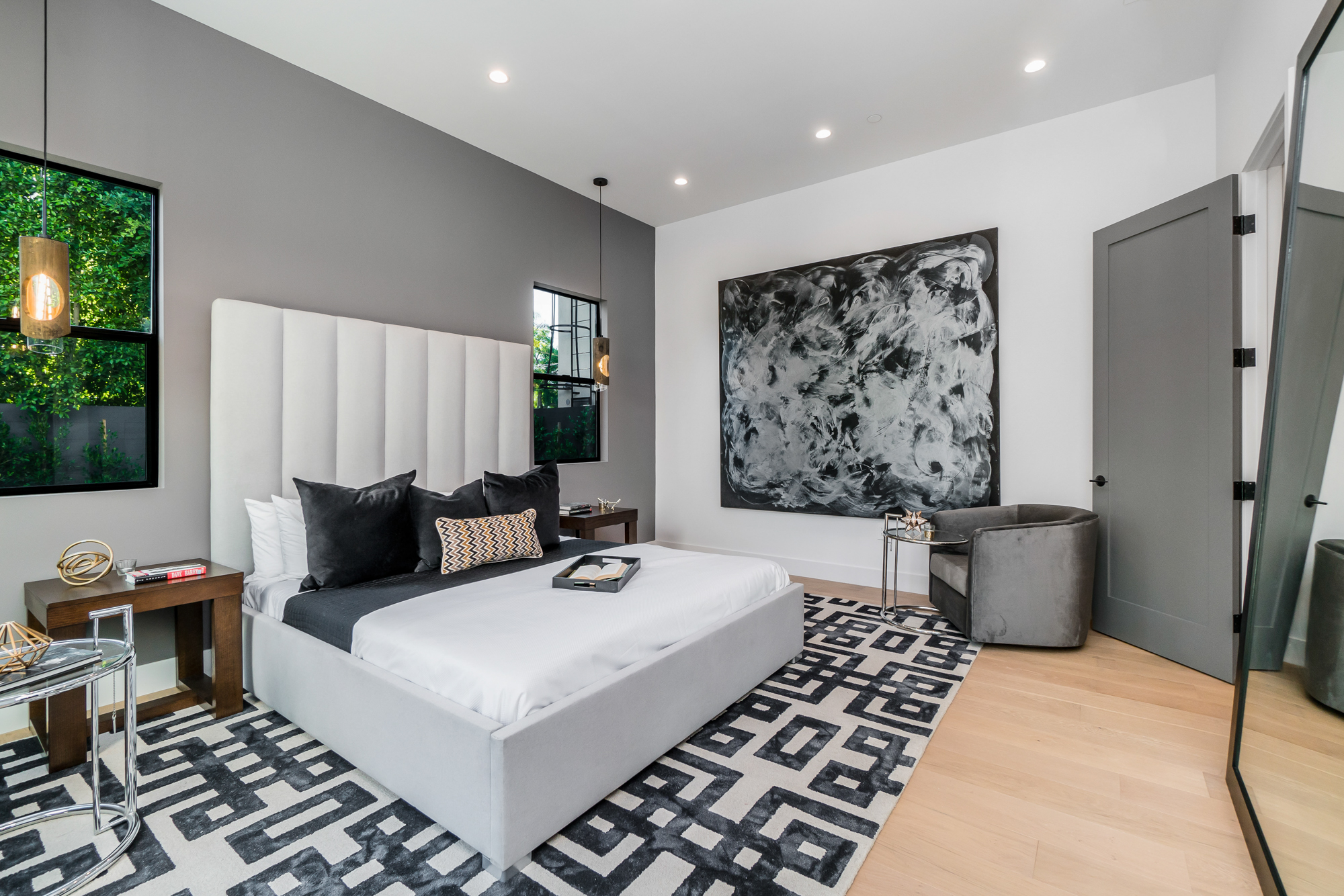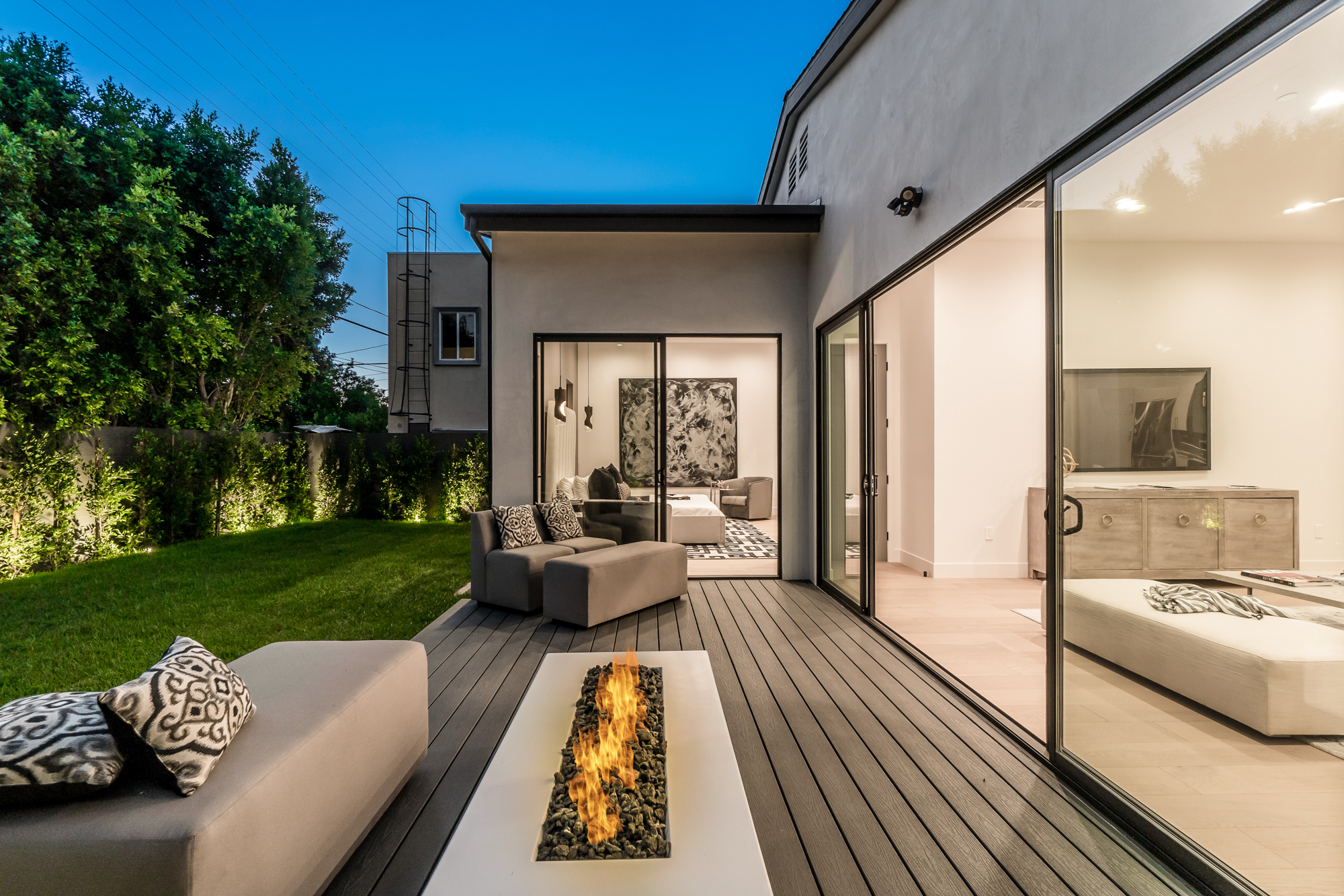 Welcome to your sleek single story modern masterpiece located in prime Encino, south of the boulevard. Completely brand new home, finished in summer of 2020. The natural wood and dark garage contrasted exterior creates a stunning, bold look that flows throughout the home. Striking curb appeal with pristine landscaping attracts all who enter. This extraordinary home was constructed with meticulous attention to detail from custom furnishings to gorgeous built ins and beautiful light fixtures. Upon entry, you are greeted with 11 ft soaring ceilings that extend throughout the home, light oak wood floors, and an incredibly open floor plan. Ambient lighting showcased inside and out elevates a luxury feel. The large and inviting formal living room adjacent to the dining room naturally flows into the glamorous chef’s kitchen. Featuring a custom gold plated backsplash, custom cabinetry, top of the line appliances, and a center island showcasing a stunning quartzite countertop with room for seating. Natural light pours in throughout the house from large sliding glass doors leading from the family room to the tranquil backyard. Backyard deck offers space for lounging around the cozy built in fire pit and leads out to the spacious and lush grassy yard, great for entertaining, playing, and relaxing. Majestic master suite provides private access to the backyard, boasting walk in closet, and grand master bath with soaking tub, walk in shower, and dual sinks. Additional amenities include laundry room, dry bar, 2 car garage, security system, Nest A/C thermostat, and so much more! Located just minutes from Ventura blvd’s trendy shops and and fine dining, this home is a must see and experience that can’t be beat!