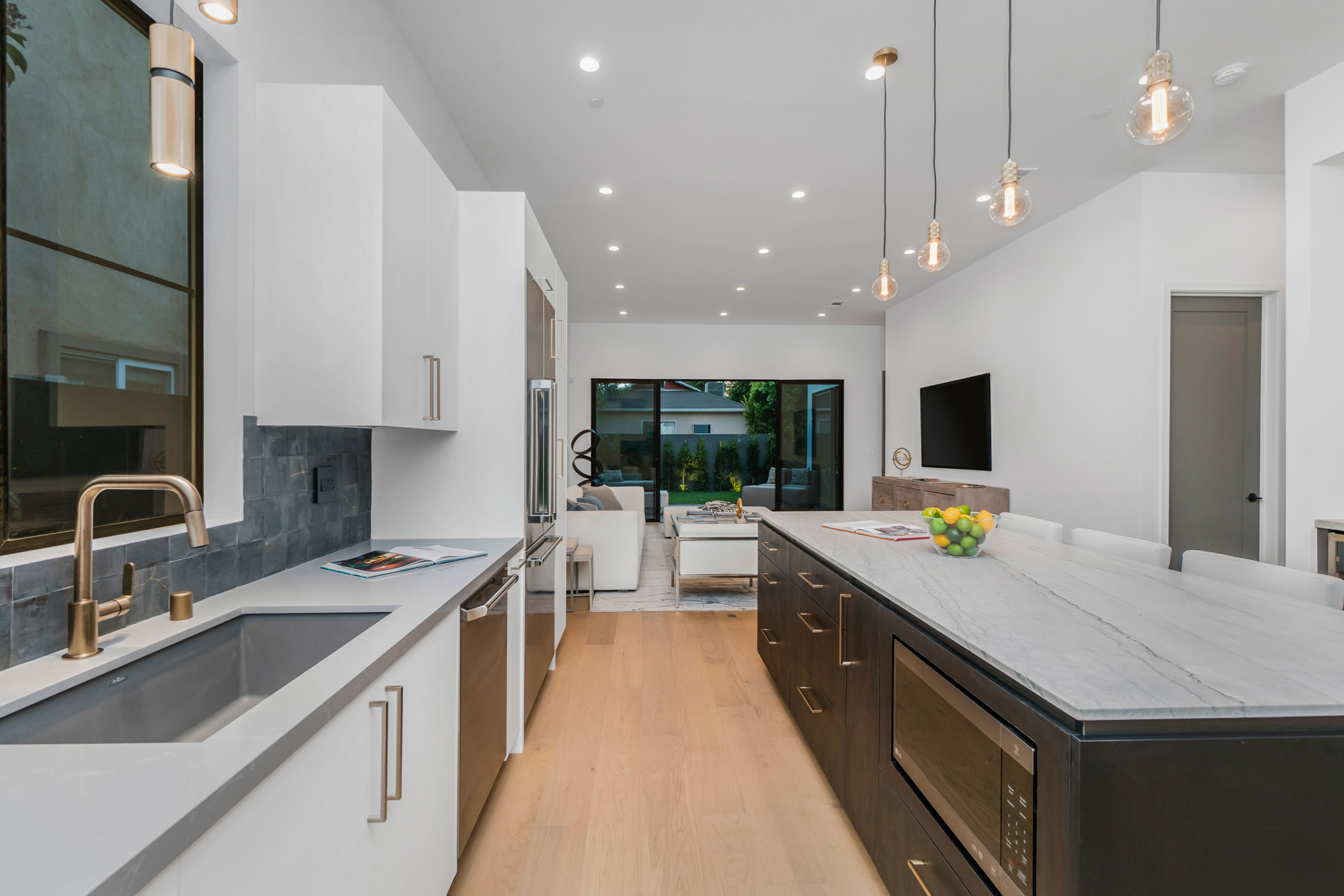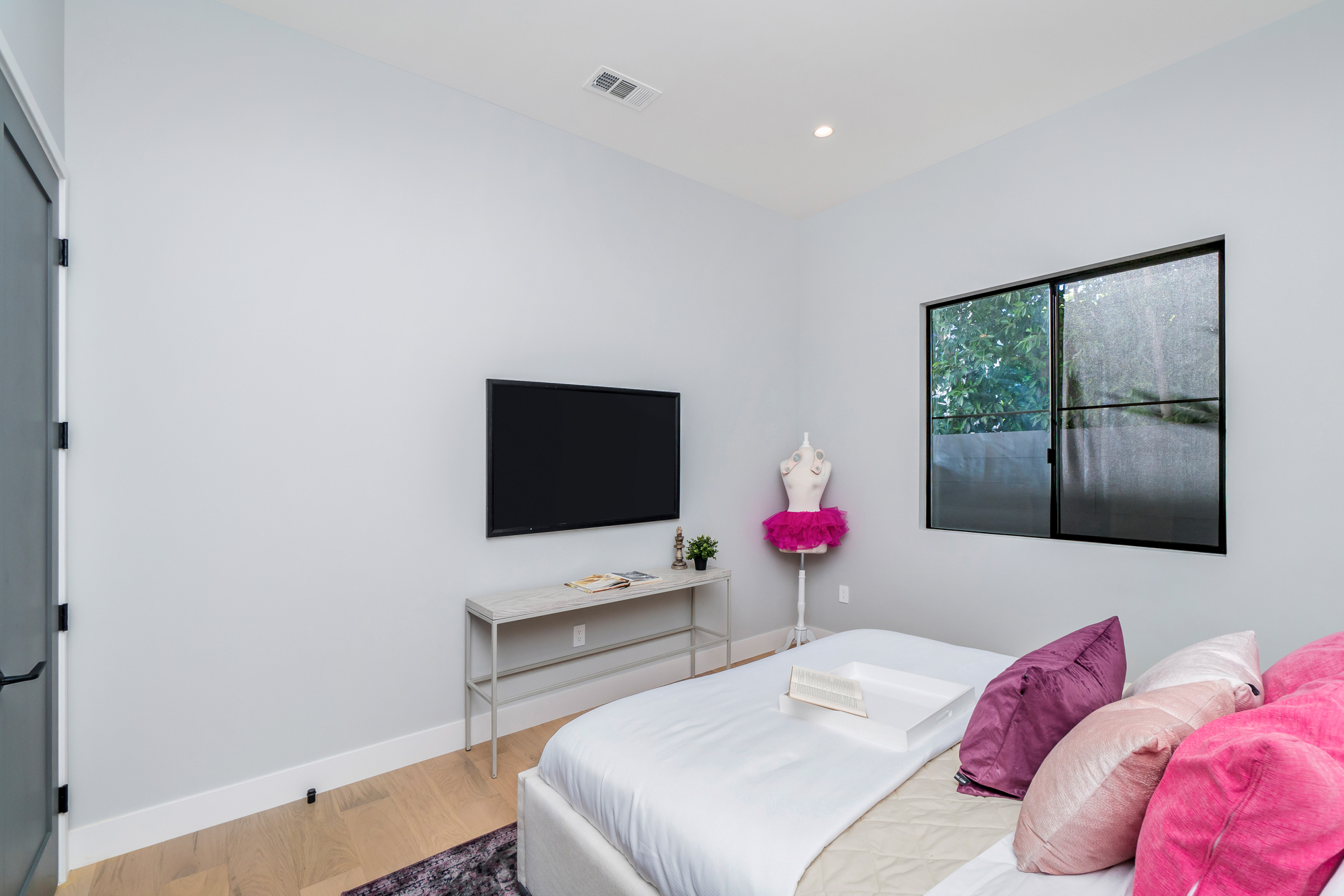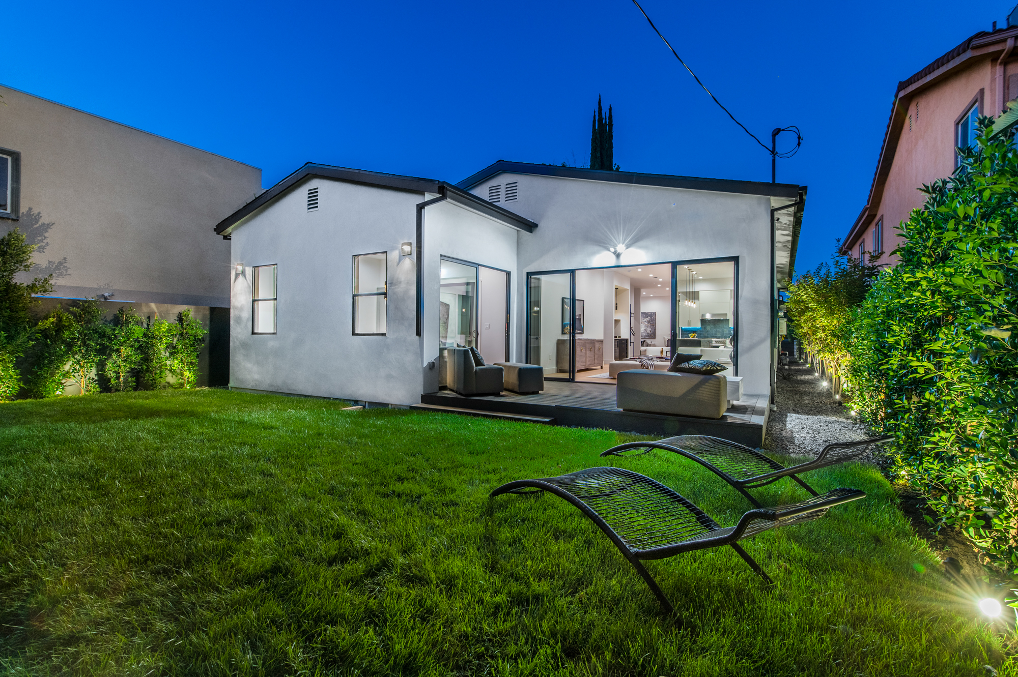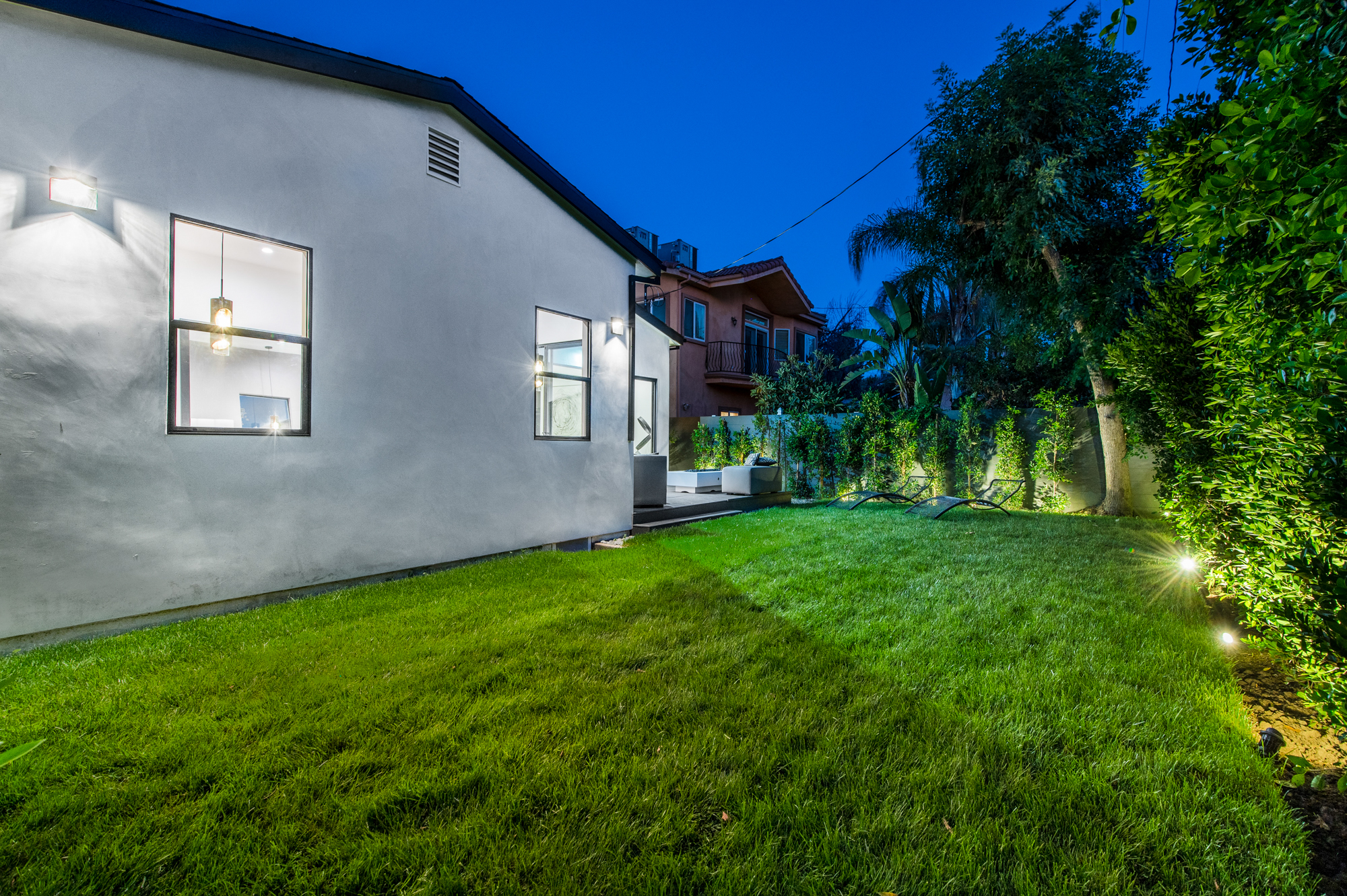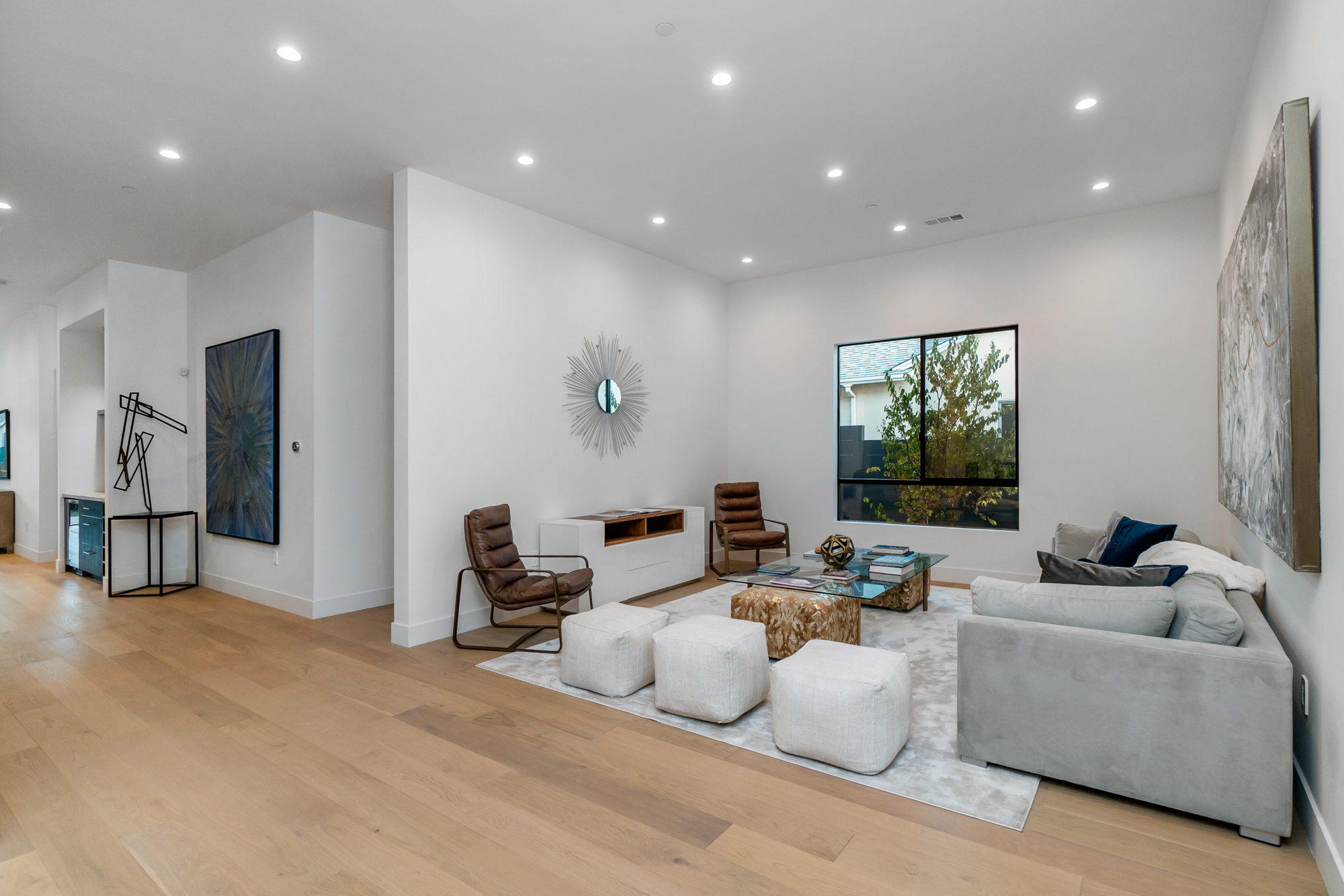Welcome to your sleek single story modern masterpiece located in prime Encino, south of the boulevard. Completely brand new home, finished in summer of 2020. The natural wood and dark garage contrasted exterior creates a stunning, bold look that flows throughout the home. Striking curb appeal with pristine landscaping attracts all who enter. This extraordinary home was constructed with meticulous attention to detail from custom furnishings to gorgeous built ins and beautiful light fixtures. Upon entry, you are greeted with 11 ft soaring ceilings that extend throughout the home, light oak wood floors, and an incredibly open floor plan. Ambient lighting showcased inside and out elevates a luxury feel. The large and inviting formal living room adjacent to the dining room naturally flows into the glamorous chef’s kitchen. Featuring a custom gold plated backsplash, custom cabinetry, top of the line appliances, and a center island showcasing a stunning quartzite countertop with room for seating. Natural light pours in throughout the house from large sliding glass doors leading from the family room to the tranquil backyard. Backyard deck offers space for lounging around the cozy built in fire pit and leads out to the spacious and lush grassy yard, great for entertaining, playing, and relaxing. Majestic master suite provides private access to the backyard, boasting walk in closet, and grand master bath with soaking tub, walk in shower, and dual sinks. Additional amenities include laundry room, dry bar, 2 car garage, security system, Nest A/C thermostat, and so much more! Located just minutes from Ventura blvd’s trendy shops and and fine dining, this home is a must see and experience that can’t be beat!