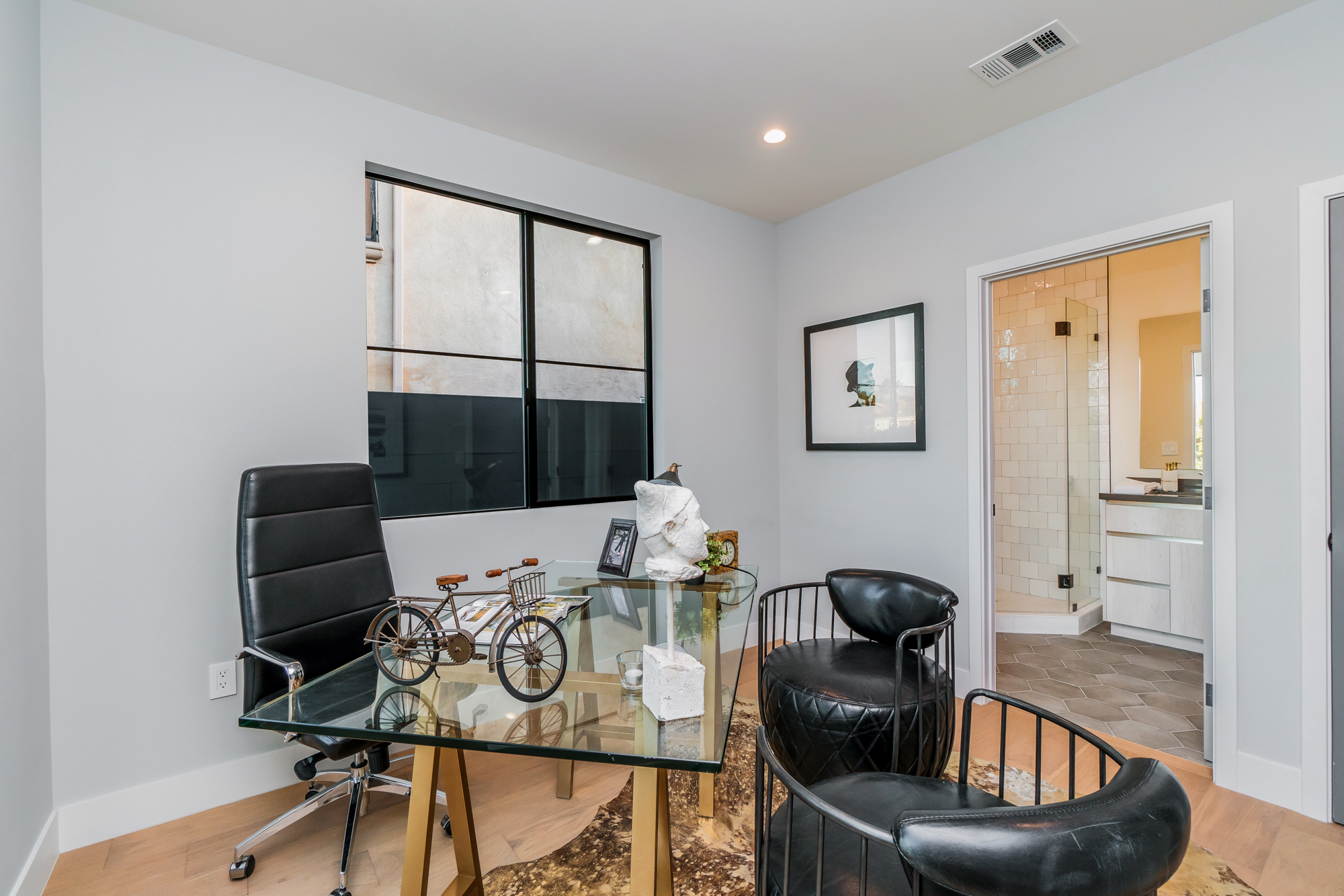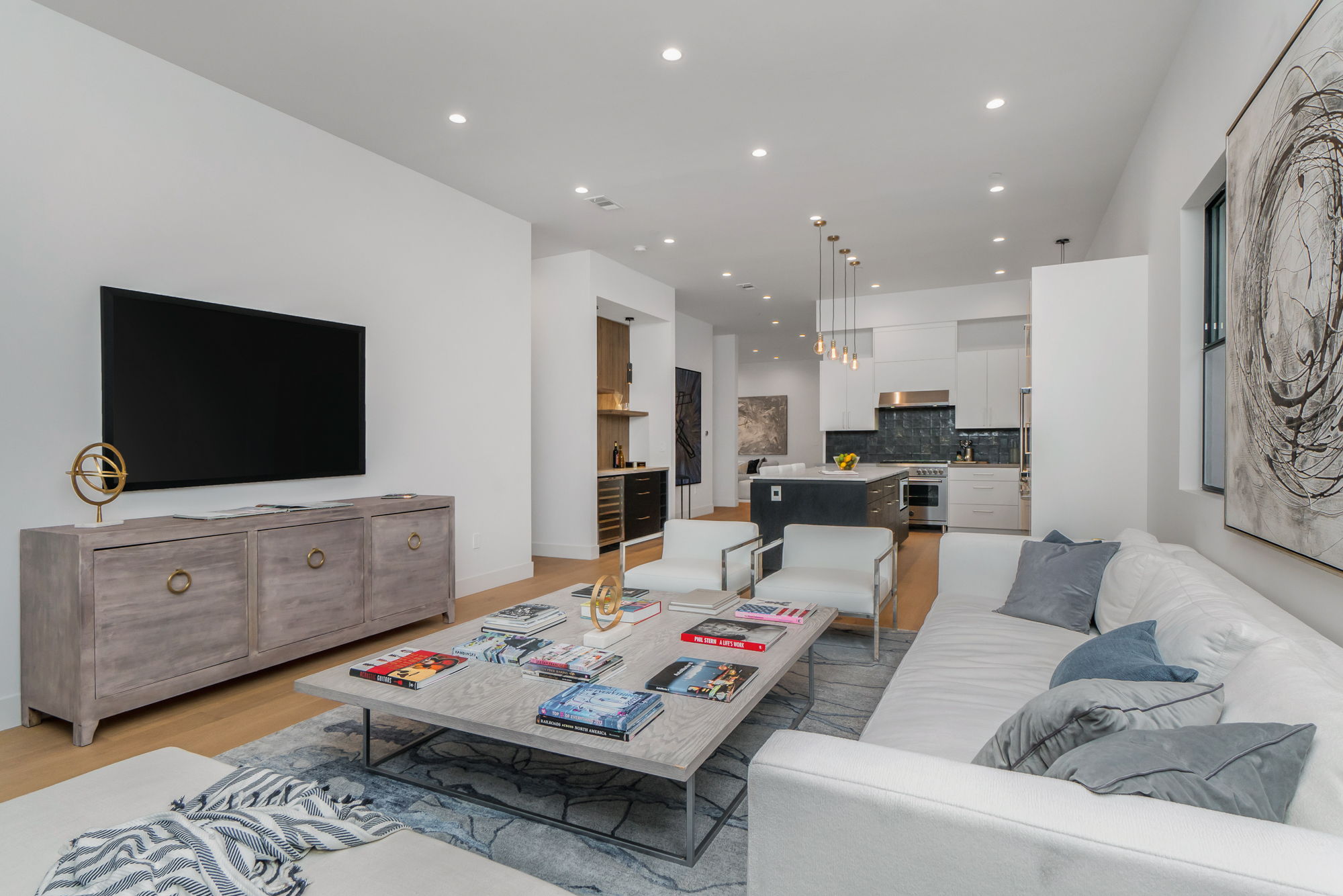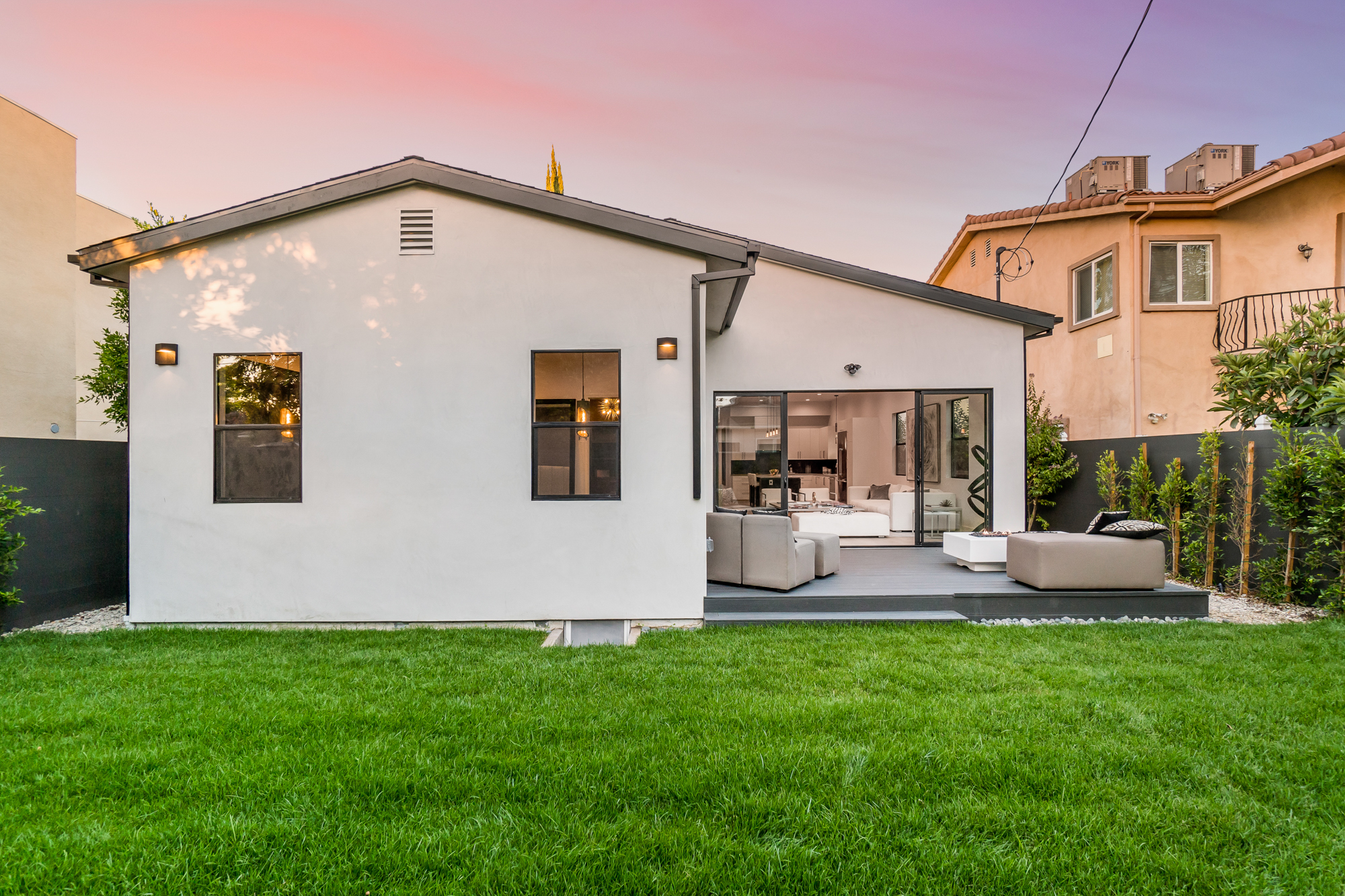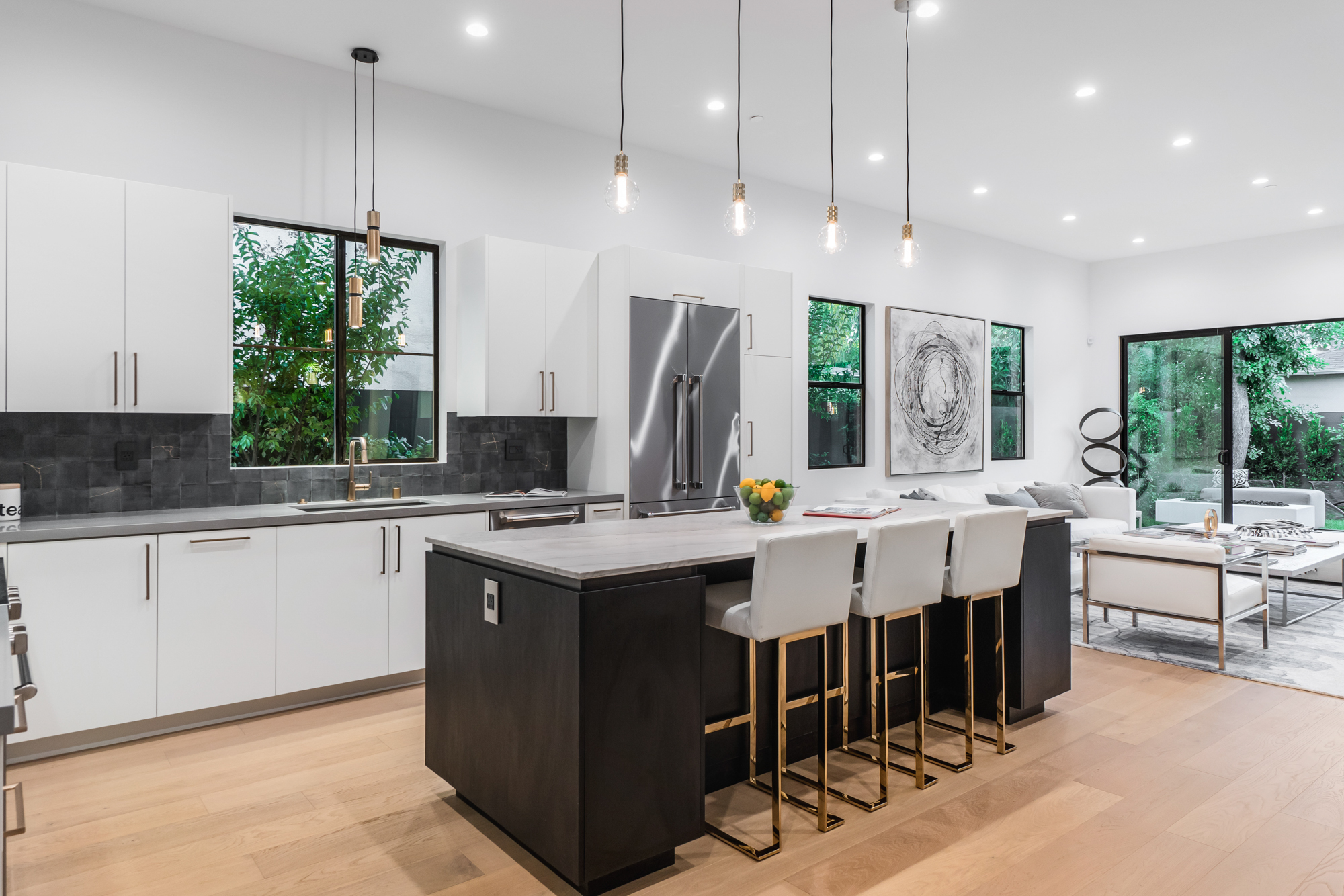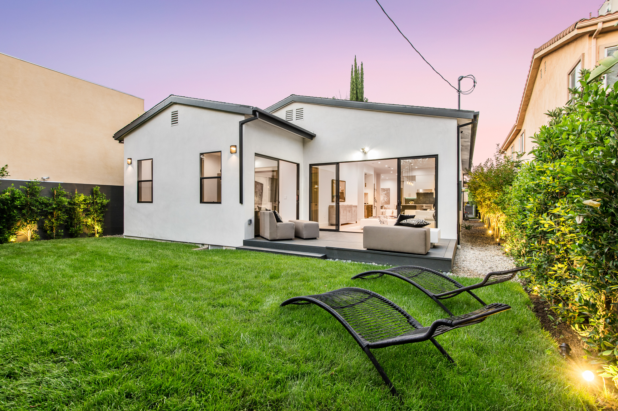 Welcome to your sleek single story modern masterpiece located in prime Encino, south of the boulevard. Completely brand new home, finished in summer of 2020. The natural wood and dark garage contrasted exterior creates a stunning, bold look that flows throughout the home. Striking curb appeal with pristine landscaping attracts all who enter. This extraordinary home was constructed with meticulous attention to detail from custom furnishings to gorgeous built ins and beautiful light fixtures. Upon entry, you are greeted with 11 ft soaring ceilings that extend throughout the home, light oak wood floors, and an incredibly open floor plan. Ambient lighting showcased inside and out elevates a luxury feel. The large and inviting formal living room adjacent to the dining room naturally flows into the glamorous chef’s kitchen. Featuring a custom gold plated backsplash, custom cabinetry, top of the line appliances, and a center island showcasing a stunning quartzite countertop with room for seating. Natural light pours in throughout the house from large sliding glass doors leading from the family room to the tranquil backyard. Backyard deck offers space for lounging around the cozy built in fire pit and leads out to the spacious and lush grassy yard, great for entertaining, playing, and relaxing. Majestic master suite provides private access to the backyard, boasting walk in closet, and grand master bath with soaking tub, walk in shower, and dual sinks. Additional amenities include laundry room, dry bar, 2 car garage, security system, Nest A/C thermostat, and so much more! Located just minutes from Ventura blvd’s trendy shops and and fine dining, this home is a must see and experience that can’t be beat!