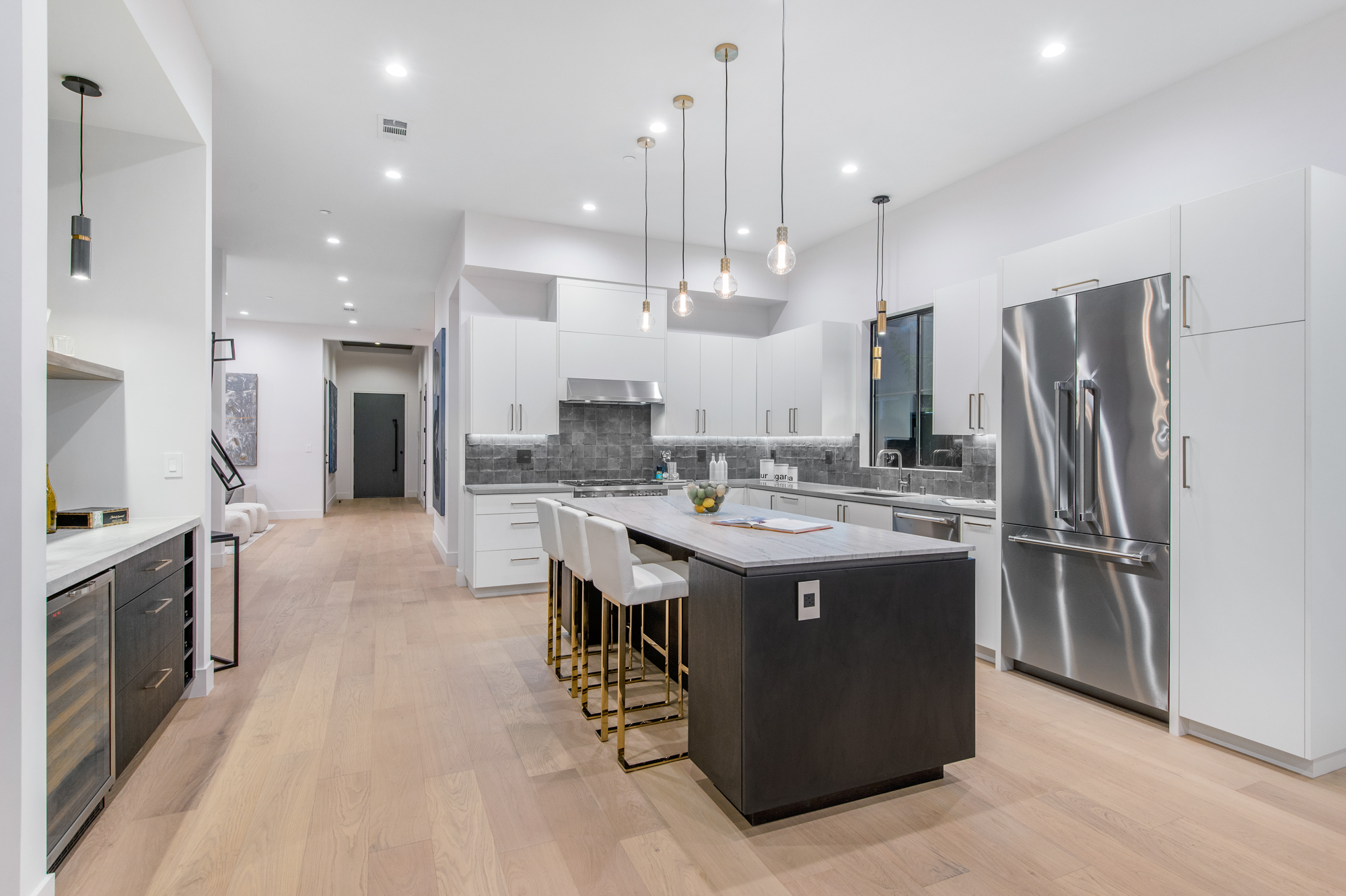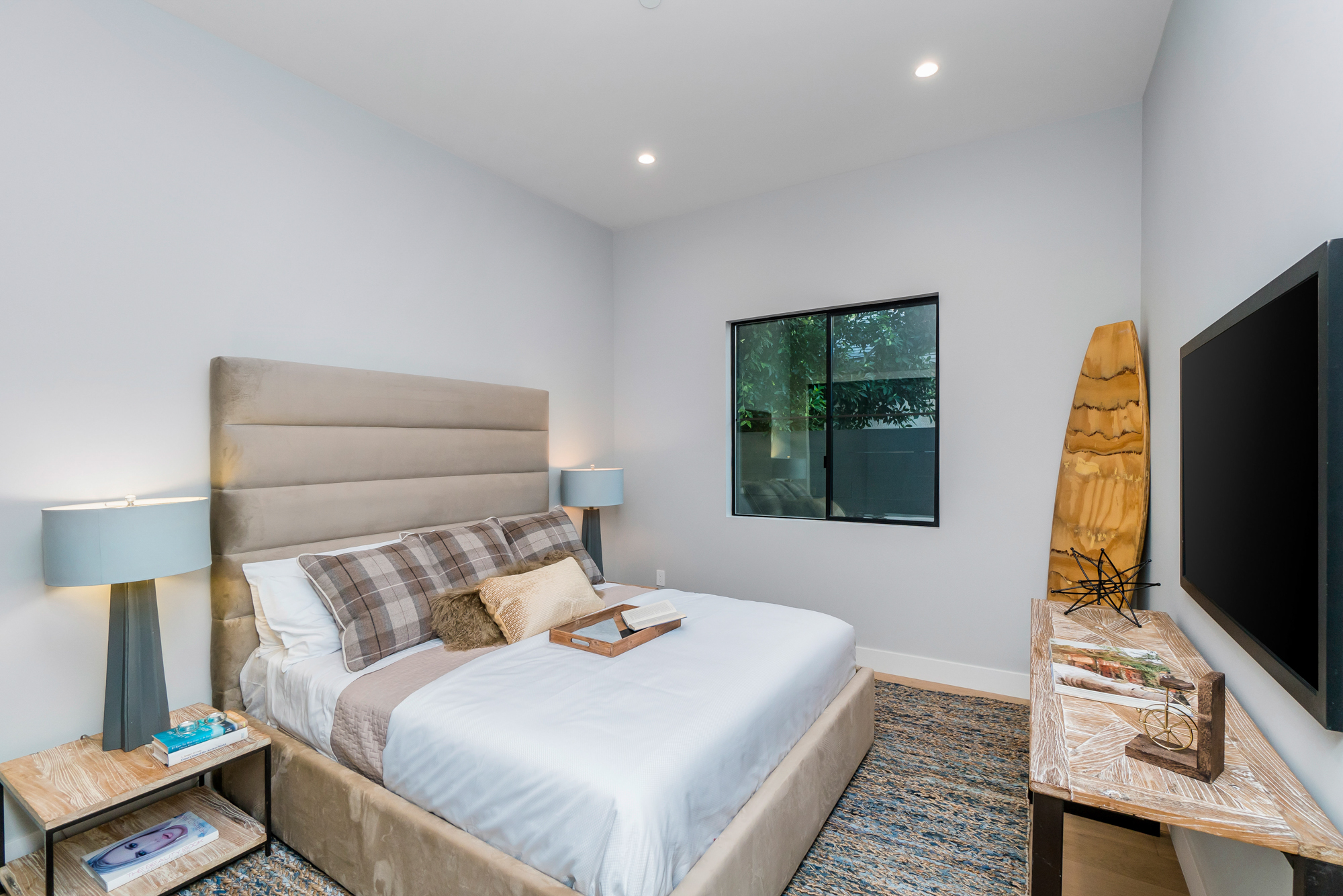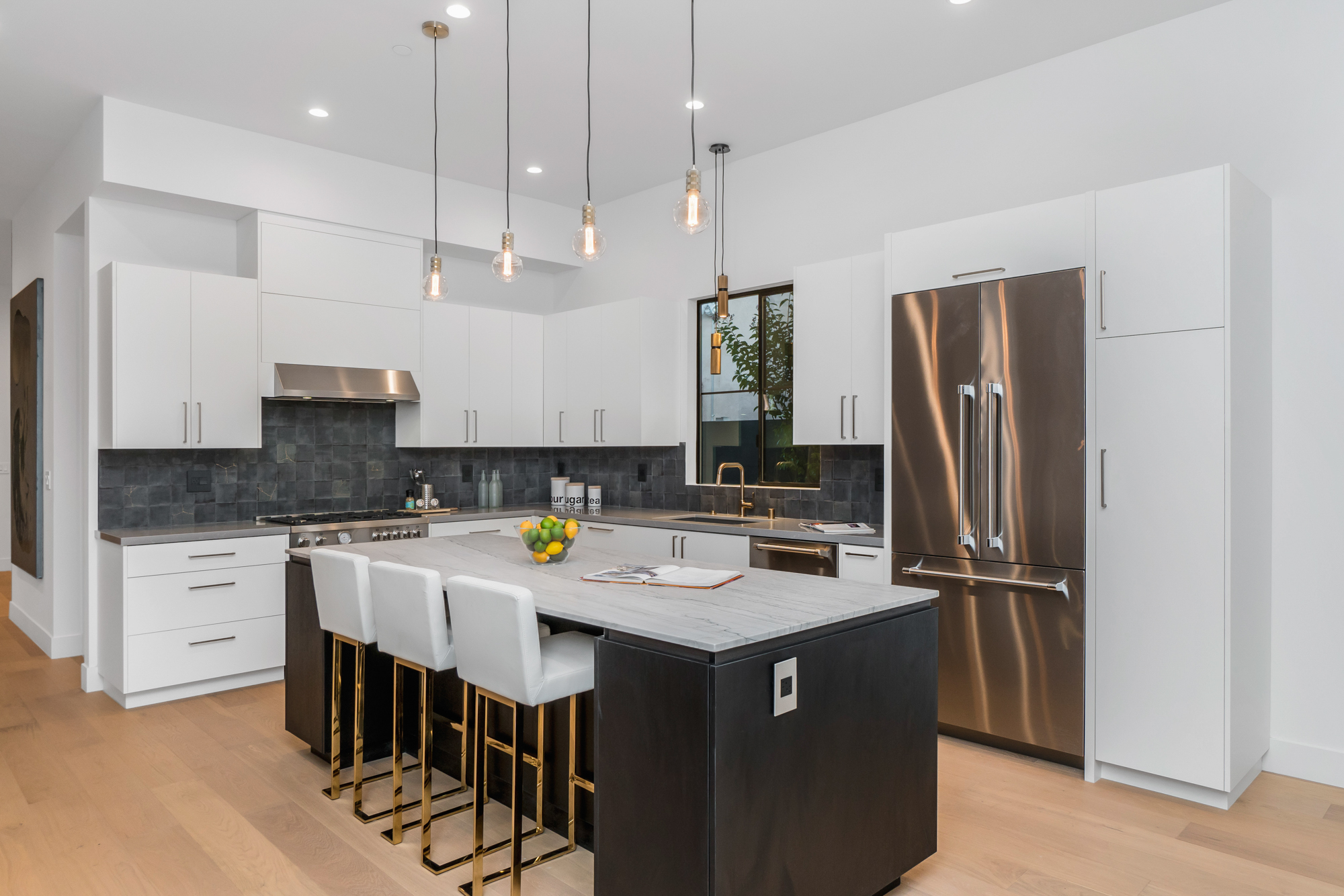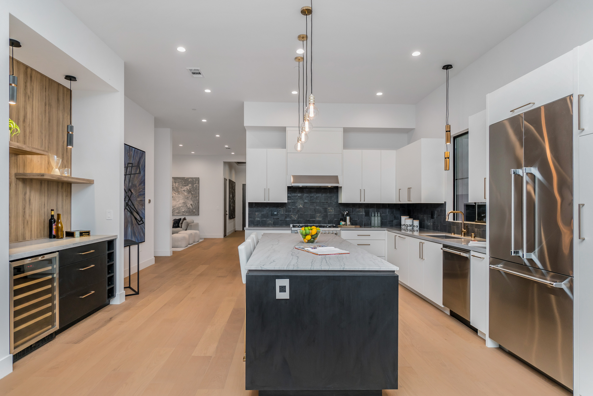 Welcome to your sleek single story modern masterpiece located in prime Encino, south of the boulevard. Completely brand new home, finished in summer of 2020. The natural wood and dark garage contrasted exterior creates a stunning, bold look that flows throughout the home. Striking curb appeal with pristine landscaping attracts all who enter. This extraordinary home was constructed with meticulous attention to detail from custom furnishings to gorgeous built ins and beautiful light fixtures. Upon entry, you are greeted with 11 ft soaring ceilings that extend throughout the home, light oak wood floors, and an incredibly open floor plan. Ambient lighting showcased inside and out elevates a luxury feel. The large and inviting formal living room adjacent to the dining room naturally flows into the glamorous chef’s kitchen. Featuring a custom gold plated backsplash, custom cabinetry, top of the line appliances, and a center island showcasing a stunning quartzite countertop with room for seating. Natural light pours in throughout the house from large sliding glass doors leading from the family room to the tranquil backyard. Backyard deck offers space for lounging around the cozy built in fire pit and leads out to the spacious and lush grassy yard, great for entertaining, playing, and relaxing. Majestic master suite provides private access to the backyard, boasting walk in closet, and grand master bath with soaking tub, walk in shower, and dual sinks. Additional amenities include laundry room, dry bar, 2 car garage, security system, Nest A/C thermostat, and so much more! Located just minutes from Ventura blvd’s trendy shops and and fine dining, this home is a must see and experience that can’t be beat!