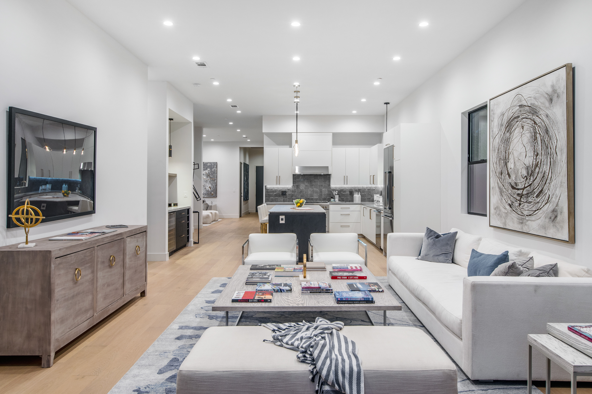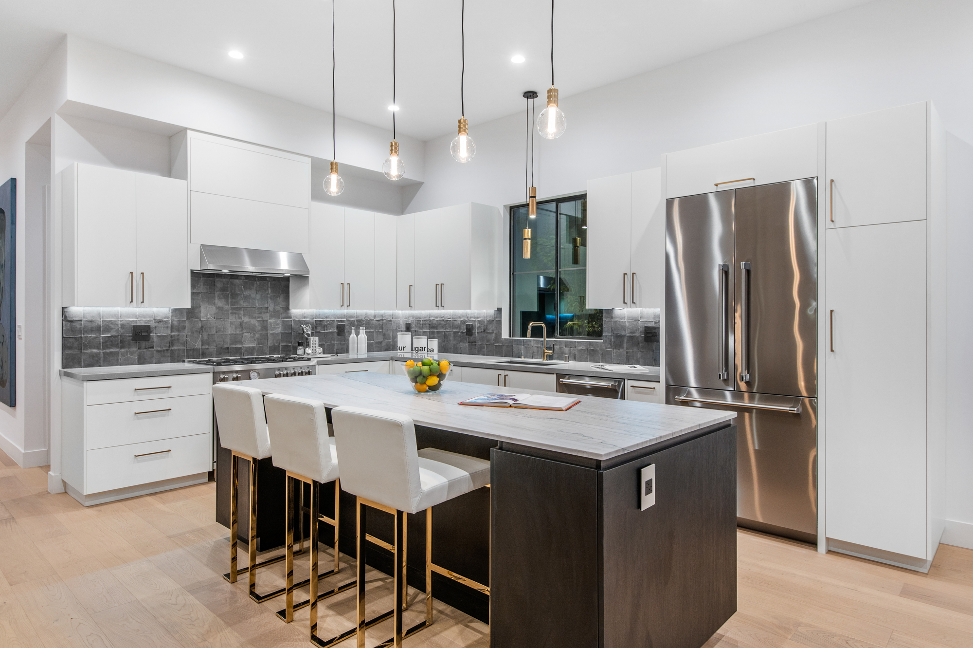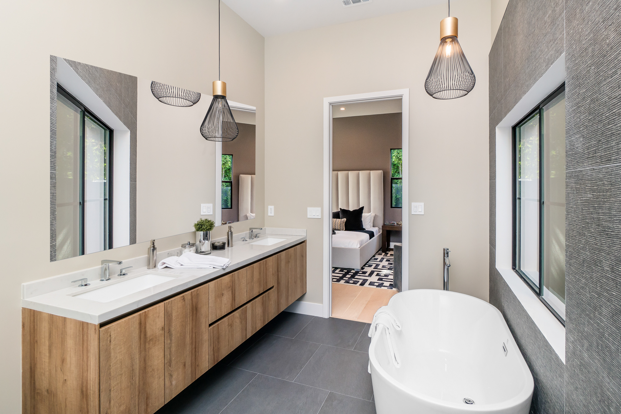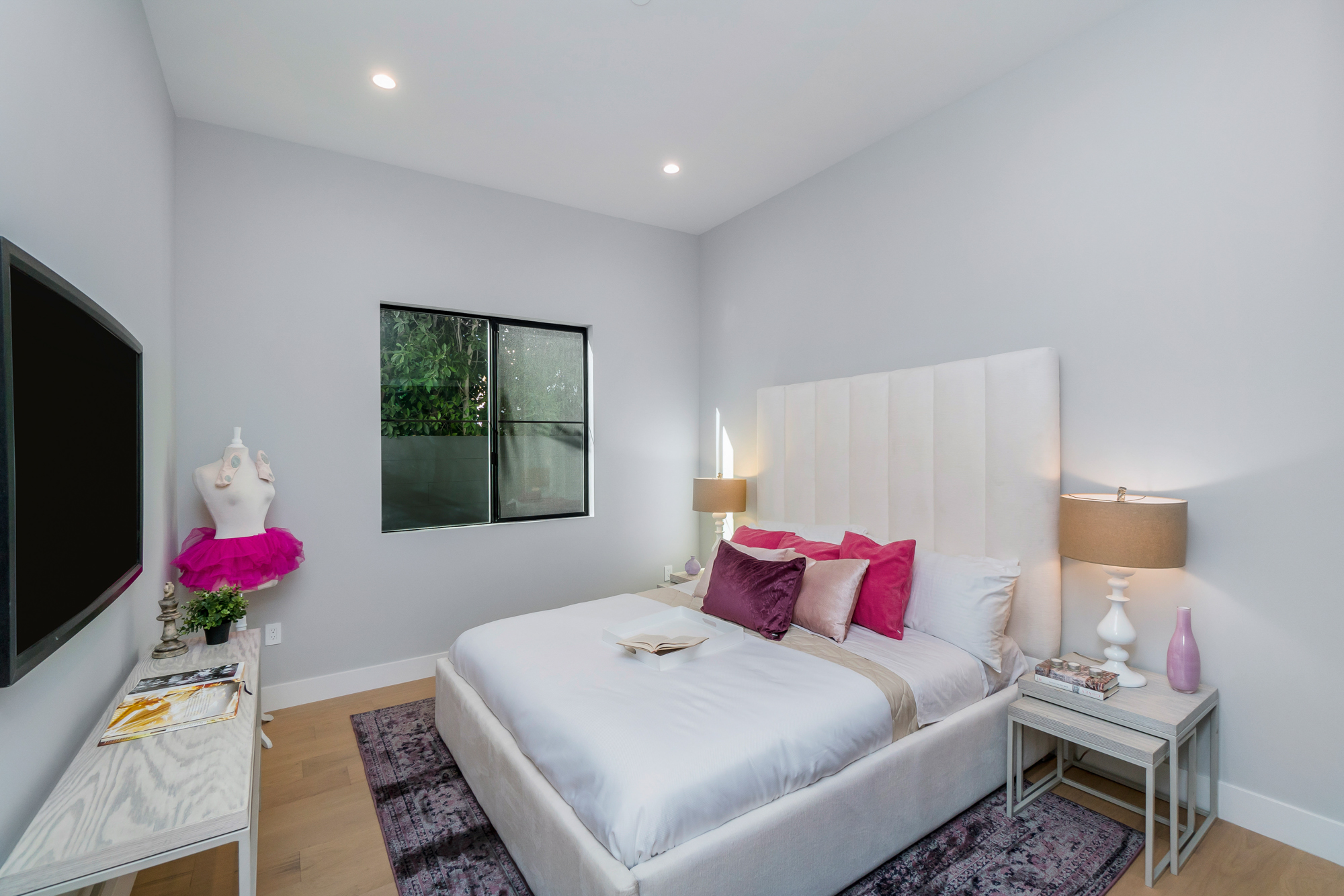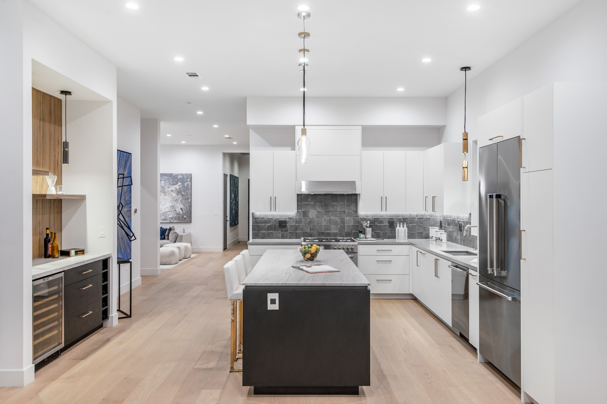 Welcome to your sleek single story modern masterpiece located in prime Encino, south of the boulevard. Completely brand new home, finished in summer of 2020. The natural wood and dark garage contrasted exterior creates a stunning, bold look that flows throughout the home. Striking curb appeal with pristine landscaping attracts all who enter. This extraordinary home was constructed with meticulous attention to detail from custom furnishings to gorgeous built ins and beautiful light fixtures. Upon entry, you are greeted with 11 ft soaring ceilings that extend throughout the home, light oak wood floors, and an incredibly open floor plan. Ambient lighting showcased inside and out elevates a luxury feel. The large and inviting formal living room adjacent to the dining room naturally flows into the glamorous chef’s kitchen. Featuring a custom gold plated backsplash, custom cabinetry, top of the line appliances, and a center island showcasing a stunning quartzite countertop with room for seating. Natural light pours in throughout the house from large sliding glass doors leading from the family room to the tranquil backyard. Backyard deck offers space for lounging around the cozy built in fire pit and leads out to the spacious and lush grassy yard, great for entertaining, playing, and relaxing. Majestic master suite provides private access to the backyard, boasting walk in closet, and grand master bath with soaking tub, walk in shower, and dual sinks. Additional amenities include laundry room, dry bar, 2 car garage, security system, Nest A/C thermostat, and so much more! Located just minutes from Ventura blvd’s trendy shops and and fine dining, this home is a must see and experience that can’t be beat!