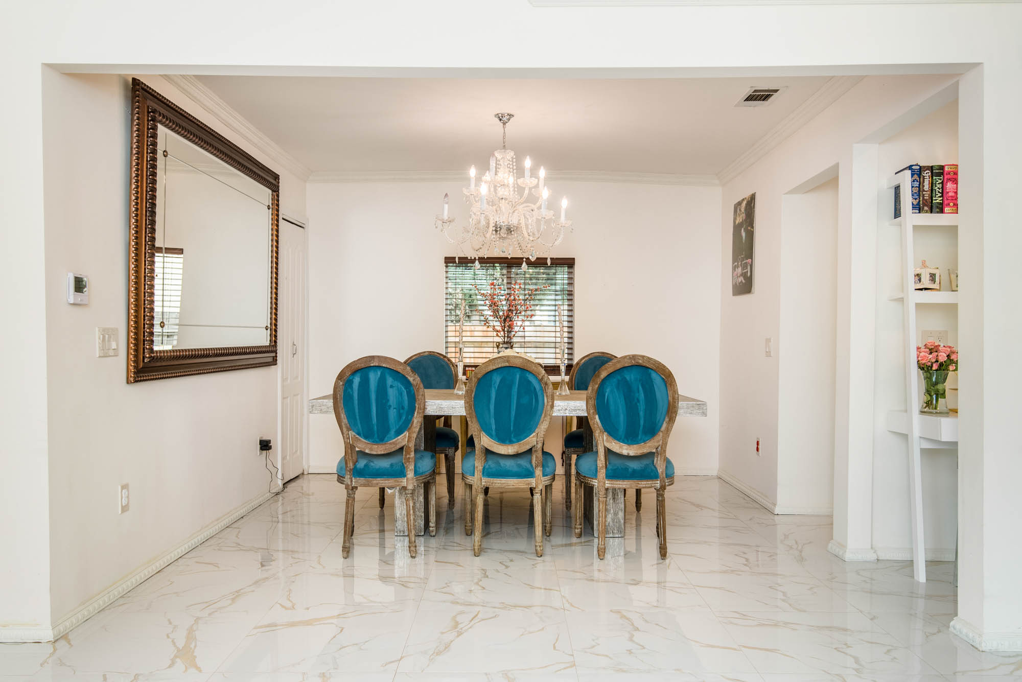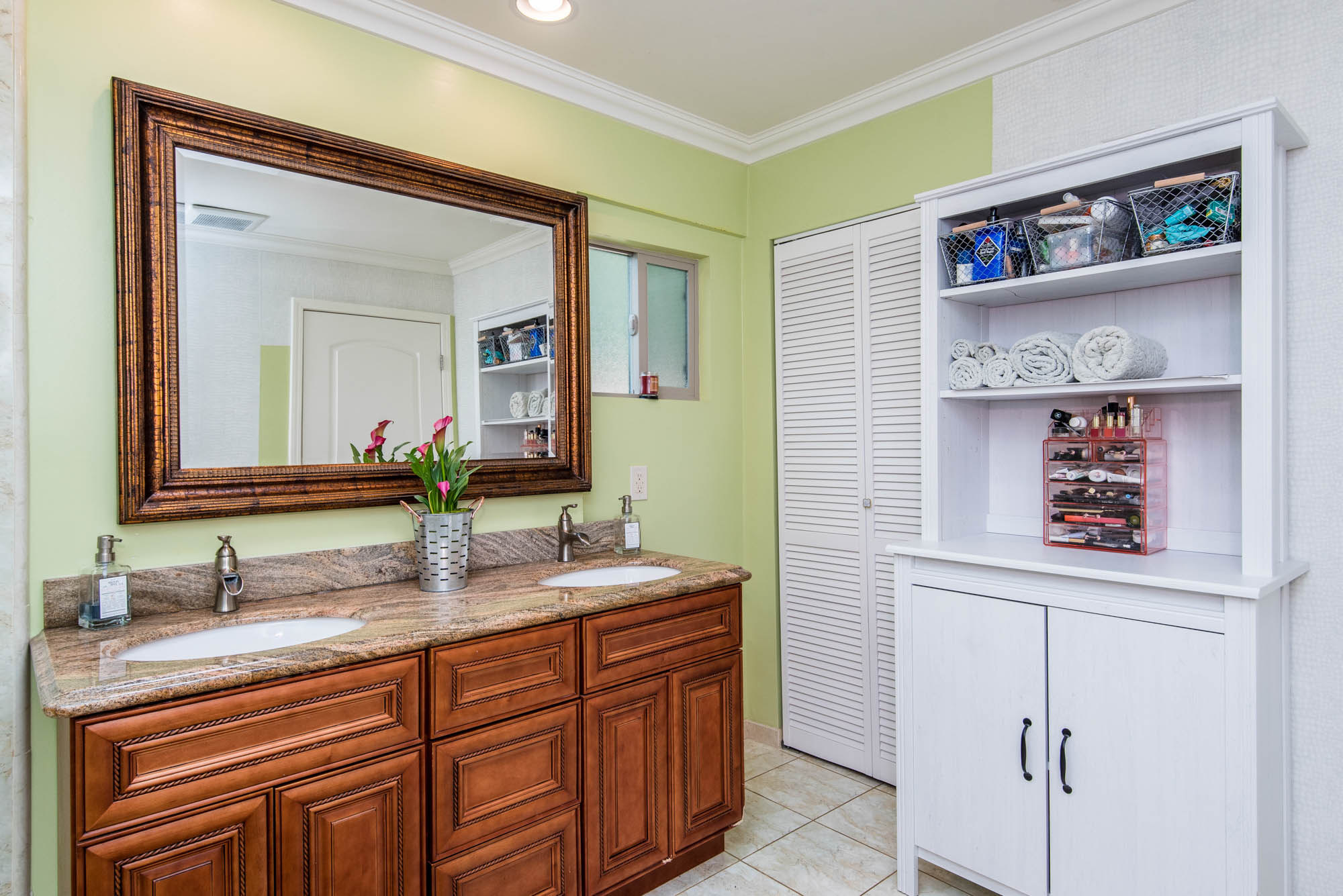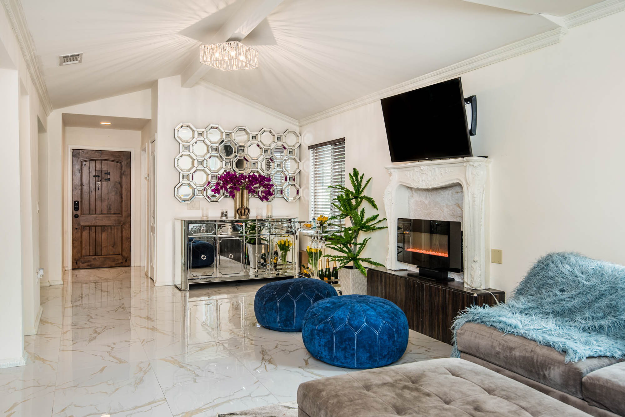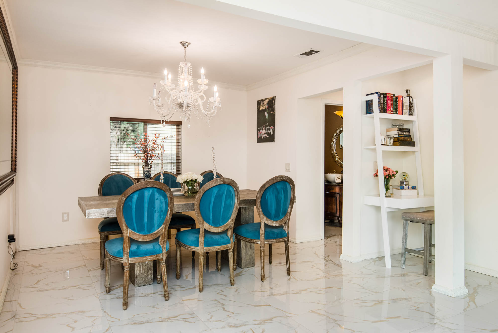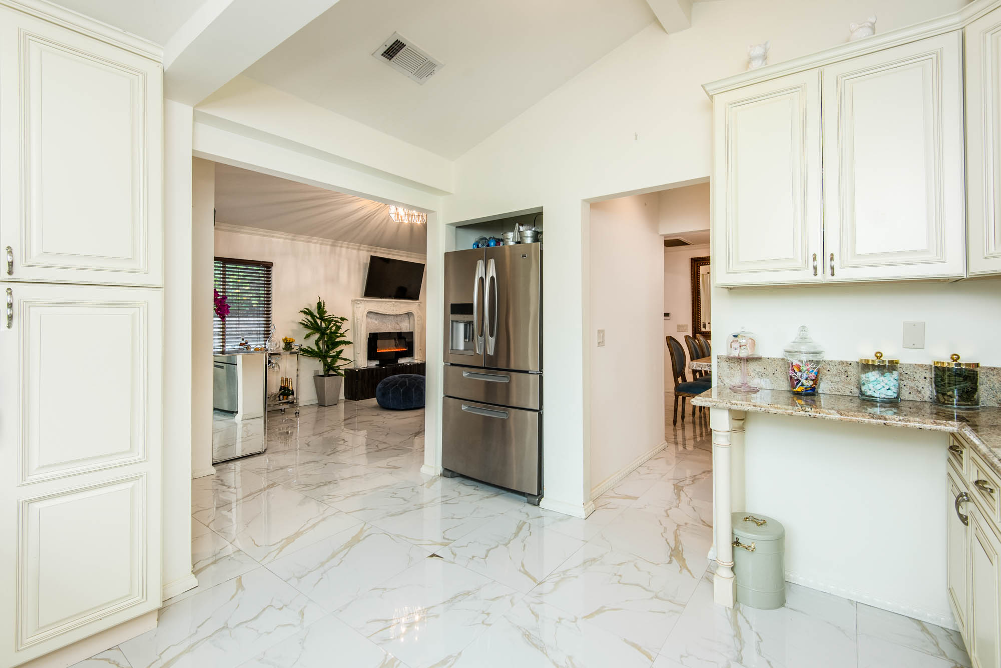 Sitting on a quiet street in Sherman Oaks lies this lovely 2 bed, 2.5 bath home with detached guest house, complete with kitchenette and full bathroom! Set far back behind a private gate, this home welcomes you with a generous lush lawn, beautiful fruit trees, and large tiled patio area perfect for al fresco dining. Upon entering, guests are greeted by an open floor plan and porcelain tiled floors that flow throughout the home. High ceilings, recessed lighting and an abundance of natural light from surrounding windows give off a light and airy feel. To the right is a grand dining area ideal for large gatherings! A breathtaking updated kitchen follows with bountiful light cabinetry, granite countertops, stainless steel appliances and views of the yard. The charming first bedroom includes crown moulding, recessed lighting, a full bathroom and spacious closet. Towards the back of the home lies the incredible master suite! This extensive retreat is the ultimate getaway and provides large windows, a vast walk-in closet and an immense, updated bathroom with luxury finishes like a stunning vanity, his and her sinks, spacious shower and a tub to soak in after a long day! Head outside with friends where there is ample outdoor seating to enjoy the California sun. If that wasn’t enough, the marvelous detached guest home is the icing on the cake. Located just behind the main home, this completely updated space has its own entrance. Featuring modern tile floors throughout, windows for lots of natural light, kitchenette, and separate bedroom with mirrored closet and full bathroom, it is optimal for renting, hosting guests, or even to use as a recording/art studio! Centrally located to the Sherman Oaks Galleria, 101 & 405 fwys, and distinguished Kester Elementary School, this home has it all!