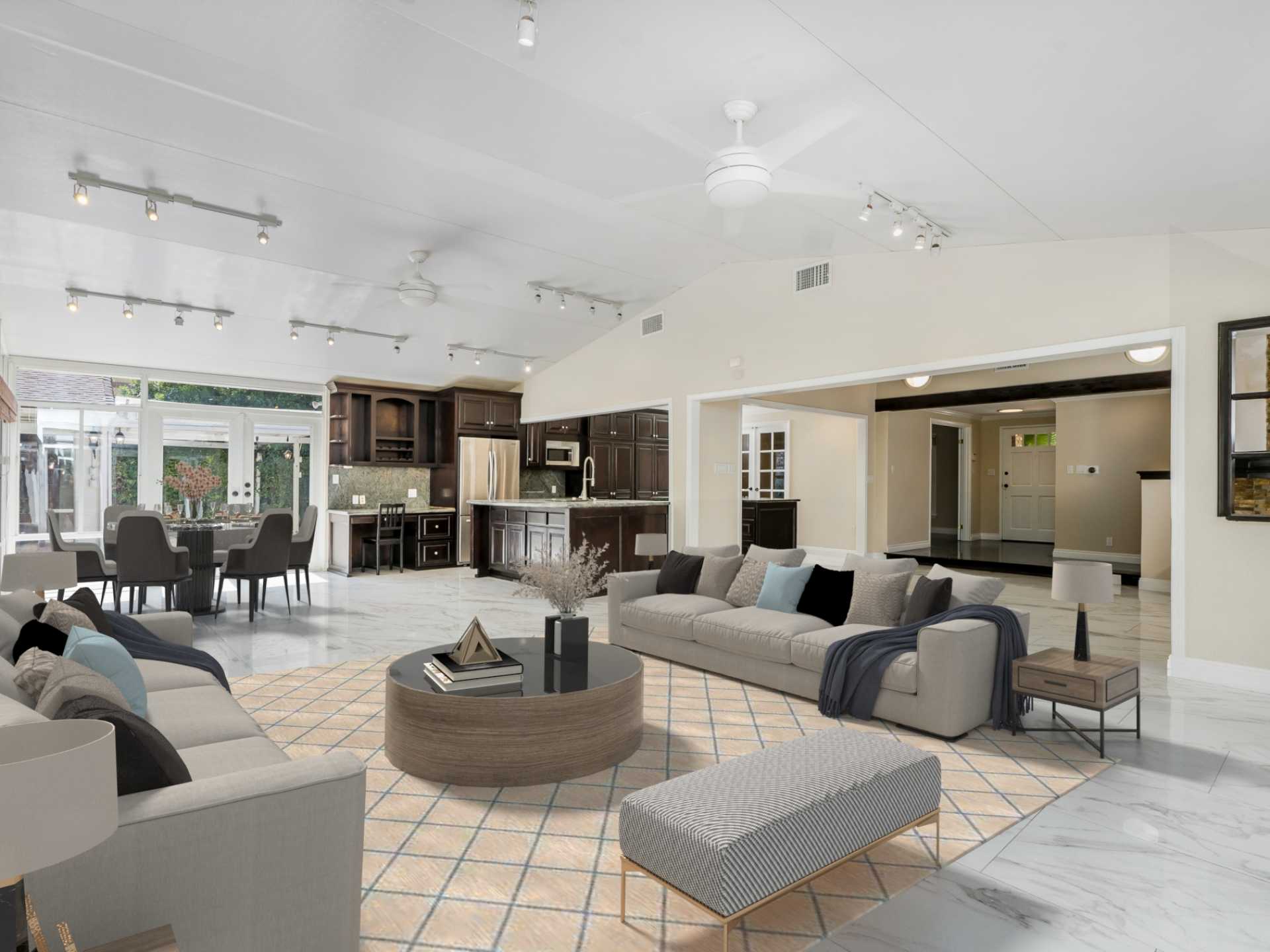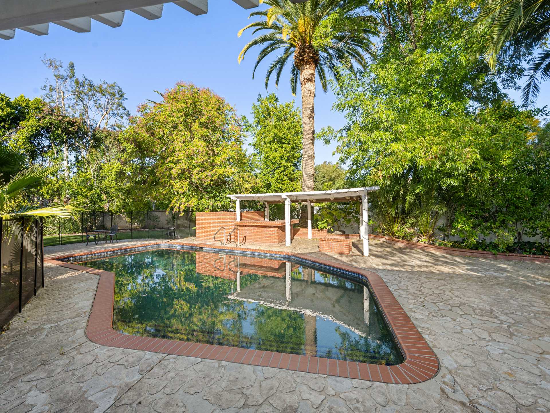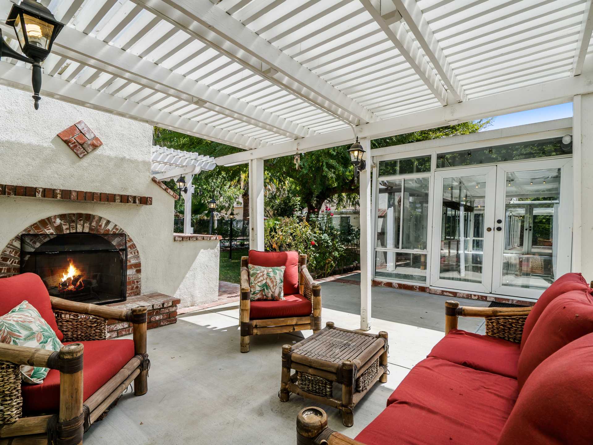 South of the Boulevard on an expansive 19,000+ sf lot, hidden behind privacy gates, this prized property offers a beautifully updated 4 bed, 4 bath main house and freshly renovated 2 bed, 2 bath guest house. Inside, the sprawling open concept floor plan features rich wood and sparkling marble floors. The great room is highlighted by walls of glass that flood the space with soft natural light, wood beamed ceilings and a gorgeous stone fireplace. A culinary enthusiast’s dream, the adjacent designer kitchen is fitted with high-end appliances, custom cabinetry and two large islands. Additionally, this home offers an inviting formal dining room and spacious loft area with a bathroom, perfect for a rec room or gym. There are four generously sized bedrooms, including a primary suite that has a walk-in closet and luxurious ensuite bathroom, complete with a jetted tub and double vanity. Additional amenities include dual zone AC, a two car garage with laundry, large circular driveway and so much more. Head outside to enjoy Southern California living at its best. Surrounded by lush landscaping, the expansive entertainer’s backyard consists of a gated pool, outdoor kitchen, cabana with a bar, covered patio with a built-in fireplace and ample yard space for kids or pets. Not to be missed is the spacious detached guest house, it features a living room and full kitchen with vaulted ceilings, 2 beds, 2 baths, separate laundry hookups and a sauna. Stellar location, down the street from El Caballero Country Club. Owner open to possible commercial type lease's.