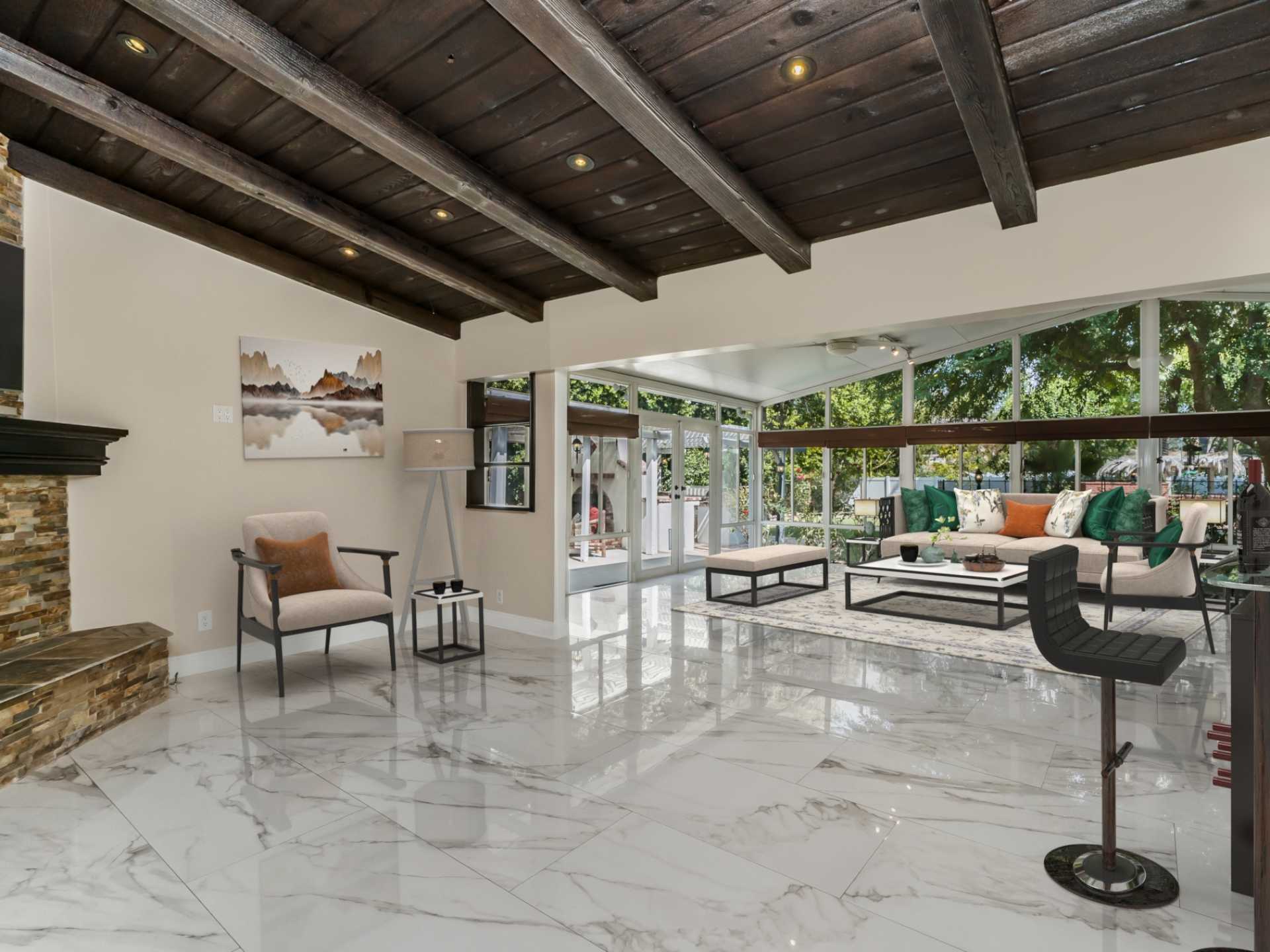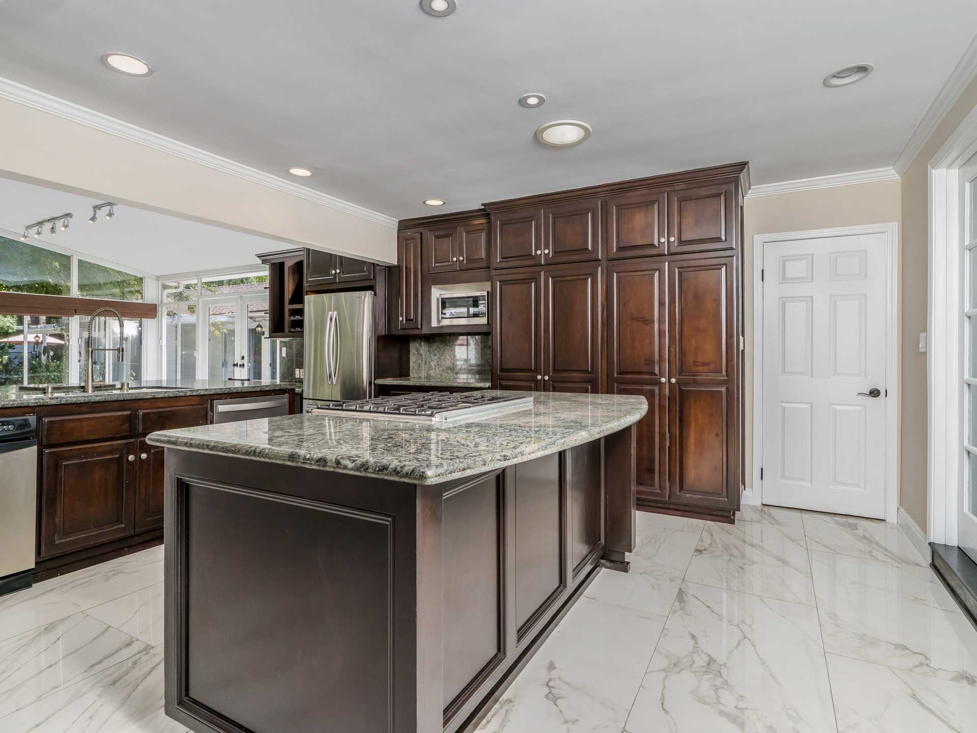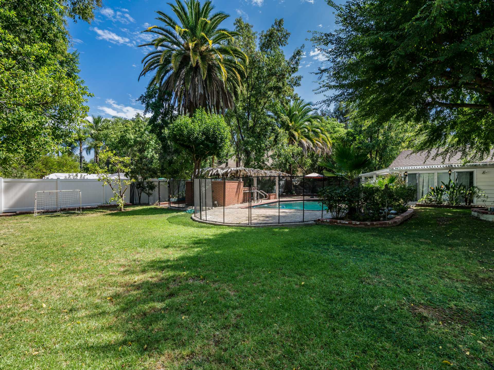 South of the Boulevard on an expansive 19,000+ sf lot, hidden behind privacy gates, this prized property offers a beautifully updated 4 bed, 4 bath main house and freshly renovated 2 bed, 2 bath guest house. Inside, the sprawling open concept floor plan features rich wood and sparkling marble floors. The great room is highlighted by walls of glass that flood the space with soft natural light, wood beamed ceilings and a gorgeous stone fireplace. A culinary enthusiast’s dream, the adjacent designer kitchen is fitted with high-end appliances, custom cabinetry and two large islands. Additionally, this home offers an inviting formal dining room and spacious loft area with a bathroom, perfect for a rec room or gym. There are four generously sized bedrooms, including a primary suite that has a walk-in closet and luxurious ensuite bathroom, complete with a jetted tub and double vanity. Additional amenities include dual zone AC, a two car garage with laundry, large circular driveway and so much more. Head outside to enjoy Southern California living at its best. Surrounded by lush landscaping, the expansive entertainer’s backyard consists of a gated pool, outdoor kitchen, cabana with a bar, covered patio with a built-in fireplace and ample yard space for kids or pets. Not to be missed is the spacious detached guest house, it features a living room and full kitchen with vaulted ceilings, 2 beds, 2 baths, separate laundry hookups and a sauna. Stellar location, down the street from El Caballero Country Club. Owner open to possible commercial type lease's.