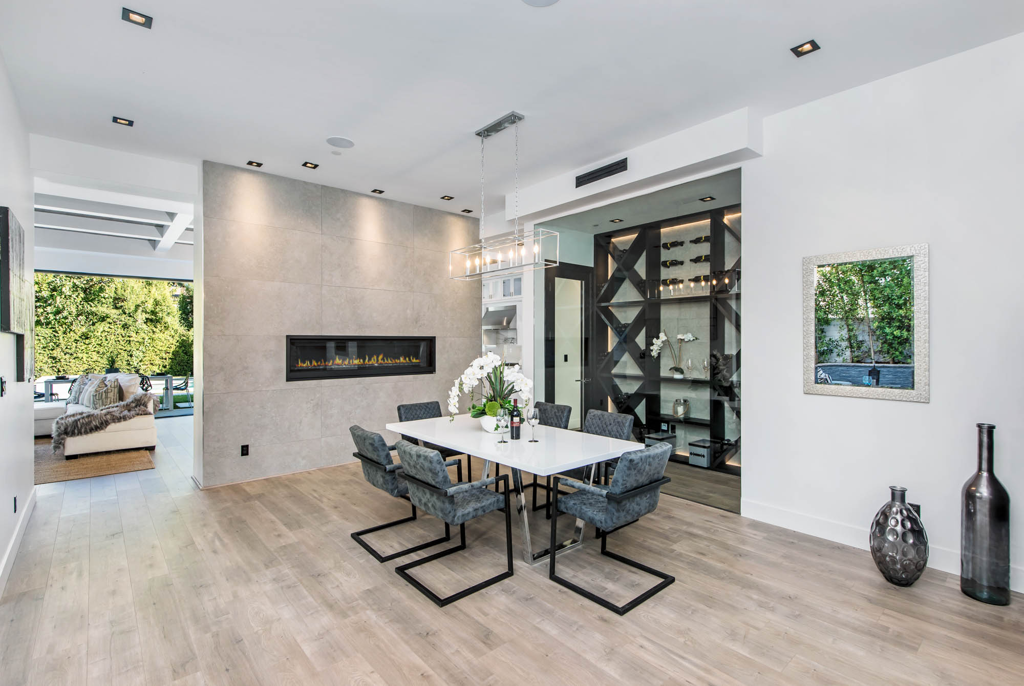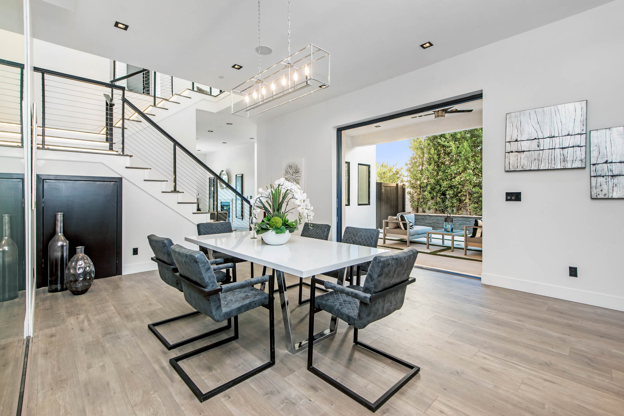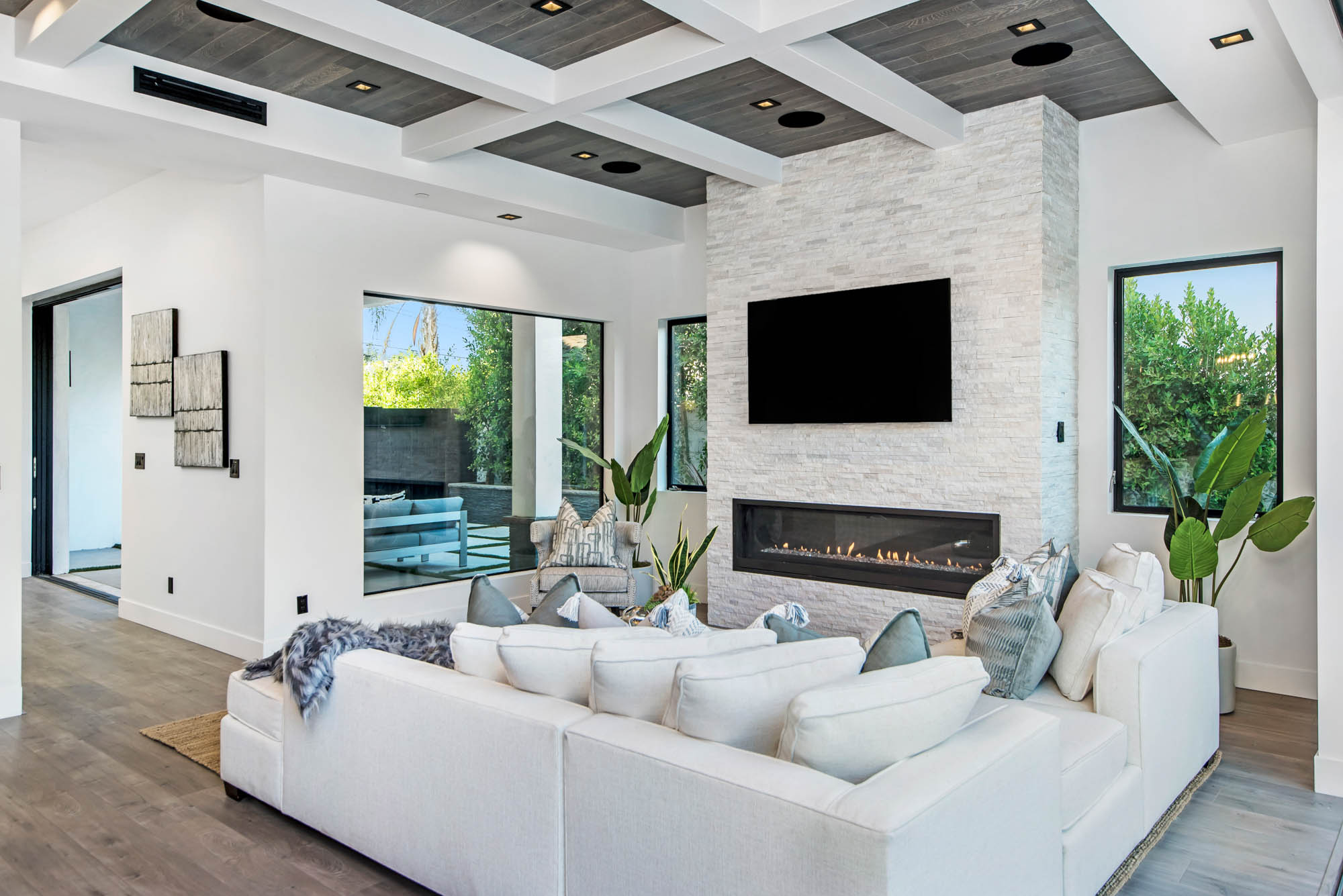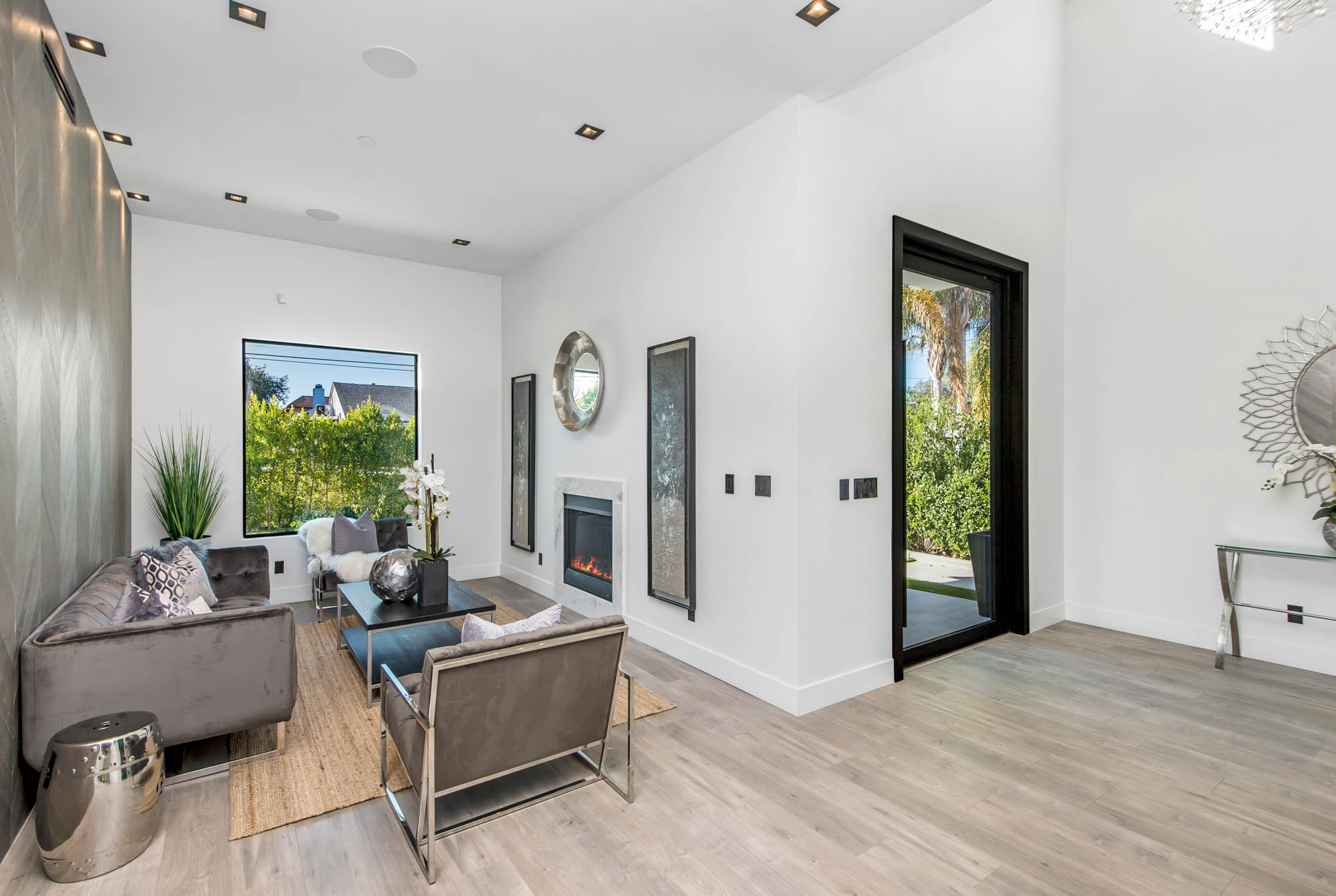 New Construction in prime Encino location! Soft Modern aesthetic in perfect harmony with luxurious fixtures and finishes result in the fineness of this home. Open floor plan illuminated by large windows and glass sliding pocket doors take you through every architectural expense and detail this home encompasses. Walking in, you are greeted by a 23’ high ceiling giving you a taste of the luxury that awaits. Formal living room, and dining room which lead to a private covered patio, later separated with a bold fireplace wall that leads you to a family room and Chefs kitchen with top of the line Miele appliances, two dishwashers, built-in double convection & steam ovens, 6 burner range with griddle, built-in coffee/latte maker, microwave, 2 large islands, one with a 36' Kohler, apron sink, and other w/ prep sink. The large second set of pocket doors lead you to an entertainers paradise of a backyard with a saltwater pool and spa, stunning hardscaping and an abundance of grass space. 5 Ensuite Bedrooms, with one being located on the first floor for convenience. Master suite replicated the indoor/outdoor environment the home perfects with sliding pocket doors that open to a large private deck. Master Bath holds dual sinks, makeup vanity, freestanding Kohler hydrotherapy tub, large walk-in marble shower, and walk-in closet. Additional amenities include dual CAT 6, security system, surround sound, LED lighting, smart home compatibilities and so much more. From coveted K-8 Hesby Oaks School District location to the endless luxurious features this home is a must-see!