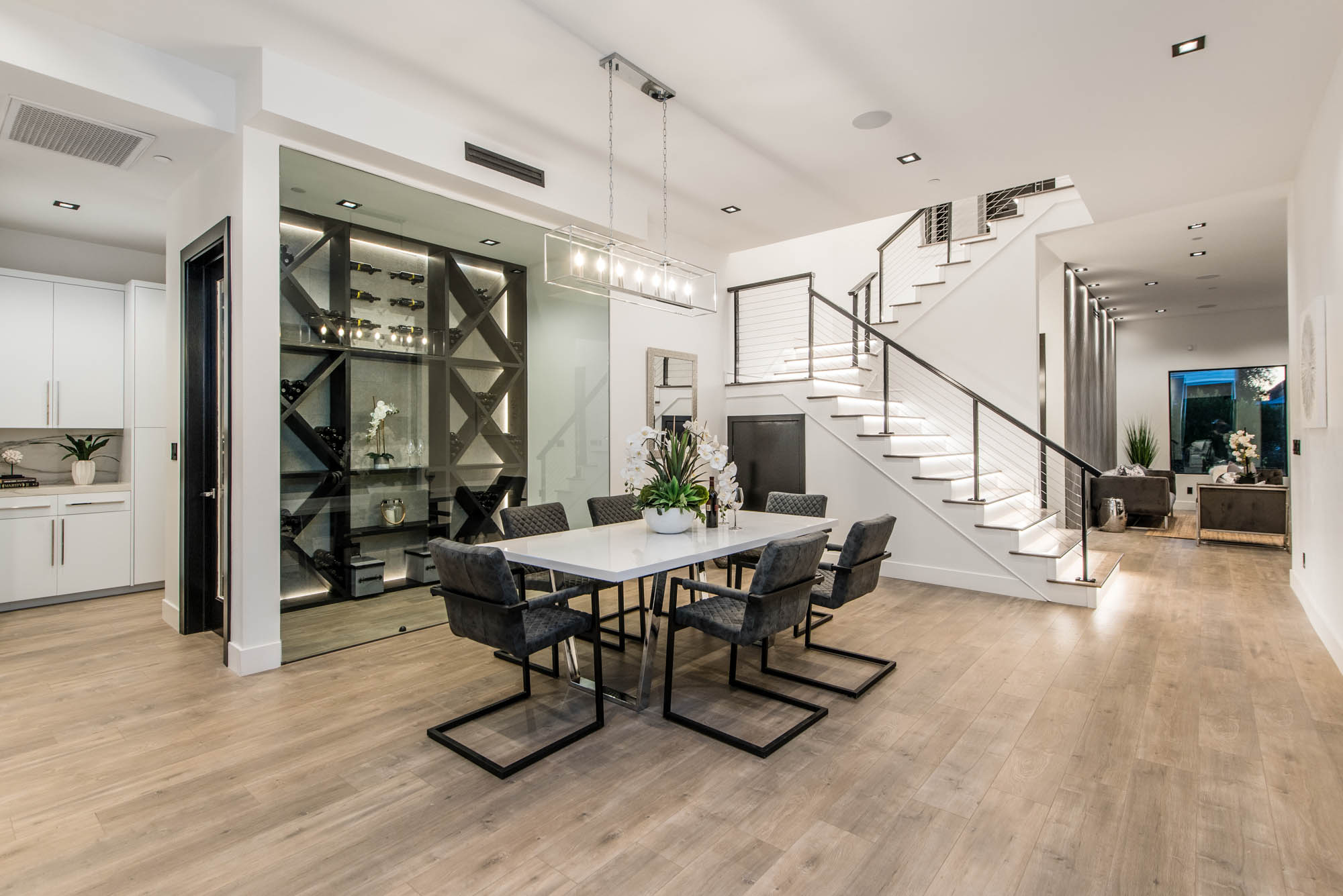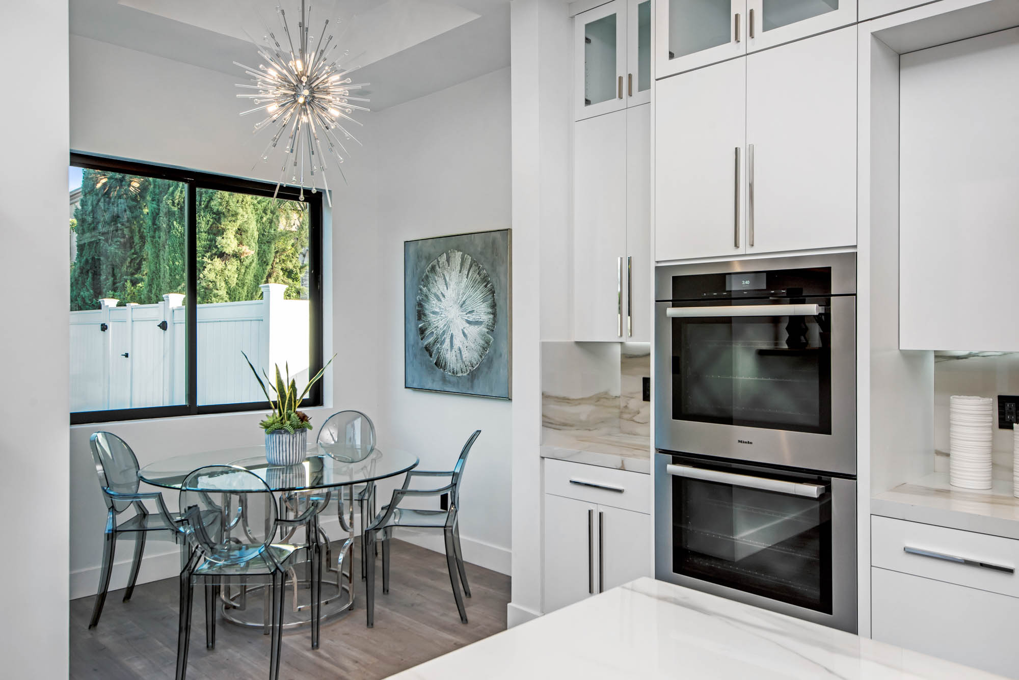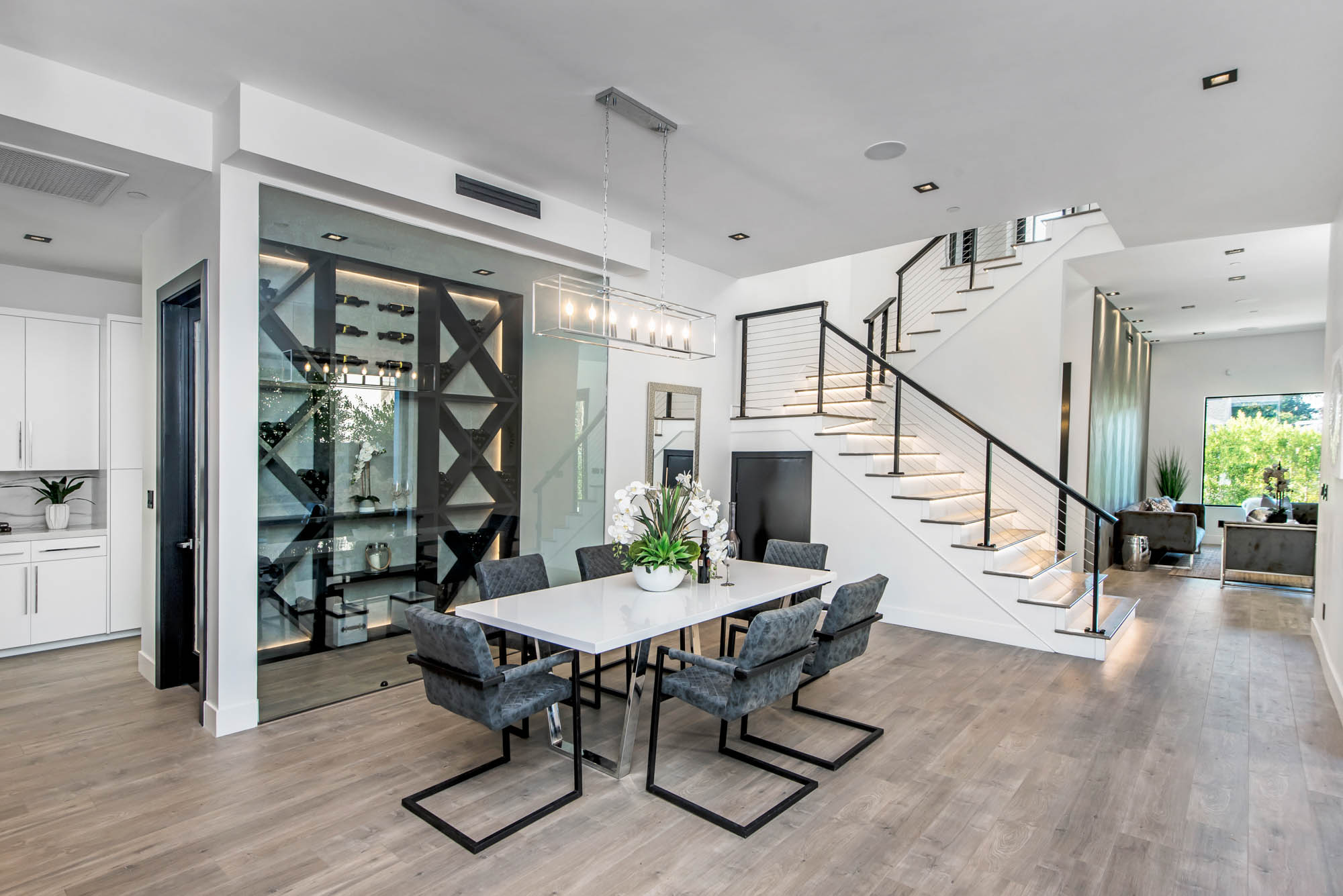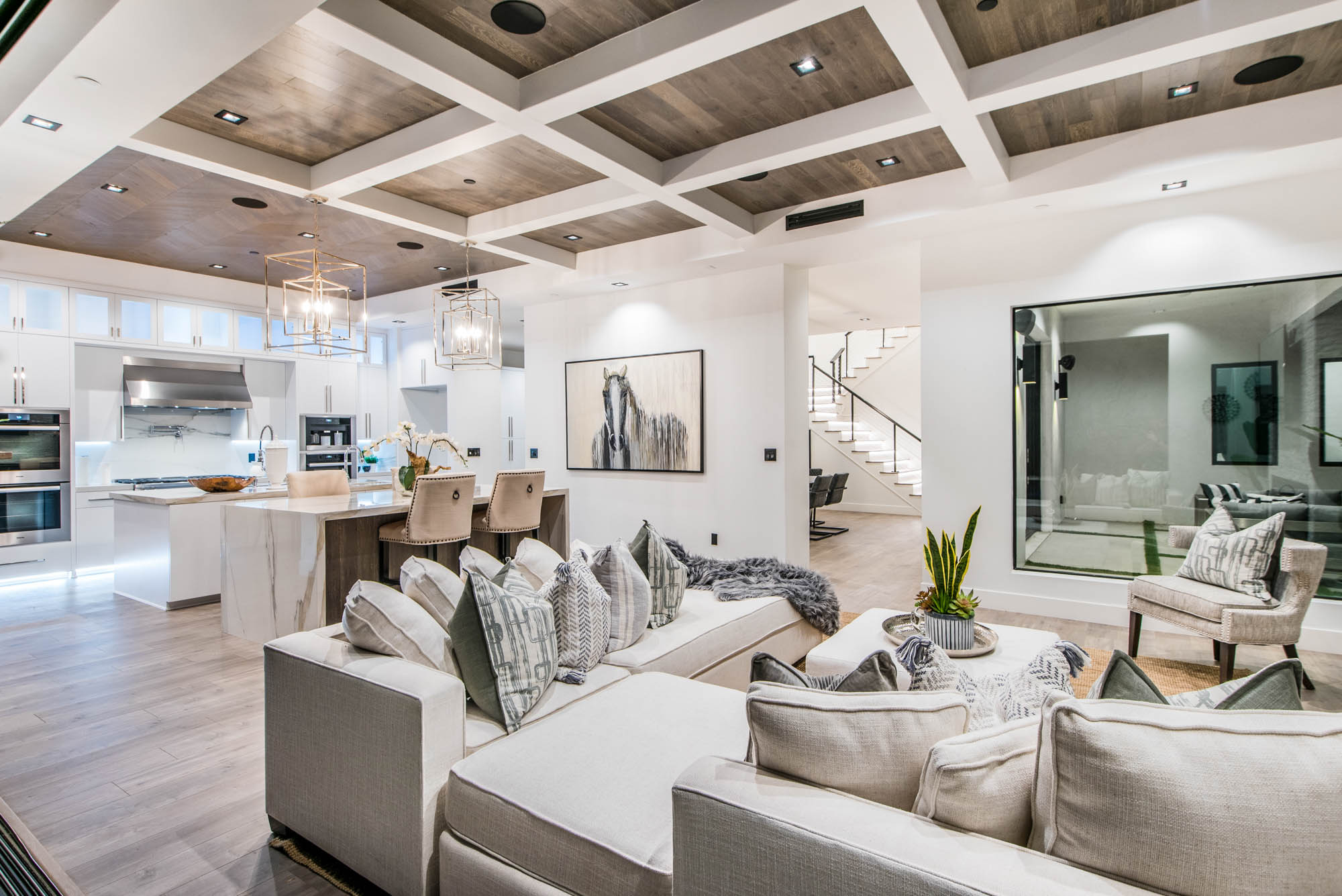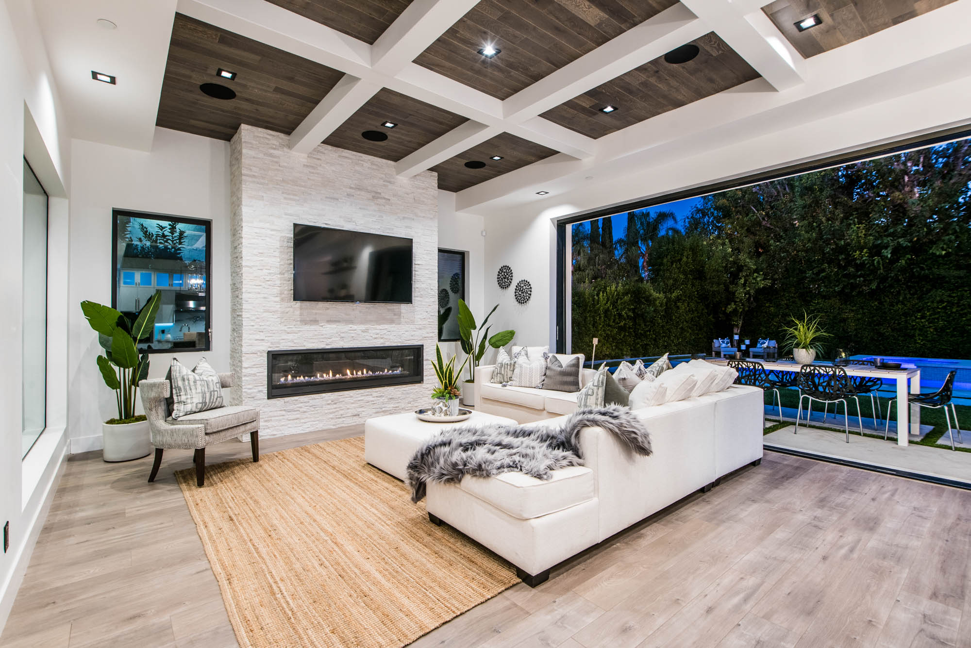 New Construction in prime Encino location! Soft Modern aesthetic in perfect harmony with luxurious fixtures and finishes result in the fineness of this home. Open floor plan illuminated by large windows and glass sliding pocket doors take you through every architectural expense and detail this home encompasses. Walking in, you are greeted by a 23’ high ceiling giving you a taste of the luxury that awaits. Formal living room, and dining room which lead to a private covered patio, later separated with a bold fireplace wall that leads you to a family room and Chefs kitchen with top of the line Miele appliances, two dishwashers, built-in double convection & steam ovens, 6 burner range with griddle, built-in coffee/latte maker, microwave, 2 large islands, one with a 36' Kohler, apron sink, and other w/ prep sink. The large second set of pocket doors lead you to an entertainers paradise of a backyard with a saltwater pool and spa, stunning hardscaping and an abundance of grass space. 5 Ensuite Bedrooms, with one being located on the first floor for convenience. Master suite replicated the indoor/outdoor environment the home perfects with sliding pocket doors that open to a large private deck. Master Bath holds dual sinks, makeup vanity, freestanding Kohler hydrotherapy tub, large walk-in marble shower, and walk-in closet. Additional amenities include dual CAT 6, security system, surround sound, LED lighting, smart home compatibilities and so much more. From coveted K-8 Hesby Oaks School District location to the endless luxurious features this home is a must-see!