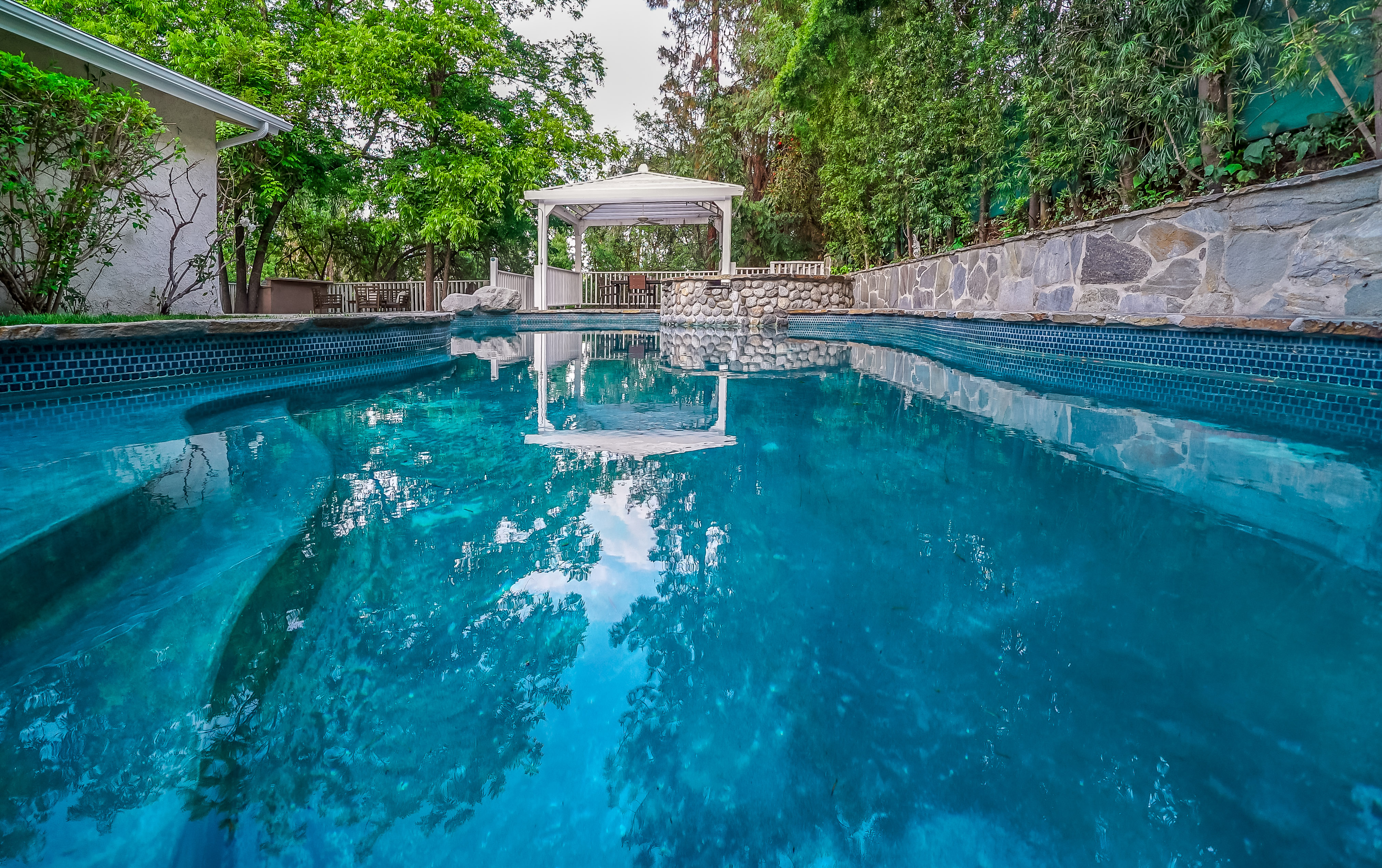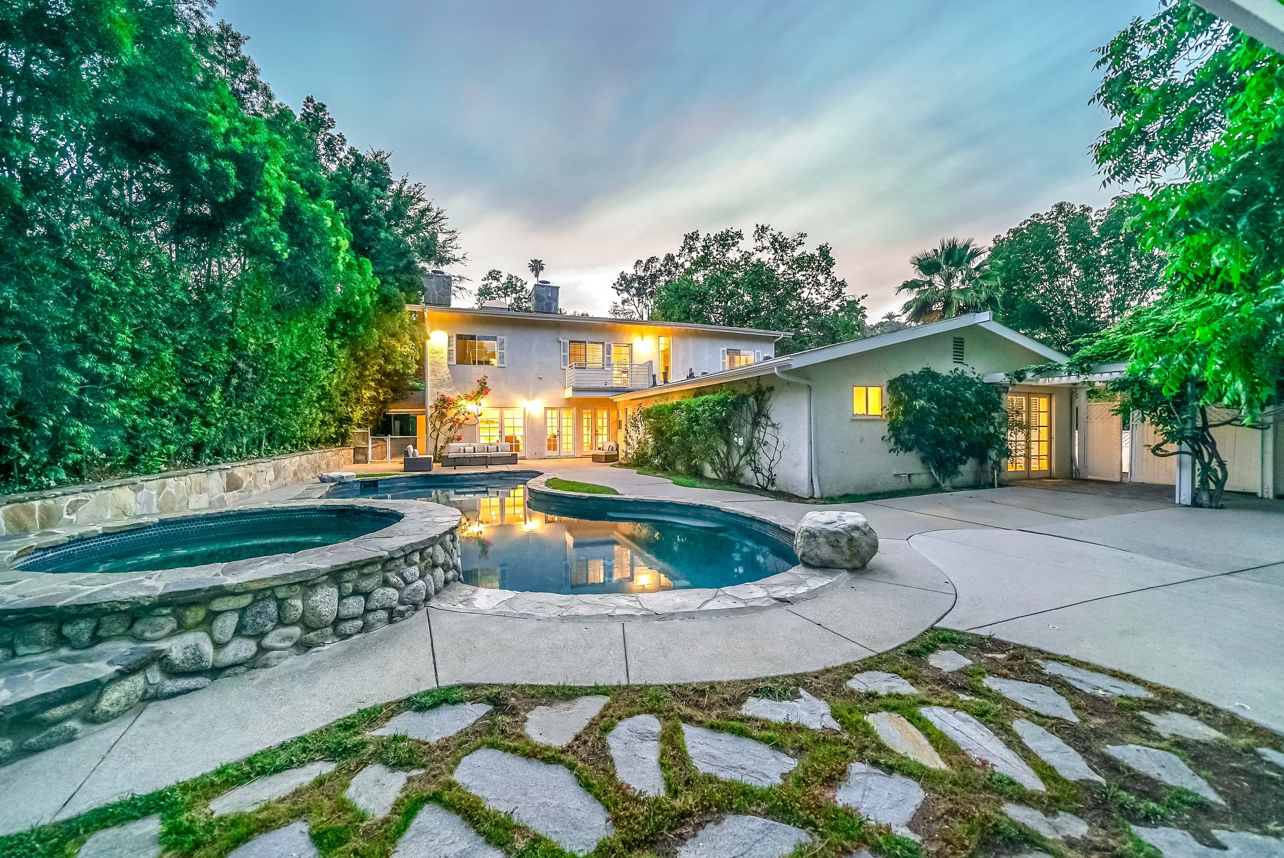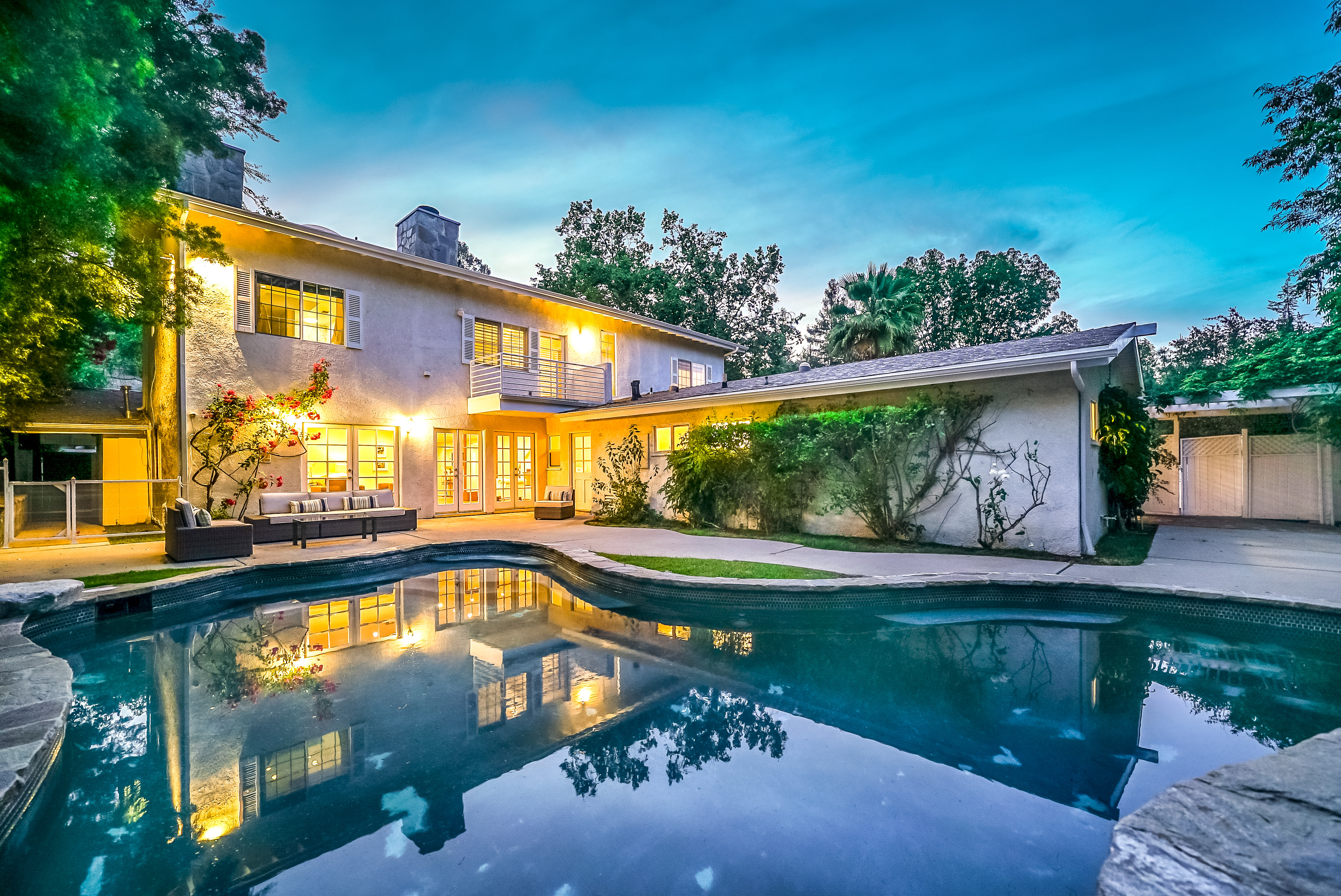 Exquisite South of the Blvd. home situated on an oversized lot in beautiful Tarzana! As you walk through the entry, you are greeted by an expansive living room with fireplace and 3 sets of french doors leading to the serene backyard. The first floor offers bountiful natural light and holds four of the six bedrooms. The formal dining room with additional fireplace is framed by an oversized, picturesque window and flows into the updated kitchen with stainless steel appliances and abundant storage. The master suite is one of two bedrooms upstairs and features a walk-in closet with custom built-ins, high ceilings, luxurious bathroom with double sink, skylights, and soaking tub. A private balcony off the master bedroom offers a view of the sparkling pool and spa, and sprawling park-like grounds. The backyard of this home is truly a serene paradise. From the built-in BBQ, inviting cabana, and huge flat grassy lot, it is perfect for entertaining and outdoor sports! Located moments from fine dining and shopping - this is one home you do not want to pass up!