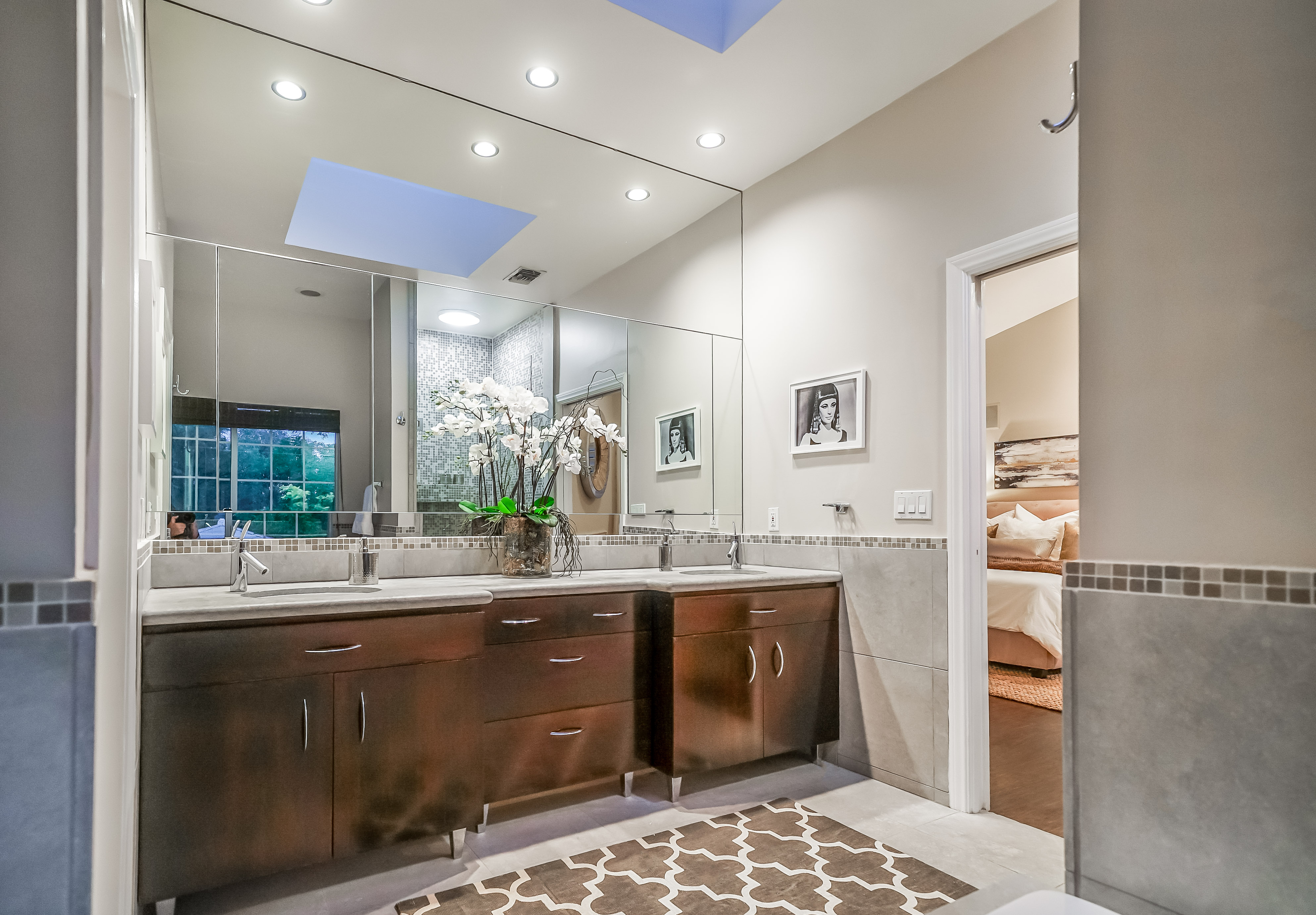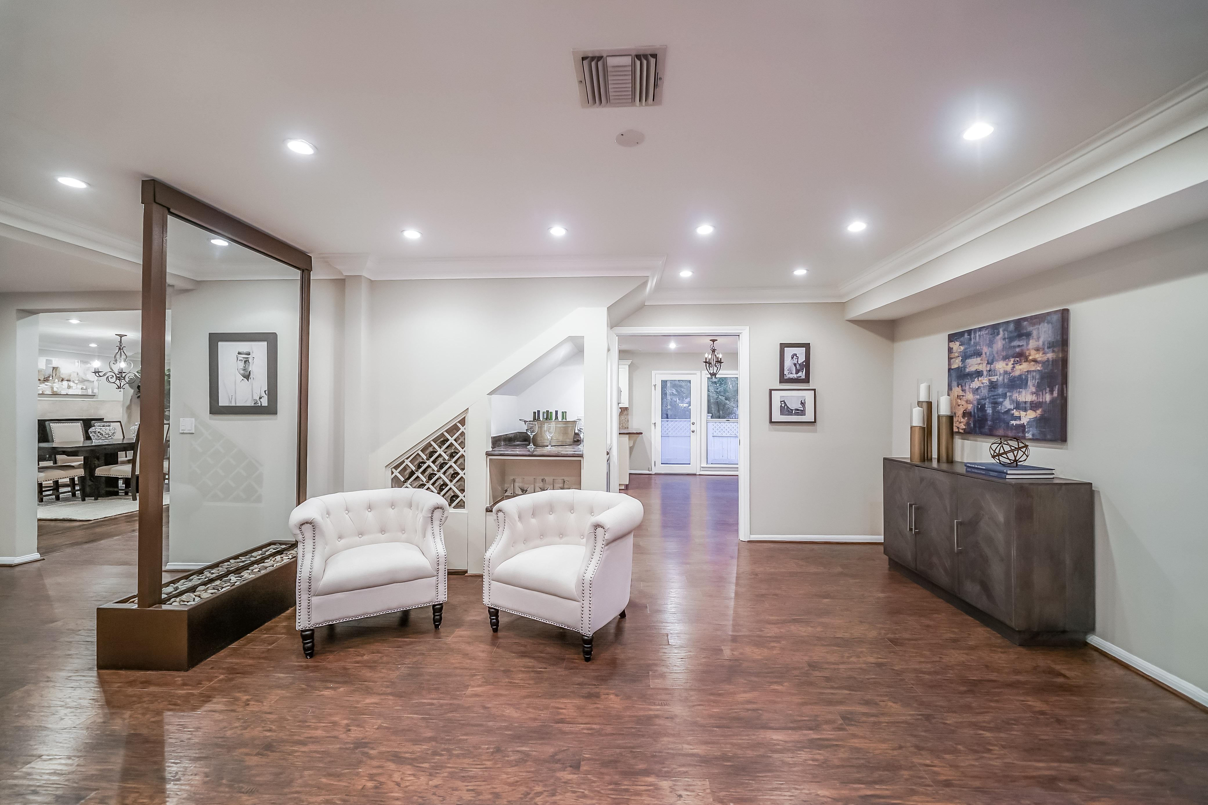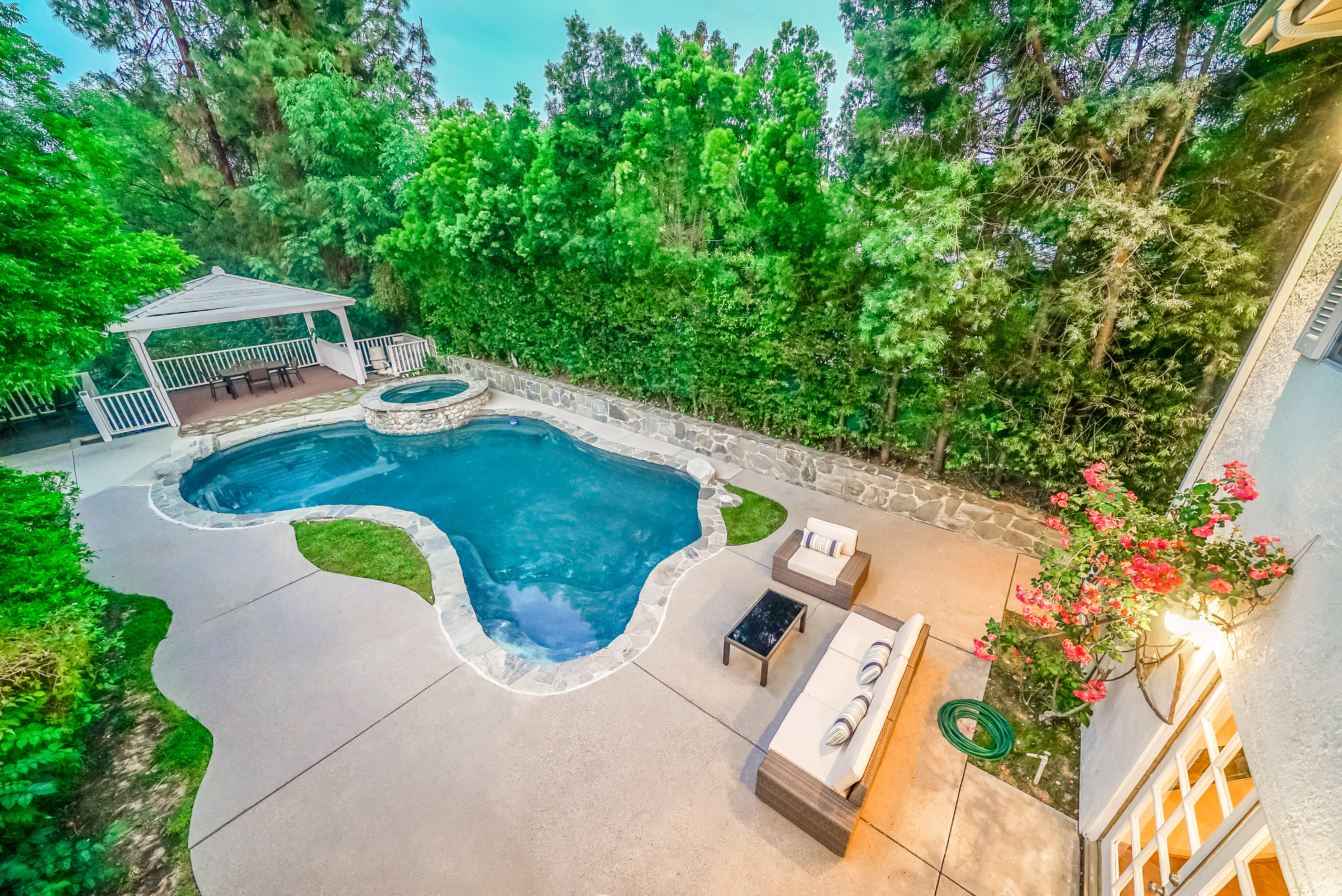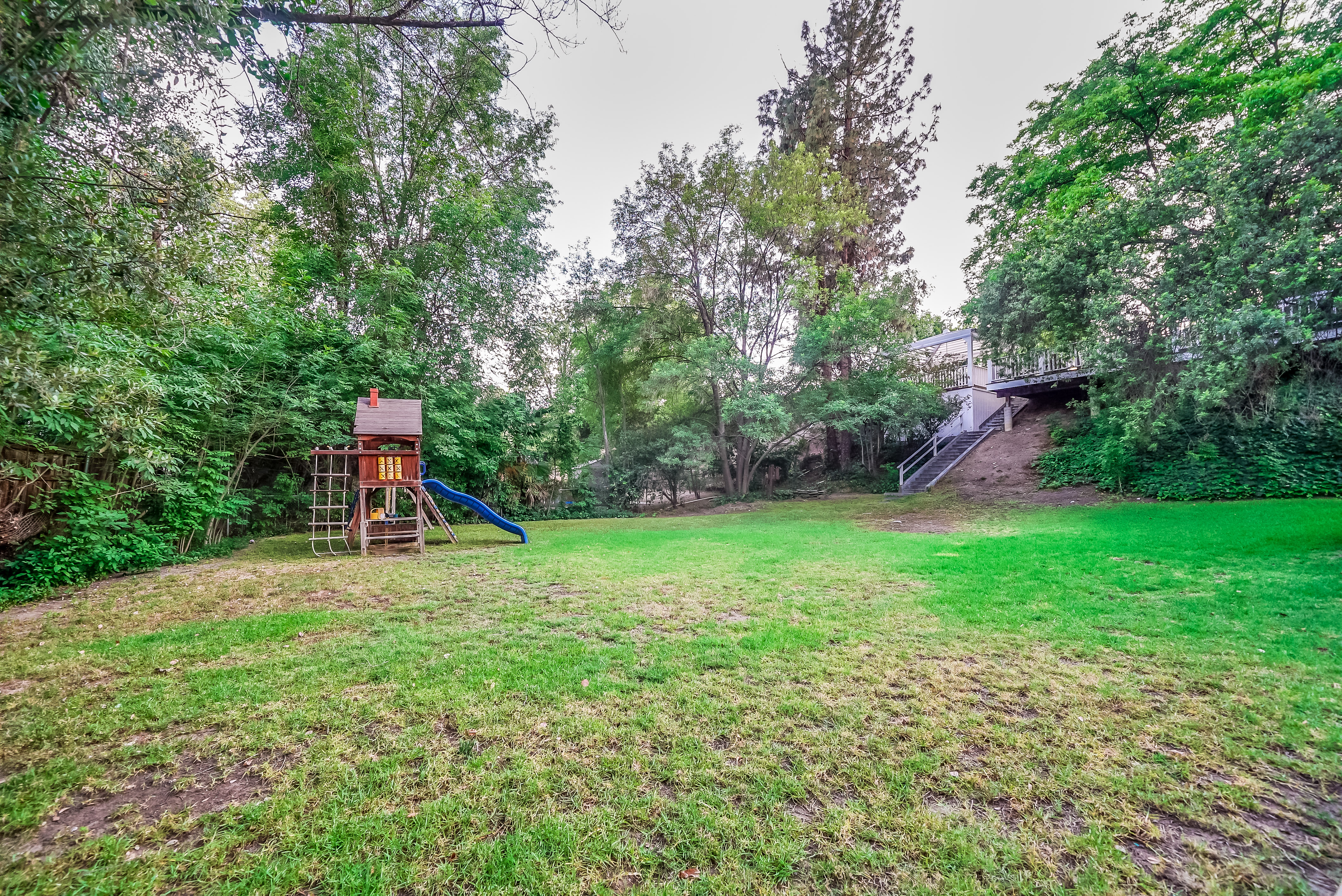 Exquisite South of the Blvd. home situated on an oversized lot in beautiful Tarzana! As you walk through the entry, you are greeted by an expansive living room with fireplace and 3 sets of french doors leading to the serene backyard. The first floor offers bountiful natural light and holds four of the six bedrooms. The formal dining room with additional fireplace is framed by an oversized, picturesque window and flows into the updated kitchen with stainless steel appliances and abundant storage. The master suite is one of two bedrooms upstairs and features a walk-in closet with custom built-ins, high ceilings, luxurious bathroom with double sink, skylights, and soaking tub. A private balcony off the master bedroom offers a view of the sparkling pool and spa, and sprawling park-like grounds. The backyard of this home is truly a serene paradise. From the built-in BBQ, inviting cabana, and huge flat grassy lot, it is perfect for entertaining and outdoor sports! Located moments from fine dining and shopping - this is one home you do not want to pass up!