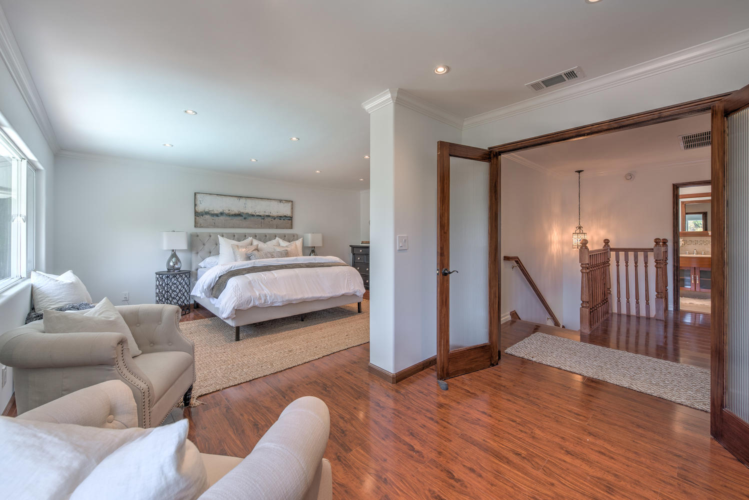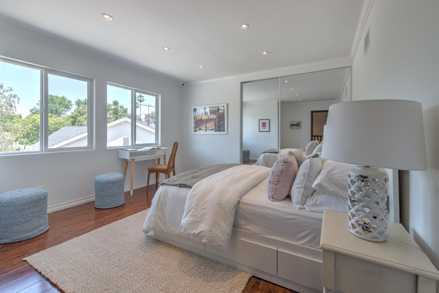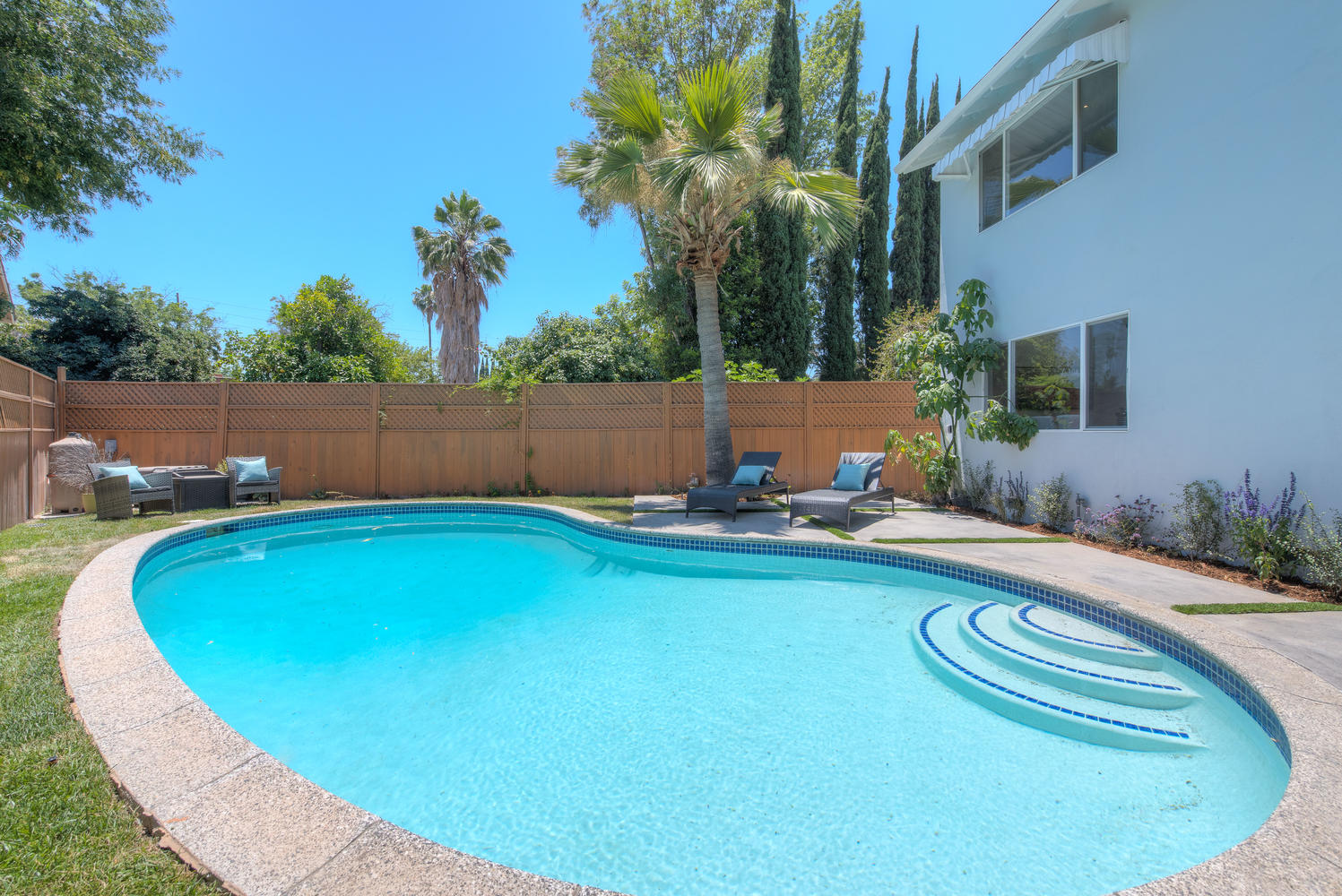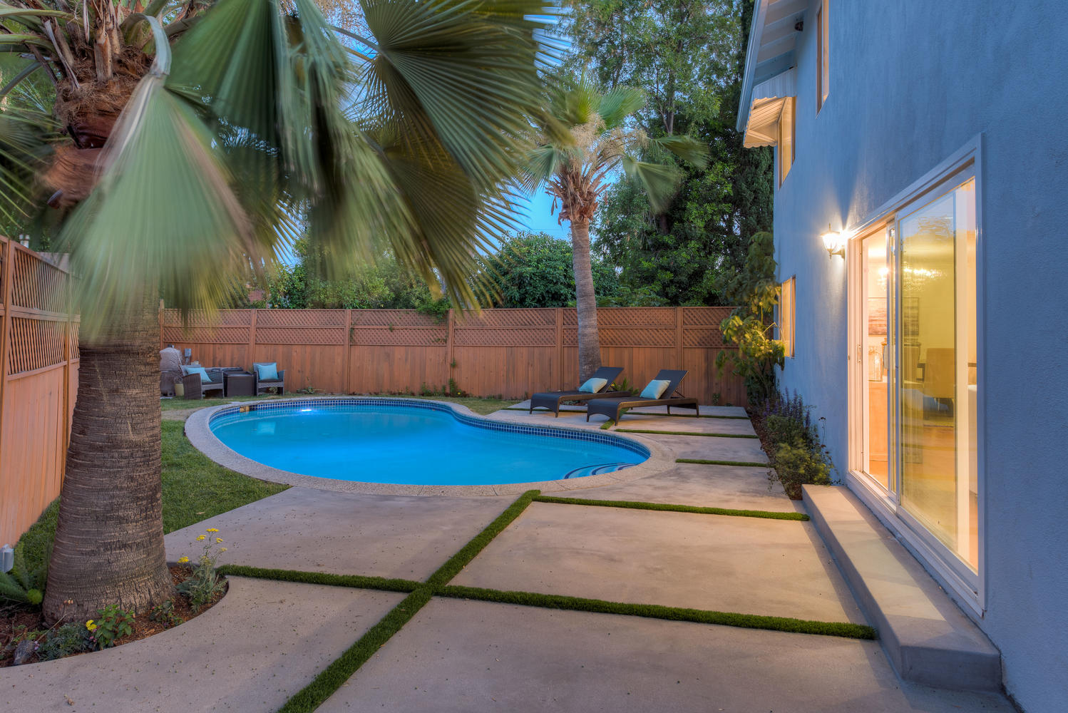 Charismatic two-story home on a quiet culdesac in sensational Sherman Oaks. The large driveway and gate allow for privacy from the street. Walk in through the brick stone entrance to the beautiful double doors. Inside you are greeted by a spacious open floor plan that connects the living room with light marble fireplace to the formal dining room. Updated kitchen with breakfast nook and stainless steel appliances makes this home great for hosting family and friends. The outside features a refreshing salt water heated pool and extensive grassy yard, great for those summer days and cool nights. The first floor also offers a beautiful second suite with walk in custom closet and remodeled ¾ bathroom. Upstairs you will find three additional bedrooms, including the fully upgraded Master suite that greets you with French doors, and a feeling of instant relaxation from the abundance of natural light. Inside you will find a large sitting area, and grand master closet, complete with custom built-ins. The master bathroom is one to boast about with jetted tub, double sinks, and oversized rain shower. Upgrades include hardwood floors, dual pane windows, new pool equipment, new HVAC system, LED lighting throughout Conveniently located to many shops and restaurants, this is the perfect family home!