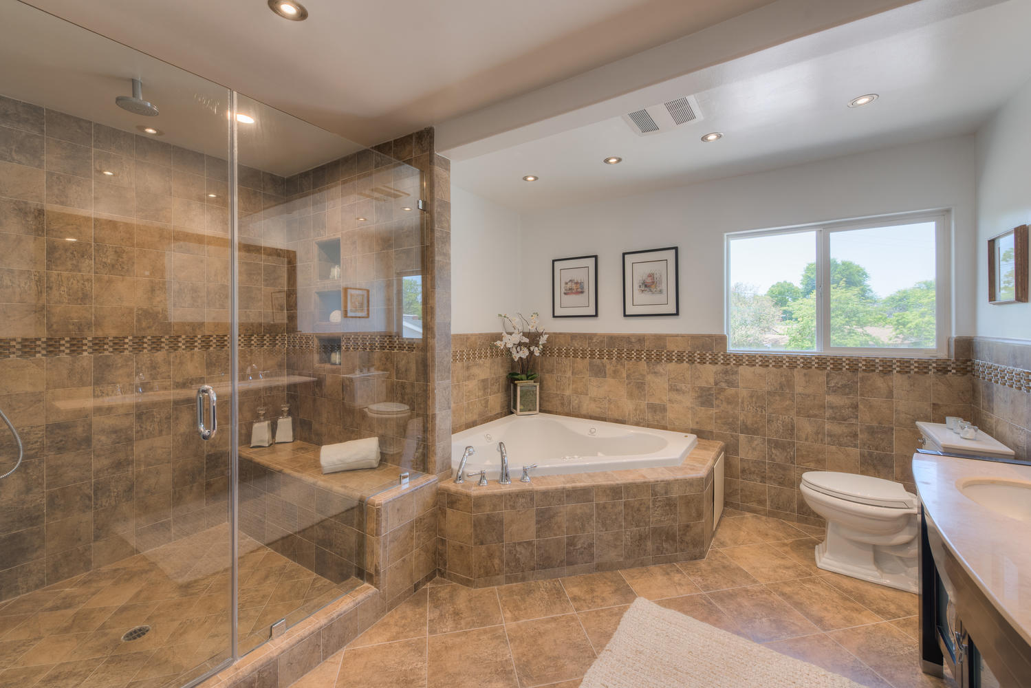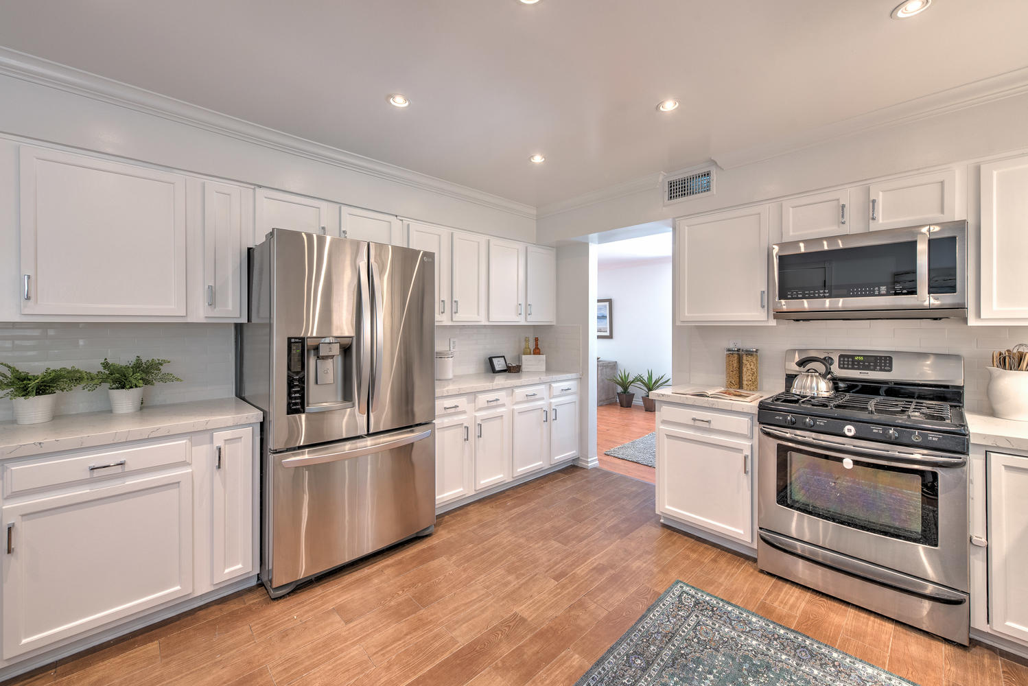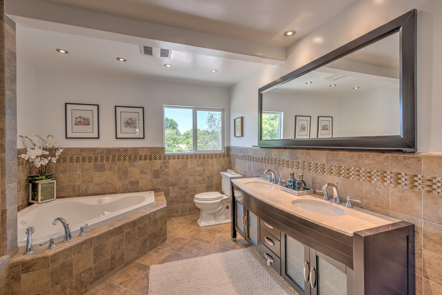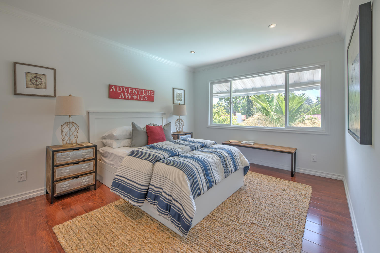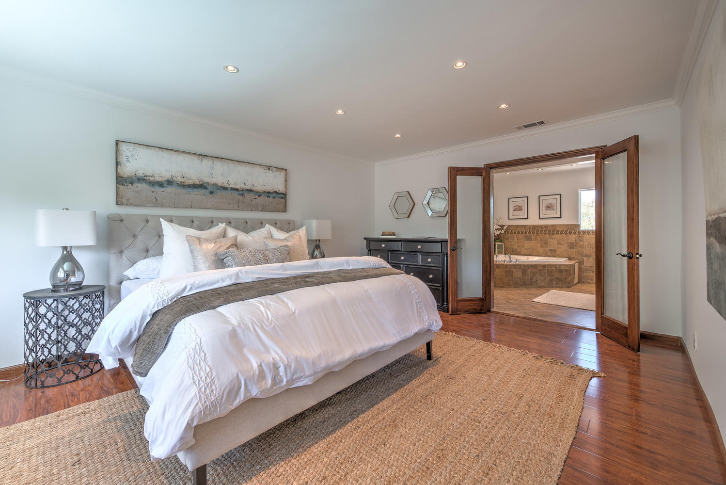 Charismatic two-story home on a quiet culdesac in sensational Sherman Oaks. The large driveway and gate allow for privacy from the street. Walk in through the brick stone entrance to the beautiful double doors. Inside you are greeted by a spacious open floor plan that connects the living room with light marble fireplace to the formal dining room. Updated kitchen with breakfast nook and stainless steel appliances makes this home great for hosting family and friends. The outside features a refreshing salt water heated pool and extensive grassy yard, great for those summer days and cool nights. The first floor also offers a beautiful second suite with walk in custom closet and remodeled ¾ bathroom. Upstairs you will find three additional bedrooms, including the fully upgraded Master suite that greets you with French doors, and a feeling of instant relaxation from the abundance of natural light. Inside you will find a large sitting area, and grand master closet, complete with custom built-ins. The master bathroom is one to boast about with jetted tub, double sinks, and oversized rain shower. Upgrades include hardwood floors, dual pane windows, new pool equipment, new HVAC system, LED lighting throughout Conveniently located to many shops and restaurants, this is the perfect family home!