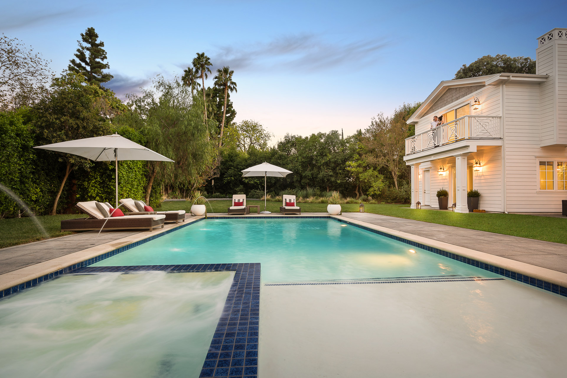 Spectacular "NEW" Hampton style Compound typically found on the Westside located in the prestigious Amestoy Estates just a stone's throw to the Westside. This gated & private Estate is a masterpiece built with the finest quality finishes & amenities on a huge lot over 21,000 square feet at the end of a quiet cul-de-sac with only two homes. Features 6,890 square feet with 6 bedrooms / 7&1/2 bathrooms, an open floor plan with kitchen/great room & breakfast area, plus a study/library, Mastered Movie Theatre offering Dolby Atmos System for both Video and Audio, Acoustic Specialized Calibration through a professional designer to meet or exceed movie industry standards in quality & a temperature controlled wine cellar. French doors open to lavish park-like grounds complete with large pool & spa, pool cabana & bathroom, BBQ area with built-ins, outdoor fireplace & multiple patio spaces. An entertainer?s dream, this home boasts a Chef's kitchen with top of the line Viking appliances, marble countertops, farm sink & massive center island. Gorgeous French oak floors throughout, Smart Home ready technology, built-in sound system, security system with cameras, 3-zoned HVAC systems & 4 fireplaces. Make this dream house yours and be on vacation year round!