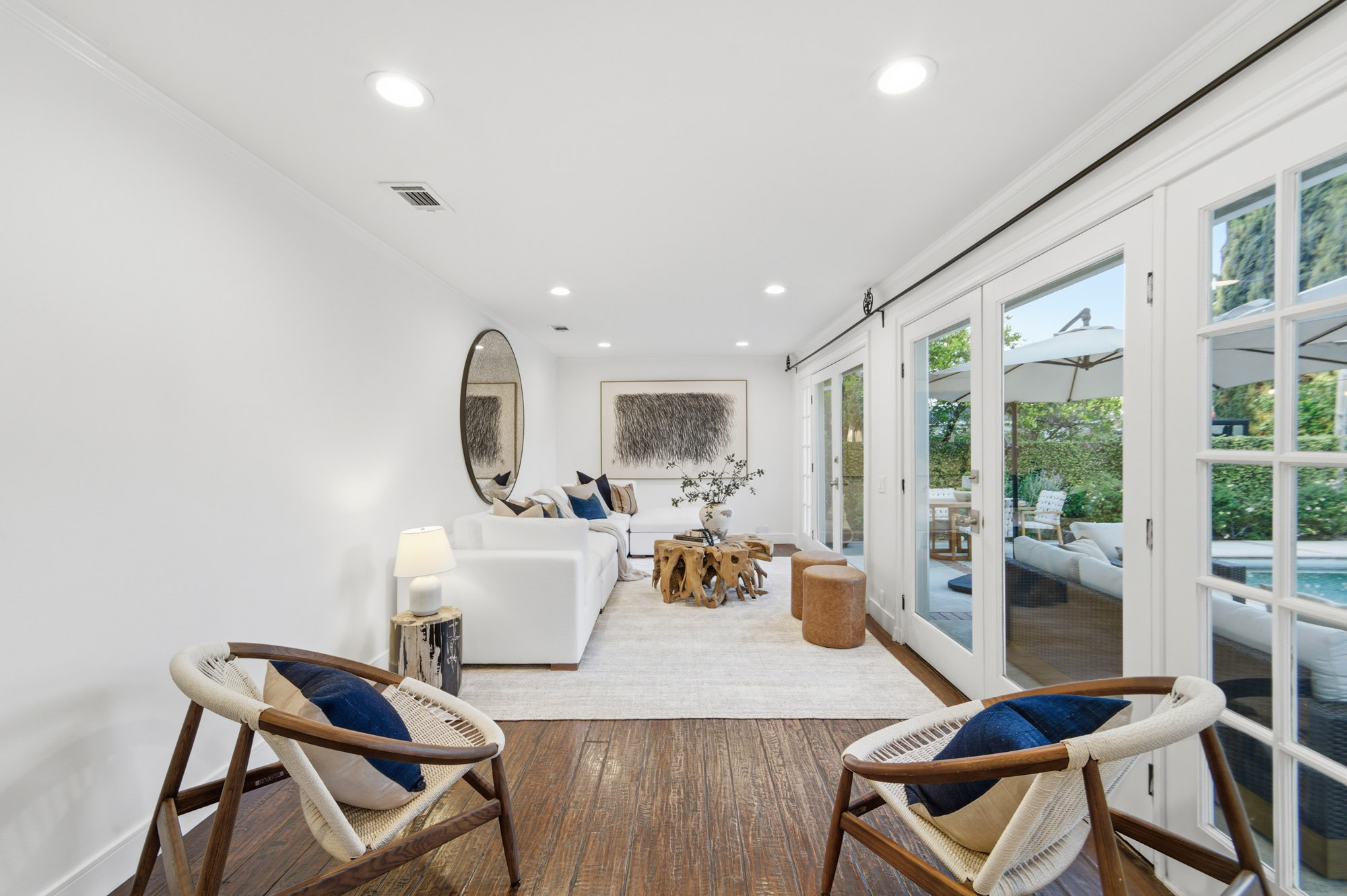 Situated in the coveted Chandler Estates neighborhood of Sherman Oaks, this charming single-story home sits on a large gated lot. Double doors welcome you into a bright and airy open-concept floor plan that's anchored by a designer kitchen, complete with premium stainless steel appliances and a built-in breakfast nook. The kitchen opens seamlessly to a spacious living and formal dining room, creating a perfect flow for everyday living and effortless entertaining. French doors lead out to a beautifully landscaped backyard retreat that features a sparkling pool, generous patio space and a built-in BBQ. This home offers three generously sized bedrooms and two updated full bathrooms, including a primary suite with a private ensuite bath. Additional highlights include a laundry closet, Nest doorbell and detached two-car garage. Ideally located just moments from Westfield Fashion Square, Ventura Boulevard’s premier shopping and dining, and top-rated public and private schools.