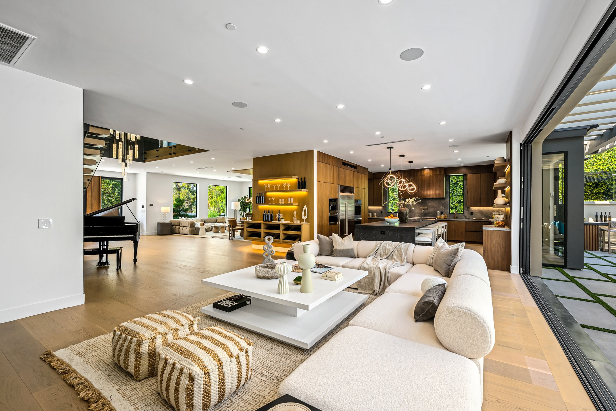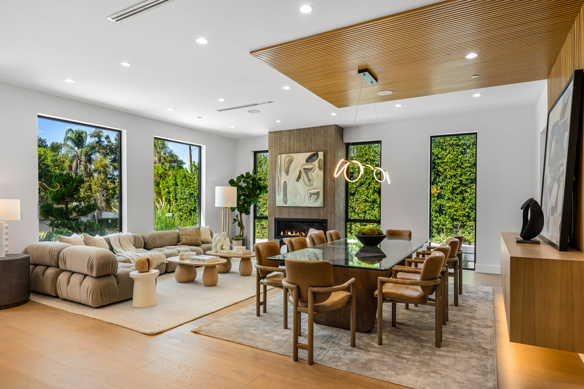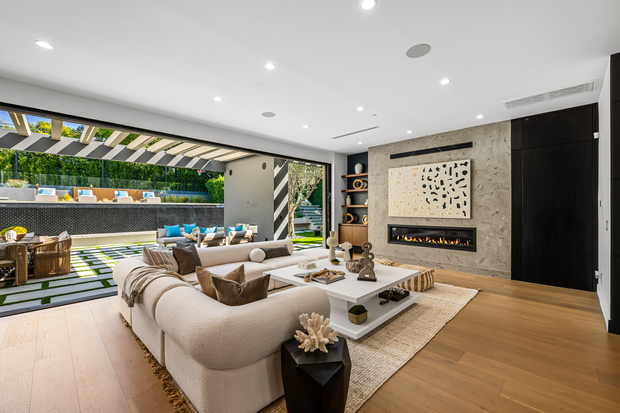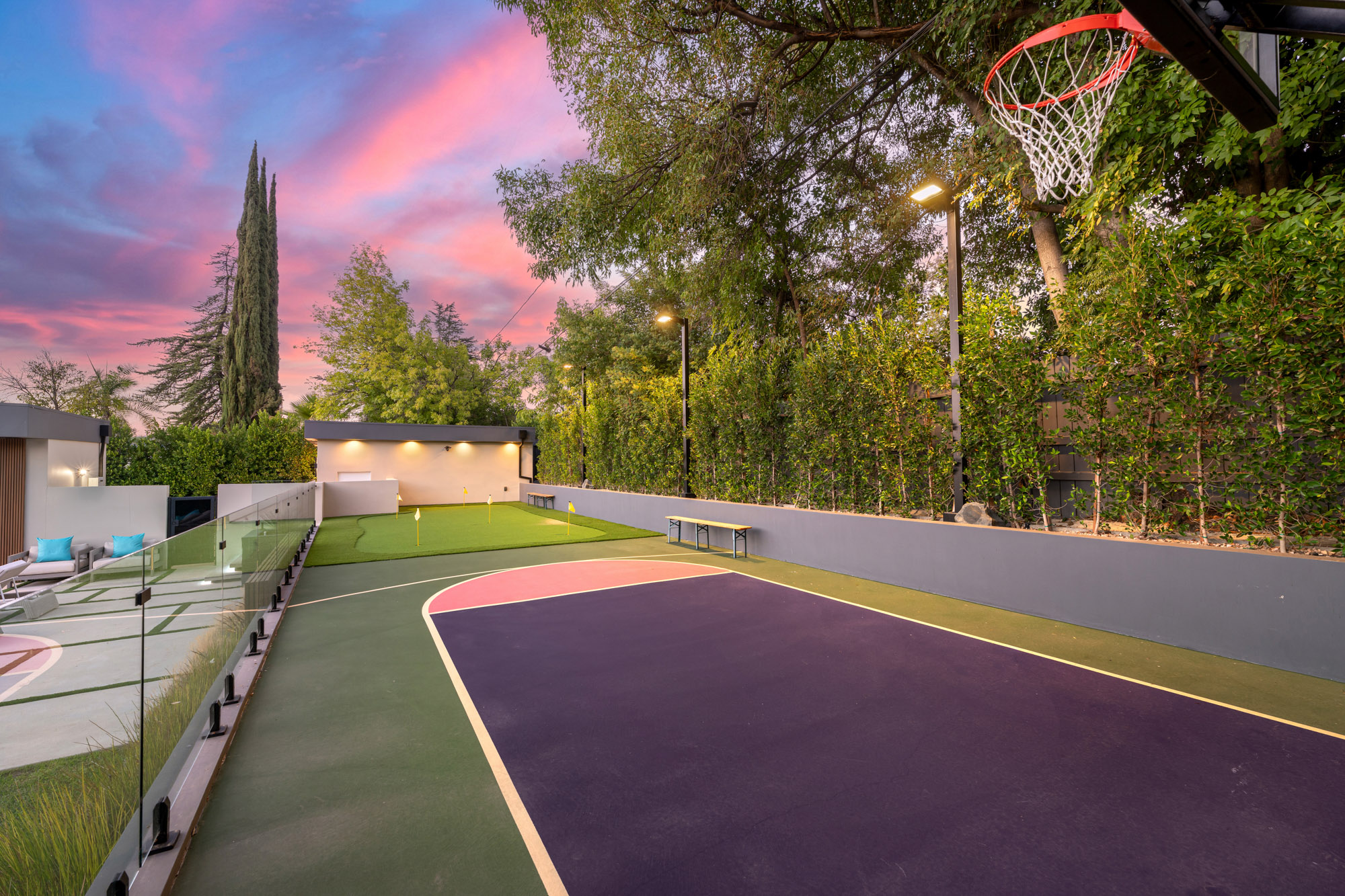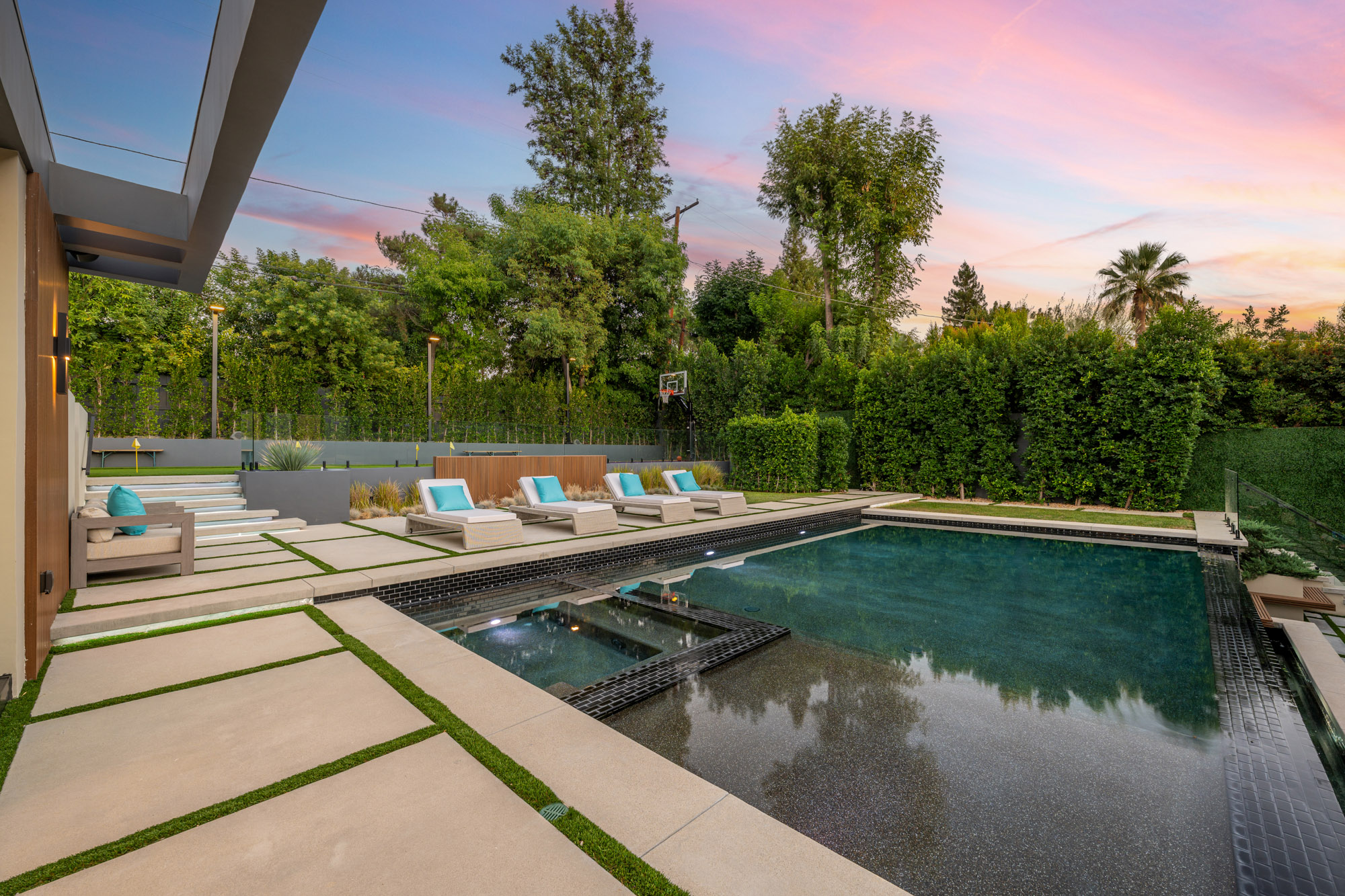 Stunning Private Estate South of the Boulevard located in one of the most desirable neighborhoods in Tarzana, this exceptional private gated estate offers the perfect blend of modern design and luxurious living. Set on beautifully landscaped grounds, the home boasts 5 bedrooms, 7 bathrooms, a study, a media room, and an array of high-end amenities that make it an entertainer's dream. The open floor plan creates a seamless flow between the living spaces, making it ideal for both intimate gatherings and large-scale entertaining. The chef’s kitchen is a culinary masterpiece, featuring Wolf and Sub-Zero appliances, a large center island, quartz countertops, a breakfast area, and a Miele coffee maker. The romantic primary suite serves as a serene retreat with a cozy fireplace, a spa-like bathroom, a large walk-in closet, and two private balconies. Additional highlights include 6 fireplaces throughout the home, a Crestron smart home system, Fleetwood pocket doors, integrated indoor and outdoor speaker systems, and security cameras. The exterior is just as impressive, with lush landscaping, a large reverse infinity pool and spa, a pool house, and a fully equipped outdoor kitchen with a 5-burner stove, BBQ, and beverage refrigerator. A covered patio with dual fireplaces is perfect for year-round entertaining and relaxation. For active pursuits, there’s a lighted sport court and a putting green, ensuring there’s something for everyone. Other standout features include a detached garage with ample parking space for luxury vehicles, RVs, and tour buses, as well as room for 10+ additional cars. The property is fully equipped with solar panels and underground utilities for enhanced sustainability. This home offers unparalleled privacy, comfort, and style, making it an ideal sanctuary for those seeking the ultimate in luxury living.