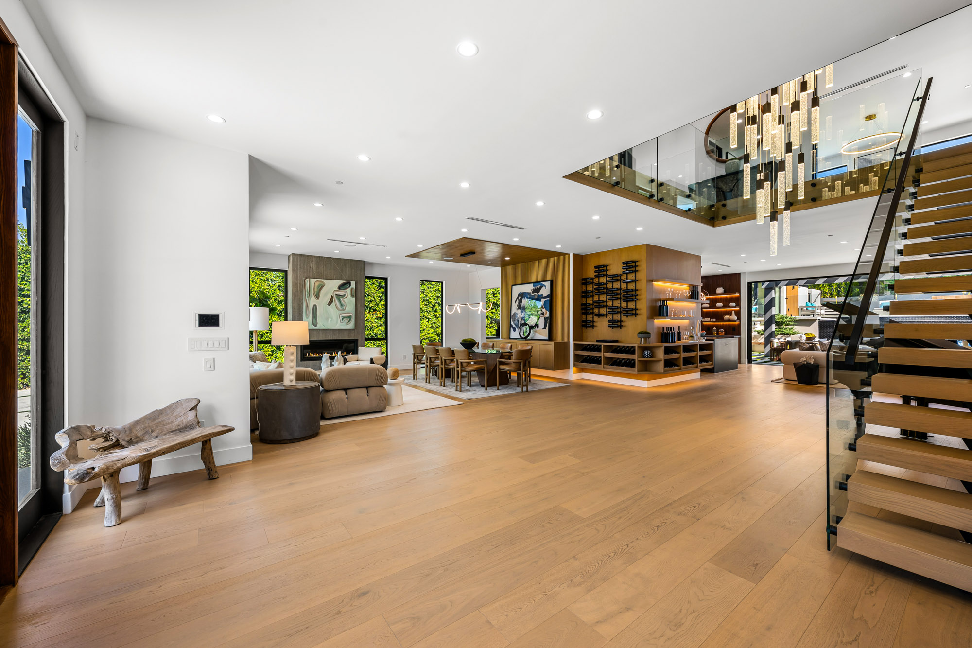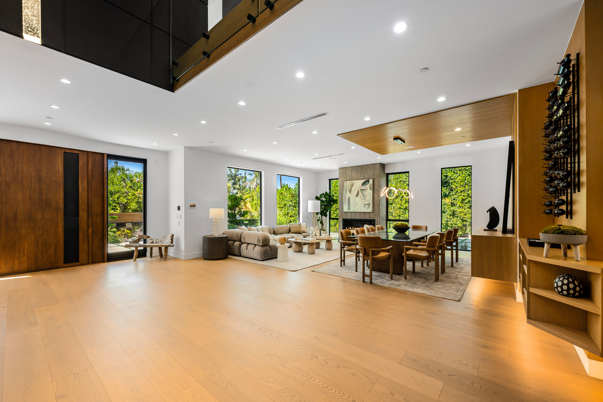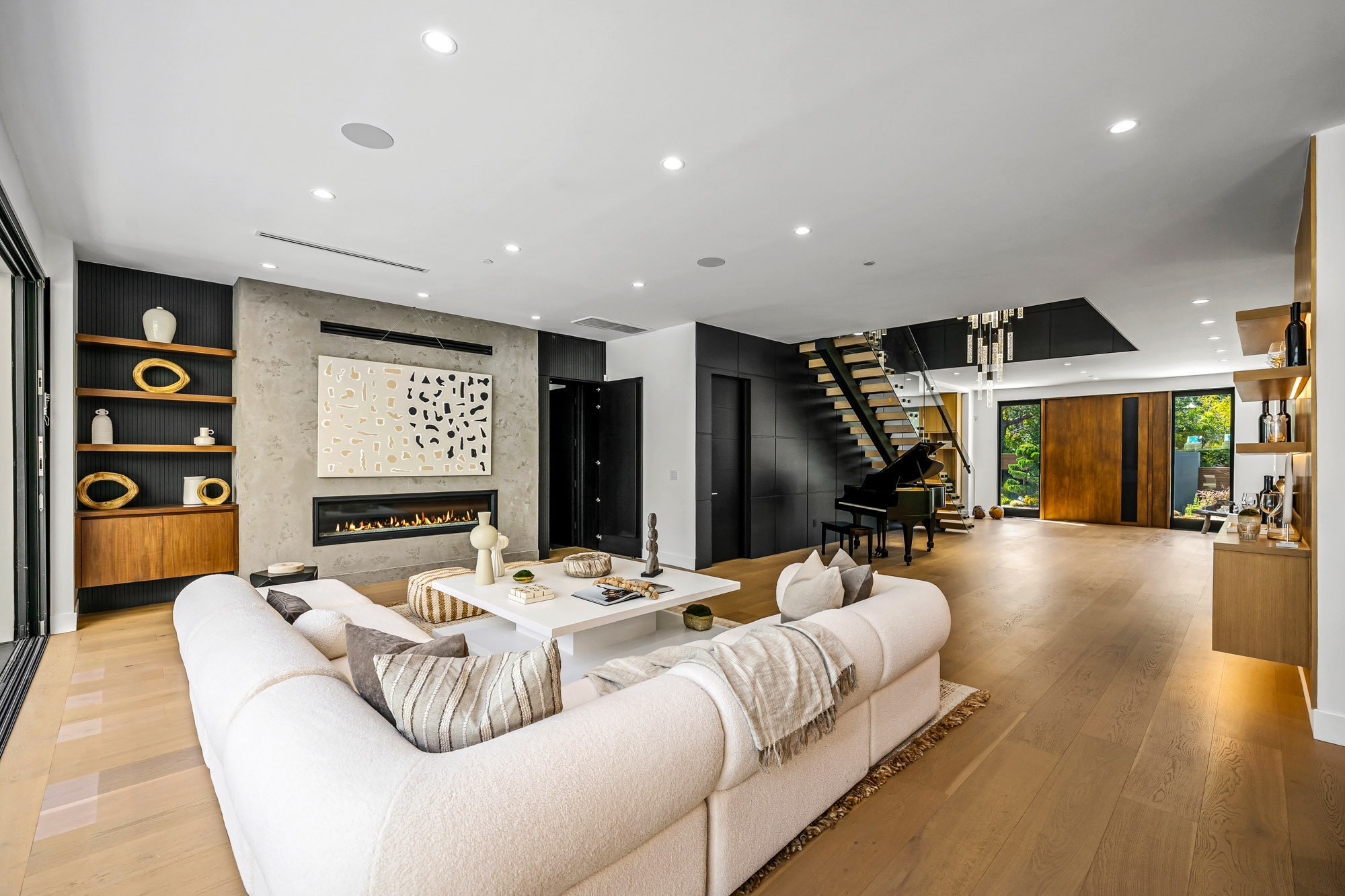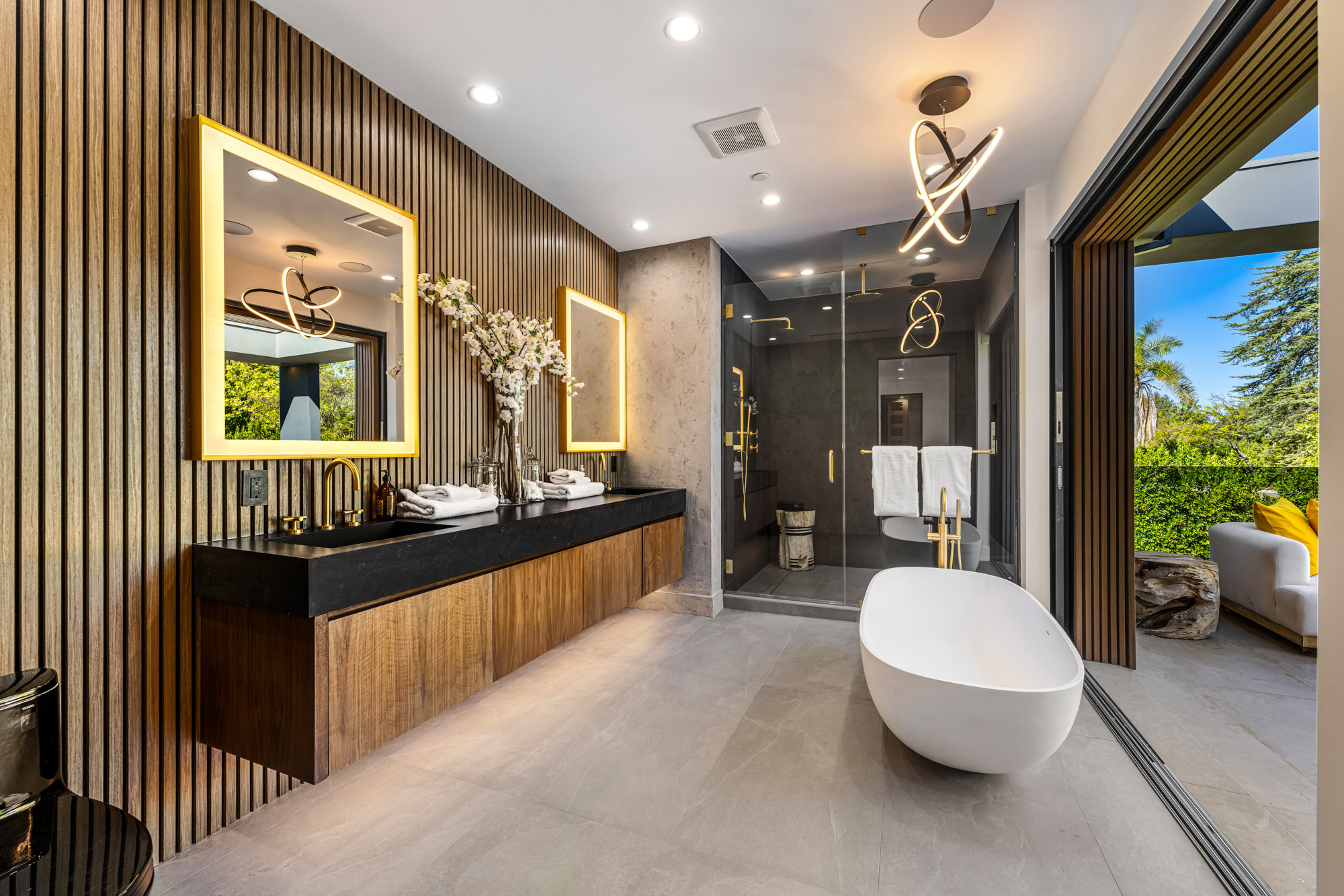 Stunning Private Estate South of the Boulevard located in one of the most desirable neighborhoods in Tarzana, this exceptional private gated estate offers the perfect blend of modern design and luxurious living. Set on beautifully landscaped grounds, the home boasts 5 bedrooms, 7 bathrooms, a study, a media room, and an array of high-end amenities that make it an entertainer's dream. The open floor plan creates a seamless flow between the living spaces, making it ideal for both intimate gatherings and large-scale entertaining. The chef’s kitchen is a culinary masterpiece, featuring Wolf and Sub-Zero appliances, a large center island, quartz countertops, a breakfast area, and a Miele coffee maker. The romantic primary suite serves as a serene retreat with a cozy fireplace, a spa-like bathroom, a large walk-in closet, and two private balconies. Additional highlights include 6 fireplaces throughout the home, a Crestron smart home system, Fleetwood pocket doors, integrated indoor and outdoor speaker systems, and security cameras. The exterior is just as impressive, with lush landscaping, a large reverse infinity pool and spa, a pool house, and a fully equipped outdoor kitchen with a 5-burner stove, BBQ, and beverage refrigerator. A covered patio with dual fireplaces is perfect for year-round entertaining and relaxation. For active pursuits, there’s a lighted sport court and a putting green, ensuring there’s something for everyone. Other standout features include a detached garage with ample parking space for luxury vehicles, RVs, and tour buses, as well as room for 10+ additional cars. The property is fully equipped with solar panels and underground utilities for enhanced sustainability. This home offers unparalleled privacy, comfort, and style, making it an ideal sanctuary for those seeking the ultimate in luxury living.