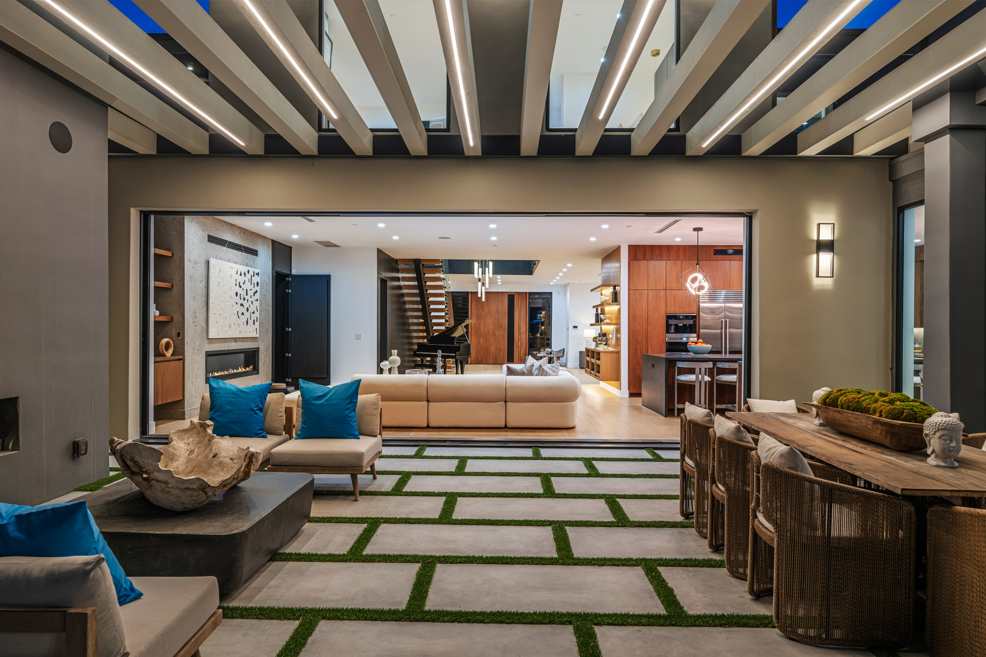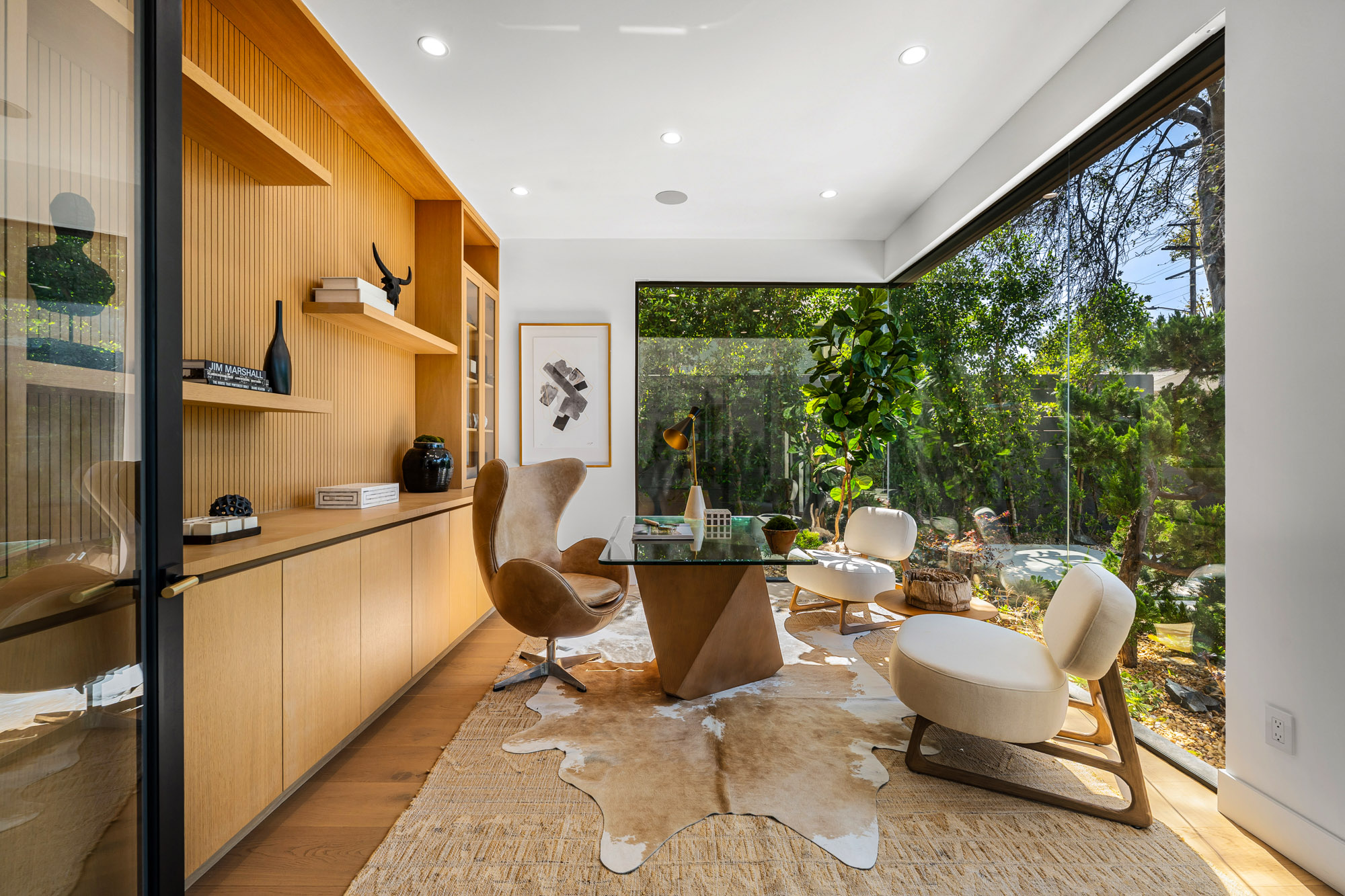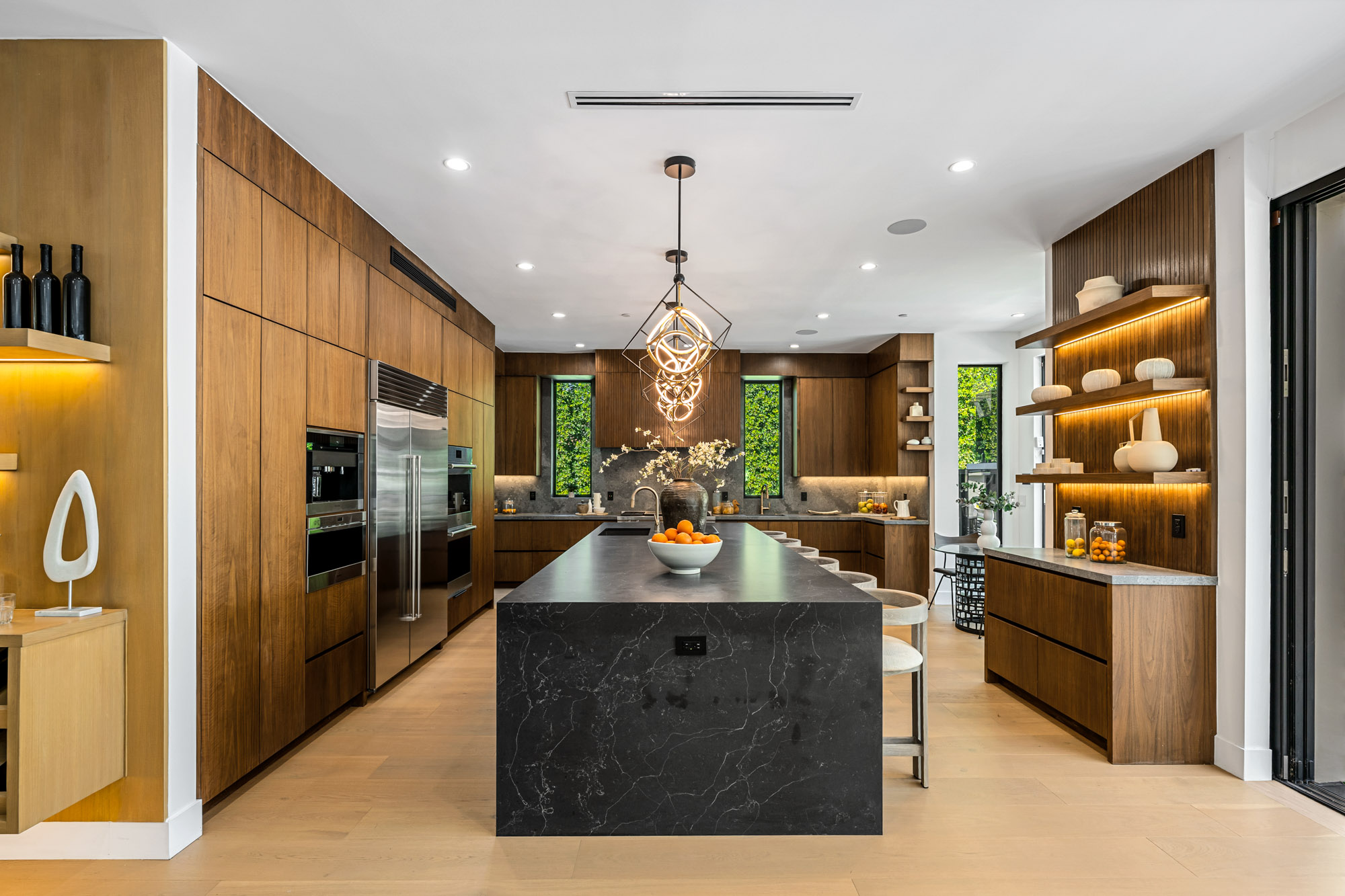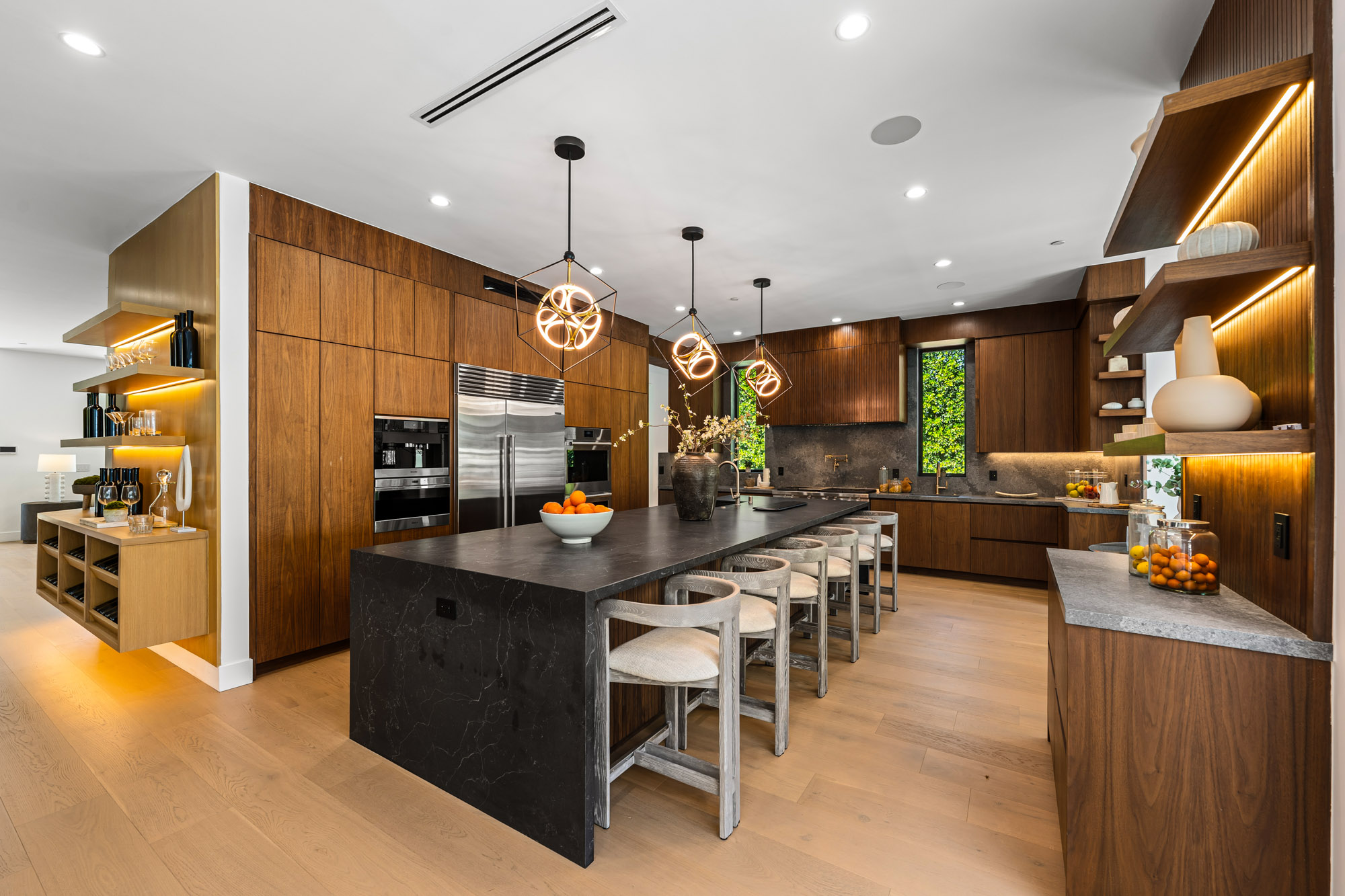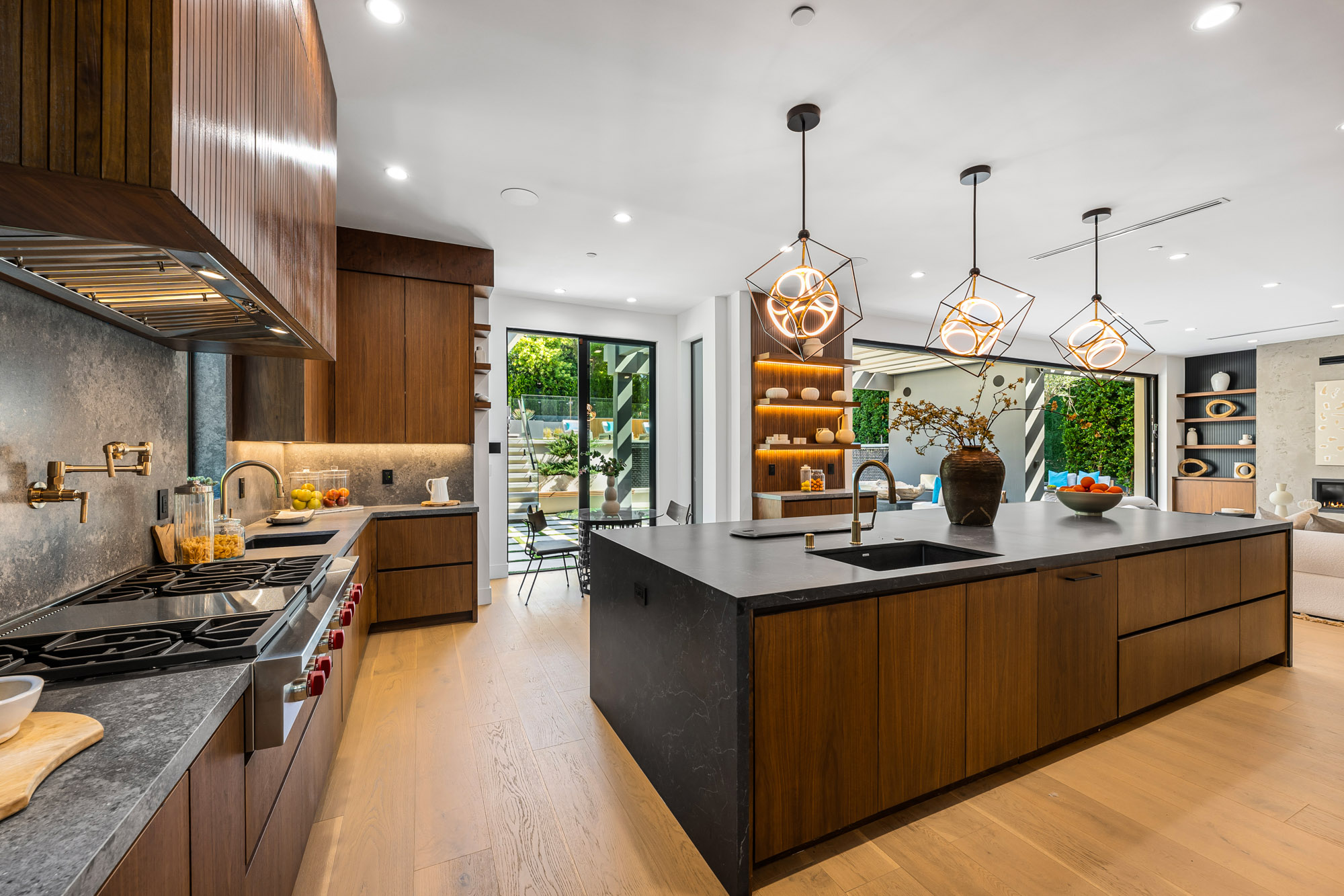 Stunning Private Estate South of the Boulevard located in one of the most desirable neighborhoods in Tarzana, this exceptional private gated estate offers the perfect blend of modern design and luxurious living. Set on beautifully landscaped grounds, the home boasts 5 bedrooms, 7 bathrooms, a study, a media room, and an array of high-end amenities that make it an entertainer's dream. The open floor plan creates a seamless flow between the living spaces, making it ideal for both intimate gatherings and large-scale entertaining. The chef’s kitchen is a culinary masterpiece, featuring Wolf and Sub-Zero appliances, a large center island, quartz countertops, a breakfast area, and a Miele coffee maker. The romantic primary suite serves as a serene retreat with a cozy fireplace, a spa-like bathroom, a large walk-in closet, and two private balconies. Additional highlights include 6 fireplaces throughout the home, a Crestron smart home system, Fleetwood pocket doors, integrated indoor and outdoor speaker systems, and security cameras. The exterior is just as impressive, with lush landscaping, a large reverse infinity pool and spa, a pool house, and a fully equipped outdoor kitchen with a 5-burner stove, BBQ, and beverage refrigerator. A covered patio with dual fireplaces is perfect for year-round entertaining and relaxation. For active pursuits, there’s a lighted sport court and a putting green, ensuring there’s something for everyone. Other standout features include a detached garage with ample parking space for luxury vehicles, RVs, and tour buses, as well as room for 10+ additional cars. The property is fully equipped with solar panels and underground utilities for enhanced sustainability. This home offers unparalleled privacy, comfort, and style, making it an ideal sanctuary for those seeking the ultimate in luxury living.