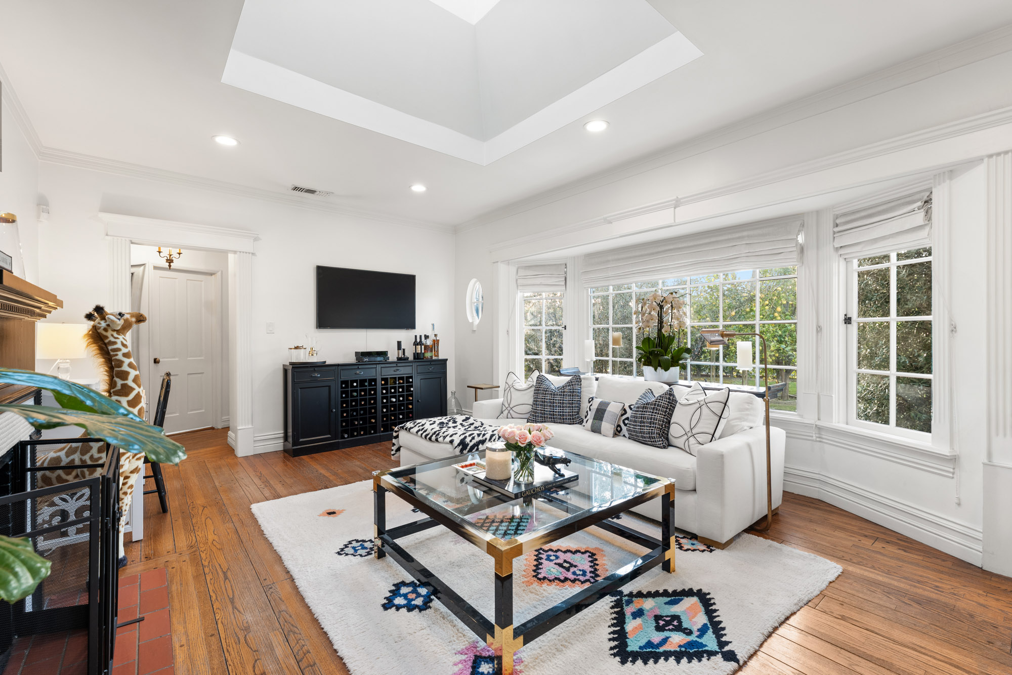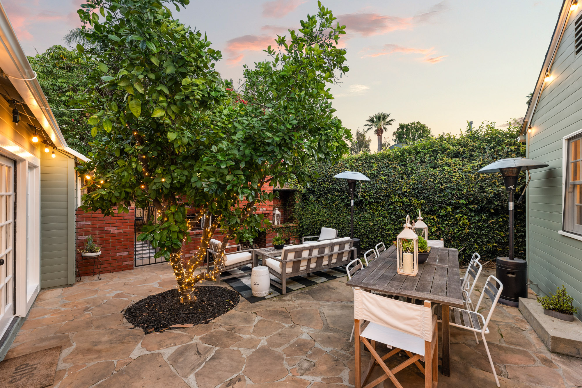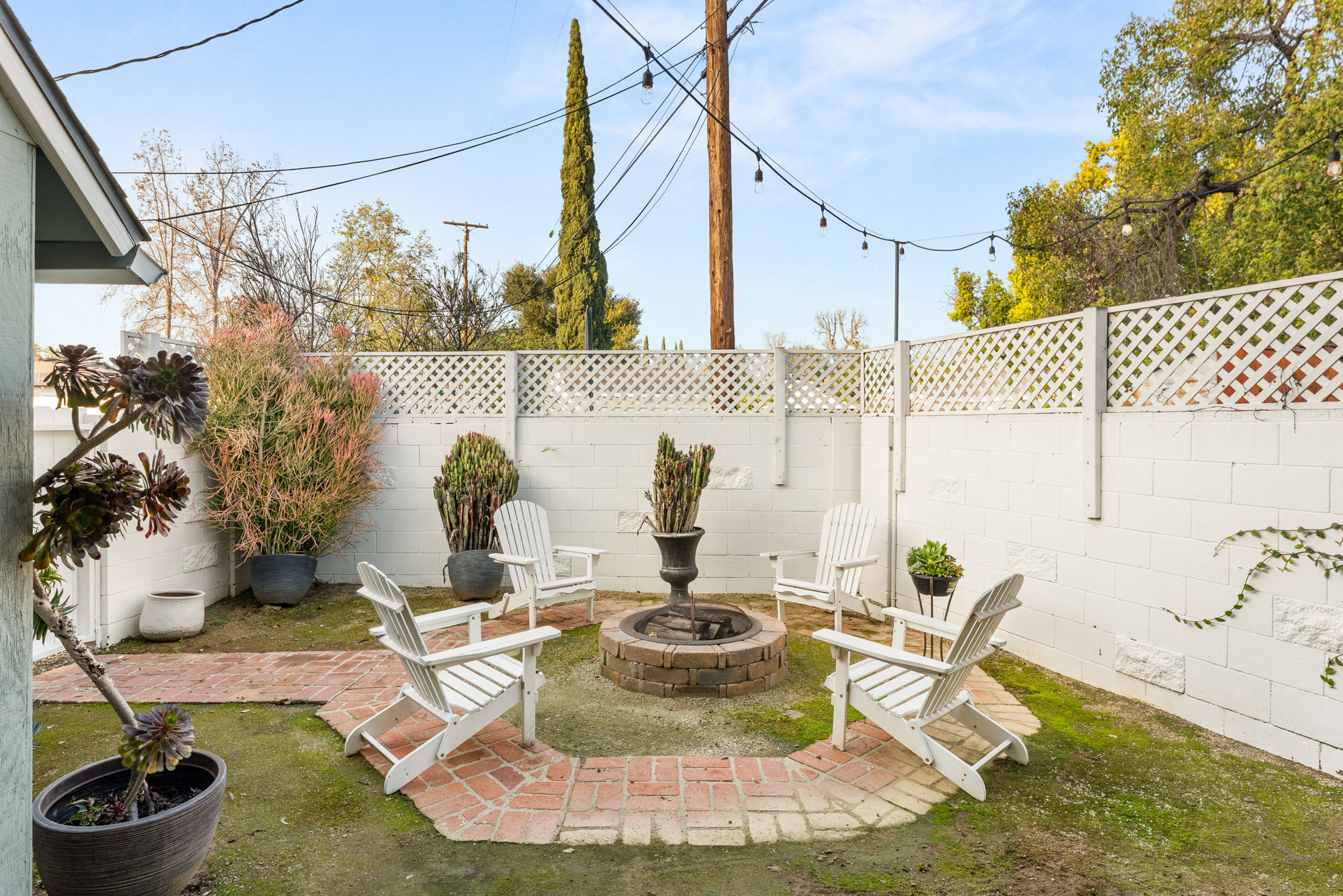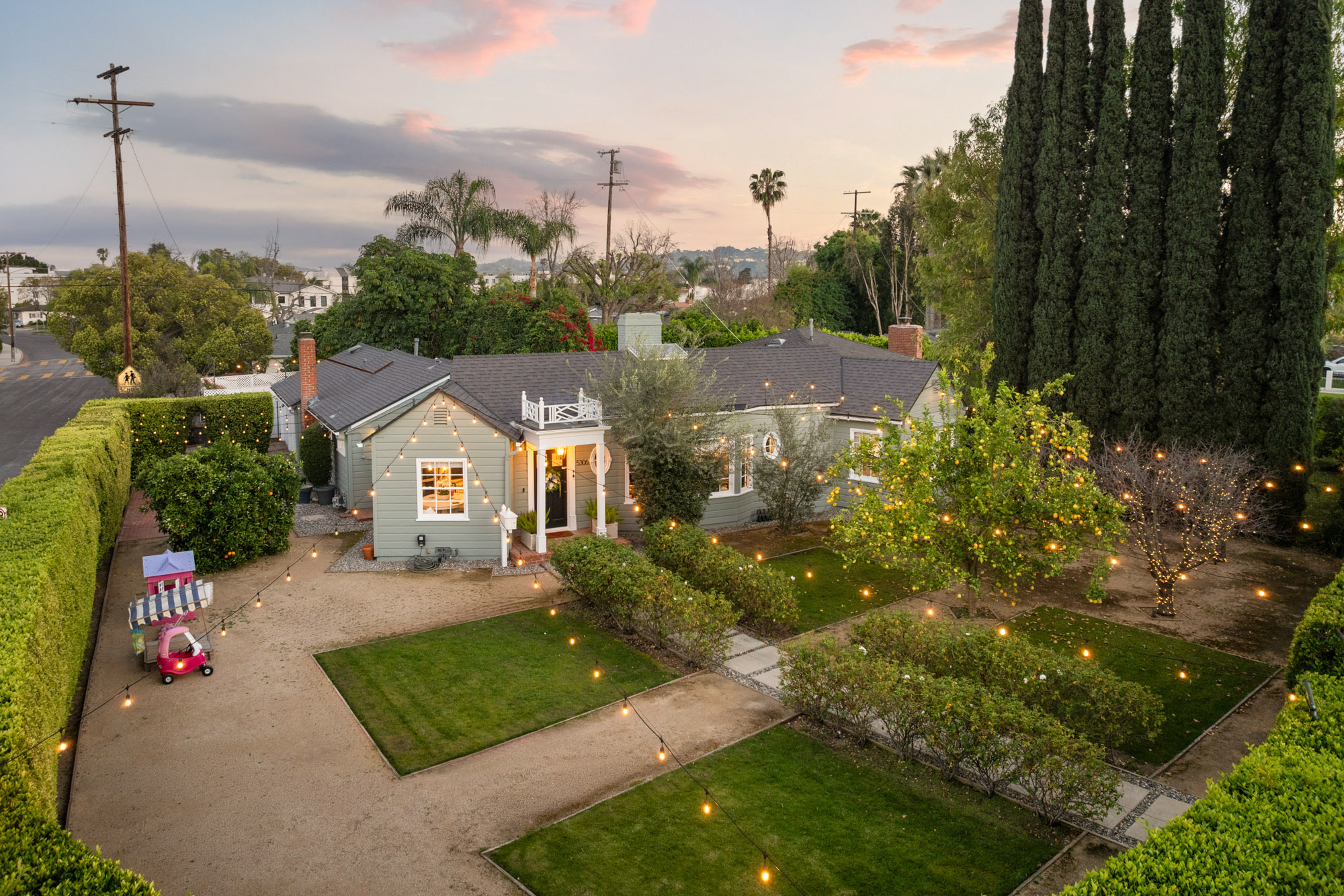Situated on an oversized corner lot in the coveted Magnolia Woods neighborhood of Sherman Oaks, this charming single-story home effortlessly blends timeless character with thoughtful modern upgrades. Natural light floods the living room through a large bay window and recessed skylight, highlighting the gorgeous hardwood floors and creating a warm, inviting atmosphere. The designer chef’s kitchen is outfitted with top-of-the-line appliances, while the adjacent formal dining room boasts built-in seating. A spacious bonus room offers endless possibilities, whether used as a family room, home theater, office or gym. French doors open to a private stone patio with a cozy fireplace and built-in BBQ, the perfect spot to enjoy a quiet morning or unwind after a long day. Framed by mature privacy hedges, the expansive front yard offers a serene, park-like setting that invites outdoor relaxation. This home features two beautifully updated bathrooms and three bright, airy bedrooms, one with an ensuite bath and two with walk-in closets. Additional highlights include a laundry room, security cameras, built-in firepit, storage shed and two-car garage. Enjoy an unbeatable location within the top-rated Kester Avenue Elementary school district and only moments away from Ventura Boulevard’s premier shops and restaurants.